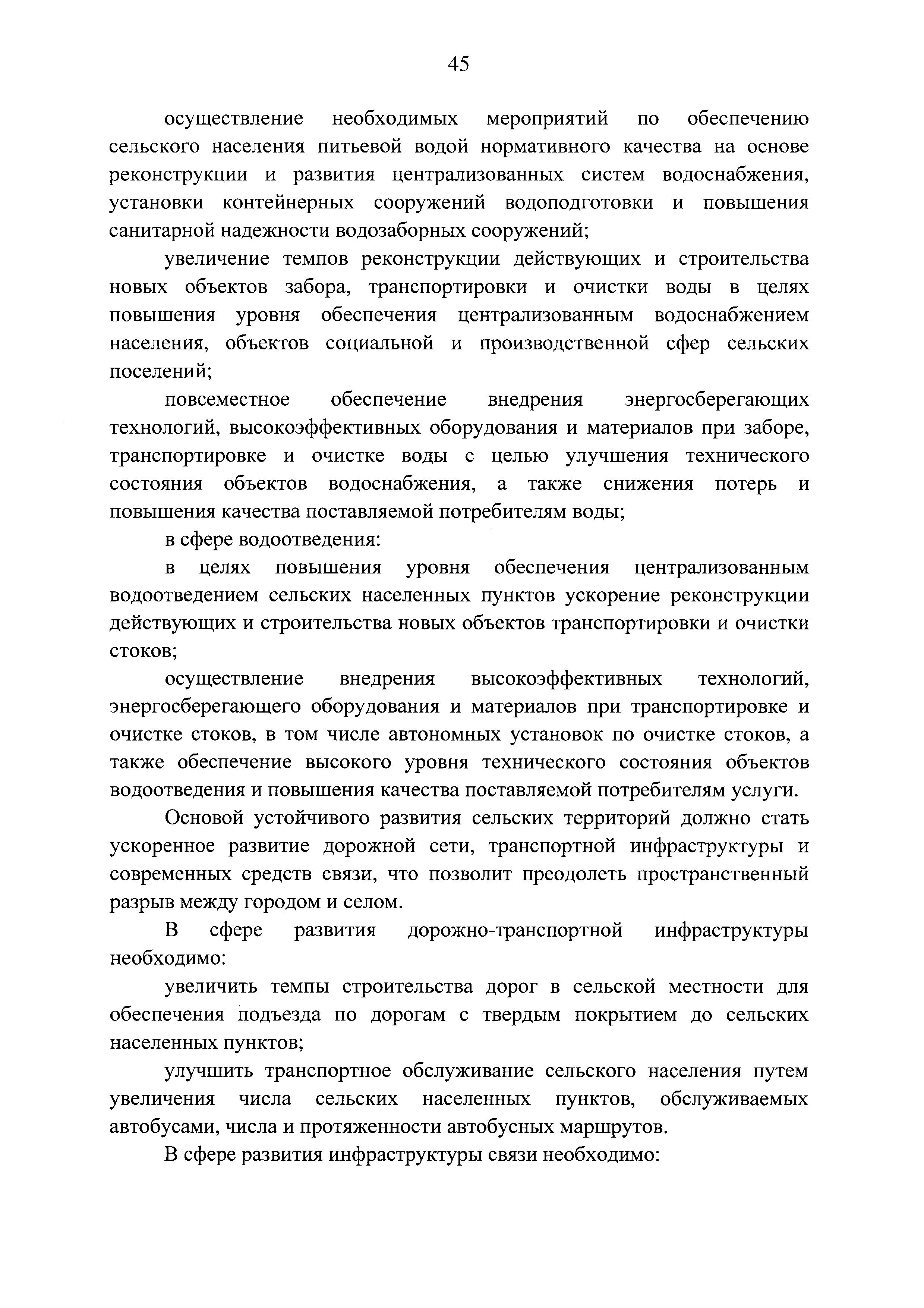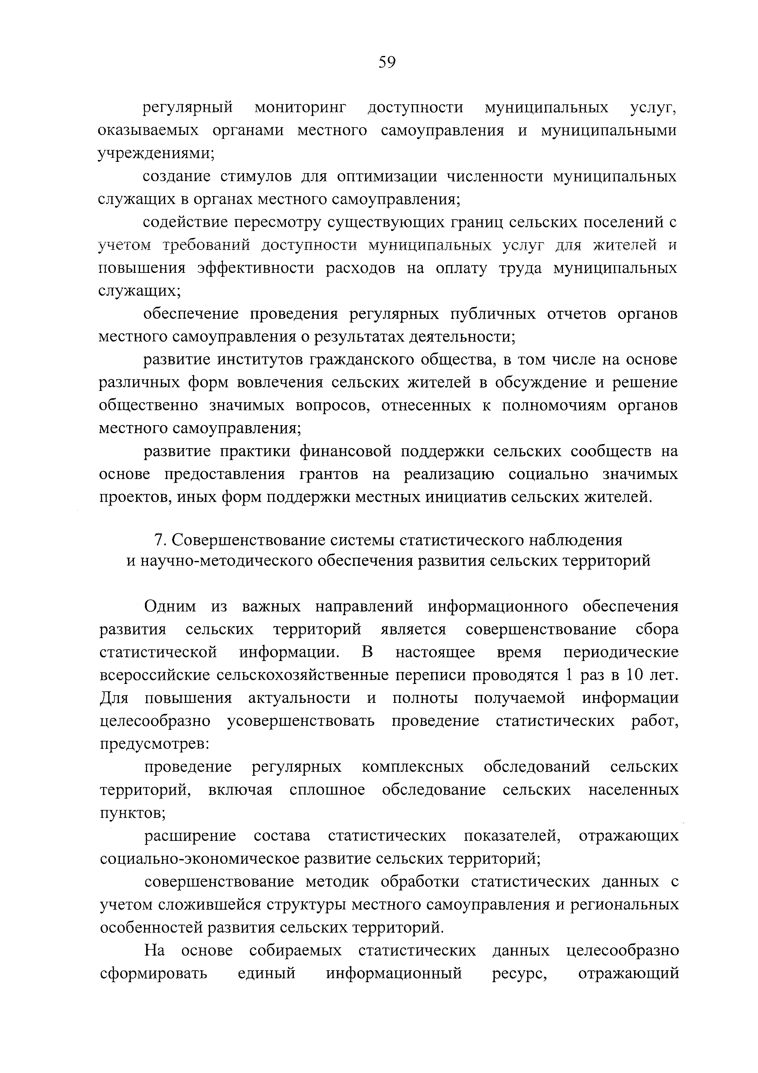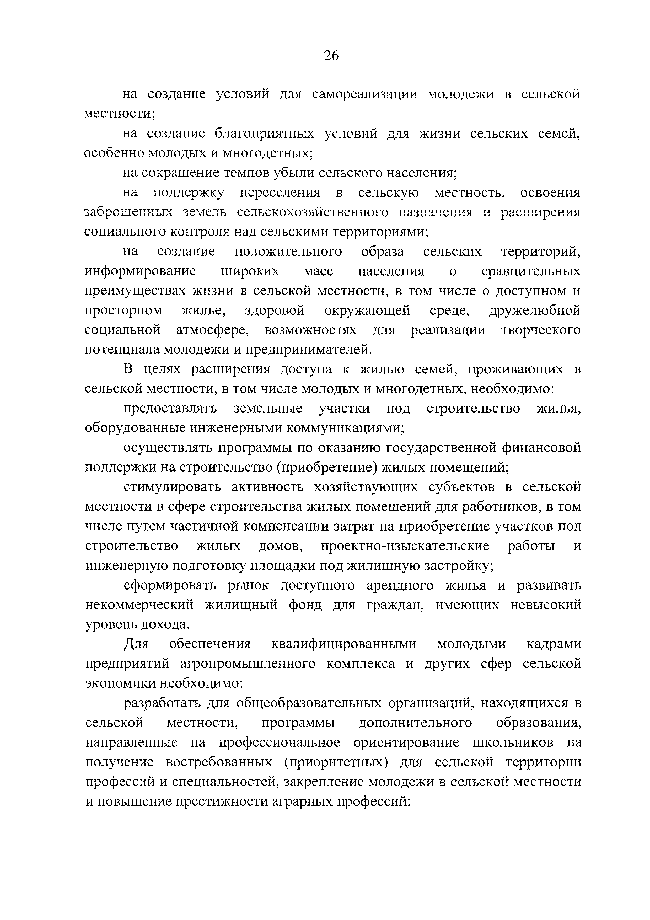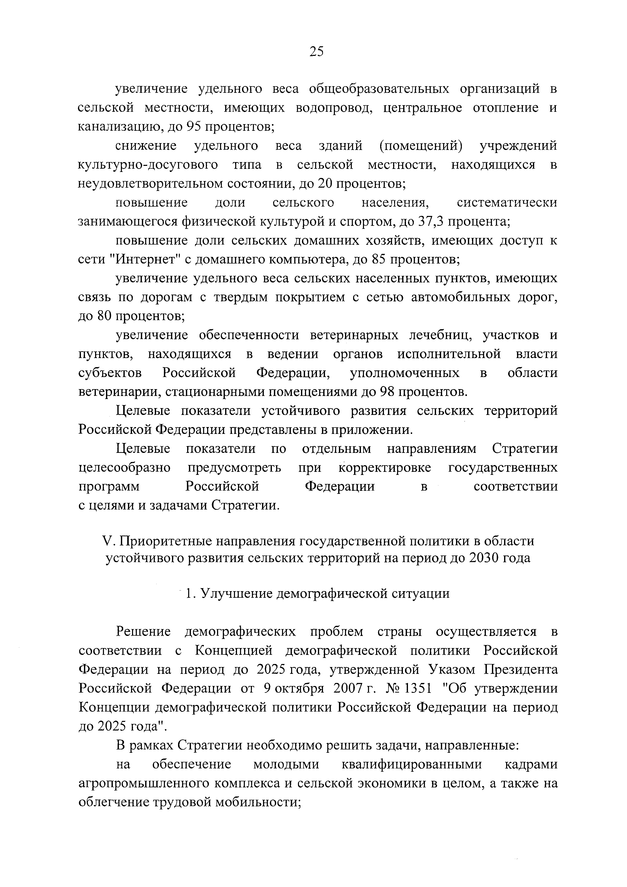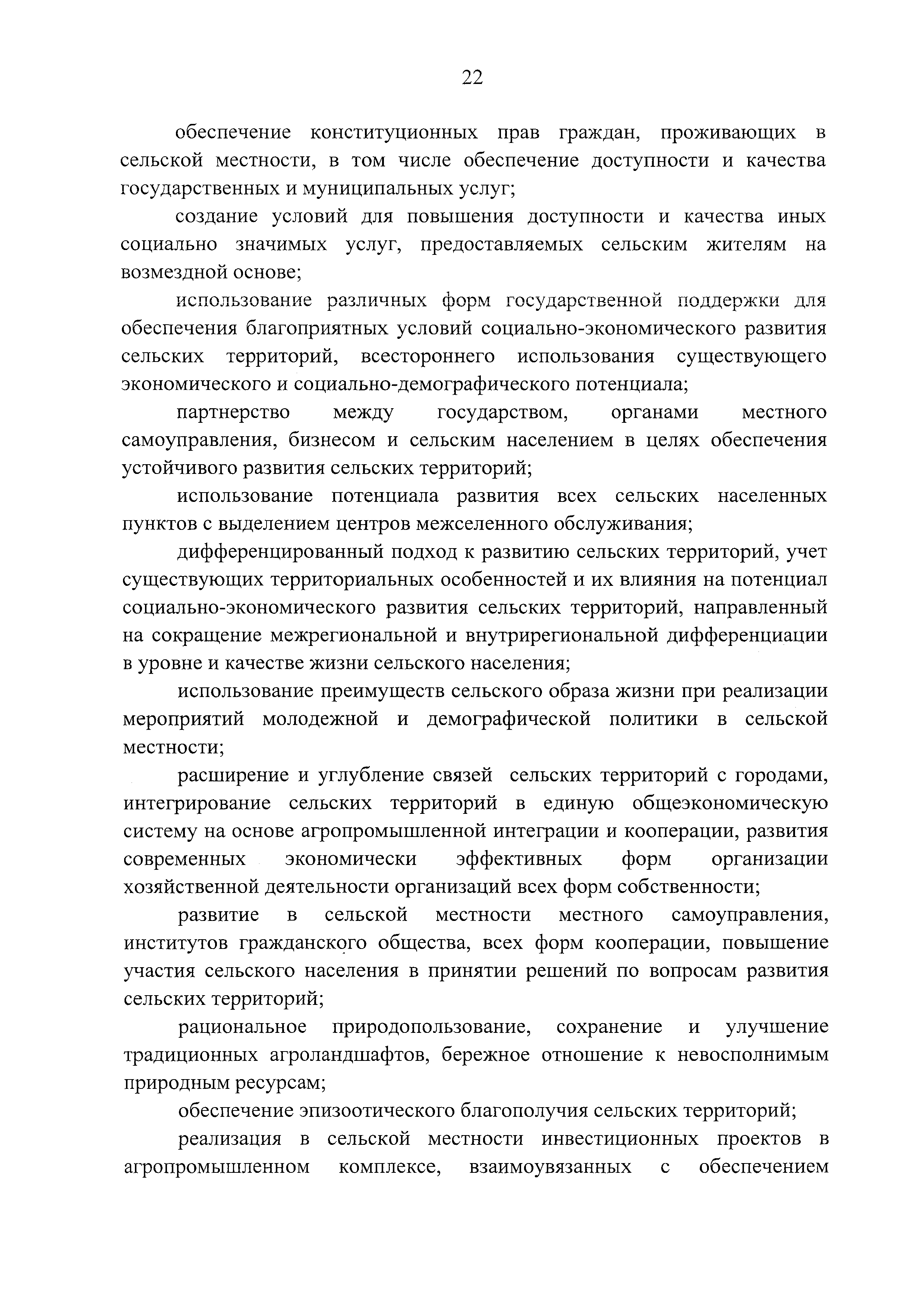 | Оглавление: | I. Общие положения II. Современное состояние и тенденции развития сельских территорий III. Цели, принципы и задачи государственной политики в области обеспечения устойчивого развития сельских территорий IV. Целевые показатели устойчивого развития сельских территорий на долгосрочный период V. Приоритетные направления государственной политики в области устойчивого развития сельских территорий на период до 2030 года VI. Этапы и механизмы реализации Стратегии Приложение. Целевые показатели устойчивого развития сельских территорий Российской Федерации |