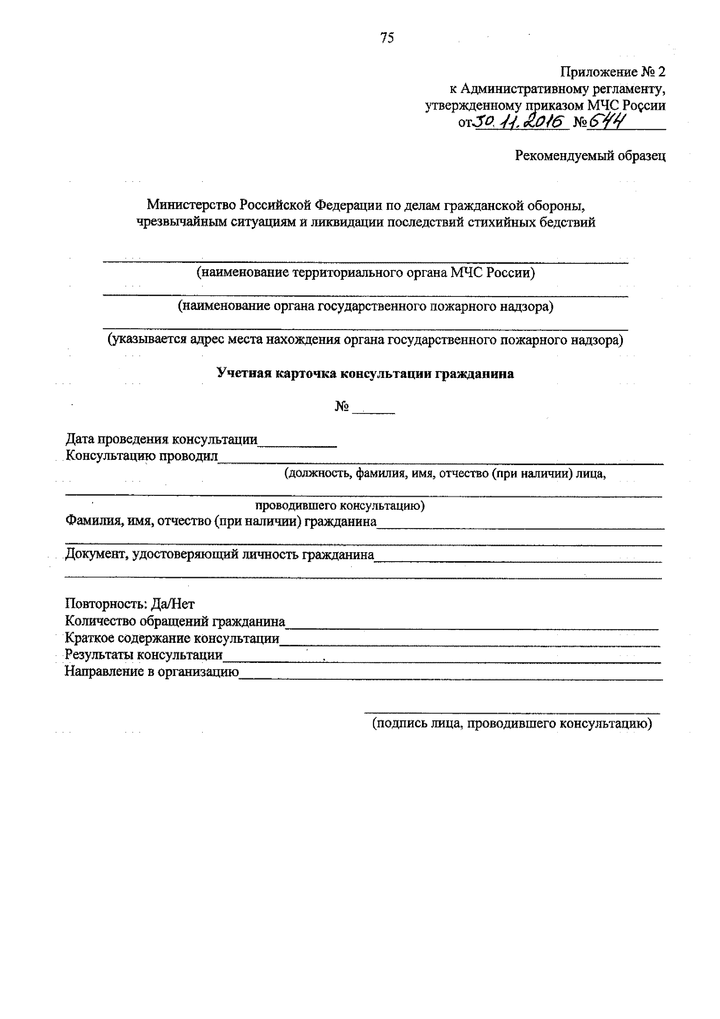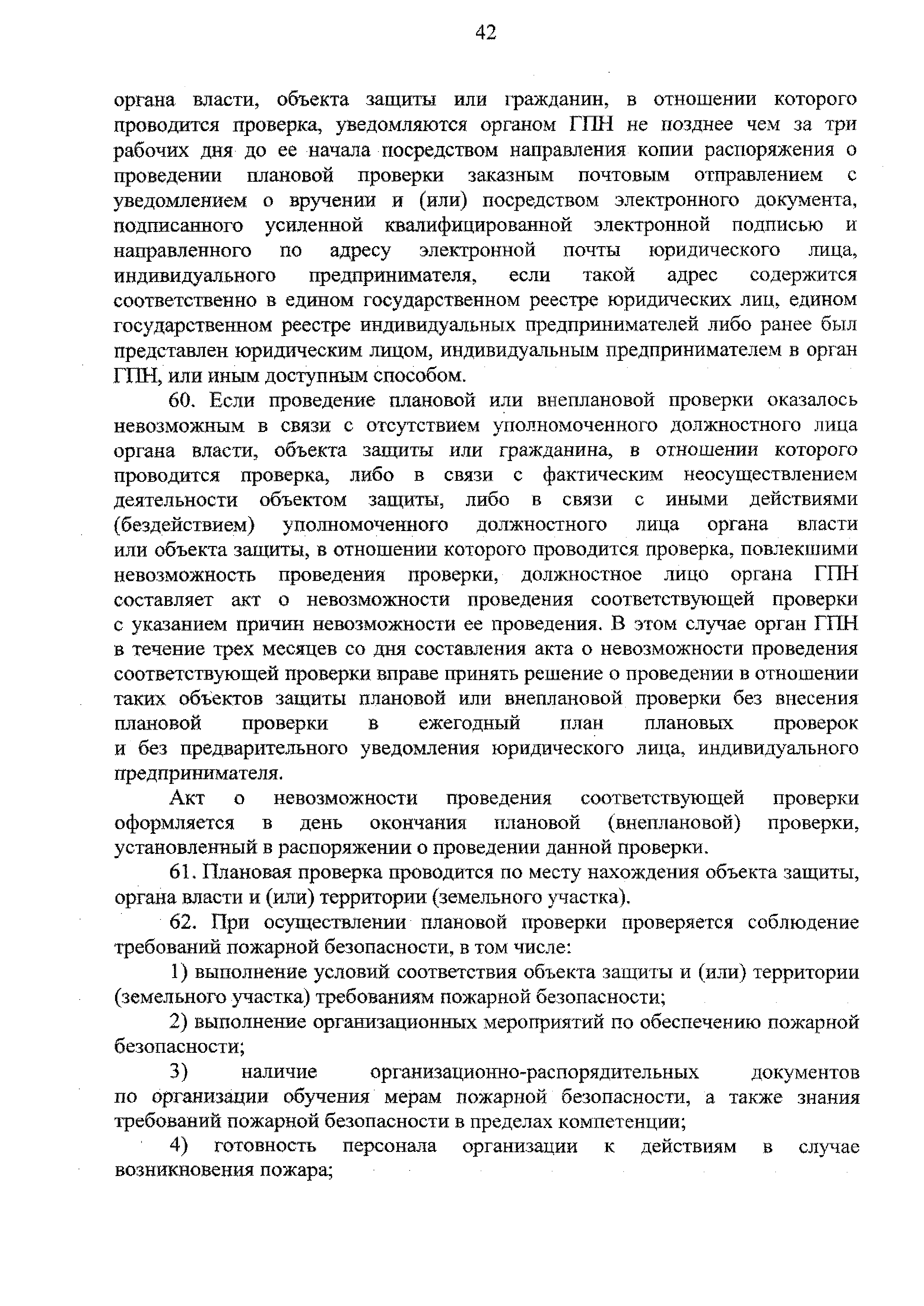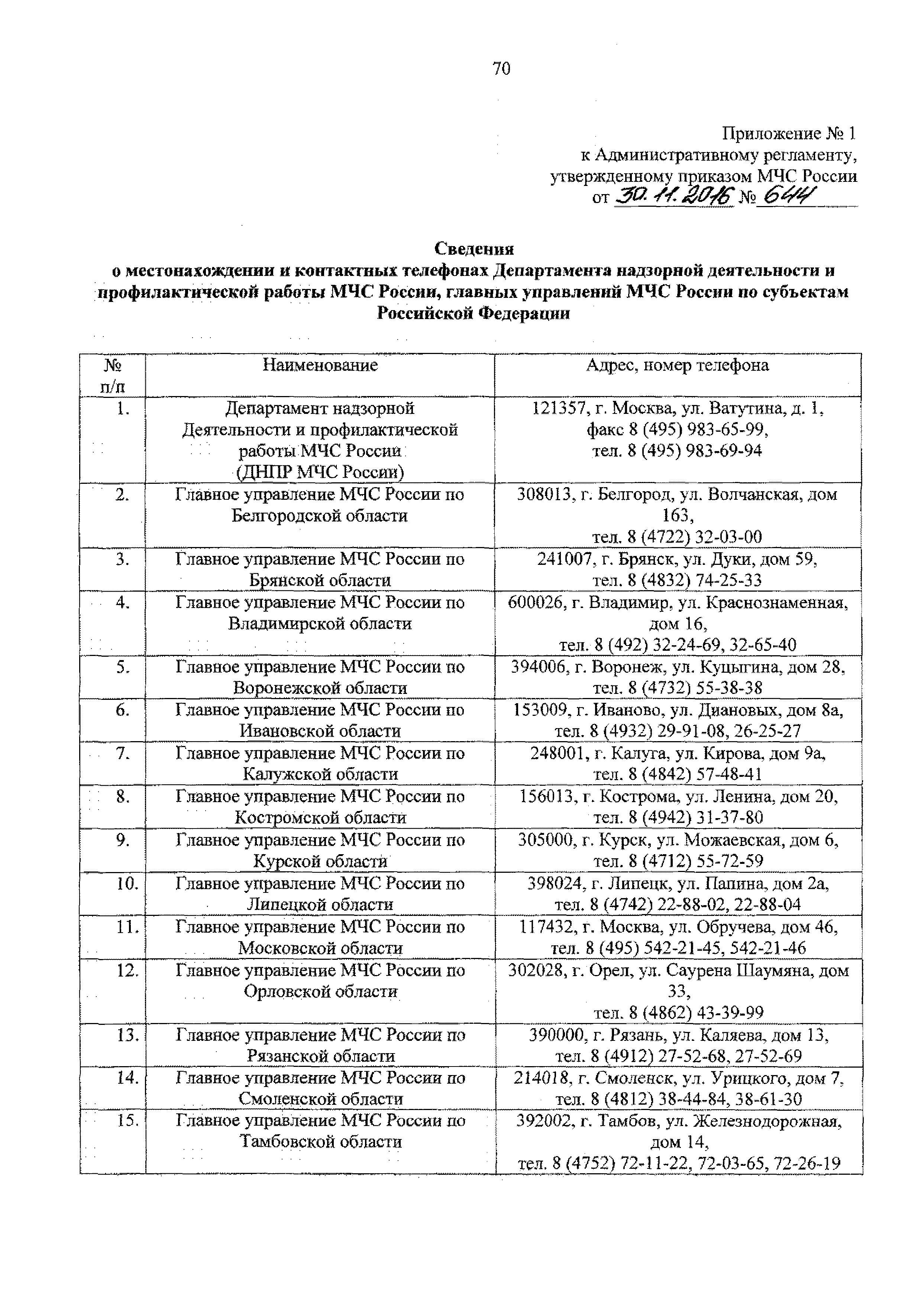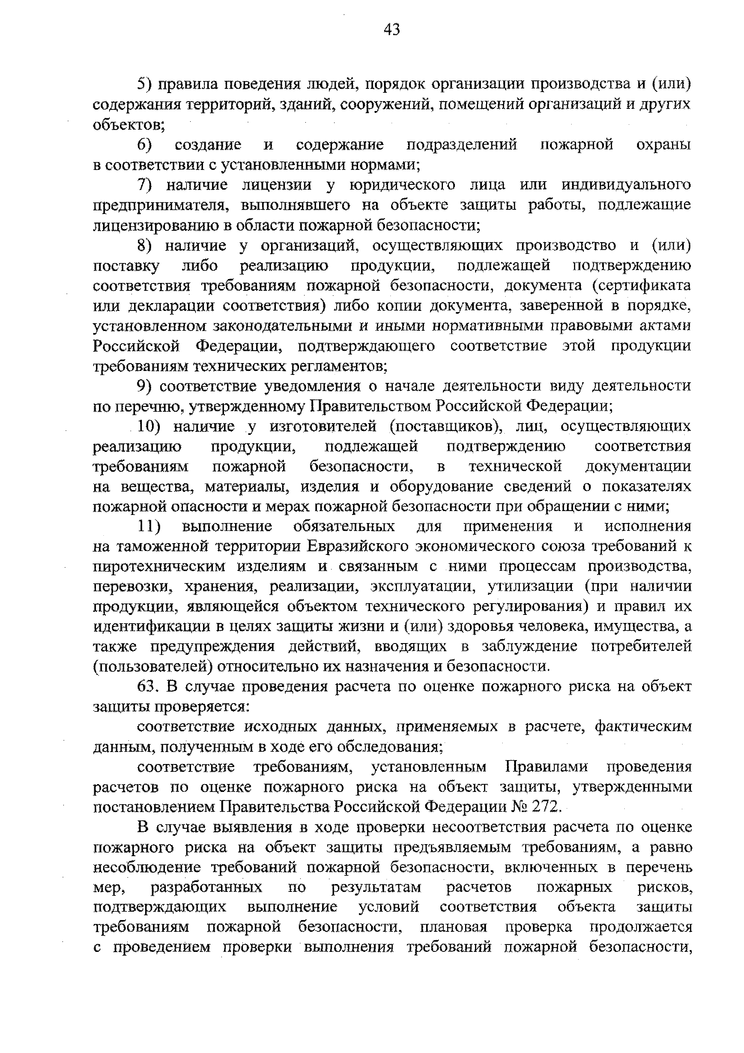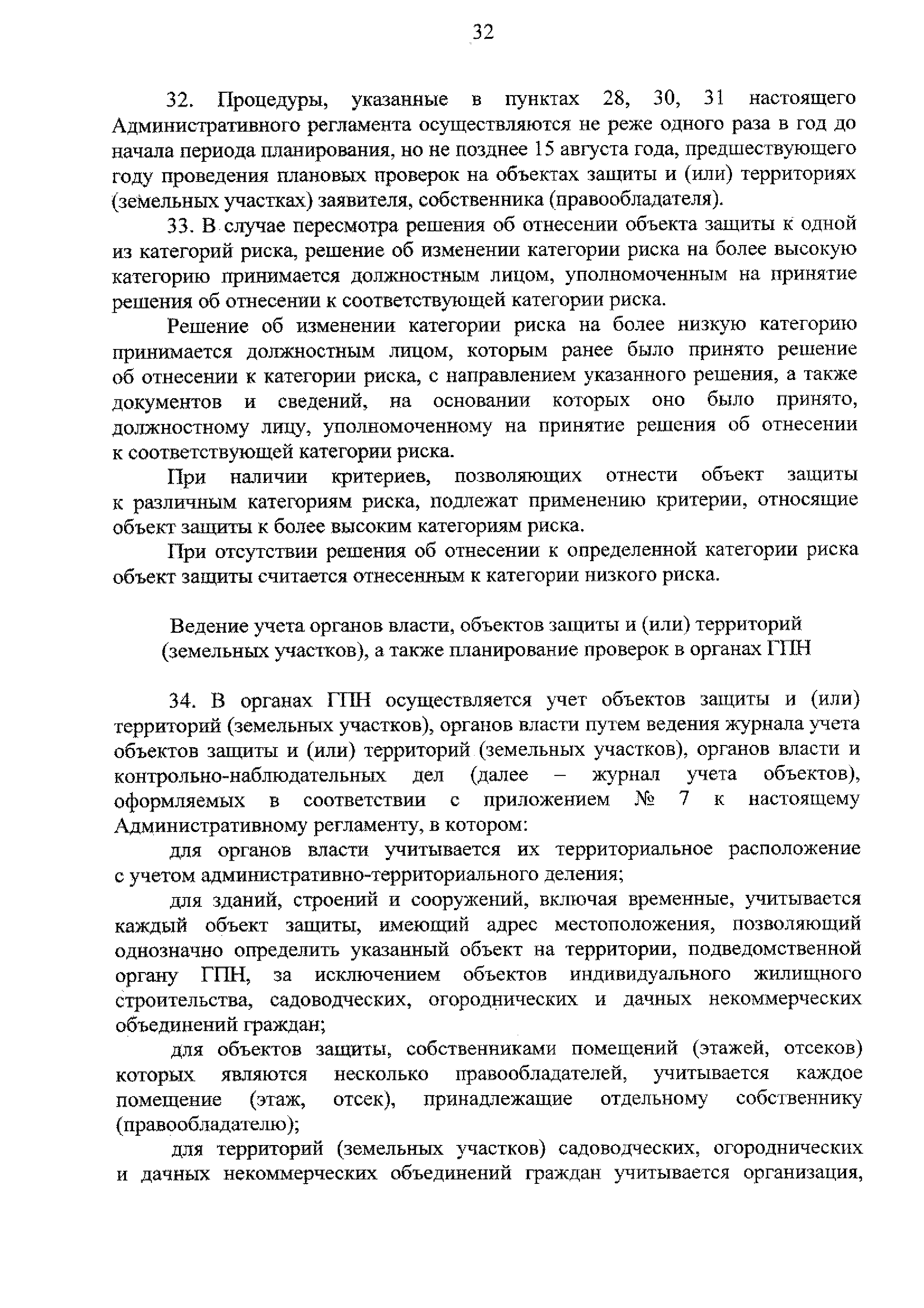 | Оглавление: | I. Общие положения II. Требования к порядку исполнения государственной функции III. Состав, последовательность и сроки выполнения административных процедур, требования к порядку их выполнения, в том числе особенности выполнения административных процедур в электронной форме IV. Порядок и формы контроля за исполнением государственной функции V. Досудебный (внесудебный) порядок обжалования решений и действий (бездействия) органа, исполняющего государственную функцию, а также его должностных лиц Приложение № 1. Сведения о местонахождении и контактных телефонах департамента надзорной деятельности и профилактической работы МЧС России, главных управлений МЧС России по субъектам Российской Федерации Приложение № 2. Учетная карточка консультации гражданина Приложение № 3. Заключение о соответствии (несоответствии) объекта защиты требованиям пожарной безопасности Приложение № 4. Журнал учета выданных заключений о соответствии (несоответствии) объекта защиты требованиям пожарной безопасности Приложение № 5. Блок-схема исполнения государственной функции Приложение № 6. Перечень объектов защиты и (или) территорий (земельных участков), которым присвоена категория риска Приложение № 7. Журнал учета объектов защиты и (или) территорий (земельных участков), органов власти Приложение № 8. Ежегодный план проведения плановых проверок объектов защиты и (или) территорий (земельных участков), правообладателями которых являются граждане, не являющиеся индивидуальными предпринимателями (за исключением объектов защиты - жилых помещений) Приложение № 9. Периодичность осуществления плановых проверок обязательных требований пожарной безопасности в зависимости от категории риска в соответствии с постановлением Правительства Российской Федерации № 806 Приложение № 10. План-график государственного инспектора по пожарному надзору осуществления государственной функции Приложение № 11. Журнал органа ГПН по учету проверок Приложение № 12. Блок-схема проведения административной процедуры плановой (внеплановой) проверки Приложение № 13. Контрольно-наблюдательное дело о противопожарном состоянии объекта защиты и (или) территории (земельного участка), (органа власти) Приложение № 14. Журнал учета дел об административных правонарушениях и представлений об устранении причин и условий, способствовавших совершению административного правонарушения Приложение № 15. Предостережение о недопустимости нарушения обязательных требований |