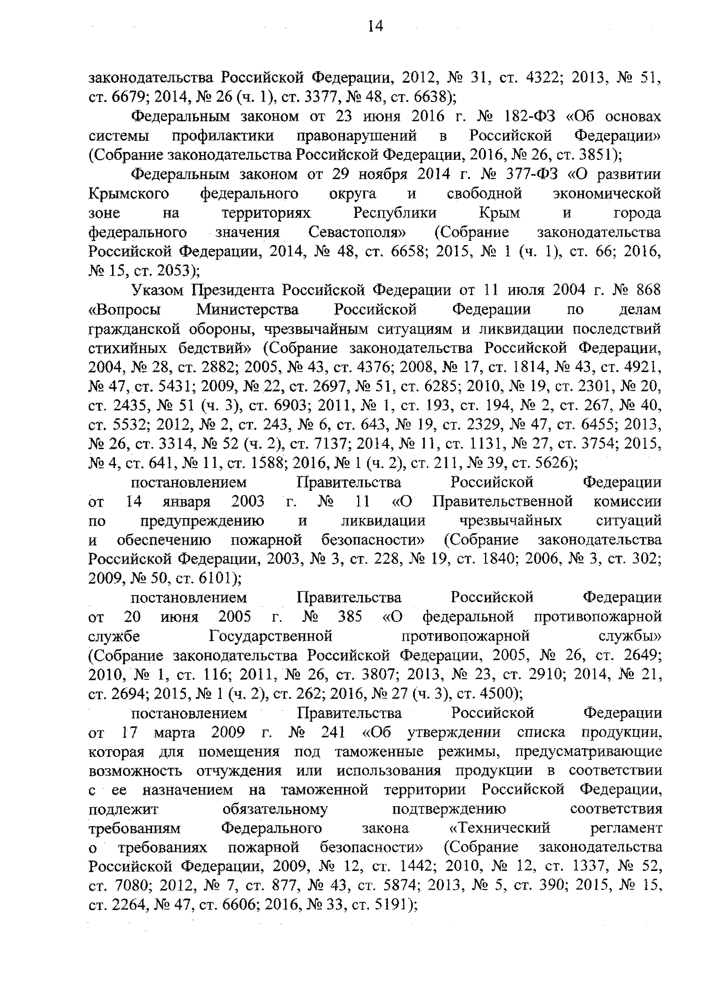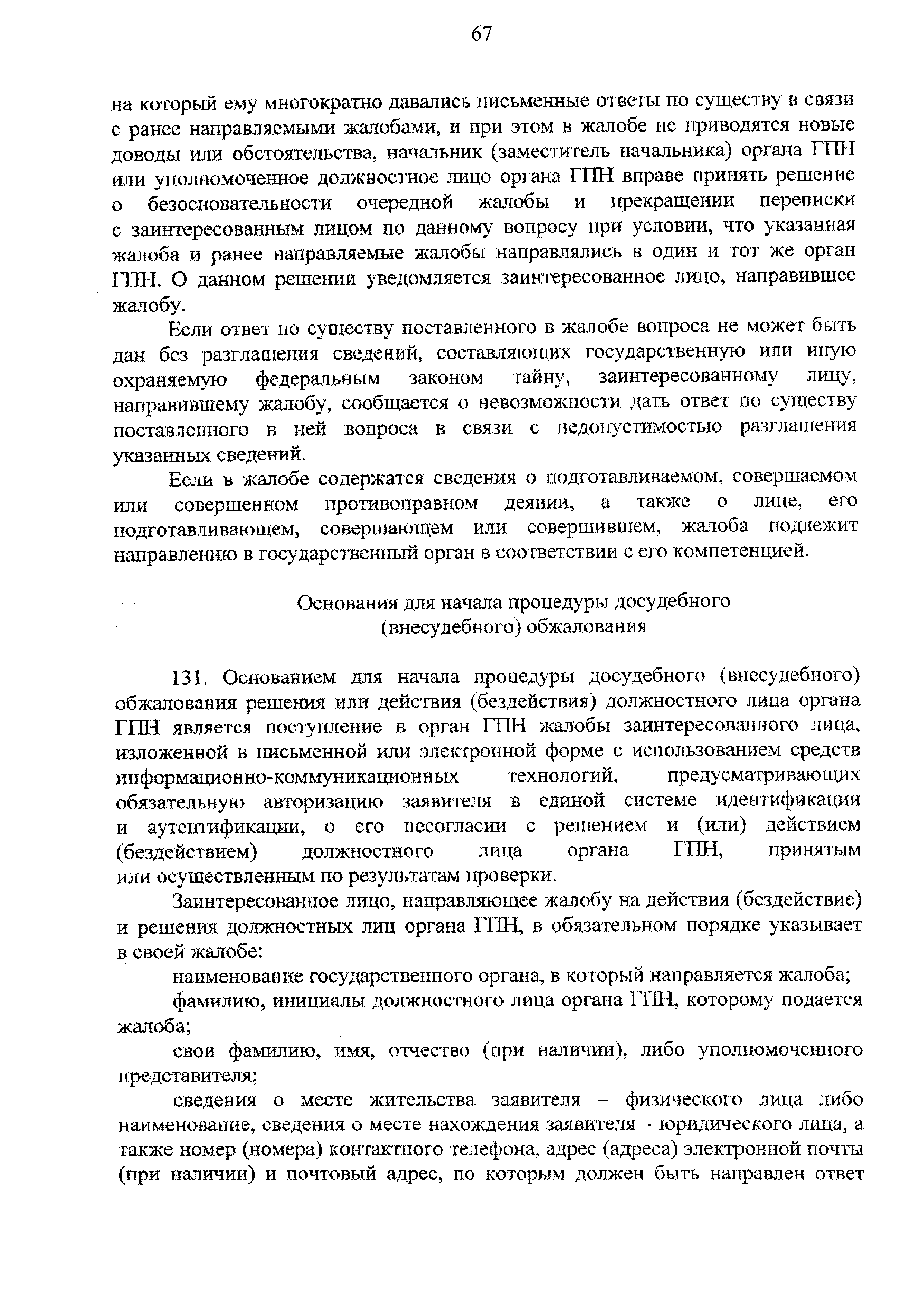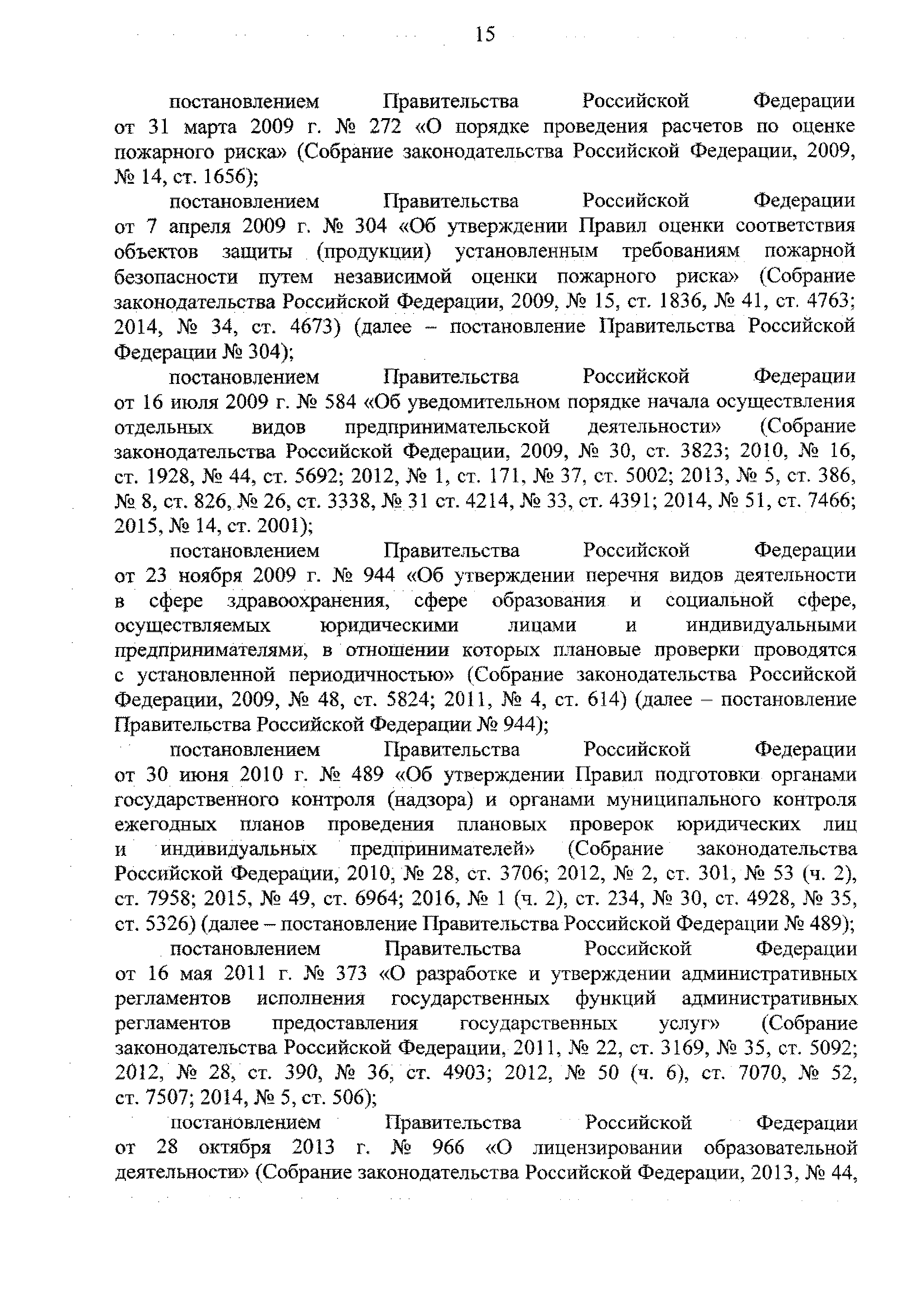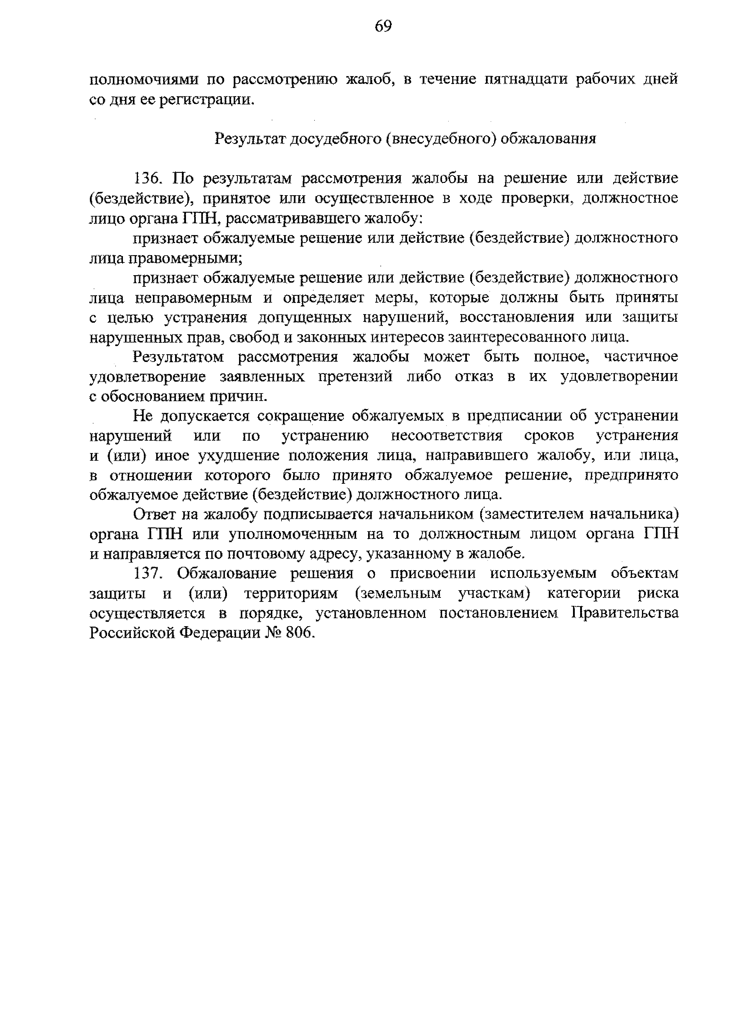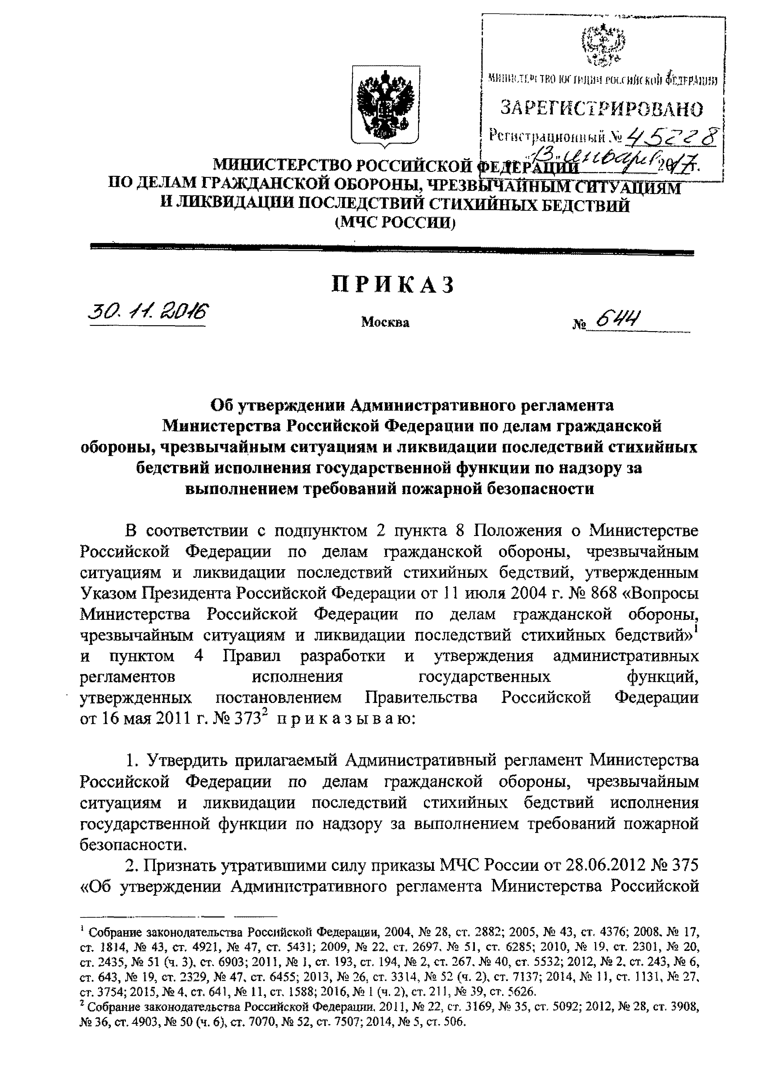 | Оглавление: | I. Общие положения II. Требования к порядку исполнения государственной функции III. Состав, последовательность и сроки выполнения административных процедур, требования к порядку их выполнения, в том числе особенности выполнения административных процедур в электронной форме IV. Порядок и формы контроля за исполнением государственной функции V. Досудебный (внесудебный) порядок обжалования решений и действий (бездействия) органа, исполняющего государственную функцию, а также его должностных лиц Приложение № 1. Сведения о местонахождении и контактных телефонах департамента надзорной деятельности и профилактической работы МЧС России, главных управлений МЧС России по субъектам Российской Федерации Приложение № 2. Учетная карточка консультации гражданина Приложение № 3. Заключение о соответствии (несоответствии) объекта защиты требованиям пожарной безопасности Приложение № 4. Журнал учета выданных заключений о соответствии (несоответствии) объекта защиты требованиям пожарной безопасности Приложение № 5. Блок-схема исполнения государственной функции Приложение № 6. Перечень объектов защиты и (или) территорий (земельных участков), которым присвоена категория риска Приложение № 7. Журнал учета объектов защиты и (или) территорий (земельных участков), органов власти Приложение № 8. Ежегодный план проведения плановых проверок объектов защиты и (или) территорий (земельных участков), правообладателями которых являются граждане, не являющиеся индивидуальными предпринимателями (за исключением объектов защиты - жилых помещений) Приложение № 9. Периодичность осуществления плановых проверок обязательных требований пожарной безопасности в зависимости от категории риска в соответствии с постановлением Правительства Российской Федерации № 806 Приложение № 10. План-график государственного инспектора по пожарному надзору осуществления государственной функции Приложение № 11. Журнал органа ГПН по учету проверок Приложение № 12. Блок-схема проведения административной процедуры плановой (внеплановой) проверки Приложение № 13. Контрольно-наблюдательное дело о противопожарном состоянии объекта защиты и (или) территории (земельного участка), (органа власти) Приложение № 14. Журнал учета дел об административных правонарушениях и представлений об устранении причин и условий, способствовавших совершению административного правонарушения Приложение № 15. Предостережение о недопустимости нарушения обязательных требований |