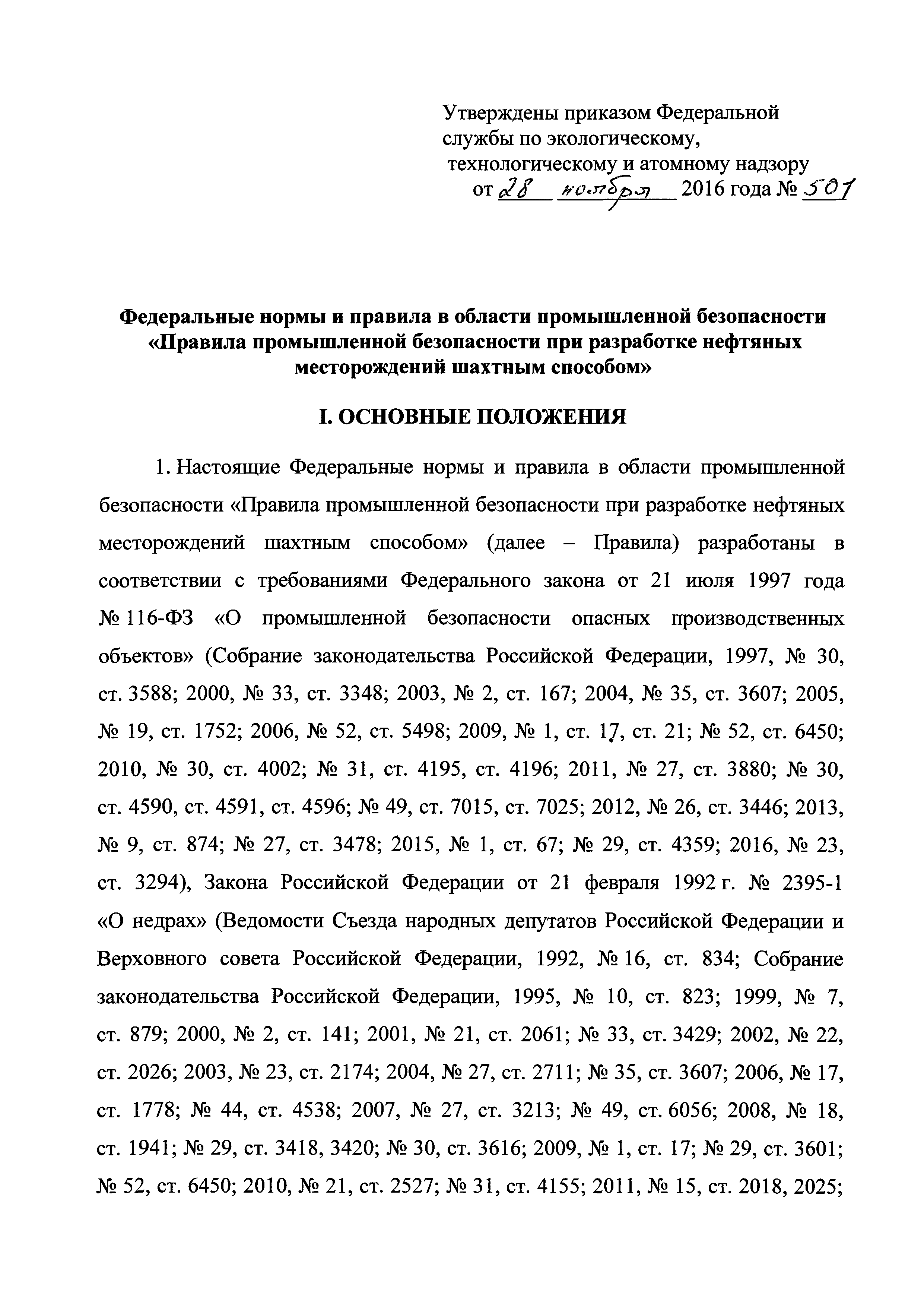 | Название рус.: | Федеральные нормы и правила в области промышленной безопасности "Правила промышленной безопасности при разработке нефтяных месторождений шахтным способом" |