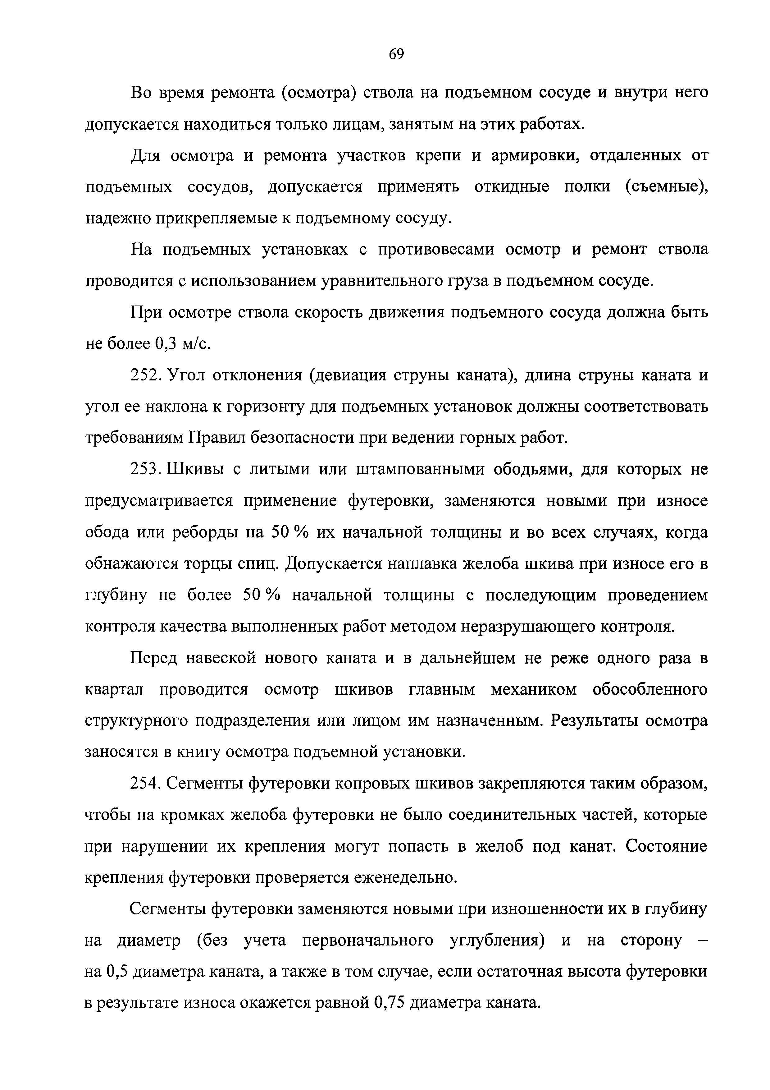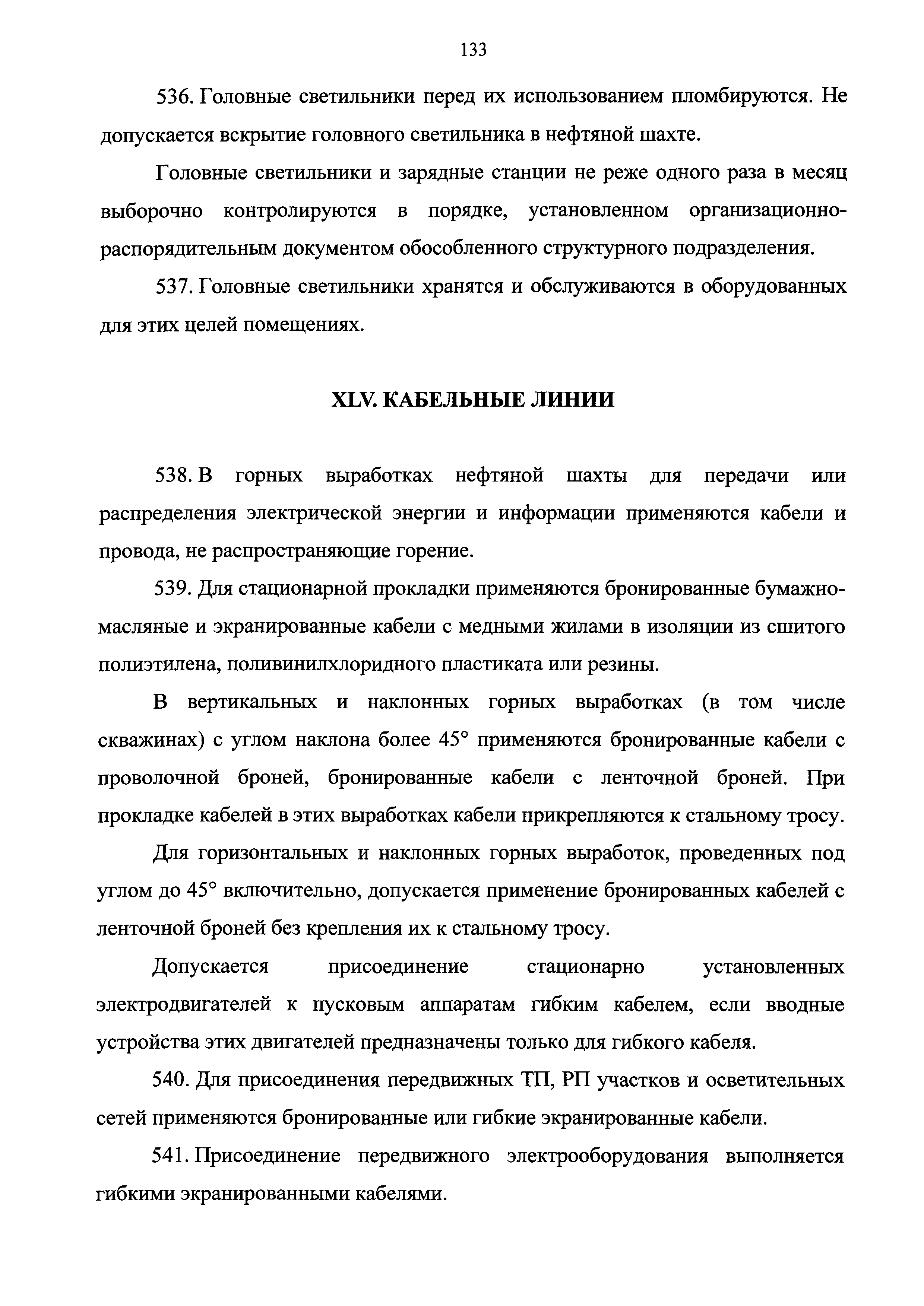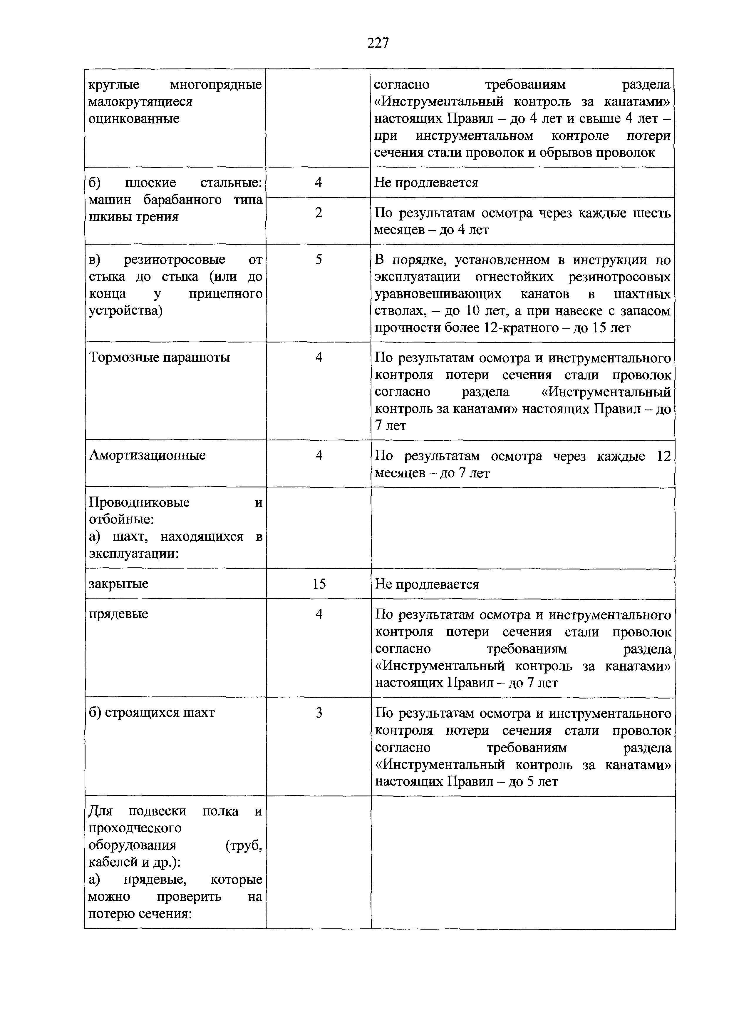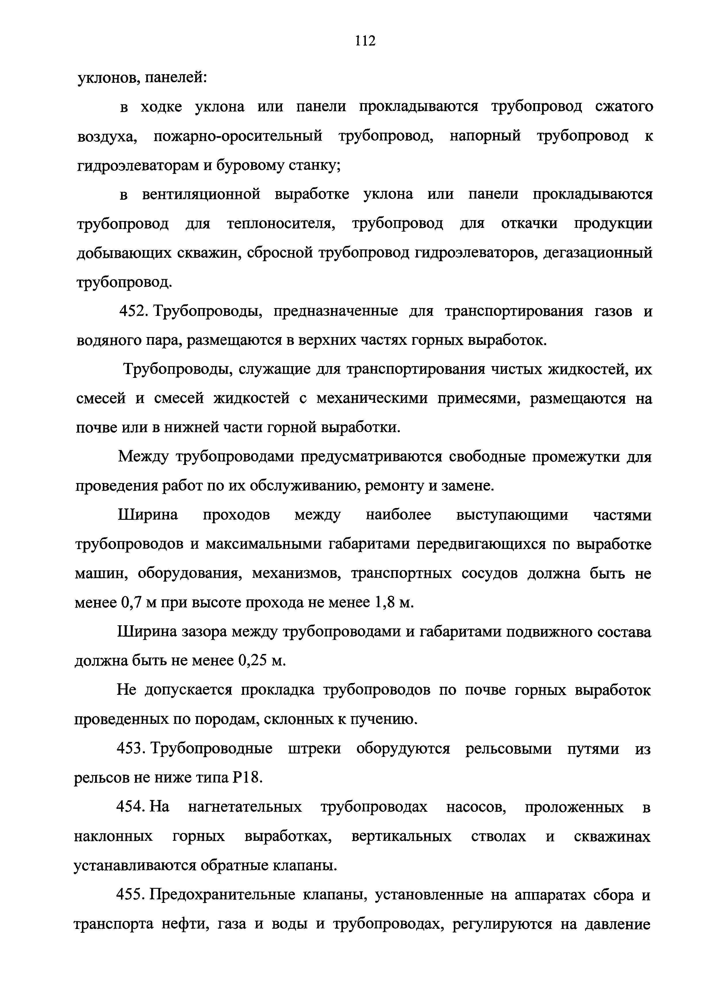 | Оглавление: | I. Основные положения II. Общие требования к организации работ III. Общие требования к документации IV. противоаварийная защита V. Требования к работникам VI. Ведение горных работ VII. Устройство выходов из горных выработок VIII. Общие требования к проведению и креплению горных выработок IX. Проведение, крепление и армирование вертикальных горных выработок X. Требования к горизонтальным и наклонным горным выработкам XI. Содержание и ремонт горных выработок XII. Предупреждение падения людей и предметов в горные выработки XIII. Ликвидация и консервация горных выработок XIV. Рудничная атмосфера и требования к нефтяным шахтам, опасным по газу XV. Вентиляционные устройства XVI. Вентиляторные установки XVII. Проветривание горных выработок XVIII. Контроль состояния рудничной атмосферы XIX. Общие требования к путевому хозяйству при перевозке людей и грузов XX. Перевозка людей и грузов по горизонтальным горным выработкам XXI. Передвижение и перевозка людей и грузов по наклонным и вертикальным горным выработкам XXII. Общие требования к канатам, прицепным и подвесным устройствам XXIII. Испытание канатов XXIV. Надзор за канатами XXV. Инструментальный контроль за канатами XXVI. Подвесные устройства подъемных сосудов XXVII. Подъемные машины и лебедки XXVIII. Общие требования к строительству, эксплуатации и ремонту скважин XXIX. Строительство подземных скважин XXX. Насосные установки XXXI. Эксплуатация и ремонт подземных скважин XXXII. Общие требования к транспорту теплоносителя, нефти, воды, попутного нефтяного газа и сжатого воздуха в горных выработках XXXIII. Материалы, используемые в горных выработках для сбора, транспорта, подготовки нефти, попутного нефтяного газа и воды XXXIV. Емкости системы сбора, транспорта и подготовка нефти и воды XXXV. Шахтные трубопроводы XXXVI. Служба по термошахтной разработке и шахтные "горячие трубопроводы" XXXVII. Система сбора и транспорта попутного нефтяного газа и газового конденсата XXXVIII. Водоотлив XXXIX. Общие требования к электротехническому хозяйству XL. Область и условия применения электрооборудования XLI. Питание электрооборудования XLII. Камеры и ниши для электрооборудования XLIII. Освещение светильниками, питаемыми от электрической сети XLIV. Освещение аккумуляторными светильниками индивидуального пользования XLV. Кабельные линии XLVI. Защита кабельных линий, электродвигателей и трансформаторов XLVII. Заземление XLVIII. Общие требования к связи и сигнализации XLIX. Сигнализация и связь на шахтном транспорте и подъеме L. Пожарная безопасность и противопожарная безопасность LI. Ведение работ в горных выработках, в которых возможны прорывы воды LII. Ведение работ в горных выработках, в которых возможны прорывы теплоносителя Приложение № 1. Термины и их определения Приложение № 2. Минимальные площади поперечных сечений горизонтальных и наклонных горных выработок в свету Приложение № 3. Ширина проходов для людей и величина зазоров между крепью, оборудованием, трубопроводами и подвижным составом Приложение № 4. Максимально допустимые концентрации оксида углерода, оксидов азота, сернистого ангидрида, сероводорода (вредных газов) и углеводородов (С1 - С10) в рудничной атмосфере горных выработок нефтяных шахт Приложение № 5. Максимально допустимые суммарные концентрации углеводородных газов и паров жидких углеводородов в рудничной атмосфере опасных по г