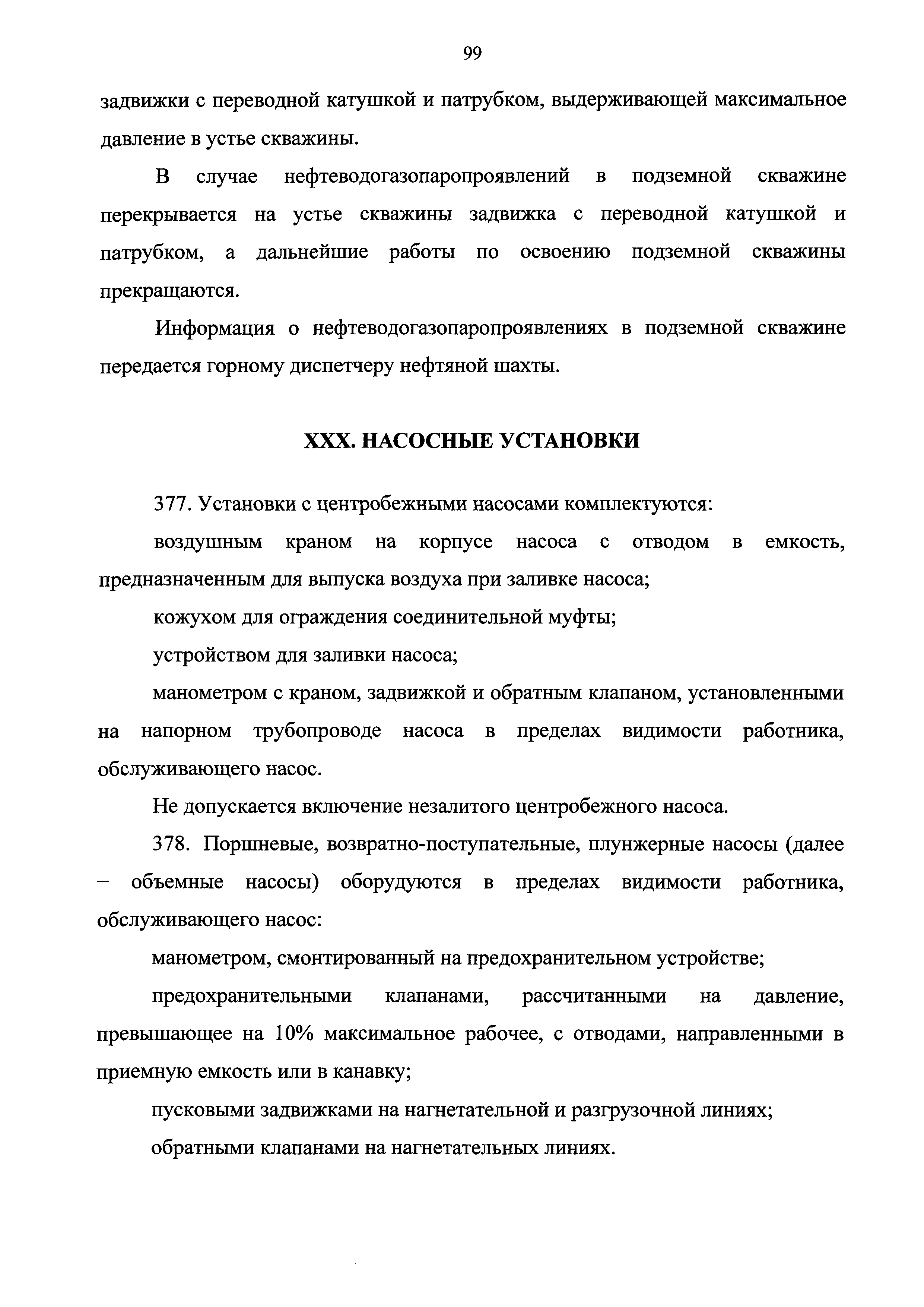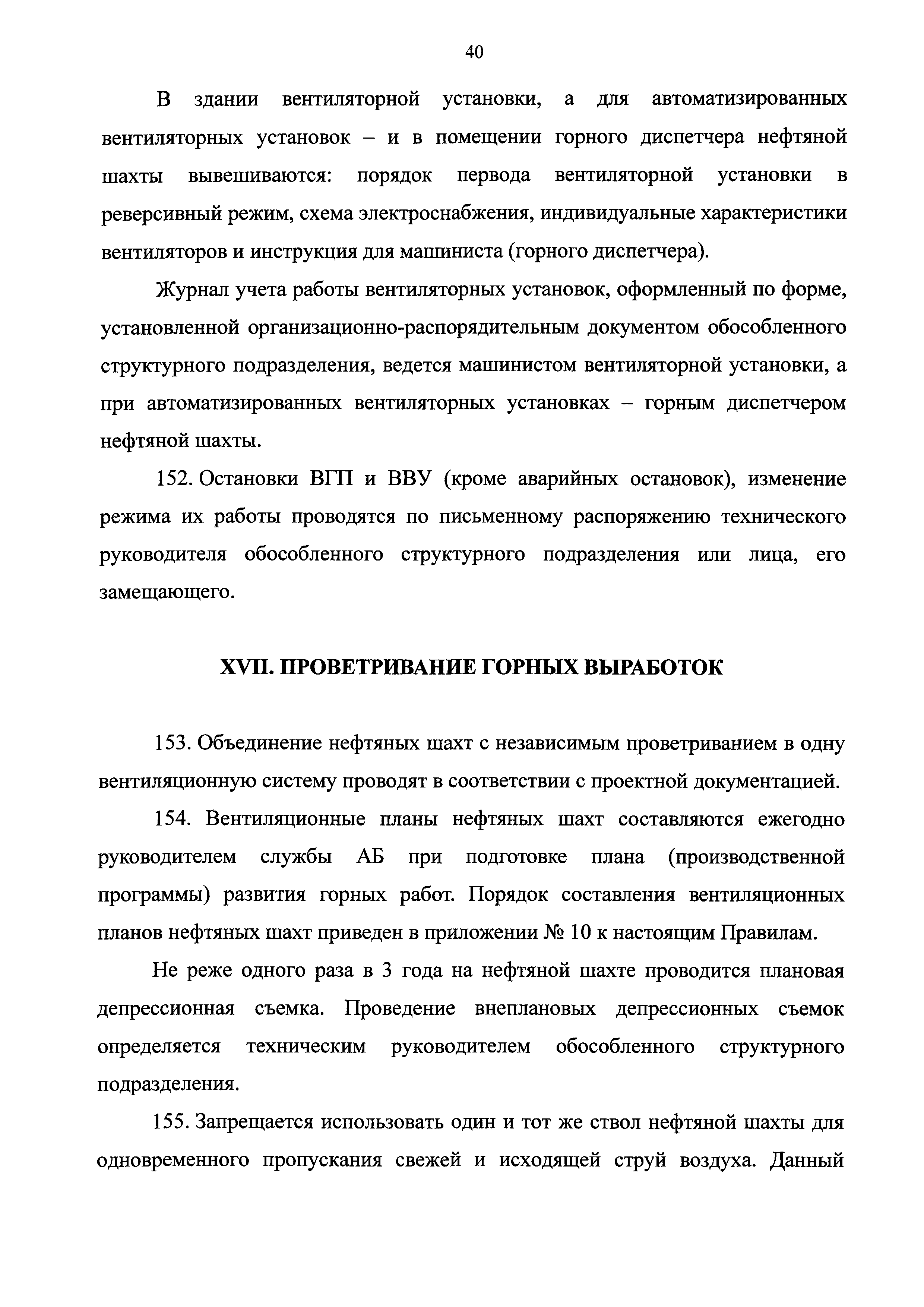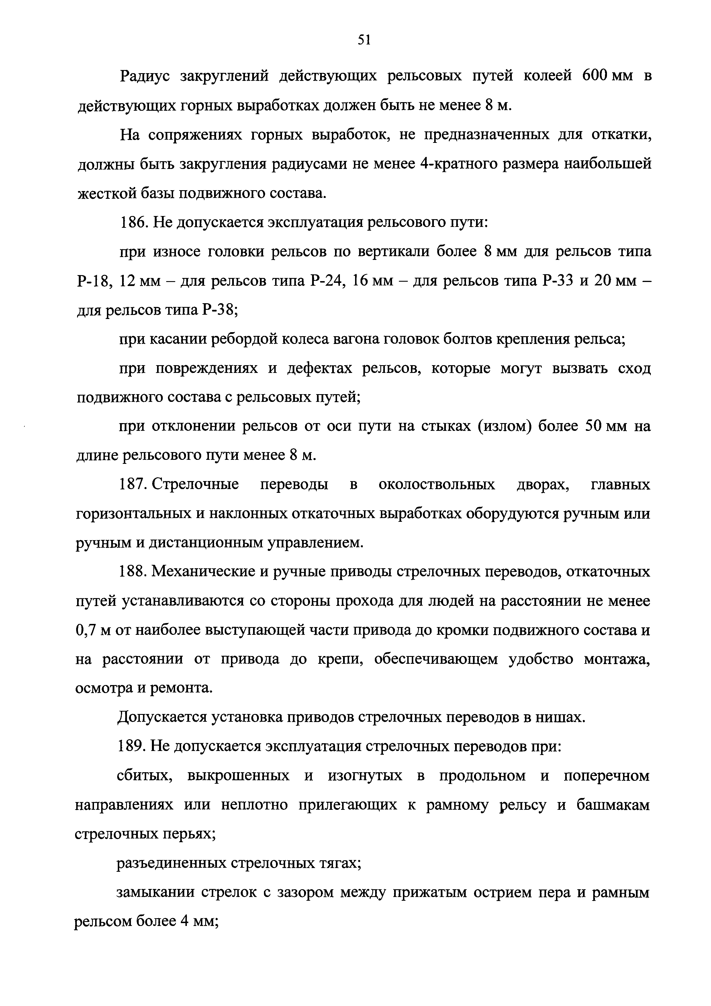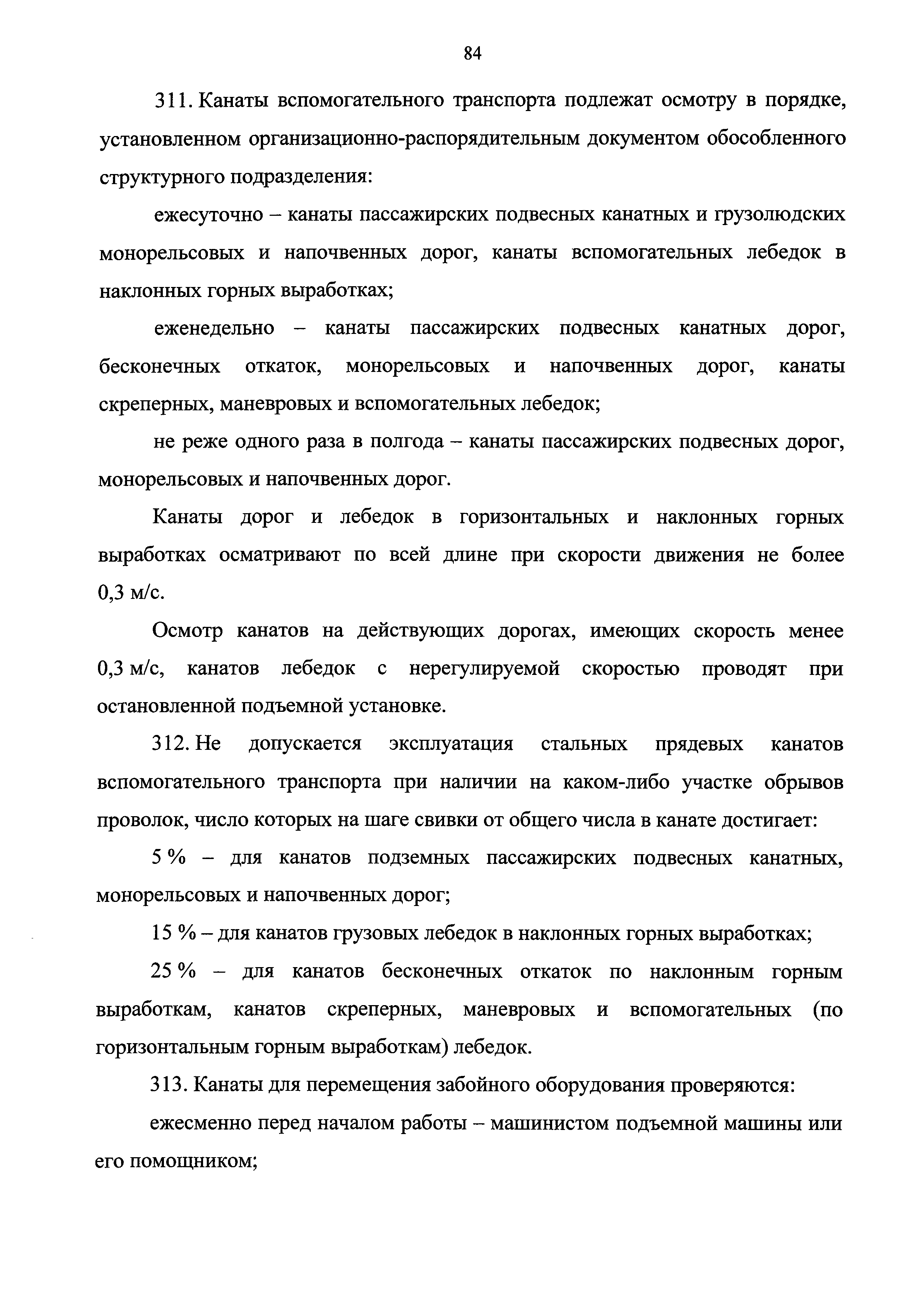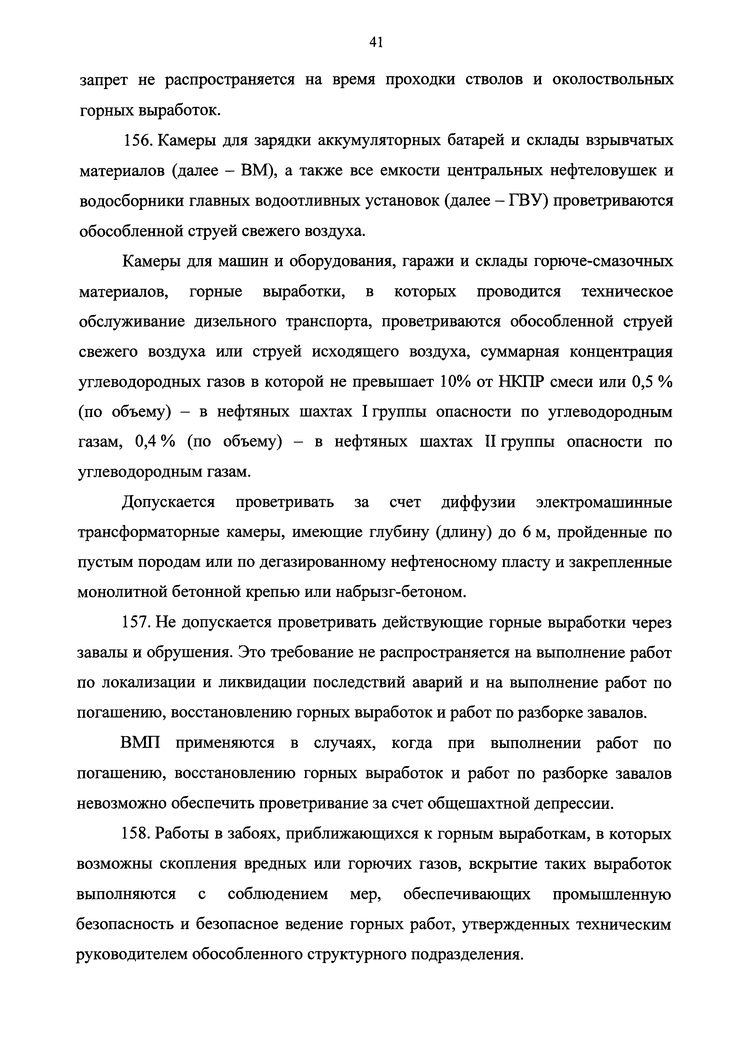 | Оглавление: | I. Основные положения II. Общие требования к организации работ III. Общие требования к документации IV. противоаварийная защита V. Требования к работникам VI. Ведение горных работ VII. Устройство выходов из горных выработок VIII. Общие требования к проведению и креплению горных выработок IX. Проведение, крепление и армирование вертикальных горных выработок X. Требования к горизонтальным и наклонным горным выработкам XI. Содержание и ремонт горных выработок XII. Предупреждение падения людей и предметов в горные выработки XIII. Ликвидация и консервация горных выработок XIV. Рудничная атмосфера и требования к нефтяным шахтам, опасным по газу XV. Вентиляционные устройства XVI. Вентиляторные установки XVII. Проветривание горных выработок XVIII. Контроль состояния рудничной атмосферы XIX. Общие требования к путевому хозяйству при перевозке людей и грузов XX. Перевозка людей и грузов по горизонтальным горным выработкам XXI. Передвижение и перевозка людей и грузов по наклонным и вертикальным горным выработкам XXII. Общие требования к канатам, прицепным и подвесным устройствам XXIII. Испытание канатов XXIV. Надзор за канатами XXV. Инструментальный контроль за канатами XXVI. Подвесные устройства подъемных сосудов XXVII. Подъемные машины и лебедки XXVIII. Общие требования к строительству, эксплуатации и ремонту скважин XXIX. Строительство подземных скважин XXX. Насосные установки XXXI. Эксплуатация и ремонт подземных скважин XXXII. Общие требования к транспорту теплоносителя, нефти, воды, попутного нефтяного газа и сжатого воздуха в горных выработках XXXIII. Материалы, используемые в горных выработках для сбора, транспорта, подготовки нефти, попутного нефтяного газа и воды XXXIV. Емкости системы сбора, транспорта и подготовка нефти и воды XXXV. Шахтные трубопроводы XXXVI. Служба по термошахтной разработке и шахтные "горячие трубопроводы" XXXVII. Система сбора и транспорта попутного нефтяного газа и газового конденсата XXXVIII. Водоотлив XXXIX. Общие требования к электротехническому хозяйству XL. Область и условия применения электрооборудования XLI. Питание электрооборудования XLII. Камеры и ниши для электрооборудования XLIII. Освещение светильниками, питаемыми от электрической сети XLIV. Освещение аккумуляторными светильниками индивидуального пользования XLV. Кабельные линии XLVI. Защита кабельных линий, электродвигателей и трансформаторов XLVII. Заземление XLVIII. Общие требования к связи и сигнализации XLIX. Сигнализация и связь на шахтном транспорте и подъеме L. Пожарная безопасность и противопожарная безопасность LI. Ведение работ в горных выработках, в которых возможны прорывы воды LII. Ведение работ в горных выработках, в которых возможны прорывы теплоносителя Приложение № 1. Термины и их определения Приложение № 2. Минимальные площади поперечных сечений горизонтальных и наклонных горных выработок в свету Приложение № 3. Ширина проходов для людей и величина зазоров между крепью, оборудованием, трубопроводами и подвижным составом Приложение № 4. Максимально допустимые концентрации оксида углерода, оксидов азота, сернистого ангидрида, сероводорода (вредных газов) и углеводородов (С1 - С10) в рудничной атмосфере горных выработок нефтяных шахт Приложение № 5. Максимально допустимые суммарные концентрации углеводородных газов и паров жидких углеводородов в рудничной атмосфере опасных по г