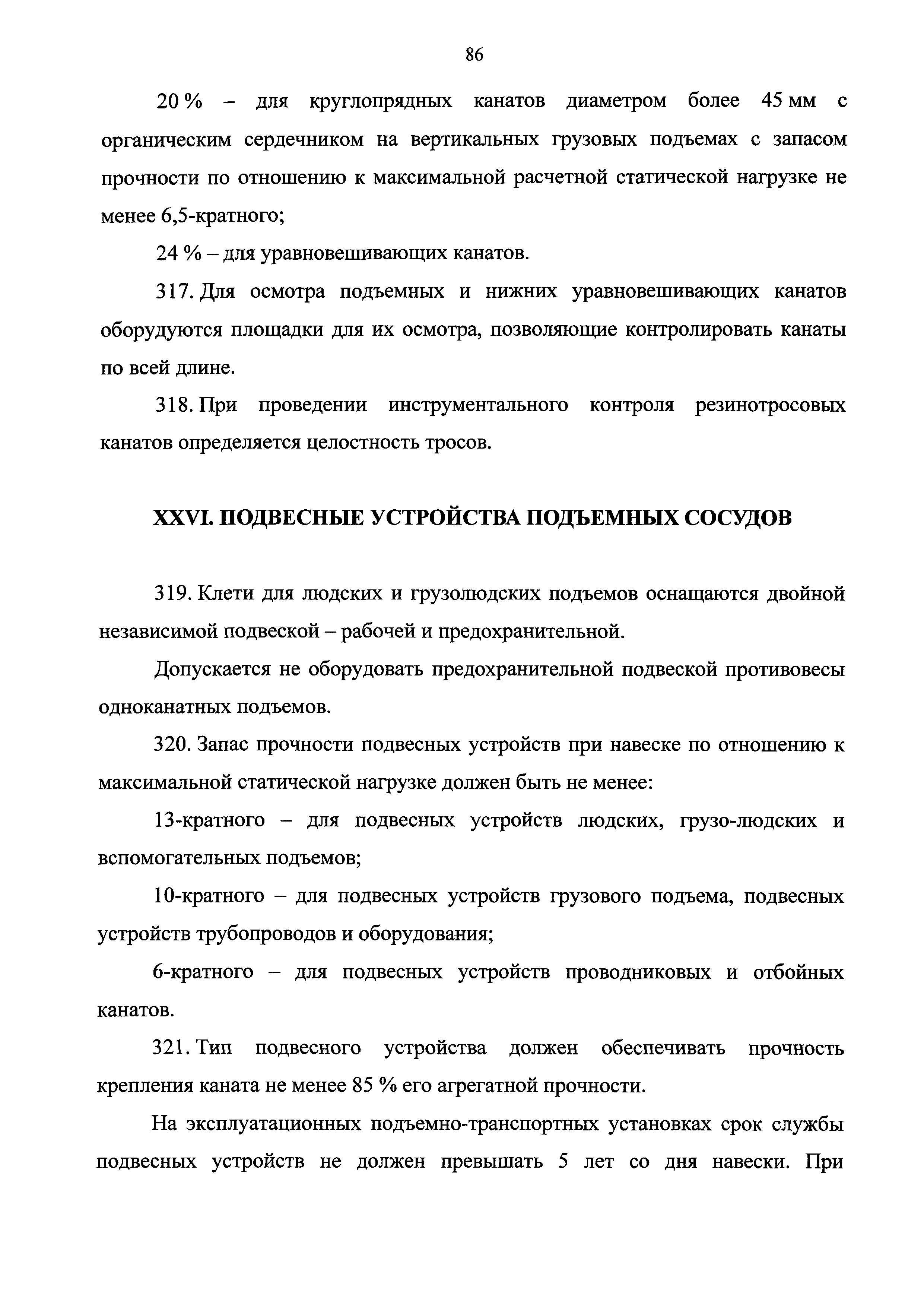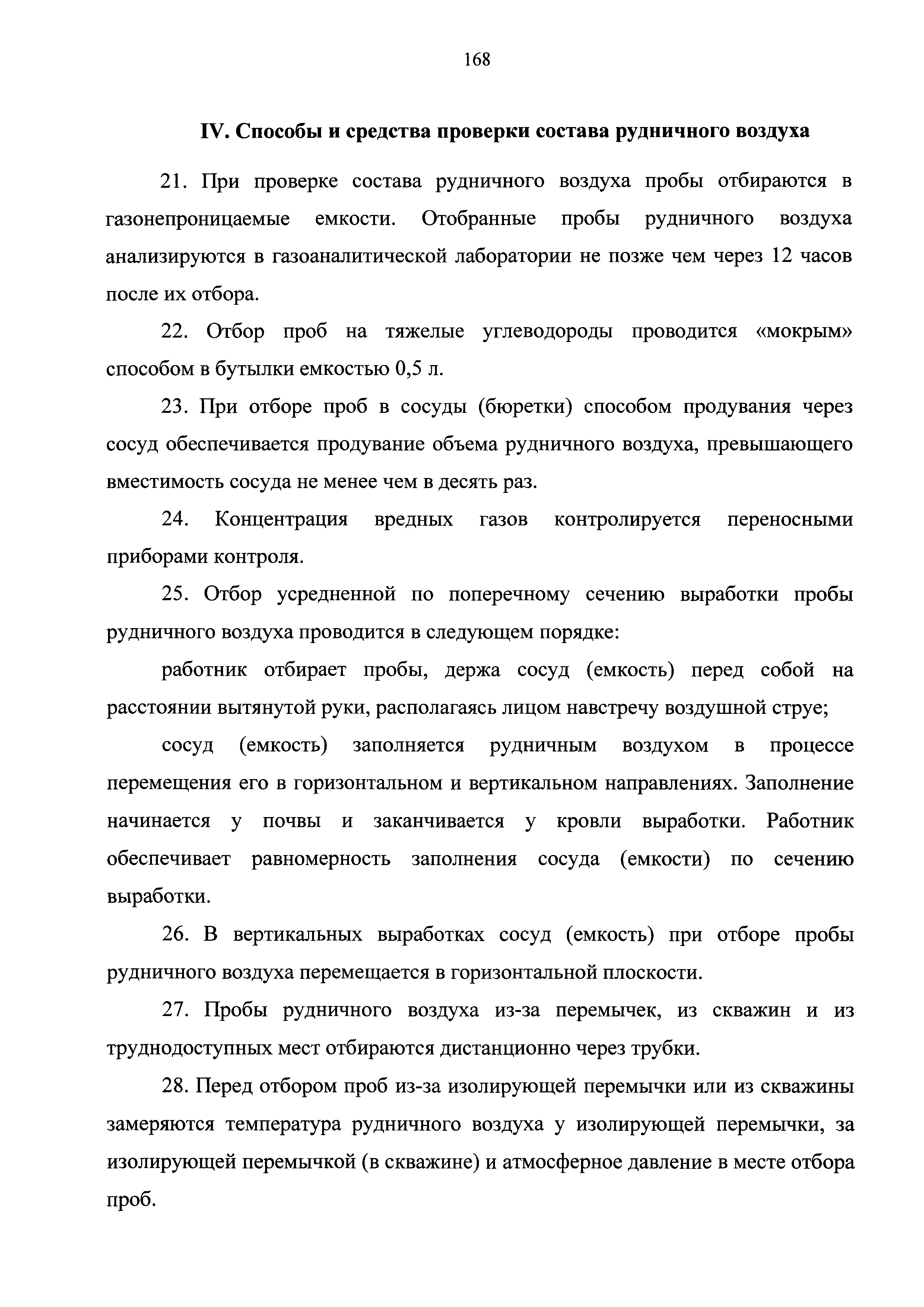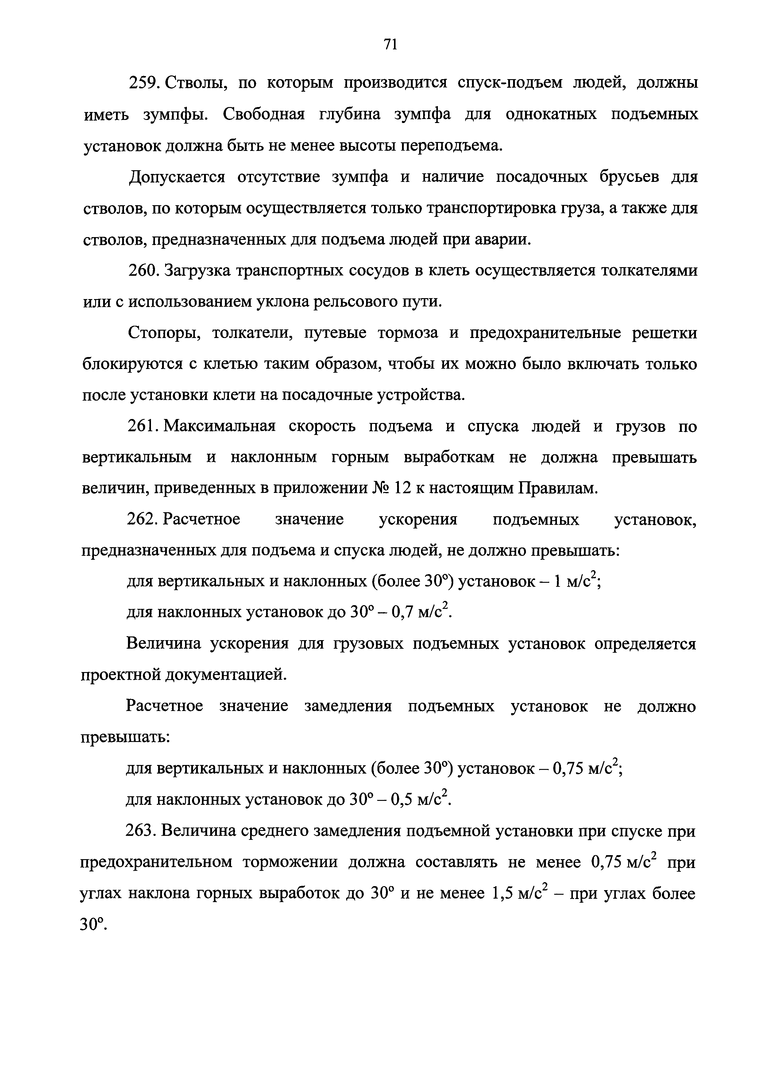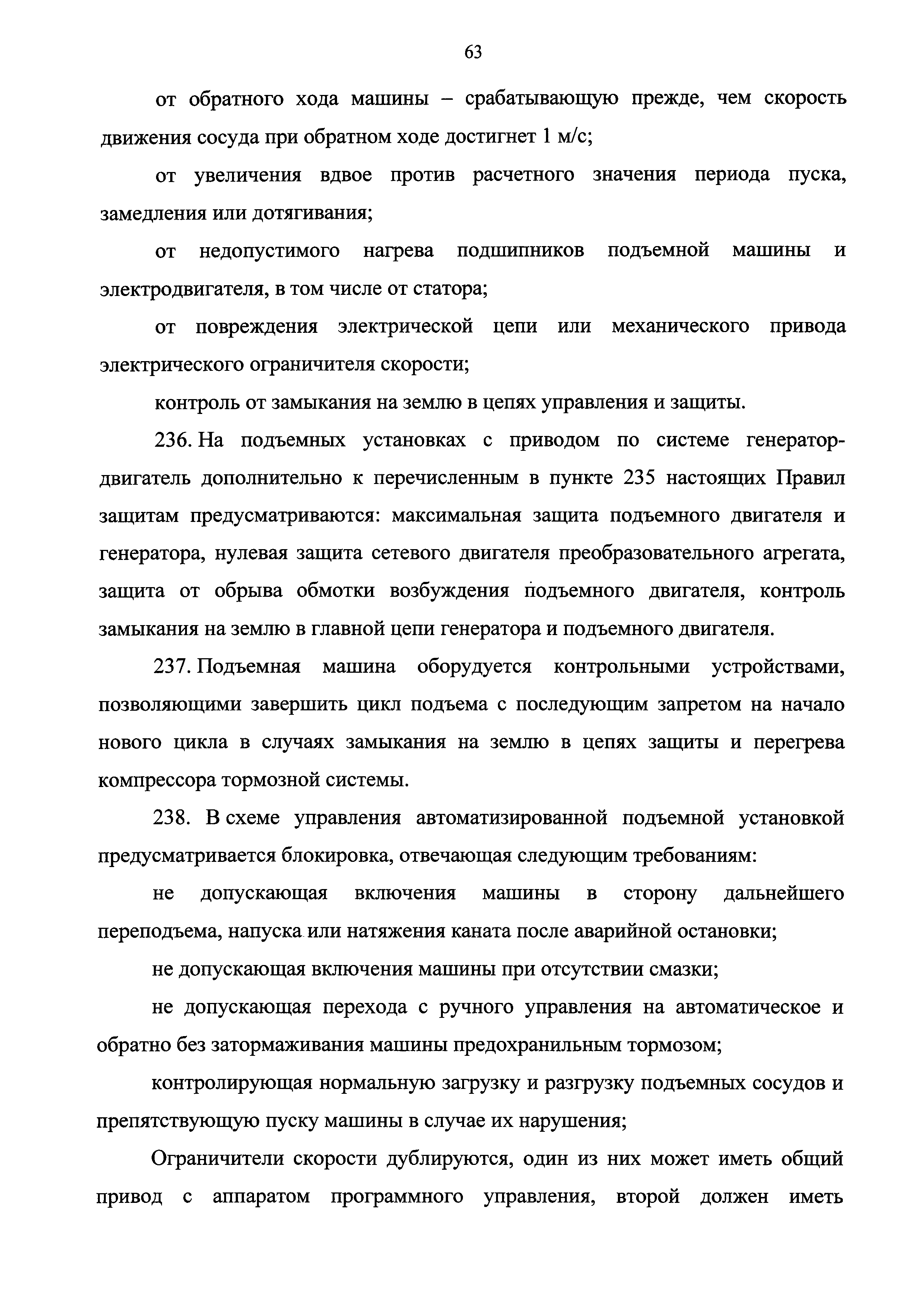 | Оглавление: | I. Основные положения II. Общие требования к организации работ III. Общие требования к документации IV. противоаварийная защита V. Требования к работникам VI. Ведение горных работ VII. Устройство выходов из горных выработок VIII. Общие требования к проведению и креплению горных выработок IX. Проведение, крепление и армирование вертикальных горных выработок X. Требования к горизонтальным и наклонным горным выработкам XI. Содержание и ремонт горных выработок XII. Предупреждение падения людей и предметов в горные выработки XIII. Ликвидация и консервация горных выработок XIV. Рудничная атмосфера и требования к нефтяным шахтам, опасным по газу XV. Вентиляционные устройства XVI. Вентиляторные установки XVII. Проветривание горных выработок XVIII. Контроль состояния рудничной атмосферы XIX. Общие требования к путевому хозяйству при перевозке людей и грузов XX. Перевозка людей и грузов по горизонтальным горным выработкам XXI. Передвижение и перевозка людей и грузов по наклонным и вертикальным горным выработкам XXII. Общие требования к канатам, прицепным и подвесным устройствам XXIII. Испытание канатов XXIV. Надзор за канатами XXV. Инструментальный контроль за канатами XXVI. Подвесные устройства подъемных сосудов XXVII. Подъемные машины и лебедки XXVIII. Общие требования к строительству, эксплуатации и ремонту скважин XXIX. Строительство подземных скважин XXX. Насосные установки XXXI. Эксплуатация и ремонт подземных скважин XXXII. Общие требования к транспорту теплоносителя, нефти, воды, попутного нефтяного газа и сжатого воздуха в горных выработках XXXIII. Материалы, используемые в горных выработках для сбора, транспорта, подготовки нефти, попутного нефтяного газа и воды XXXIV. Емкости системы сбора, транспорта и подготовка нефти и воды XXXV. Шахтные трубопроводы XXXVI. Служба по термошахтной разработке и шахтные "горячие трубопроводы" XXXVII. Система сбора и транспорта попутного нефтяного газа и газового конденсата XXXVIII. Водоотлив XXXIX. Общие требования к электротехническому хозяйству XL. Область и условия применения электрооборудования XLI. Питание электрооборудования XLII. Камеры и ниши для электрооборудования XLIII. Освещение светильниками, питаемыми от электрической сети XLIV. Освещение аккумуляторными светильниками индивидуального пользования XLV. Кабельные линии XLVI. Защита кабельных линий, электродвигателей и трансформаторов XLVII. Заземление XLVIII. Общие требования к связи и сигнализации XLIX. Сигнализация и связь на шахтном транспорте и подъеме L. Пожарная безопасность и противопожарная безопасность LI. Ведение работ в горных выработках, в которых возможны прорывы воды LII. Ведение работ в горных выработках, в которых возможны прорывы теплоносителя Приложение № 1. Термины и их определения Приложение № 2. Минимальные площади поперечных сечений горизонтальных и наклонных горных выработок в свету Приложение № 3. Ширина проходов для людей и величина зазоров между крепью, оборудованием, трубопроводами и подвижным составом Приложение № 4. Максимально допустимые концентрации оксида углерода, оксидов азота, сернистого ангидрида, сероводорода (вредных газов) и углеводородов (С1 - С10) в рудничной атмосфере горных выработок нефтяных шахт Приложение № 5. Максимально допустимые суммарные концентрации углеводородных газов и паров жидких углеводородов в рудничной атмосфере опасных по г