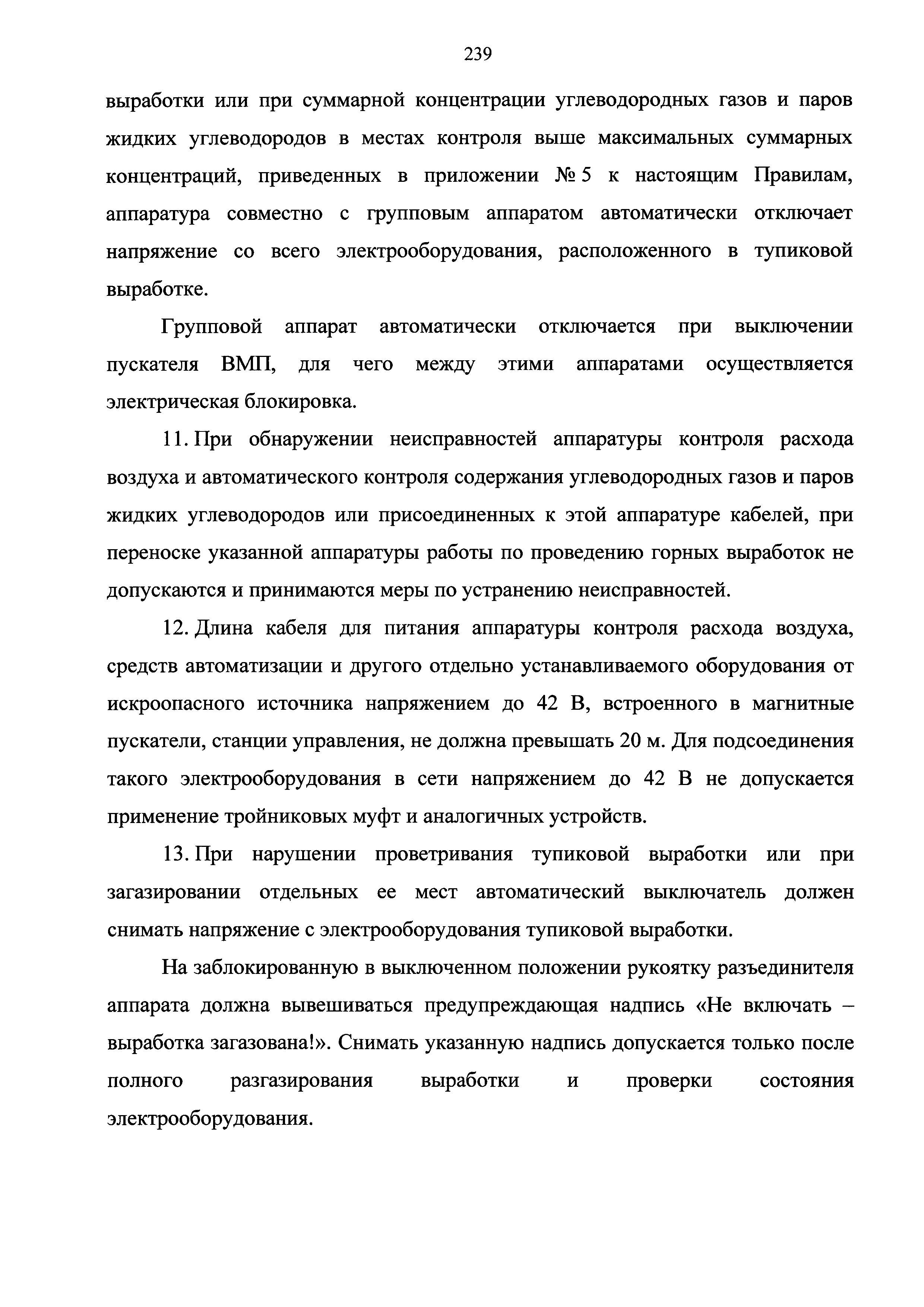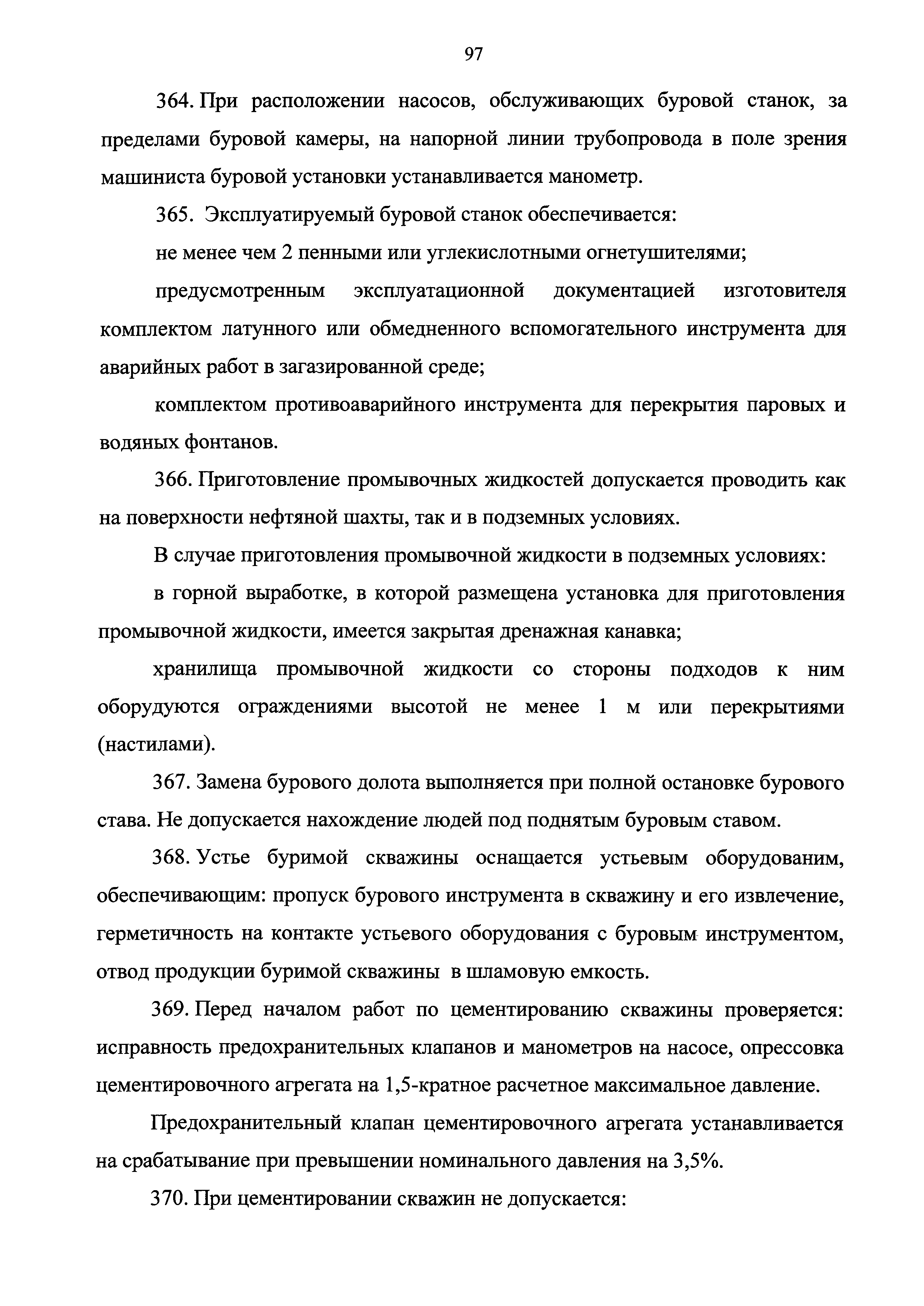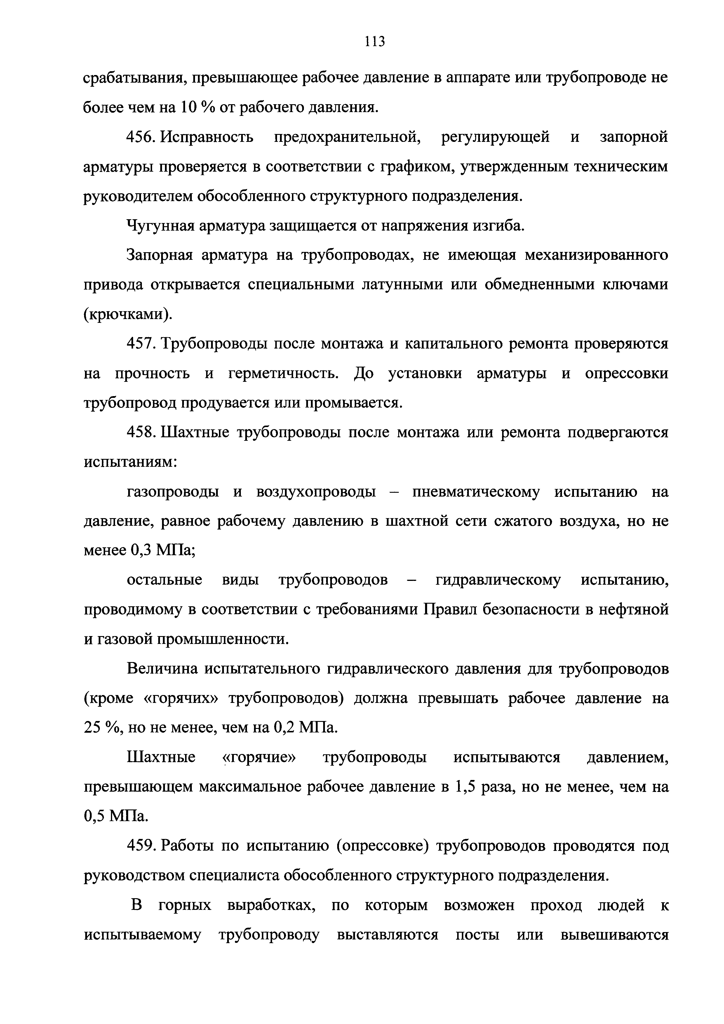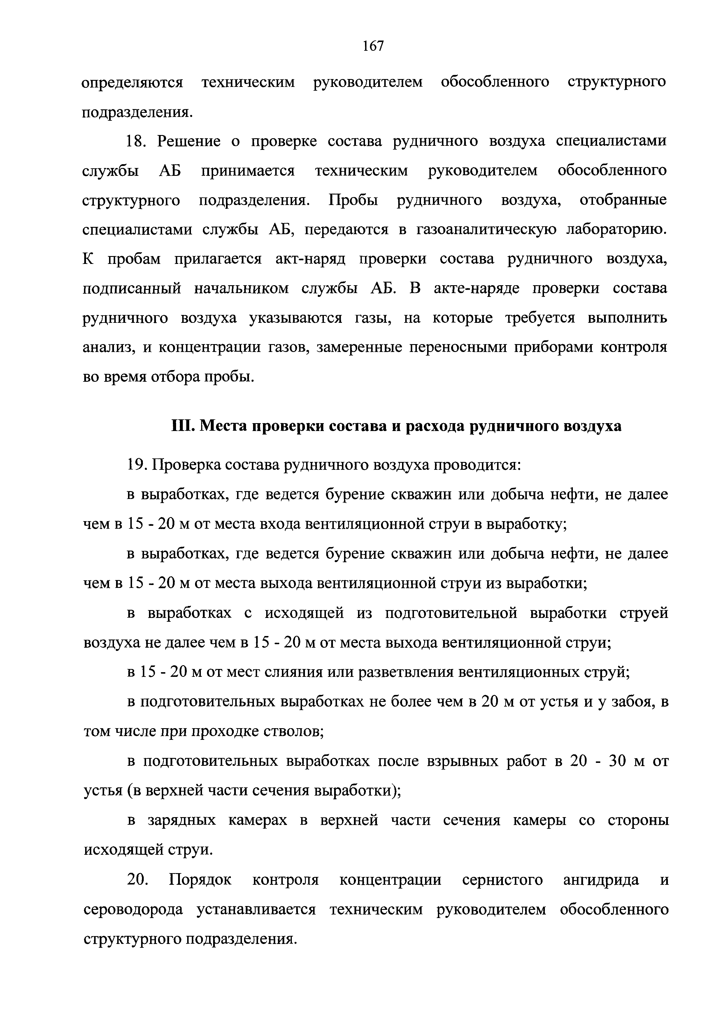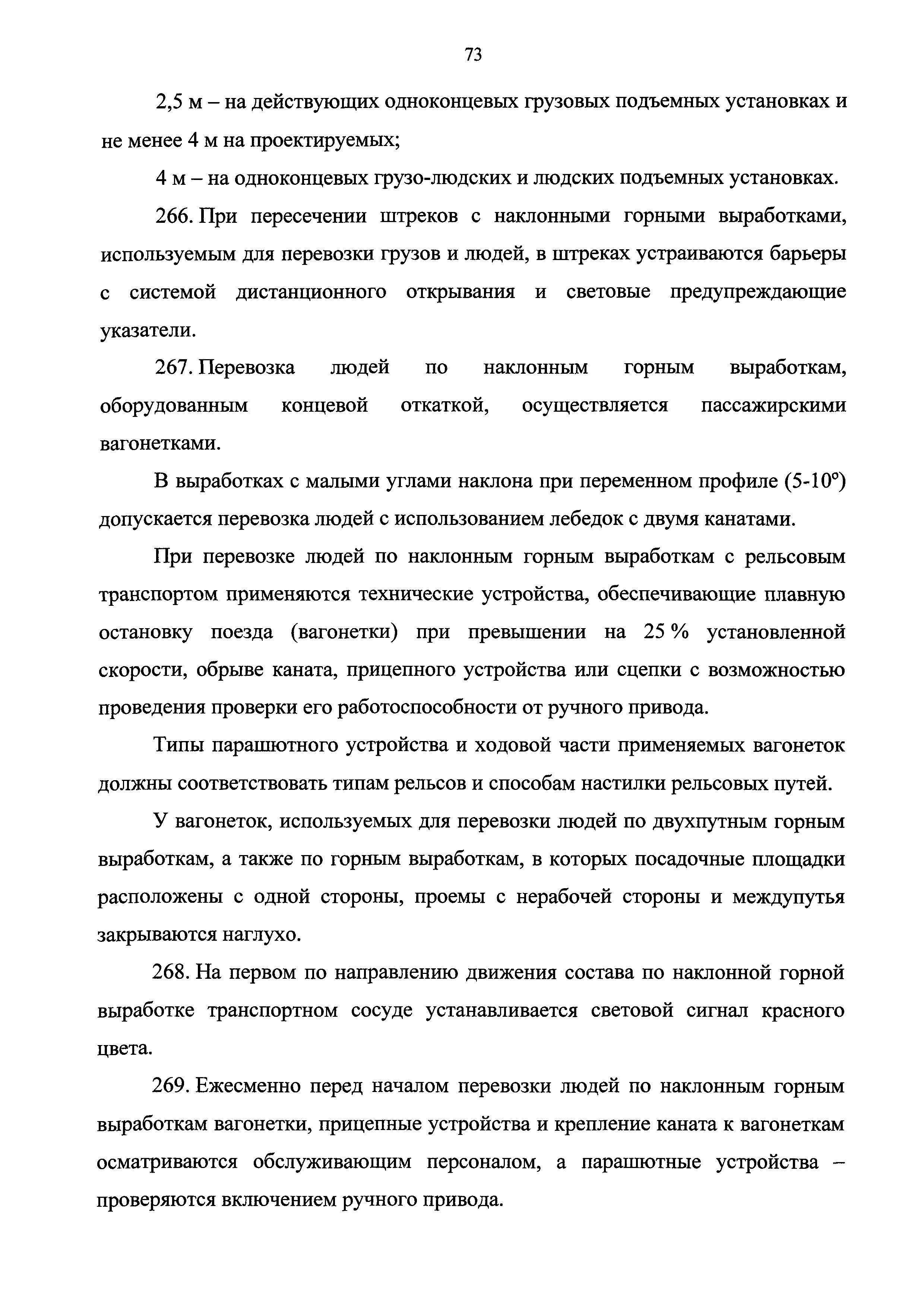 | Оглавление: | I. Основные положения II. Общие требования к организации работ III. Общие требования к документации IV. противоаварийная защита V. Требования к работникам VI. Ведение горных работ VII. Устройство выходов из горных выработок VIII. Общие требования к проведению и креплению горных выработок IX. Проведение, крепление и армирование вертикальных горных выработок X. Требования к горизонтальным и наклонным горным выработкам XI. Содержание и ремонт горных выработок XII. Предупреждение падения людей и предметов в горные выработки XIII. Ликвидация и консервация горных выработок XIV. Рудничная атмосфера и требования к нефтяным шахтам, опасным по газу XV. Вентиляционные устройства XVI. Вентиляторные установки XVII. Проветривание горных выработок XVIII. Контроль состояния рудничной атмосферы XIX. Общие требования к путевому хозяйству при перевозке людей и грузов XX. Перевозка людей и грузов по горизонтальным горным выработкам XXI. Передвижение и перевозка людей и грузов по наклонным и вертикальным горным выработкам XXII. Общие требования к канатам, прицепным и подвесным устройствам XXIII. Испытание канатов XXIV. Надзор за канатами XXV. Инструментальный контроль за канатами XXVI. Подвесные устройства подъемных сосудов XXVII. Подъемные машины и лебедки XXVIII. Общие требования к строительству, эксплуатации и ремонту скважин XXIX. Строительство подземных скважин XXX. Насосные установки XXXI. Эксплуатация и ремонт подземных скважин XXXII. Общие требования к транспорту теплоносителя, нефти, воды, попутного нефтяного газа и сжатого воздуха в горных выработках XXXIII. Материалы, используемые в горных выработках для сбора, транспорта, подготовки нефти, попутного нефтяного газа и воды XXXIV. Емкости системы сбора, транспорта и подготовка нефти и воды XXXV. Шахтные трубопроводы XXXVI. Служба по термошахтной разработке и шахтные "горячие трубопроводы" XXXVII. Система сбора и транспорта попутного нефтяного газа и газового конденсата XXXVIII. Водоотлив XXXIX. Общие требования к электротехническому хозяйству XL. Область и условия применения электрооборудования XLI. Питание электрооборудования XLII. Камеры и ниши для электрооборудования XLIII. Освещение светильниками, питаемыми от электрической сети XLIV. Освещение аккумуляторными светильниками индивидуального пользования XLV. Кабельные линии XLVI. Защита кабельных линий, электродвигателей и трансформаторов XLVII. Заземление XLVIII. Общие требования к связи и сигнализации XLIX. Сигнализация и связь на шахтном транспорте и подъеме L. Пожарная безопасность и противопожарная безопасность LI. Ведение работ в горных выработках, в которых возможны прорывы воды LII. Ведение работ в горных выработках, в которых возможны прорывы теплоносителя Приложение № 1. Термины и их определения Приложение № 2. Минимальные площади поперечных сечений горизонтальных и наклонных горных выработок в свету Приложение № 3. Ширина проходов для людей и величина зазоров между крепью, оборудованием, трубопроводами и подвижным составом Приложение № 4. Максимально допустимые концентрации оксида углерода, оксидов азота, сернистого ангидрида, сероводорода (вредных газов) и углеводородов (С1 - С10) в рудничной атмосфере горных выработок нефтяных шахт Приложение № 5. Максимально допустимые суммарные концентрации углеводородных газов и паров жидких углеводородов в рудничной атмосфере опасных по г