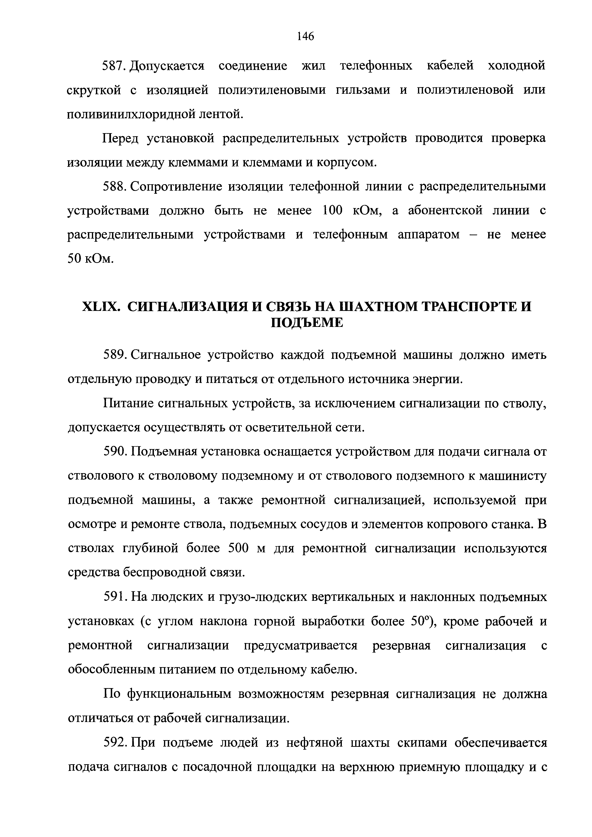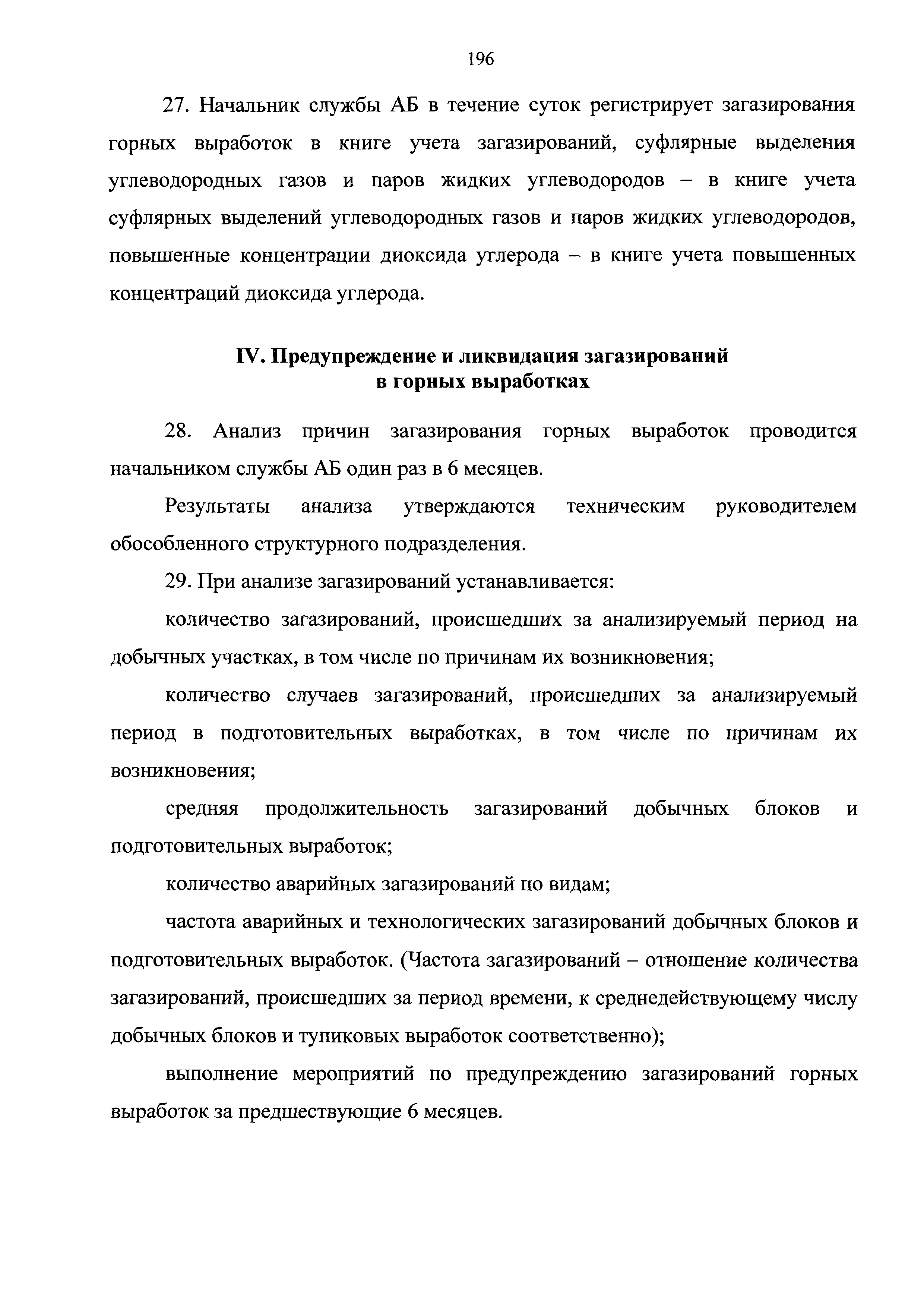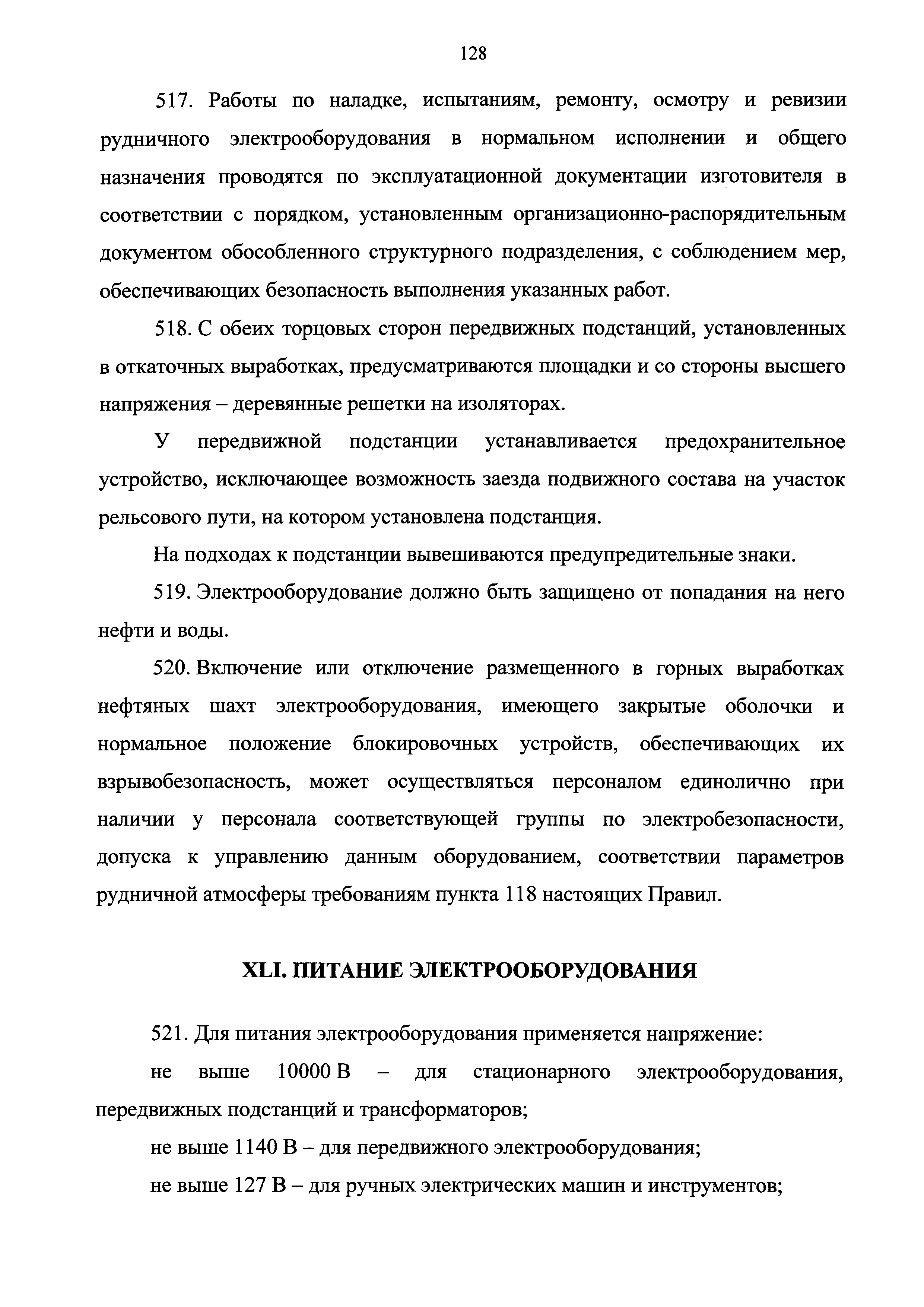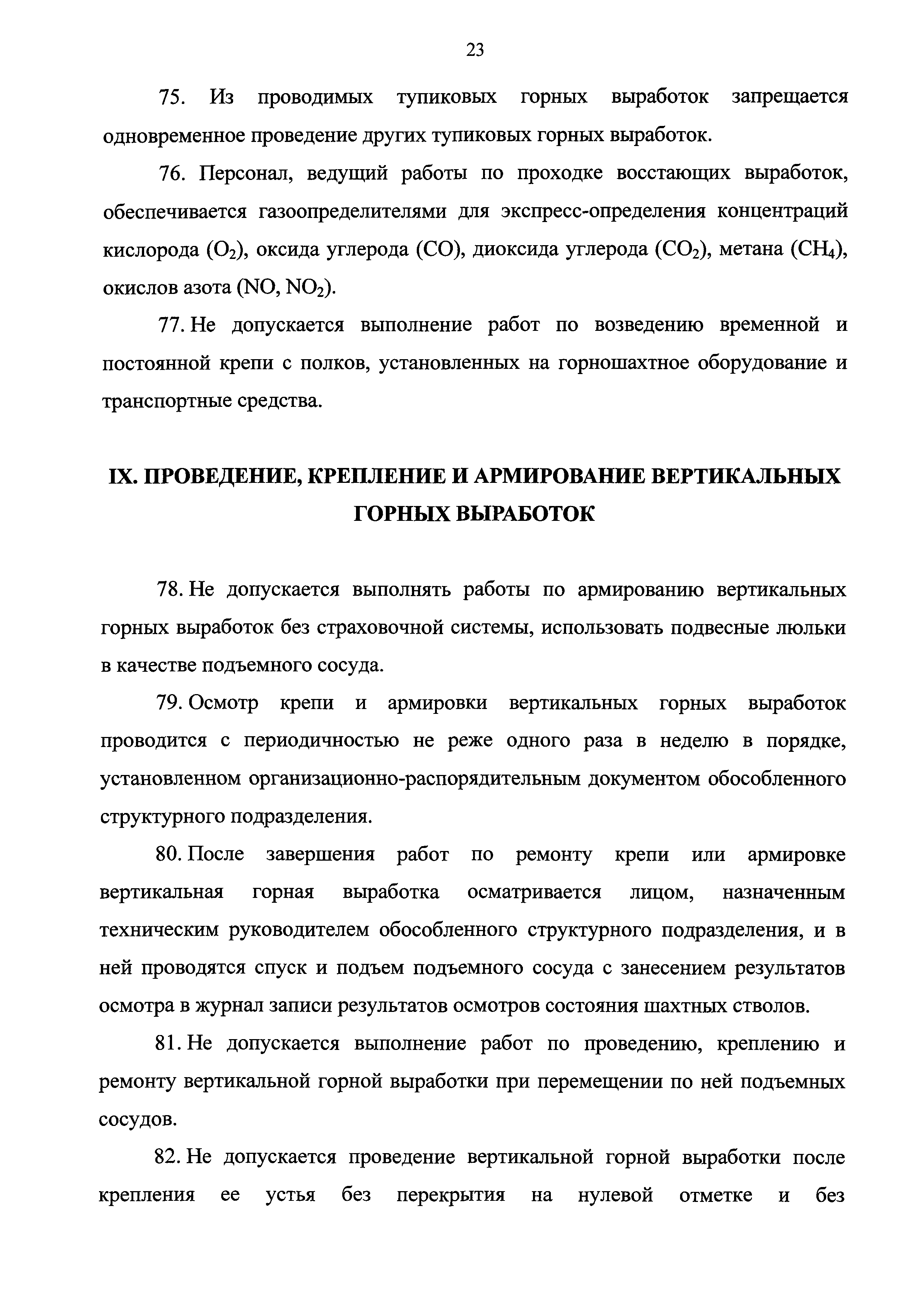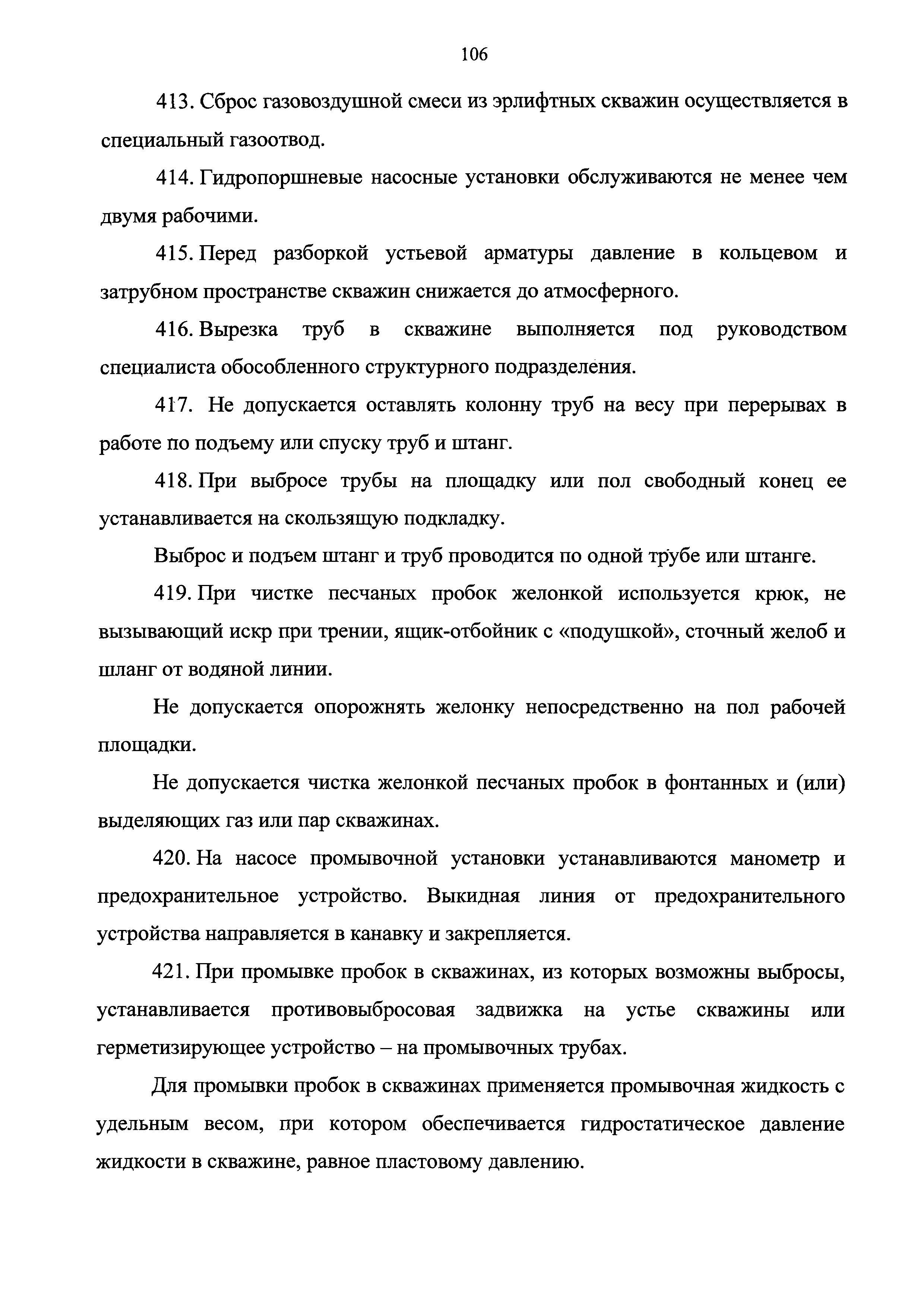 | Оглавление: | I. Основные положения II. Общие требования к организации работ III. Общие требования к документации IV. противоаварийная защита V. Требования к работникам VI. Ведение горных работ VII. Устройство выходов из горных выработок VIII. Общие требования к проведению и креплению горных выработок IX. Проведение, крепление и армирование вертикальных горных выработок X. Требования к горизонтальным и наклонным горным выработкам XI. Содержание и ремонт горных выработок XII. Предупреждение падения людей и предметов в горные выработки XIII. Ликвидация и консервация горных выработок XIV. Рудничная атмосфера и требования к нефтяным шахтам, опасным по газу XV. Вентиляционные устройства XVI. Вентиляторные установки XVII. Проветривание горных выработок XVIII. Контроль состояния рудничной атмосферы XIX. Общие требования к путевому хозяйству при перевозке людей и грузов XX. Перевозка людей и грузов по горизонтальным горным выработкам XXI. Передвижение и перевозка людей и грузов по наклонным и вертикальным горным выработкам XXII. Общие требования к канатам, прицепным и подвесным устройствам XXIII. Испытание канатов XXIV. Надзор за канатами XXV. Инструментальный контроль за канатами XXVI. Подвесные устройства подъемных сосудов XXVII. Подъемные машины и лебедки XXVIII. Общие требования к строительству, эксплуатации и ремонту скважин XXIX. Строительство подземных скважин XXX. Насосные установки XXXI. Эксплуатация и ремонт подземных скважин XXXII. Общие требования к транспорту теплоносителя, нефти, воды, попутного нефтяного газа и сжатого воздуха в горных выработках XXXIII. Материалы, используемые в горных выработках для сбора, транспорта, подготовки нефти, попутного нефтяного газа и воды XXXIV. Емкости системы сбора, транспорта и подготовка нефти и воды XXXV. Шахтные трубопроводы XXXVI. Служба по термошахтной разработке и шахтные "горячие трубопроводы" XXXVII. Система сбора и транспорта попутного нефтяного газа и газового конденсата XXXVIII. Водоотлив XXXIX. Общие требования к электротехническому хозяйству XL. Область и условия применения электрооборудования XLI. Питание электрооборудования XLII. Камеры и ниши для электрооборудования XLIII. Освещение светильниками, питаемыми от электрической сети XLIV. Освещение аккумуляторными светильниками индивидуального пользования XLV. Кабельные линии XLVI. Защита кабельных линий, электродвигателей и трансформаторов XLVII. Заземление XLVIII. Общие требования к связи и сигнализации XLIX. Сигнализация и связь на шахтном транспорте и подъеме L. Пожарная безопасность и противопожарная безопасность LI. Ведение работ в горных выработках, в которых возможны прорывы воды LII. Ведение работ в горных выработках, в которых возможны прорывы теплоносителя Приложение № 1. Термины и их определения Приложение № 2. Минимальные площади поперечных сечений горизонтальных и наклонных горных выработок в свету Приложение № 3. Ширина проходов для людей и величина зазоров между крепью, оборудованием, трубопроводами и подвижным составом Приложение № 4. Максимально допустимые концентрации оксида углерода, оксидов азота, сернистого ангидрида, сероводорода (вредных газов) и углеводородов (С1 - С10) в рудничной атмосфере горных выработок нефтяных шахт Приложение № 5. Максимально допустимые суммарные концентрации углеводородных газов и паров жидких углеводородов в рудничной атмосфере опасных по г