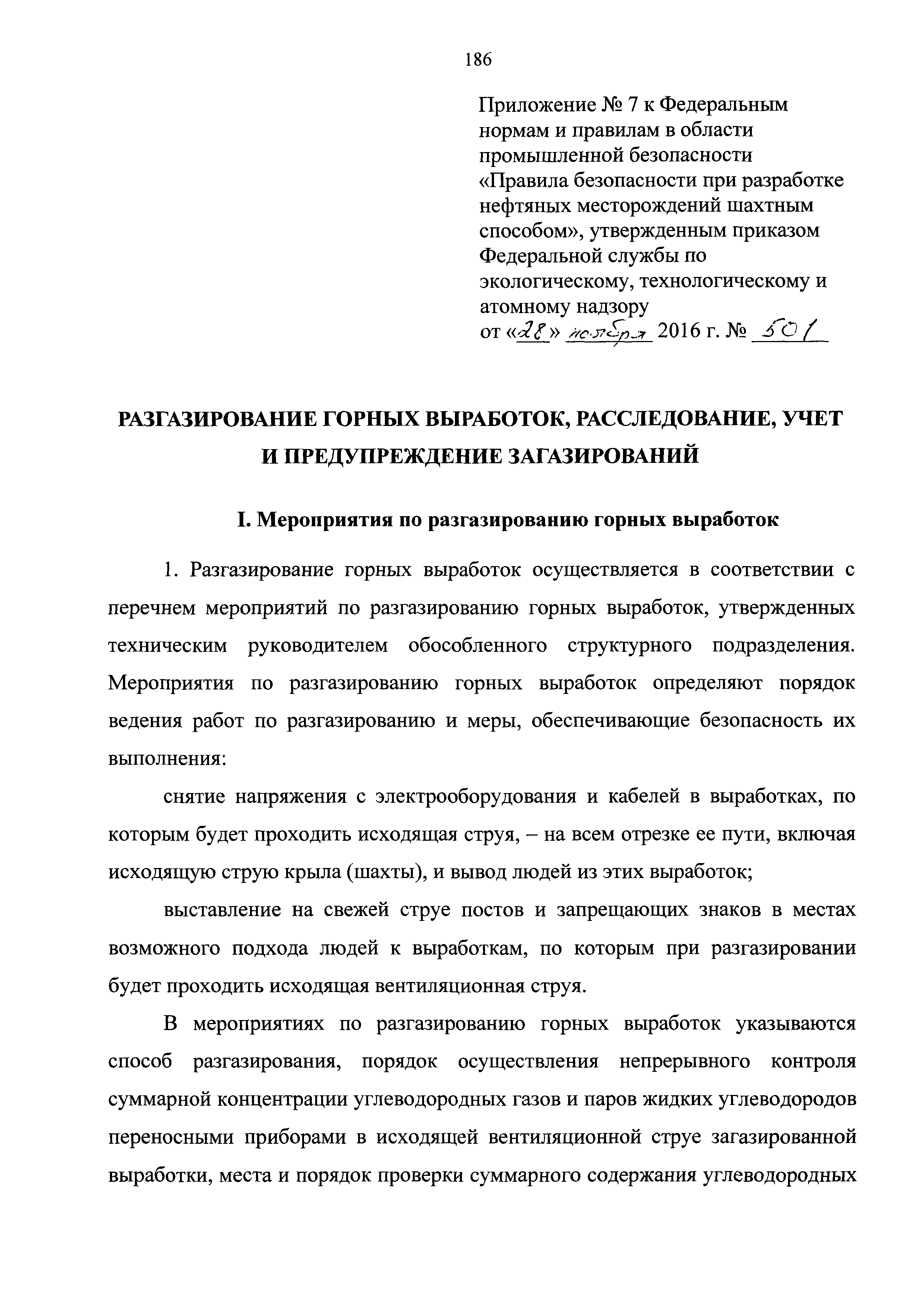 | Область применения: | Правила обязательные для всех руководителей, специалистов и работников организаций, эксплуатирующих опасные производственные объекты, на которых ведется разработка нефтяных месторождений подземным способом, организаций, занимающихся проектированием, строительством нефтяных шахт, конструированием, изготовлением, монтажом, эксплуатацией и ремонтом технических устройств, применяемых на нефтяных шахтах, сторонних организаций, осуществляющих свою деятельность в нефтяных шахтах, профессиональных аварийно-спасательных формирований, работников организаций, деятельность которых связана с посещением нефтяных шахт. Правила устанавливают требования в области промышленной безопасности к организации, эксплуатирующей опасные производственные объекты, и направлены на предупреждение аварий и инцидентов в нефтяных шахтах и на обеспечение готовности организации, эксплуатирующей опасные производственные объекты, к локализации и ликвидации последствий аварий. |