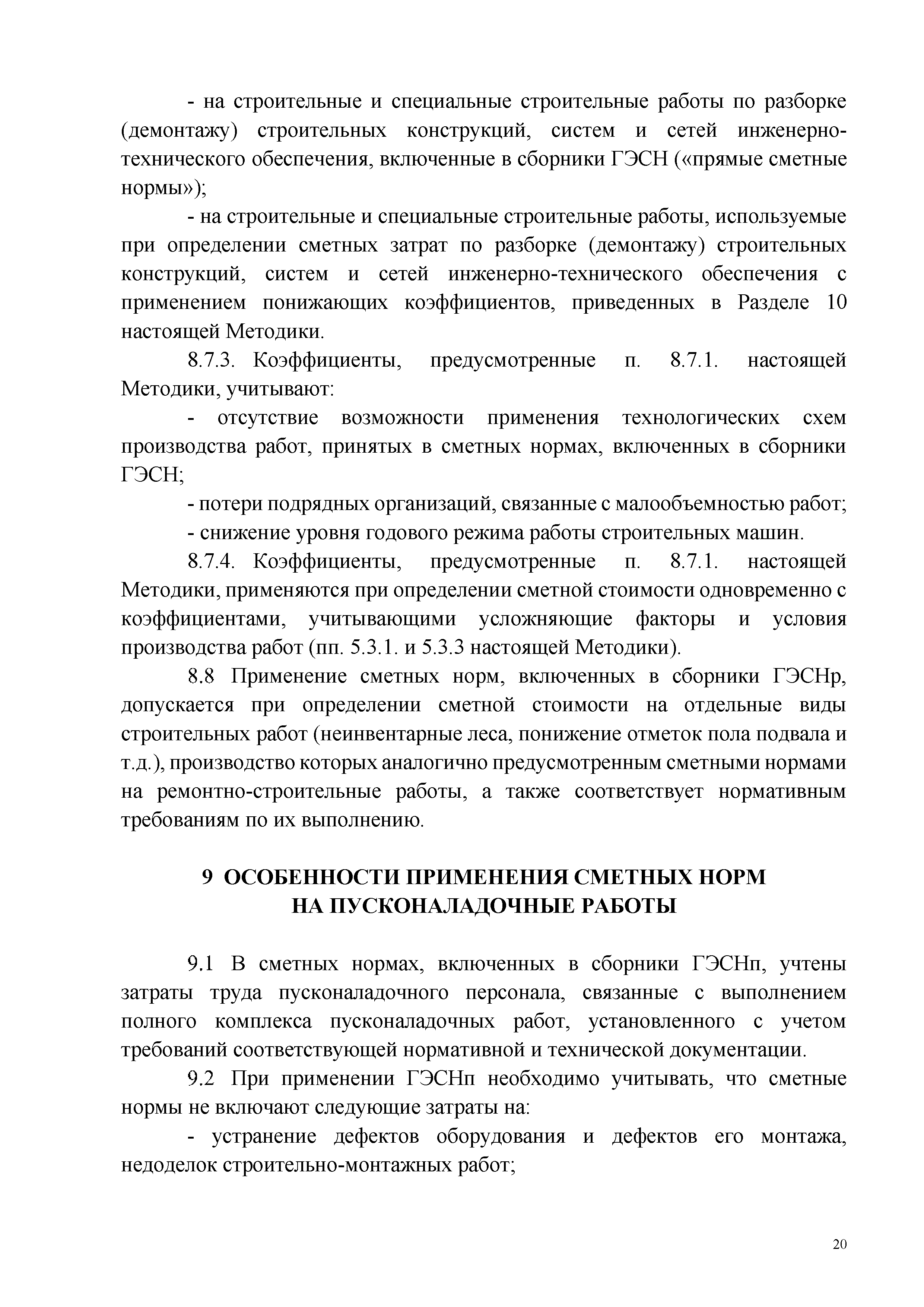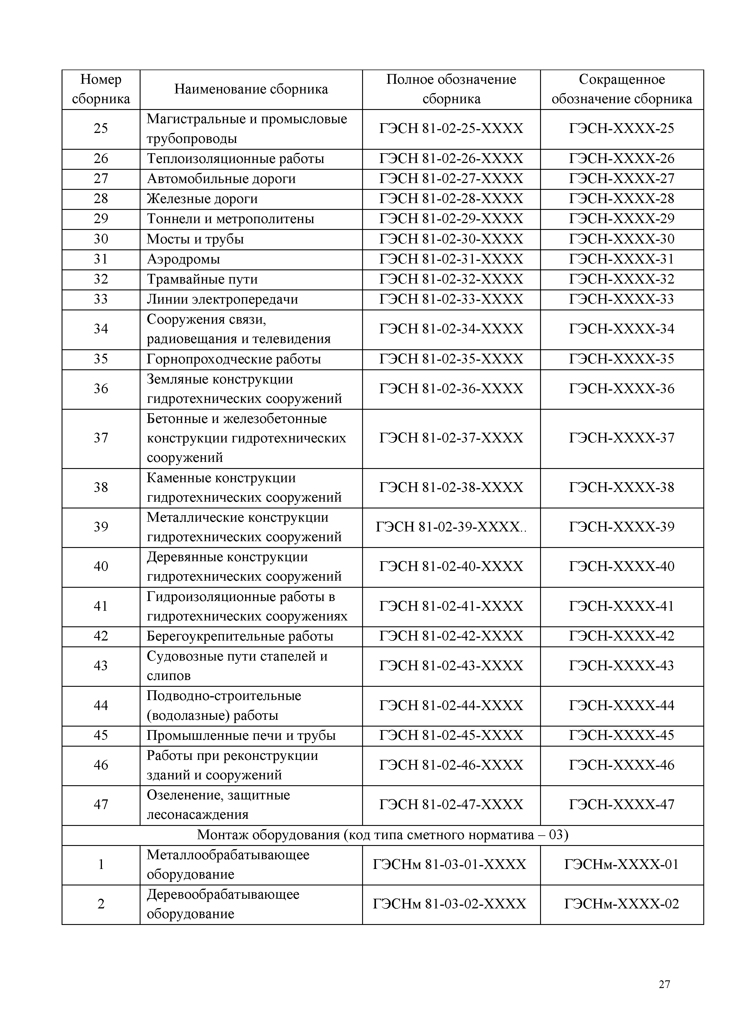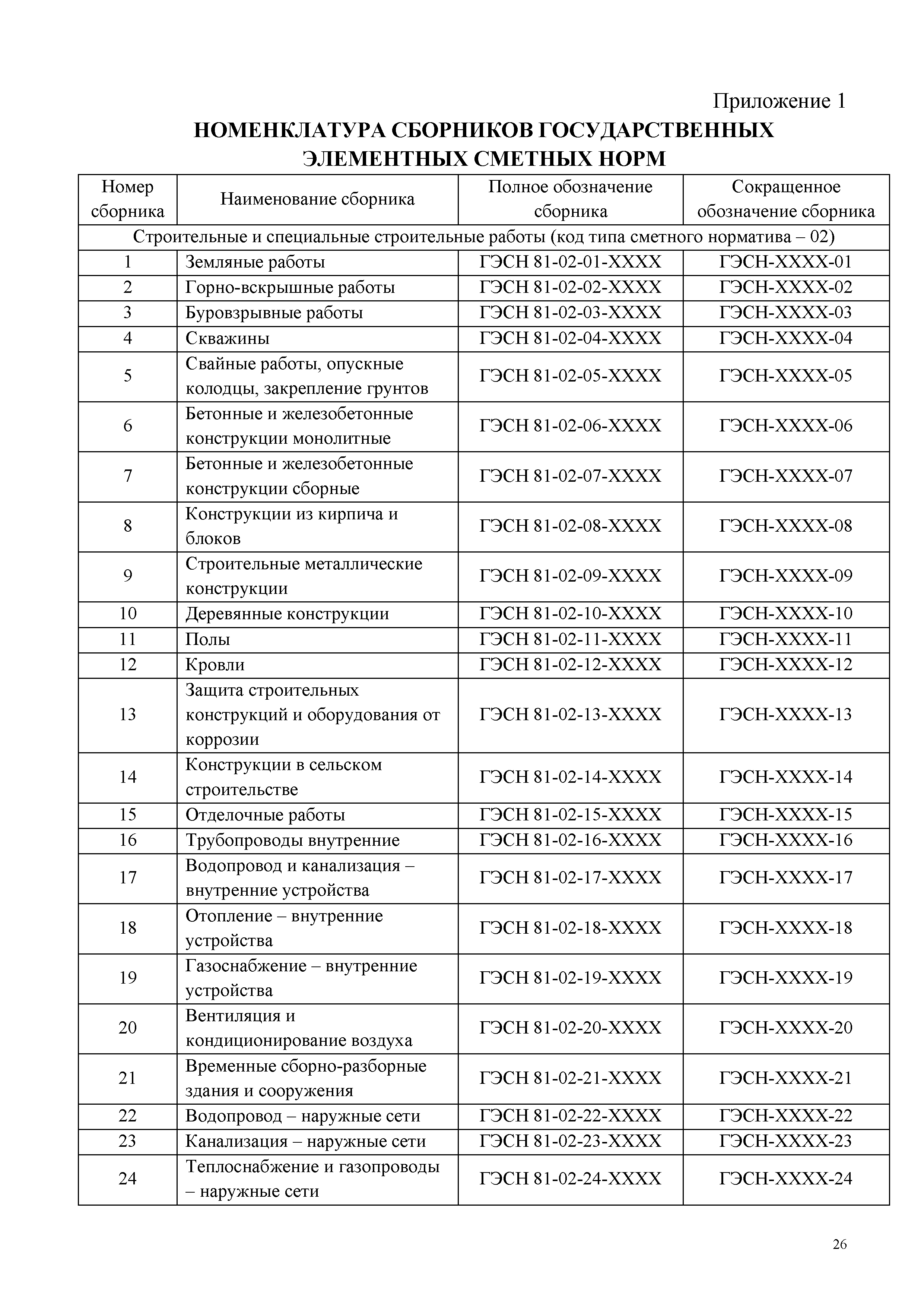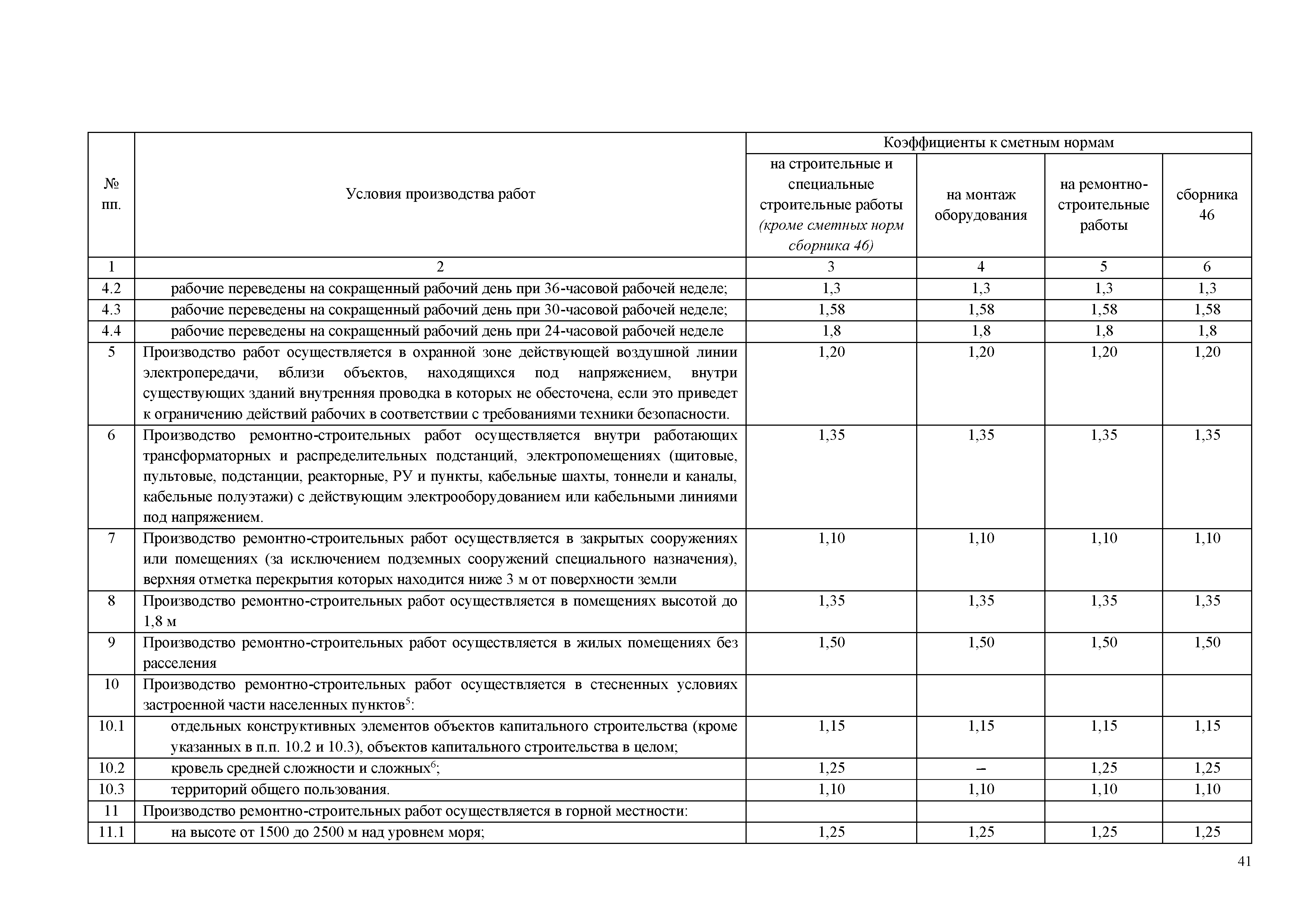 | Оглавление: | 1 Область применения 2 Термины и определения 3 Общие положения 4 Состав и характеристика сборников сметных норм 5 Общие требования к порядку применения сметных норм 6 Особенности применения сметных норм на строительные и специальные строительные работы 7 Особенности применения сметных норм на работы по монтажу оборудования 8 Особенности применения сметных норм на ремонтно-строительные работы 9 Особенности применения сметных норм на пусконаладочные работы 10 Особенности применения сметных норм при производстве демонтажных работ Приложение 1. Номенклатура сборников государственных элементных сметных норм Приложение 2. Формы таблиц сметных норм Приложение 3. Коэффициенты к затратам труда рабочих и машинистов, затратам на эксплуатацию машин и механизмов для учета в сметной документации влияния условий производства работ, предусмотренных проектной документацией |
