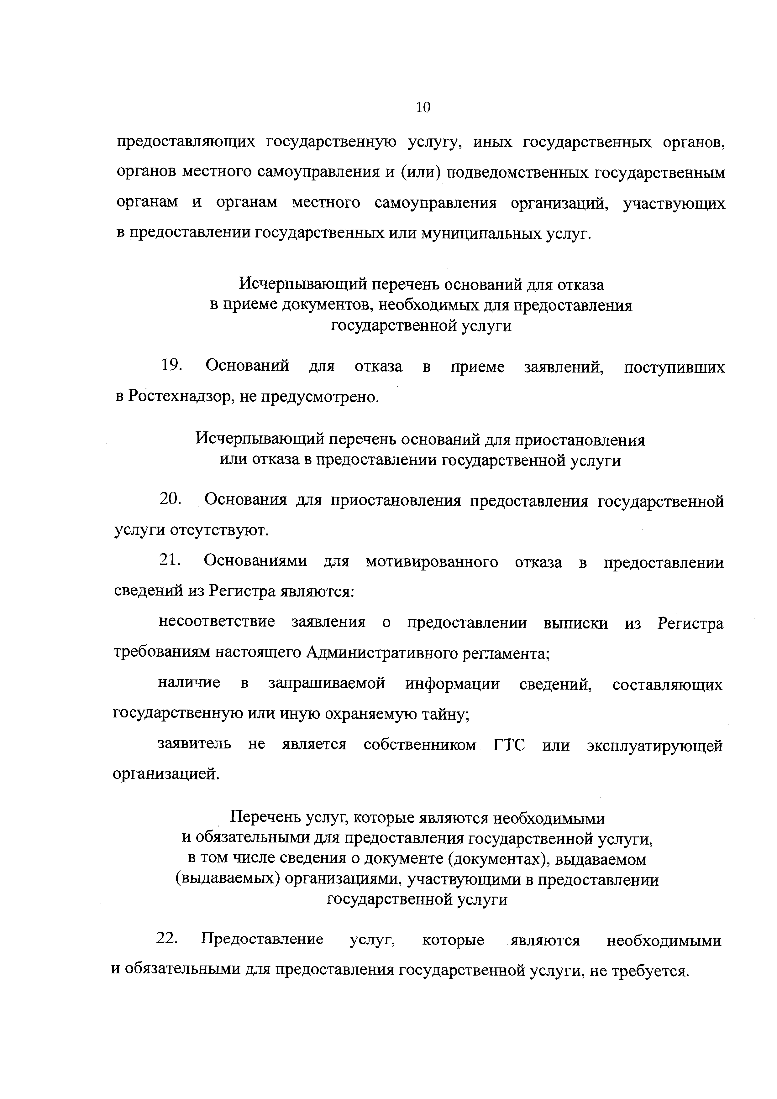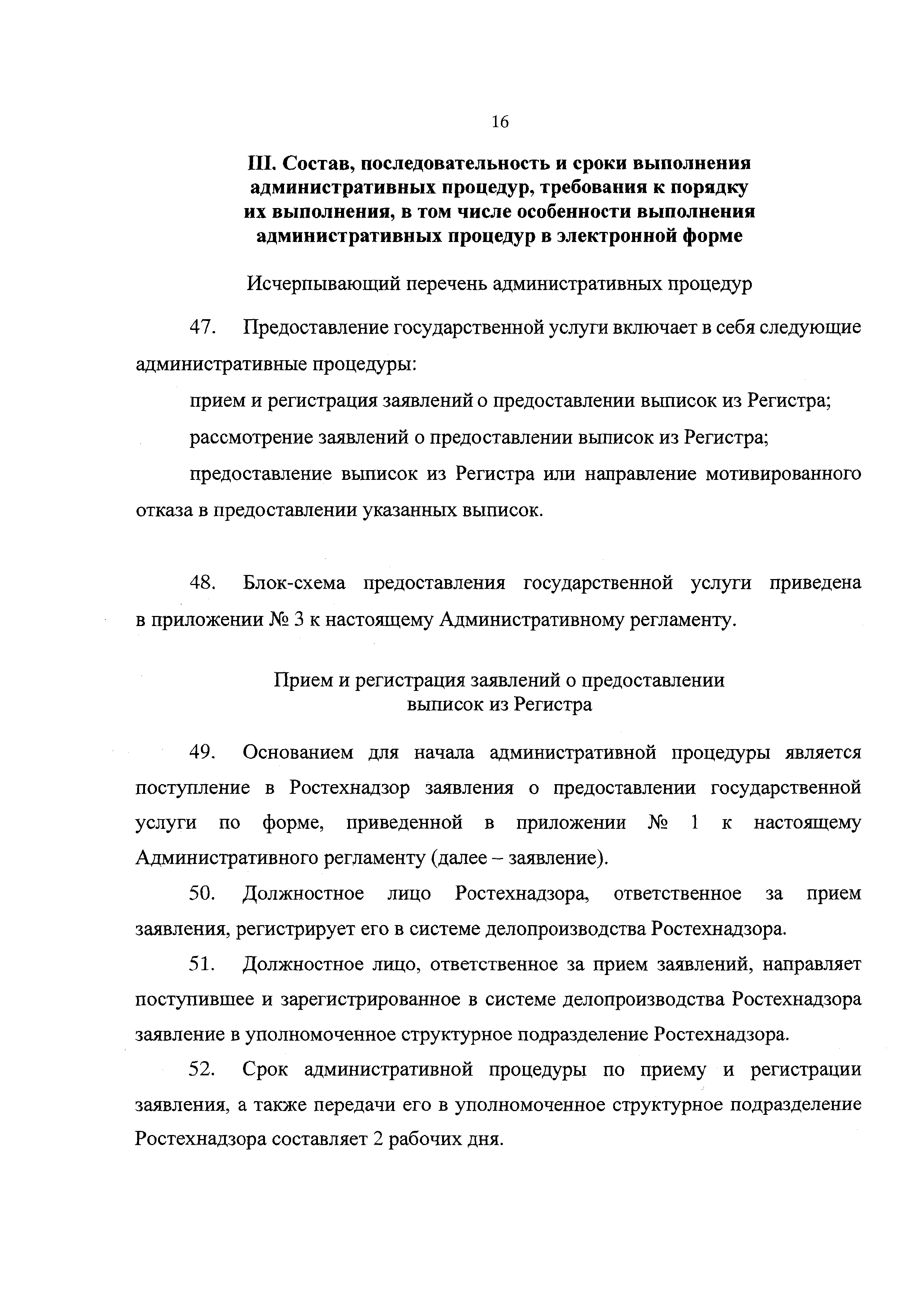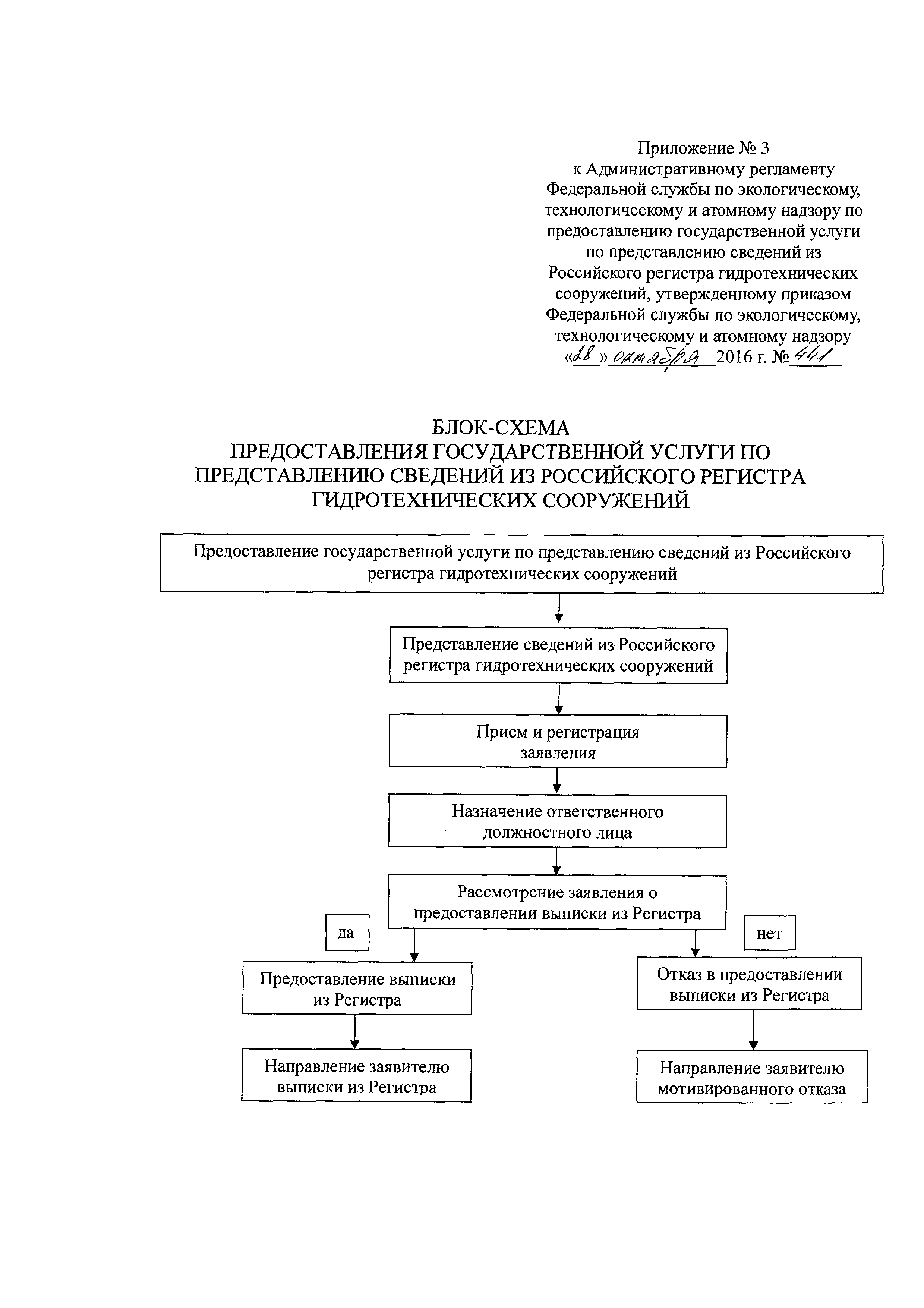 | Оглавление: | I. Общие положения II. Стандарт предоставления государственной услуги III. Состав, последовательность и сроки выполнения процедур, требования к порядку их выполнения, в том числе особенности выполнения административных процедур IV. Формы контроля за предоставлением государственной услуги V. Досудебный (внесудебный) порядок обжалования решений и действий (бездействия) органа, предоставляющего государственную услугу, а также его должностных лиц, государственных служащих Приложение № 1. Заявление о предоставлении выписки из Регистра Приложение № 2. Выписка из Российского регистра гидротехнических сооружений Приложение № 3. Блок-схема предоставления государственной услуги по предоставлению сведений из Российского регистра гидротехнических сооружений Приложение № 4. Журнал учета предоставления выписок из Российского регистра гидротехнических сооружений |