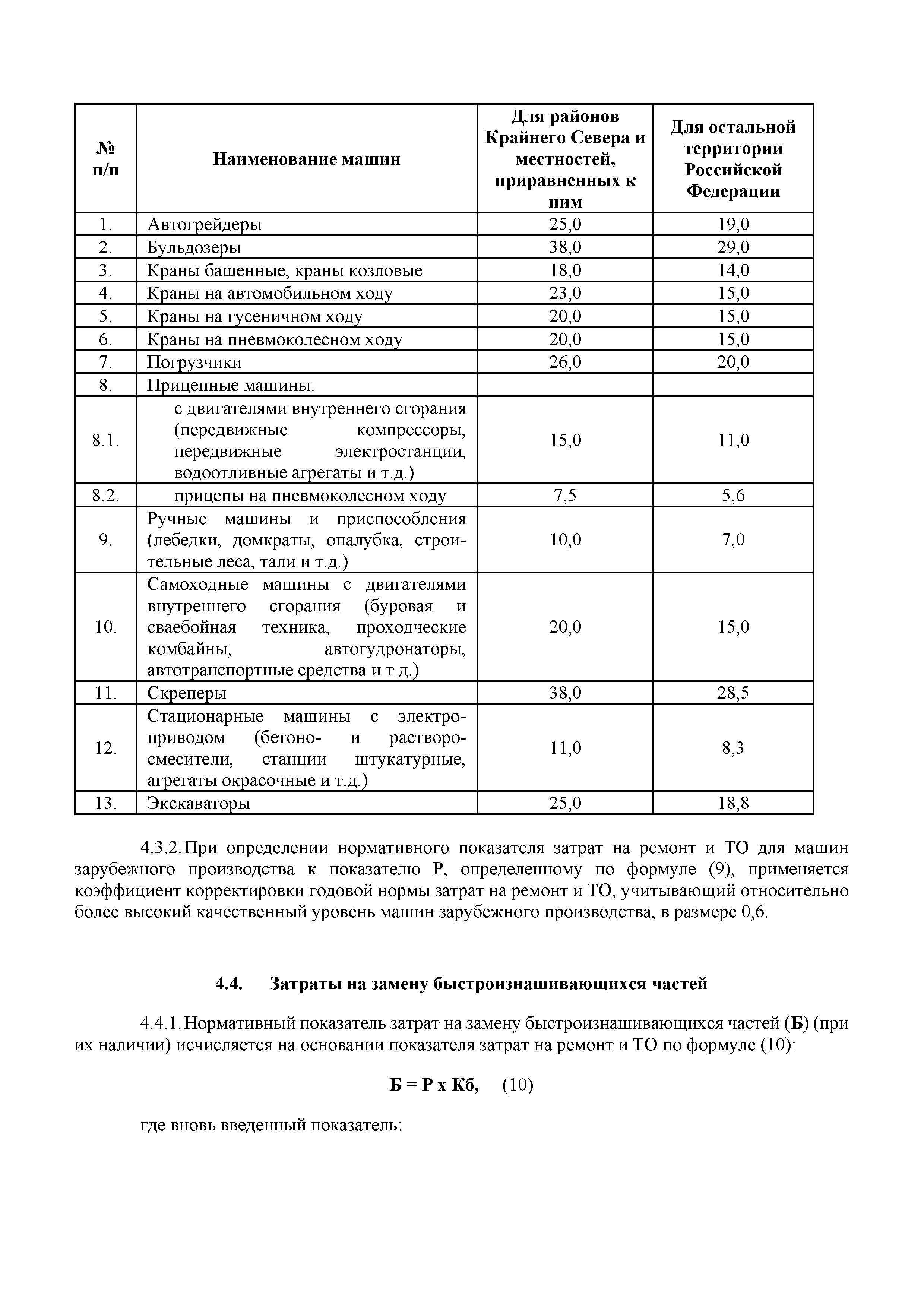Методика определения сметных цен на эксплуатацию машин и механизмов| Статус: | утратил силу | | Название рус.: | Методика определения сметных цен на эксплуатацию машин и механизмов | | Дата добавления в базу: | 01.02.2017 | | Дата актуализации: | 01.01.2021 | | Дата введения: | 01.02.2017 | | Дата окончания срока действия: | 04.09.2019 | | Область применения: | Сметные цены на эксплуатацию машин и механизмов предназначены для определения сметных затрат на эксплуатацию машин и механизмов при составлении сметной документации на строительство, реконструкцию, капитальный ремонт объектов капитального строительства и капитального ремонта многоквартирного домов; разработки и актуализации нормативов цены строительства и нормативов цены конструктивных решений в соответствующем уровне цен; разработки индексов изменения сметной стоимости строительных, специальных строительных, ремонтно-строительных, монтажных и пусконаладочных работ | | Оглавление: | 1 Область применения 2 Термины, определения и сокращения 3 Общие положения 4 Порядок расчета постатейных показателей затрат на эксплуатацию машин 4.1. Постатейная структура сметных цен на эксплуатацию машин 4.2. Амортизационные отчисления на полное восстановление 4.3. Затраты на выполнение всех видов ремонта, технического обслуживания и диагностирование машин 4.4. Затраты на замену быстроизнашивающихся частей 4.5. Оплата труда рабочих, управляющих машинами 4.6. Затраты на энергоносители 4.7. Затраты на смазочные материалы 4.8. Затраты на гидравлическую жидкость 4.9. Затраты на перебазировку машин с базы механизации на строительную площадку и обратно со строительной площадки на базу механизации 5. Формирование таблиц сметных цен на эксплуатацию машин и механизмов Приложение 1. Средние показатели годового режима работы машин и механизмов с дифференциацией по температурным зонам Приложение 2. Типовые формы справочных данных к расчету годового режима работы машин и механизмов Приложение 3. Перечень машин, затраты на перебазировку которых, не включаются в состав сметных цен на эксплуатацию машин и механизмов, а учитываются в сметах отдельной строкой Приложение 4. Оформление справочных данных к расчету затрат на перебазировки машин и механизмов Приложение 5. Таблица сметной цены на эксплуатацию | | Утверждён: | 20.12.2016 Министерство строительства и жилищно-коммунального хозяйства Российской Федерации (999/пр)