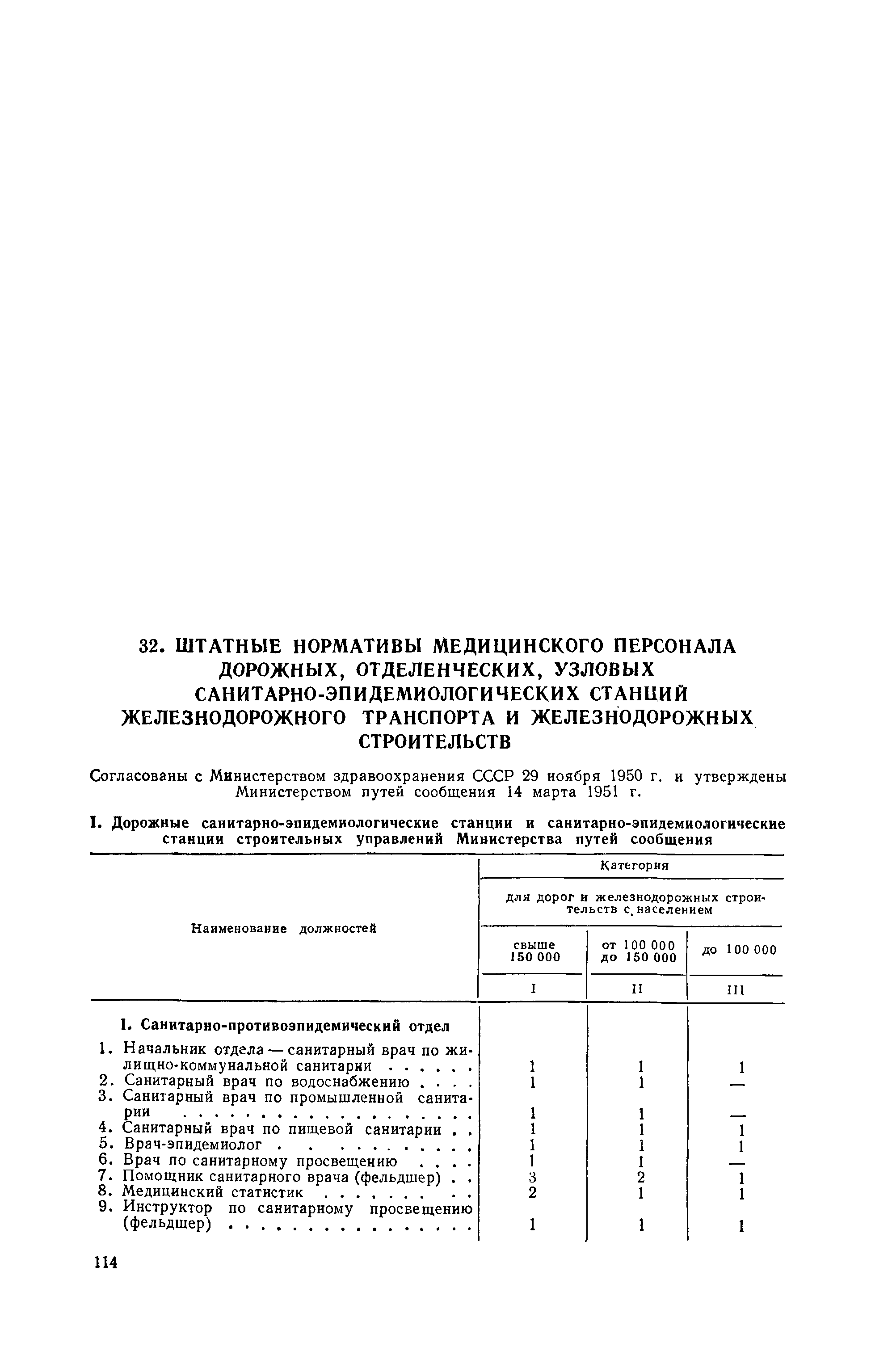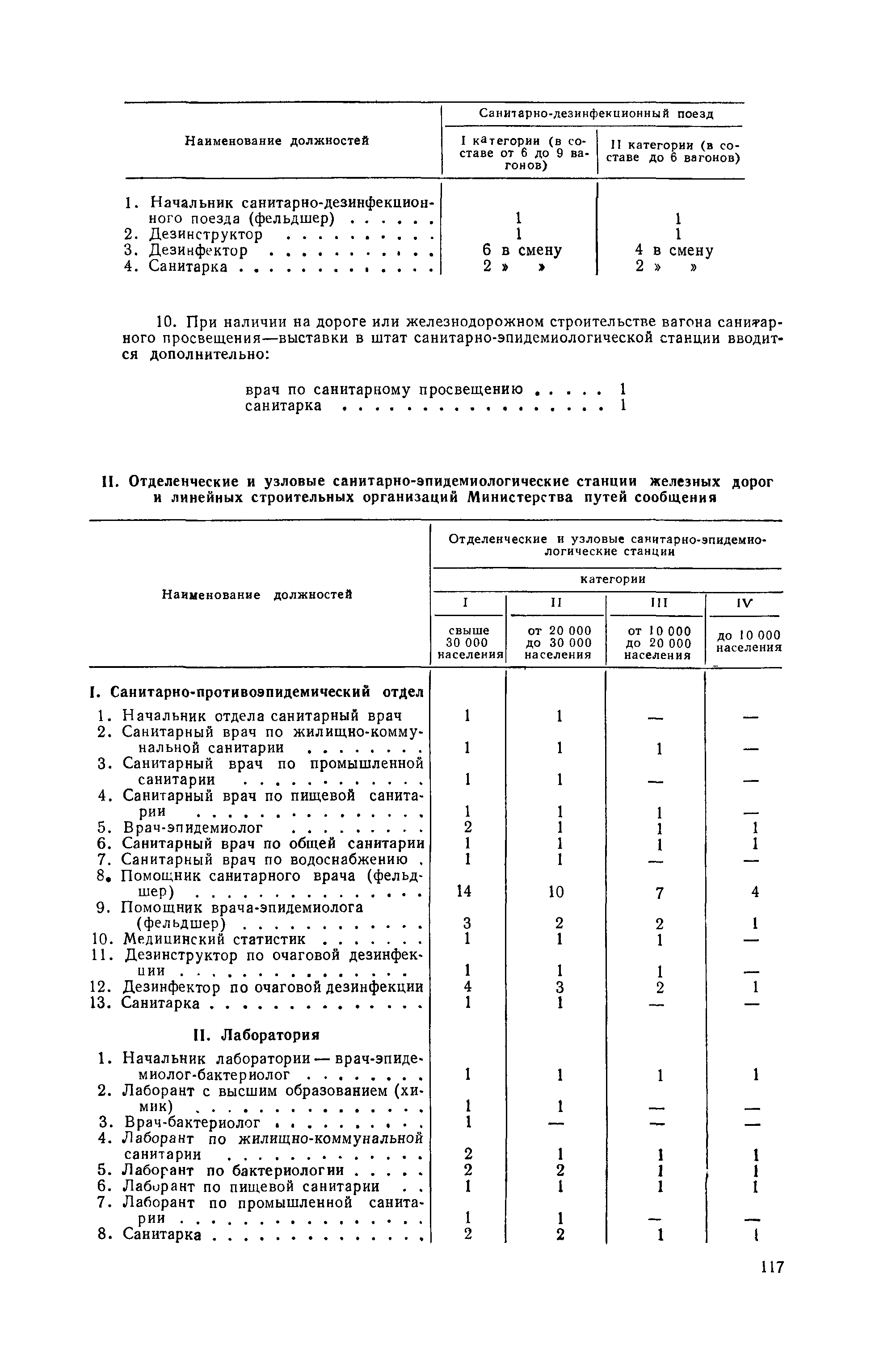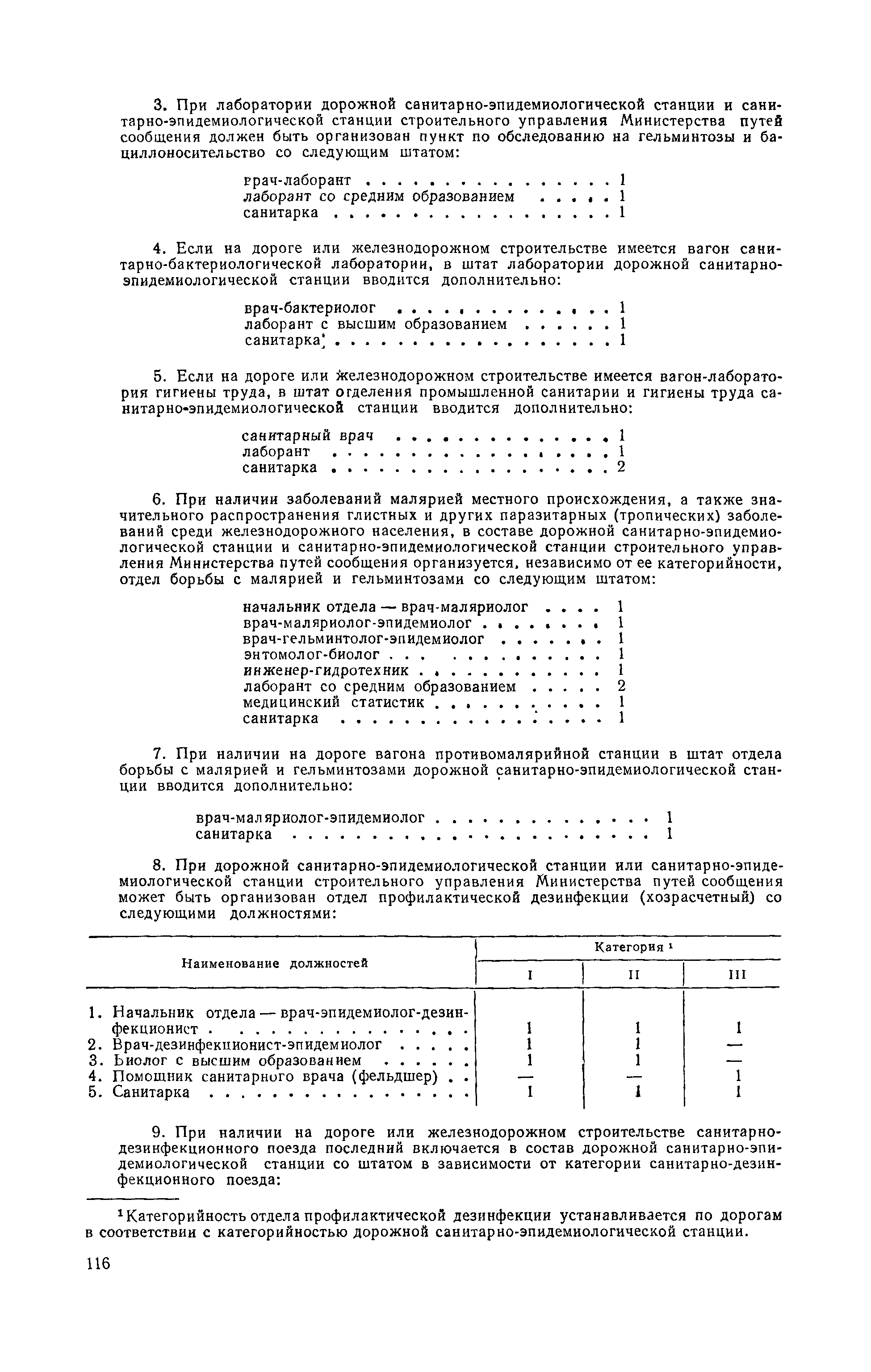 Штатные нормативы медицинского персонала дорожных, отделенческих, узловых санитарно-эпидемиологических станций железнодорожного транспорта и железнодорожных строительств| Статус: | не действует | | Название рус.: | Штатные нормативы медицинского персонала дорожных, отделенческих, узловых санитарно-эпидемиологических станций железнодорожного транспорта и железнодорожных строительств | | Дата добавления в базу: | 01.02.2017 | | Дата актуализации: | 01.01.2021 | | Оглавление: | I Дорожные санитарно-эпидемиологические станции и санитарно-эпидемиологические станции строительных управлений Министерства путей сообщения II Отделенческие и узловые санитарно-эпидемиологические станции железных дорог и линейных строительных организаций Министерства путей сообщения | | Утверждён: | 14.03.1951 Министерство путей сообщения СССР (USSR Ministry of Railroads )