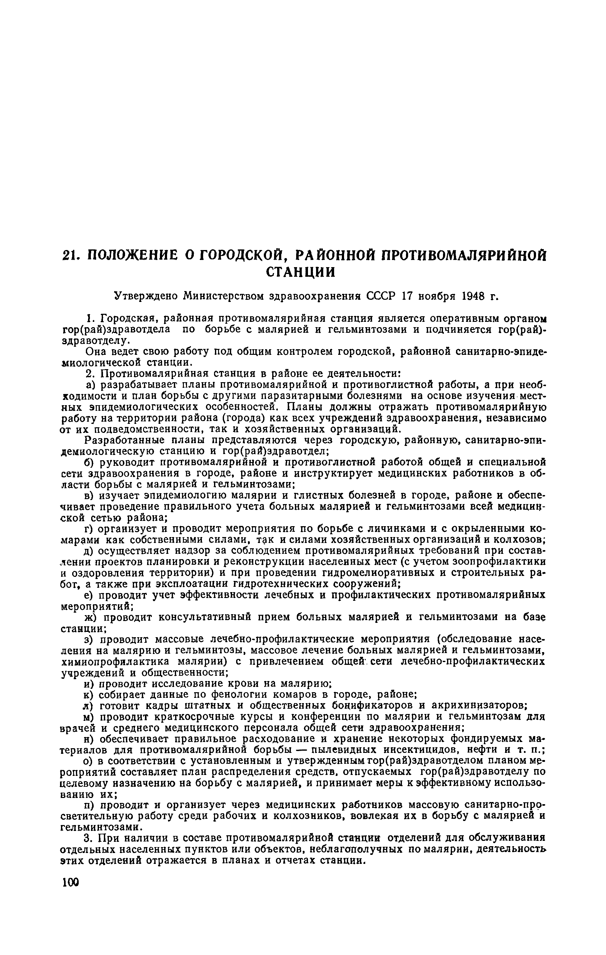 Положение о городской, районной противомалярийной станции| Статус: | не действует | | Название рус.: | Положение о городской, районной противомалярийной станции | | Дата добавления в базу: | 01.02.2017 | | Дата актуализации: | 01.01.2021 | | Утверждён: | 17.11.1948 Министерство здравоохранения СССР (USSR Ministry of Health Care )