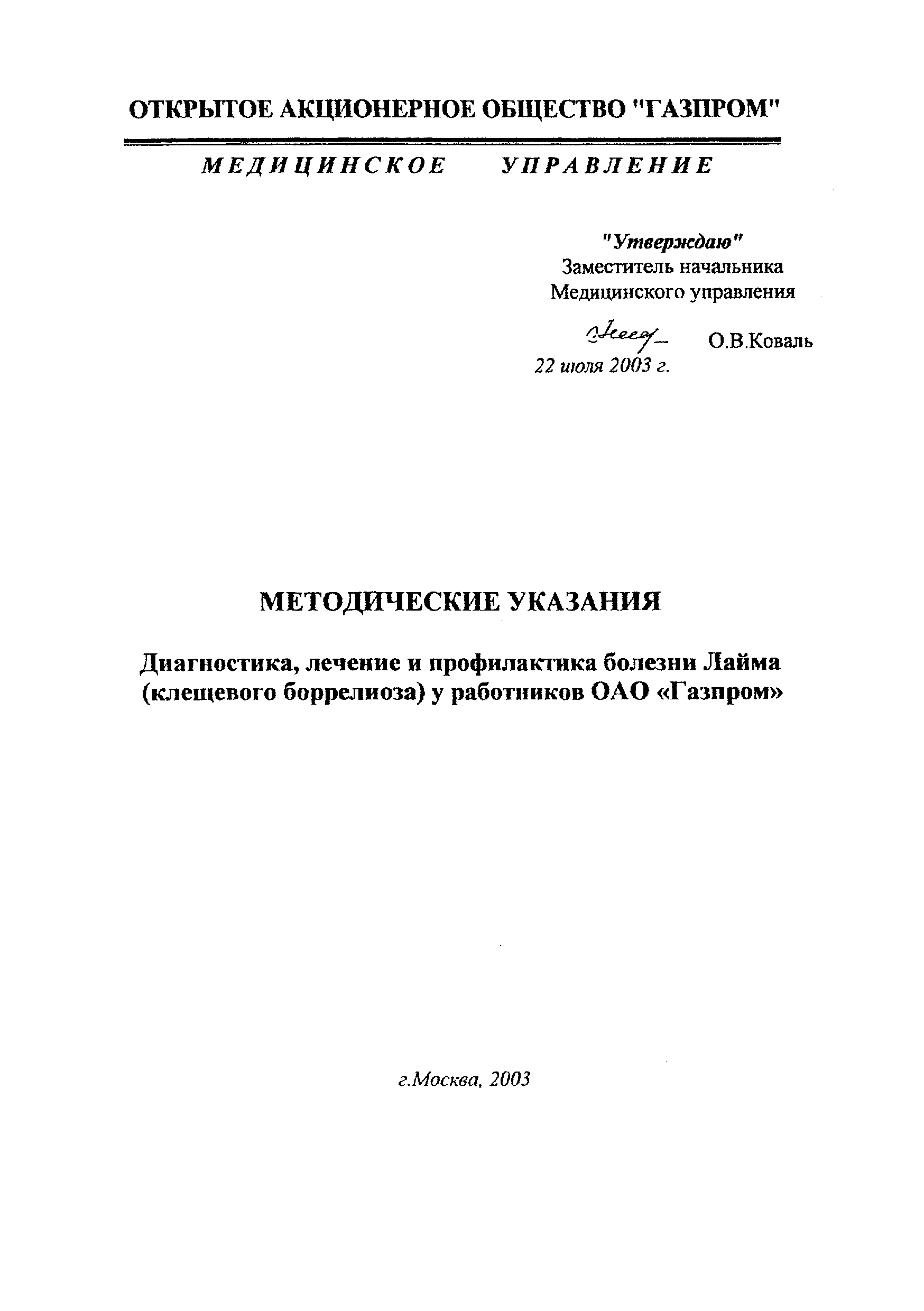 | Утверждён: | 22.07.2003 Заместитель начальника Медицинского управления ОАО Газпром