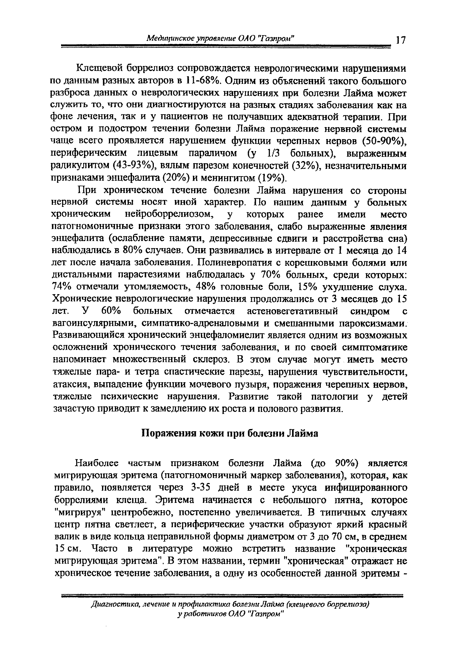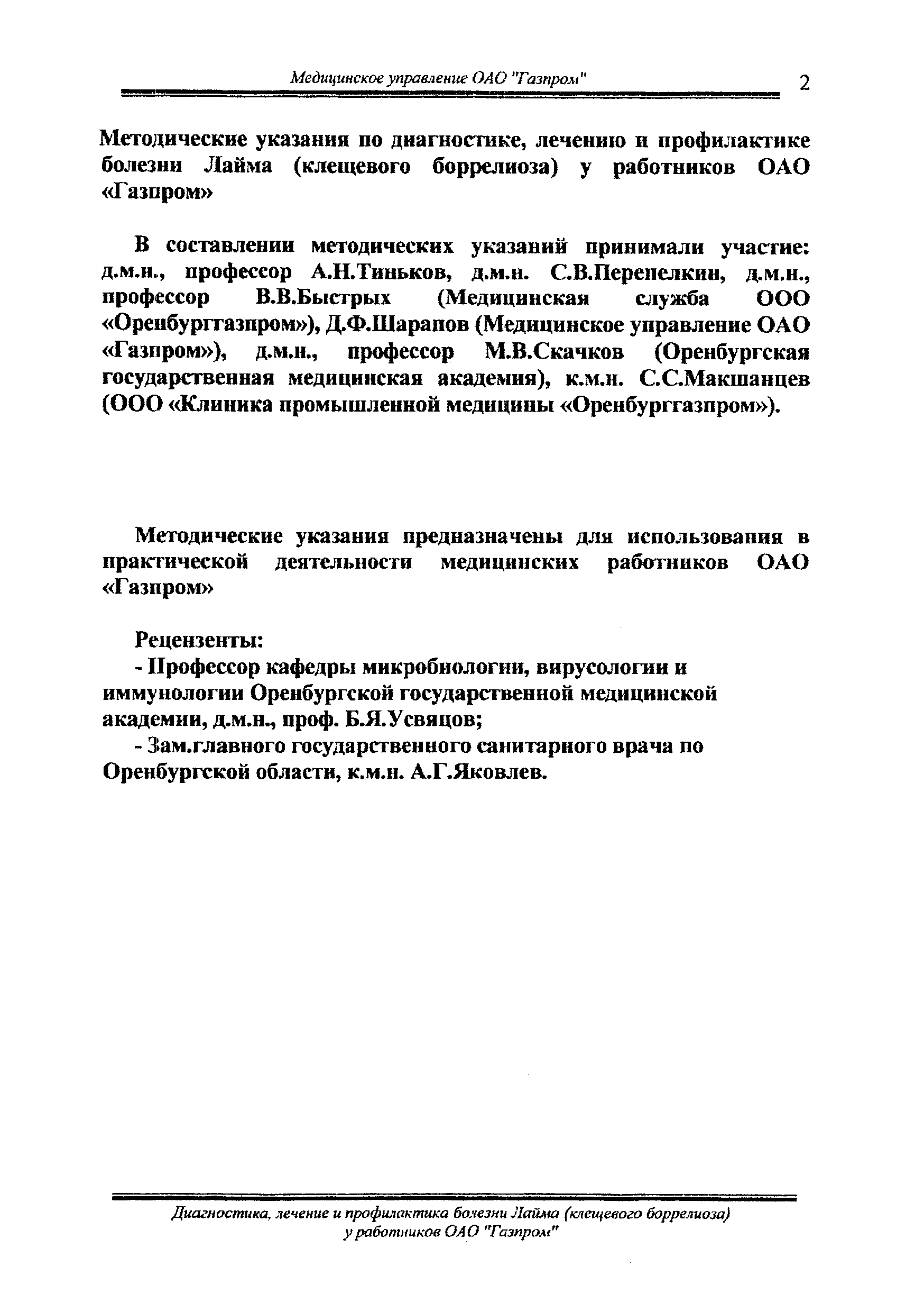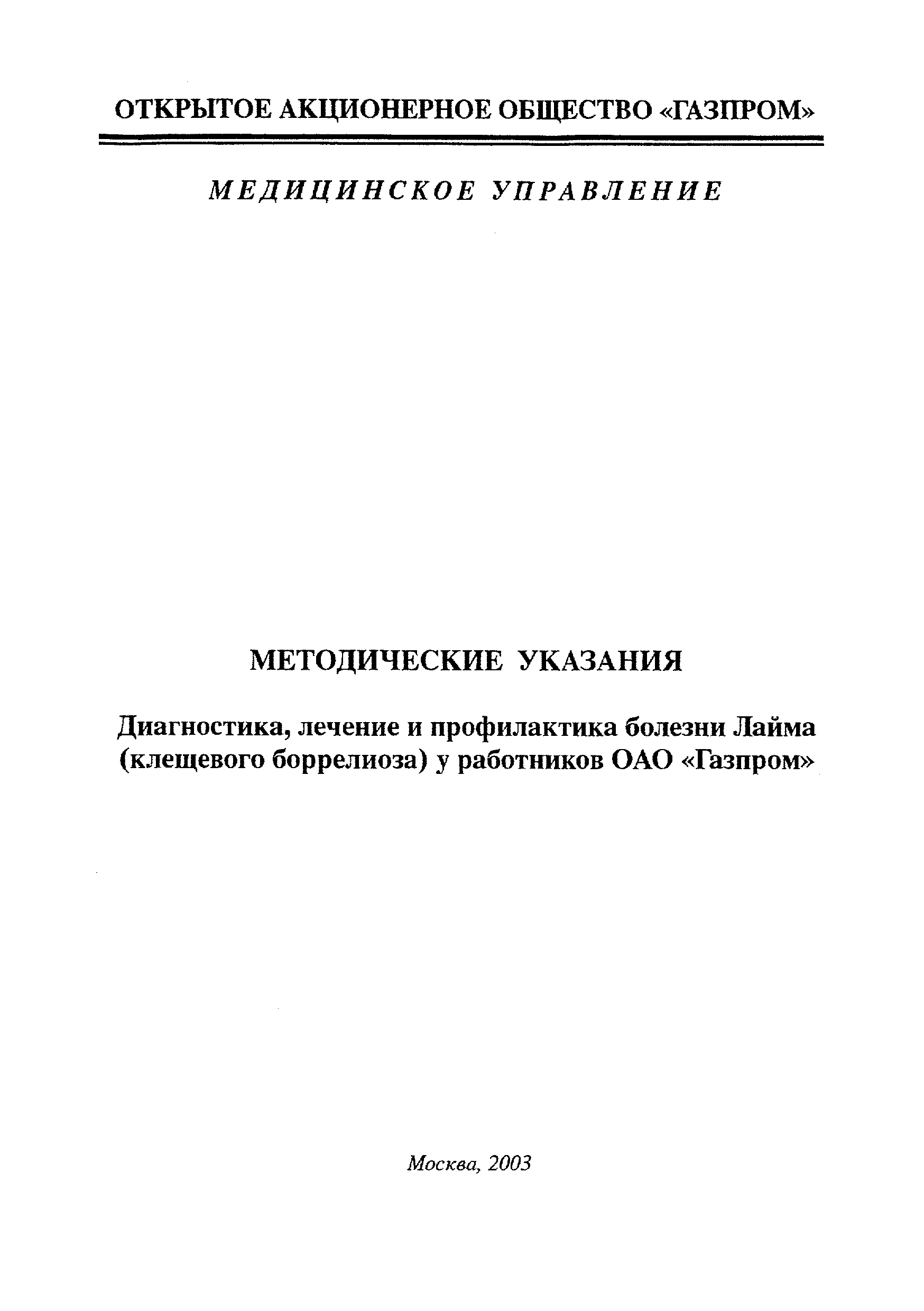 | Название рус.: | Диагностика, лечение и профилактика болезни Лайма (клещевого боррелиоза) у работников ОАО "Газпром" |