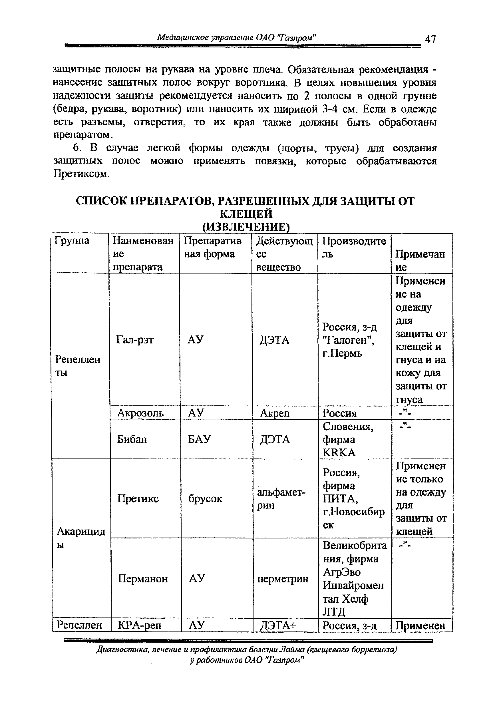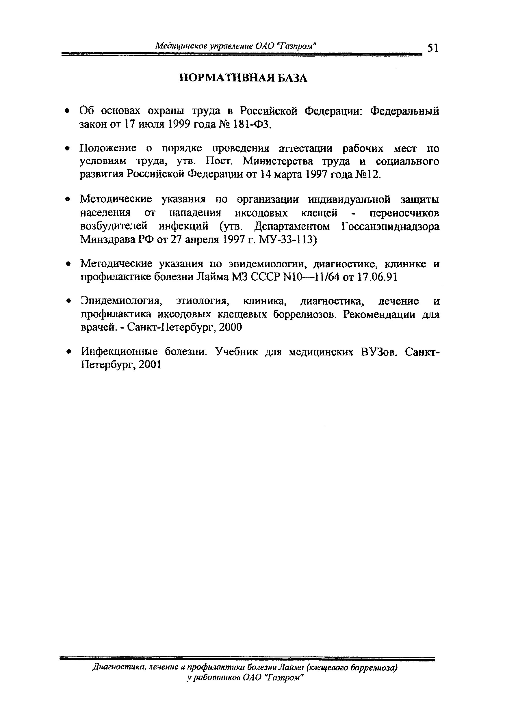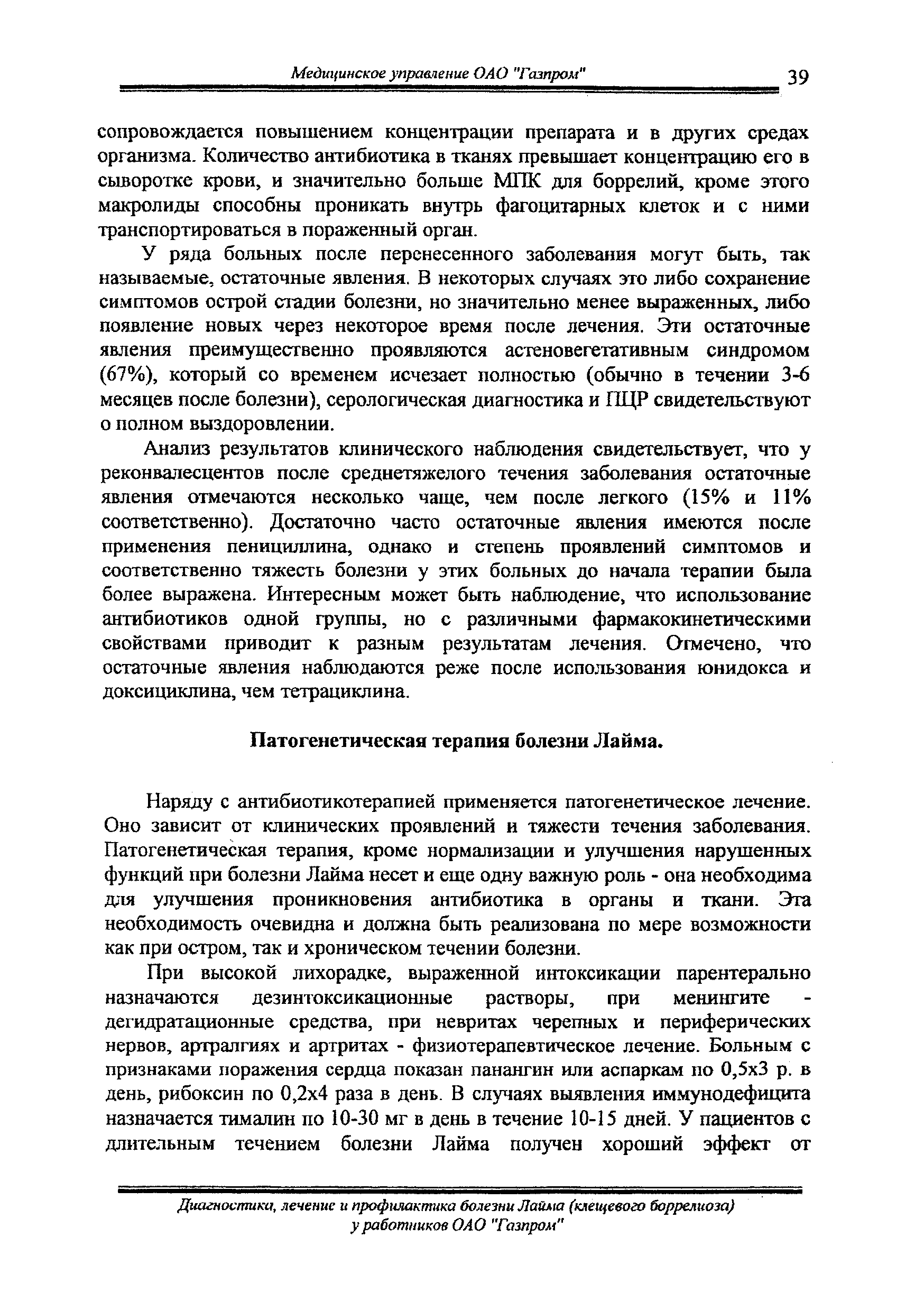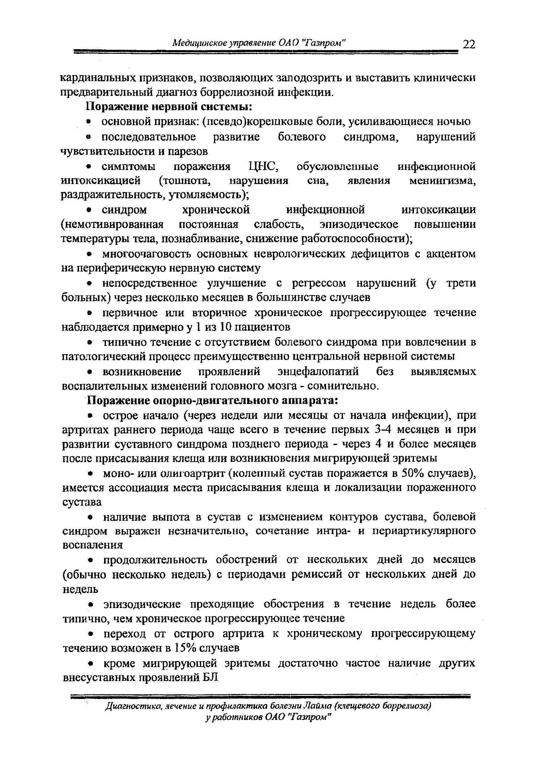 | Название рус.: | Диагностика, лечение и профилактика болезни Лайма (клещевого боррелиоза) у работников ОАО "Газпром" |