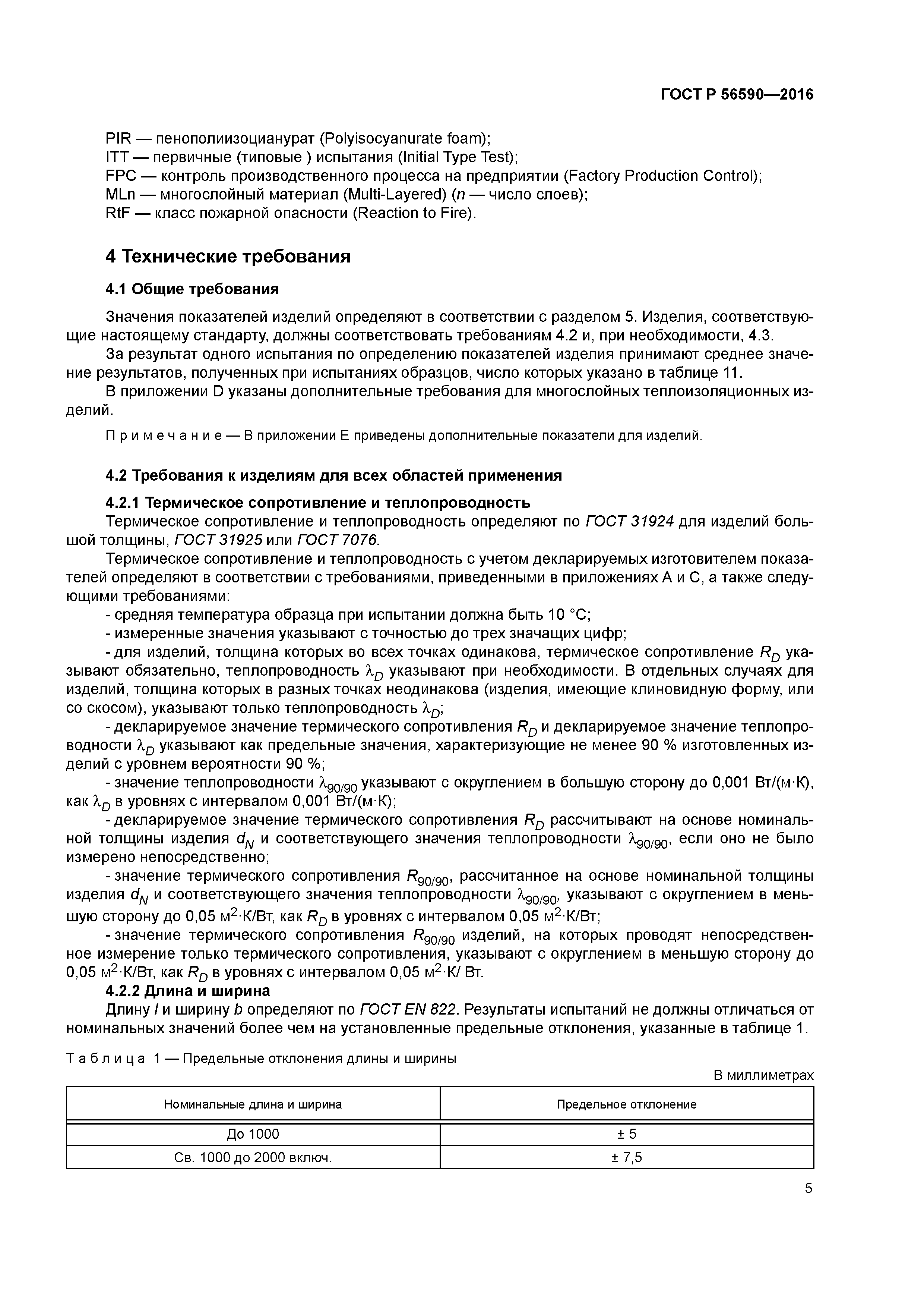 | | Заменяет собой: | | | Нормативные ссылки: |   ГОСТ 30244-94 «Материалы строительные. Методы испытаний на горючесть»  ГОСТ 12.1.044-89 «Система стандартов безопасности труда. Пожаровзрывоопасность веществ и материалов. Номенклатура показателей и методы их определения»  ГОСТ 30402-96 «Материалы строительные. Метод испытания на воспламеняемость»  ГОСТ 7076-99 «Материалы и изделия строительные. Метод определения теплопроводности и термического сопротивления при стационарном тепловом режиме»  ГОСТ Р ИСО 16269-6-2005 «Статистические методы. Статистическое представление данных. Определение статистических толерантных интервалов»  ГОСТ EN 1607-2011 «Изделия теплоизоляционные, применяемые в строительстве. Метод определения прочности при растяжении перпендикулярно к лицевым поверхностям»  ГОСТ EN 12087-2011 «Изделия теплоизоляционные, применяемые в строительстве. Методы определения водопоглощения при длительном погружении»  ГОСТ 31430-2011 «Изделия теплоизоляционные, применяемые в строительстве. Метод определения содержания органических веществ»  ГОСТ EN 12090-2011 «Изделия теплоизоляционные, применяемые в строительстве. Метод определения характеристик сдвига»  ГОСТ EN 1604-2011 «Изделия теплоизоляционные, применяемые в строительстве. Метод определения стабильности размеров при заданной температуре и влажности»  ГОСТ EN 1609-2011 «Изделия теплоизоляционные, применяемые в строительстве. Методы определения водопоглощения при кратковременном частичном погружении»  ГОСТ EN 12089-2011 «Изделия теплоизоляционные, применяемые в строительстве. Метод определения характеристик изгиба»  ГОСТ EN 822-2011 «Изделия теплоизоляционные, применяемые в строительстве. Методы определения длины и ширины»  ГОСТ EN 825-2011 «Изделия теплоизоляционные, применяемые в строительстве. Метод определения отклонения от плоскостности»  ГОСТ EN 1602-2011 «Изделия теплоизоляционные, применяемые в строительстве. Метод определения кажущейся плотности»  ГОСТ EN 824-2011 «Изделия теплоизоляционные, применяемые в строительстве. Метод определения отклонения от прямоугольности»  ГОСТ EN 823-2011 «Изделия теплоизоляционные, применяемые в строительстве. Метод определения толщины»  ГОСТ EN 826-2011 «Изделия теплоизоляционные, применяемые в строительстве. Методы определения характеристик сжатия»  ГОСТ 31704-2011 «Материалы звукопоглощающие. Методы измерения звукопоглощения в реверберационной камере»  ГОСТ 31705-2011 «Материалы звукопоглощающие, применяемые в зданиях. Оценка звукопоглощения»  ГОСТ EN 1606-2011 «Изделия теплоизоляционные, применяемые в строительстве. Метод определения ползучести при сжатии»  ГОСТ Р 1.5-2012 «Стандартизация в Российской Федерации. Стандарты национальные. Правила построения, изложения, оформления и обозначения» ГОСТ 25898-2012 «Материалы и изделия строительные. Методы определения паропроницаемости и сопротивления паропроницанию» ГОСТ EN 12086-2011 «Изделия теплоизоляционные, применяемые в строительстве. Метод определения характеристик паропроницаемости»  ГОСТ EN 12088-2011 «Изделия теплоизоляционные, применяемые в строительстве. Метод определения диффузионного влагопоглощения в течение длительного времени» ГОСТ EN 12091-2011 «Изделия теплоизоляционные, применяемые в строительстве. Метод определения морозостойкости»  ГОСТ EN 1605-2011 «Изделия теплоизоляционные, применяемые в строительстве. Метод определения деформации пр