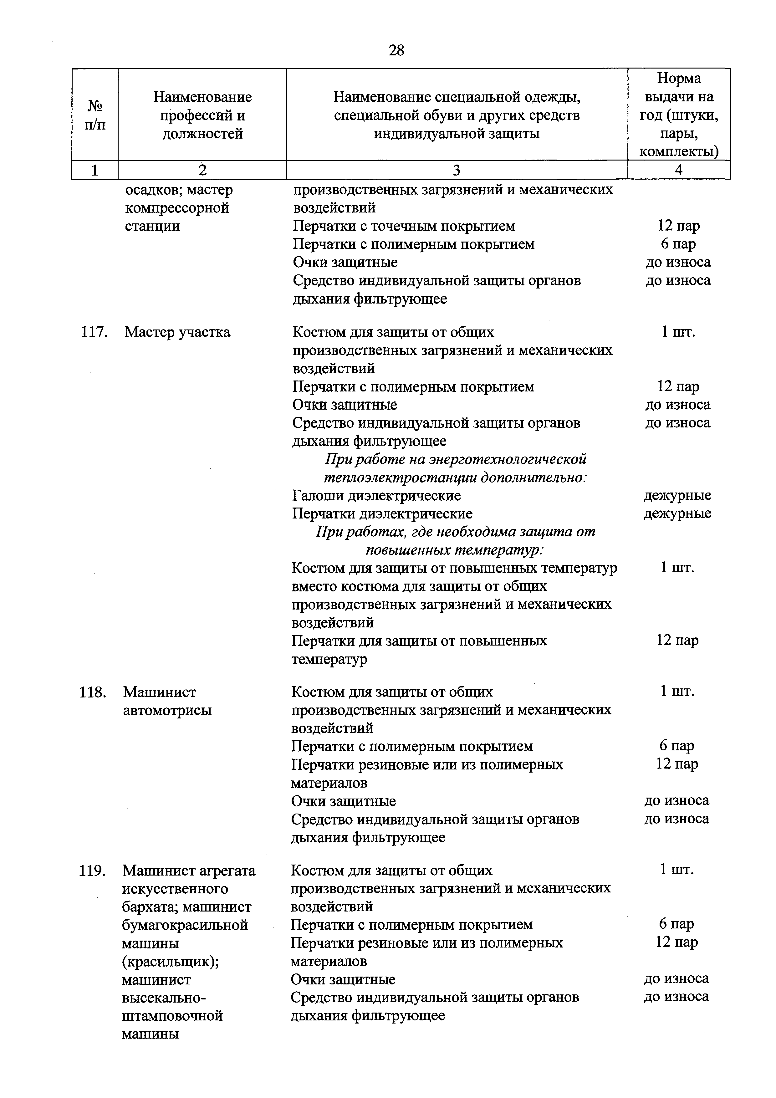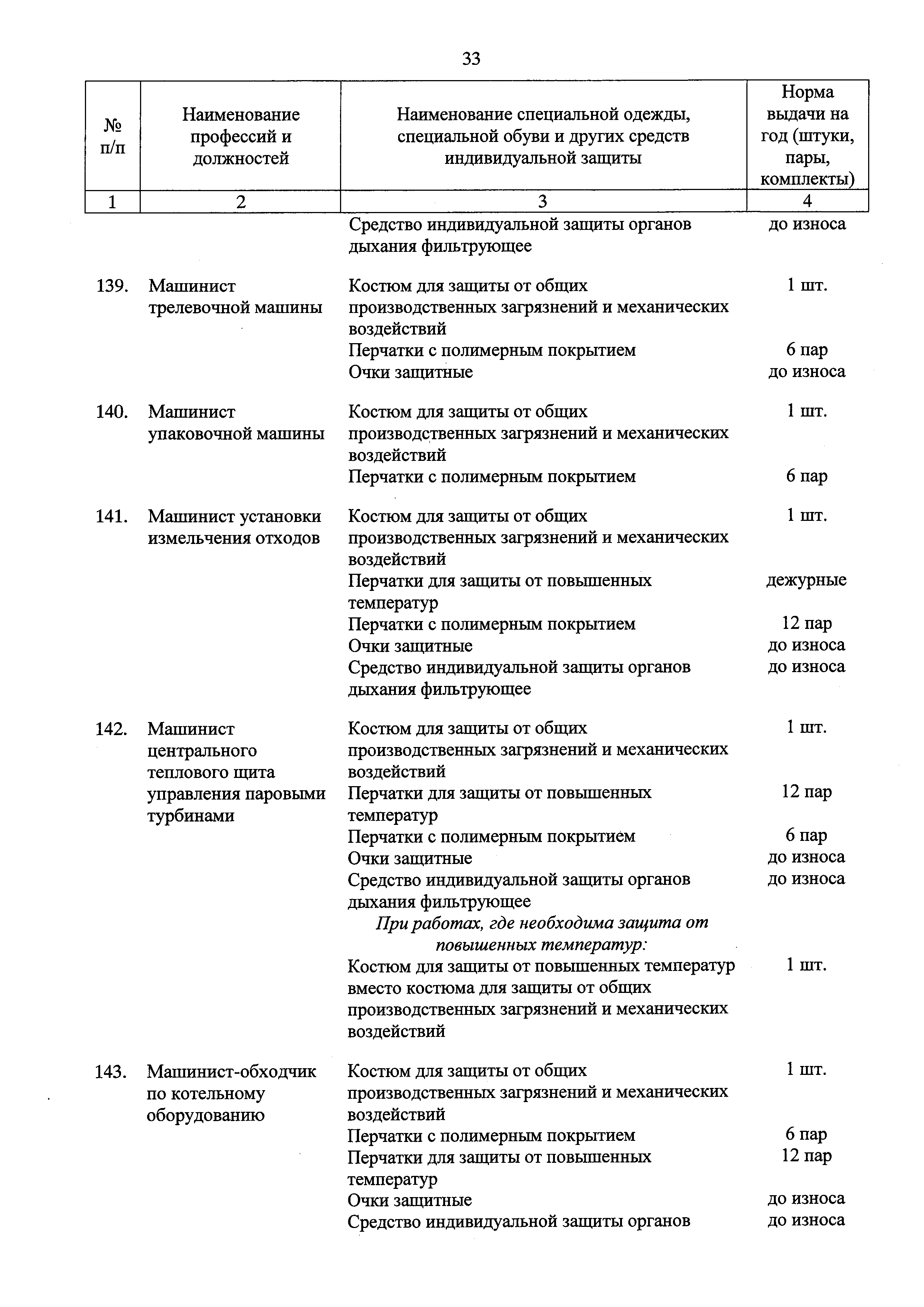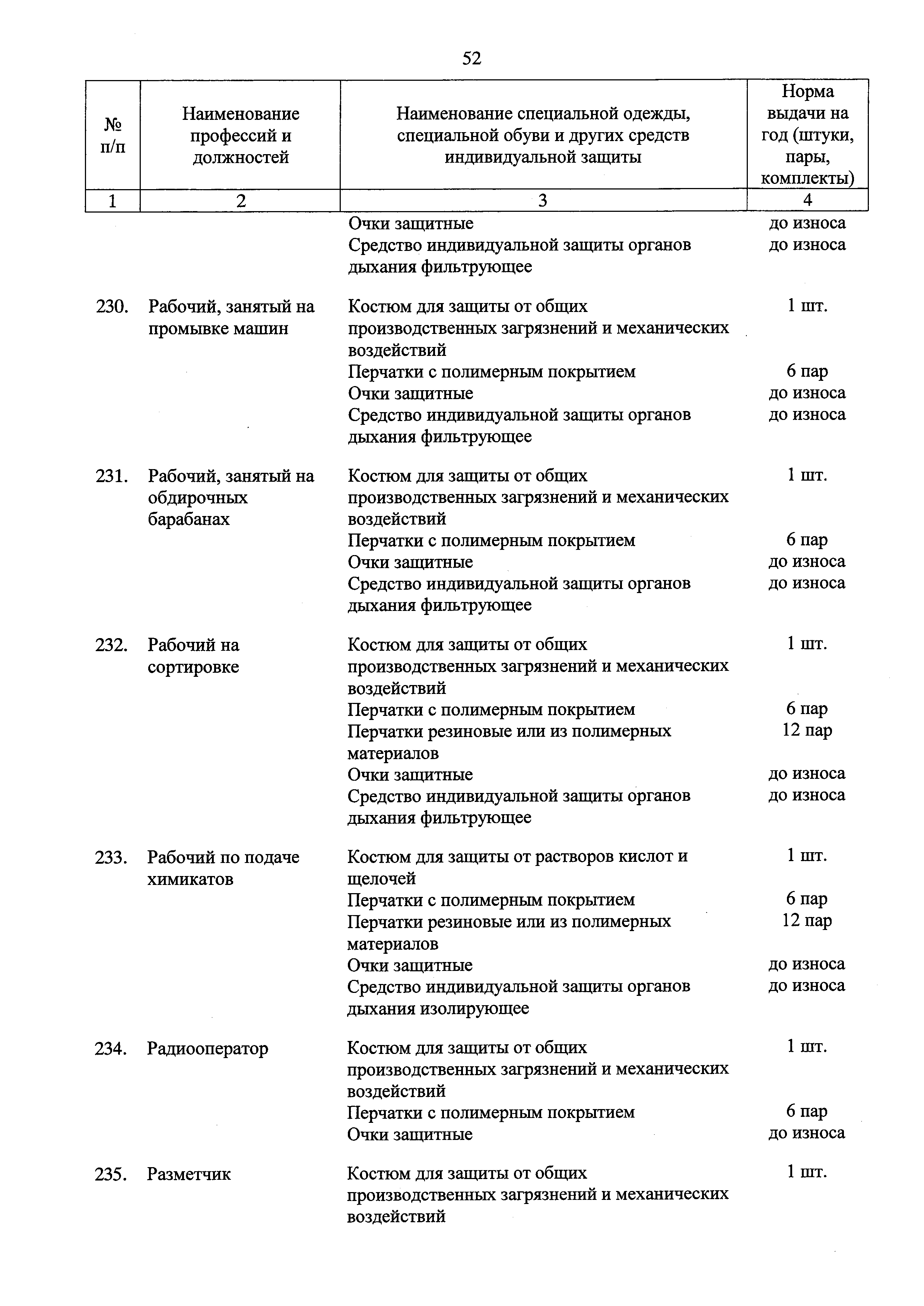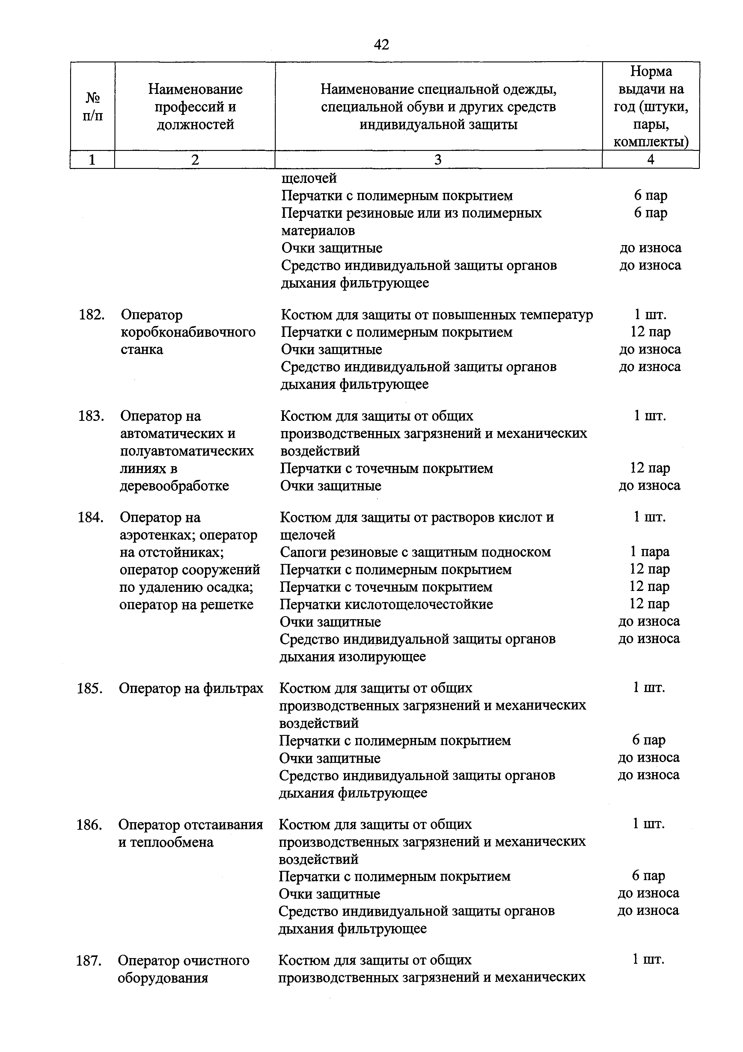 Типовые нормы бесплатной выдачи специальной одежды, специальной обуви и других средств индивидуальной защиты работникам целлюлозно-бумажного, гидролизного , лесохимического и деревообрабатывающего производств, занятым на работах с вредными и (или) опасными условиями труда, а также выполняемых в особых температурных условиях или связанных с загрязнением| Статус: | действует | | Название рус.: | Типовые нормы бесплатной выдачи специальной одежды, специальной обуви и других средств индивидуальной защиты работникам целлюлозно-бумажного, гидролизного , лесохимического и деревообрабатывающего производств, занятым на работах с вредными и (или) опасными условиями труда, а также выполняемых в особых температурных условиях или связанных с загрязнением | | Дата добавления в базу: | 01.02.2017 | | Дата актуализации: | 01.01.2021 | | Дата введения: | 09.03.2017 | | Утверждён: | 17.11.2016 Министерство труда и социальной защиты РФ (665н)