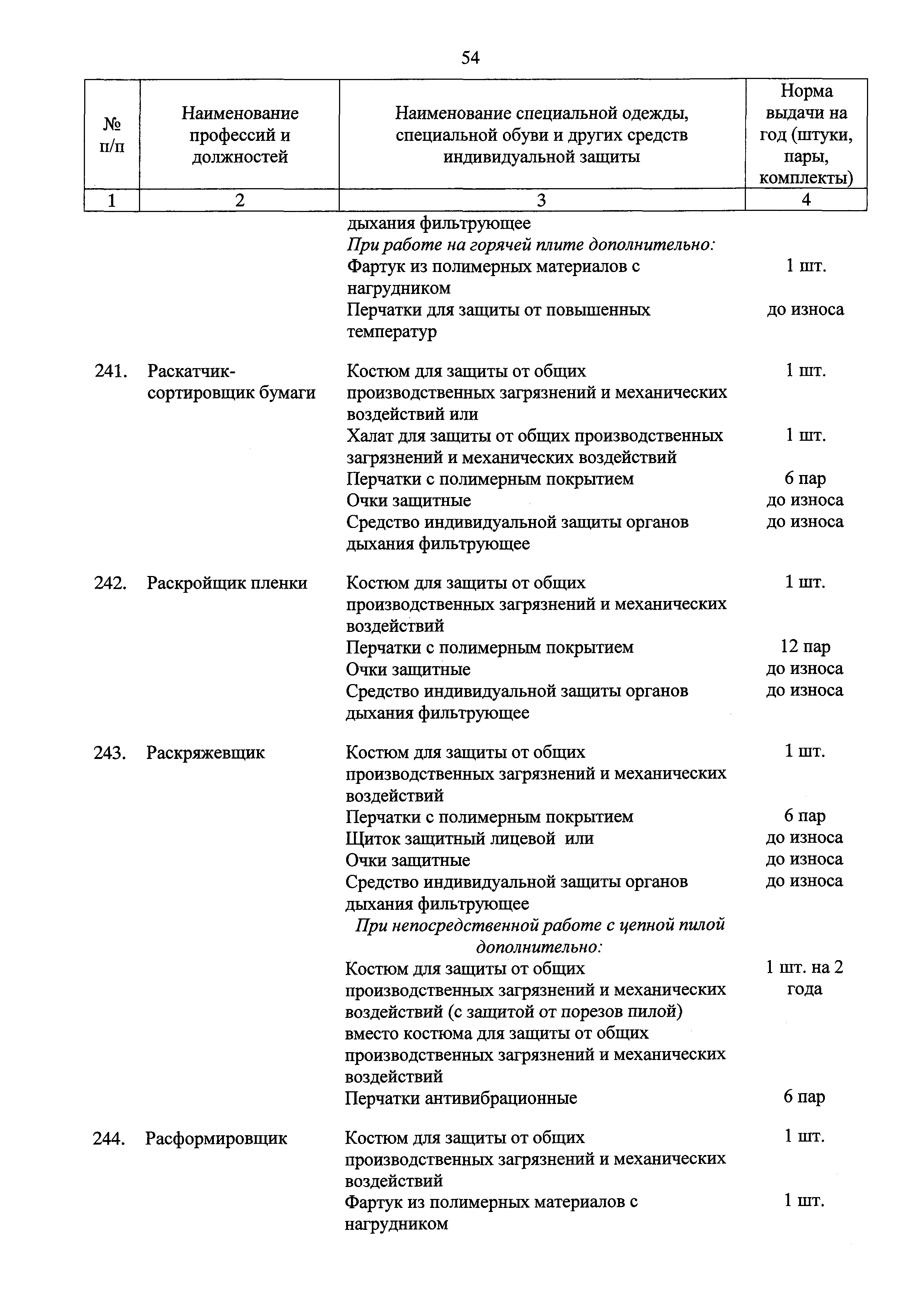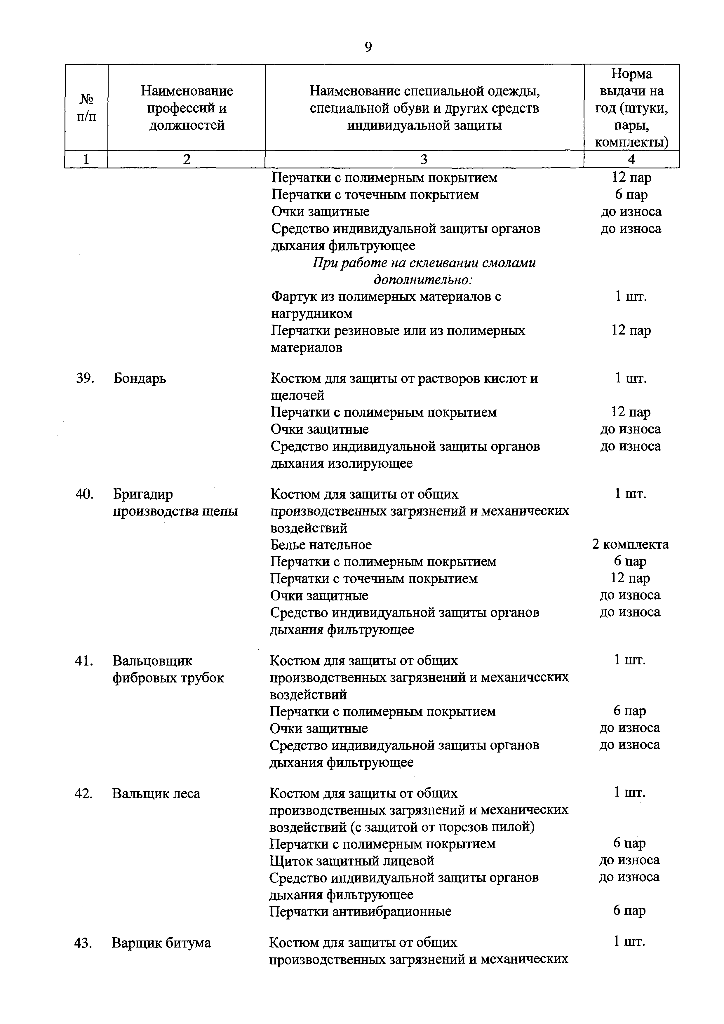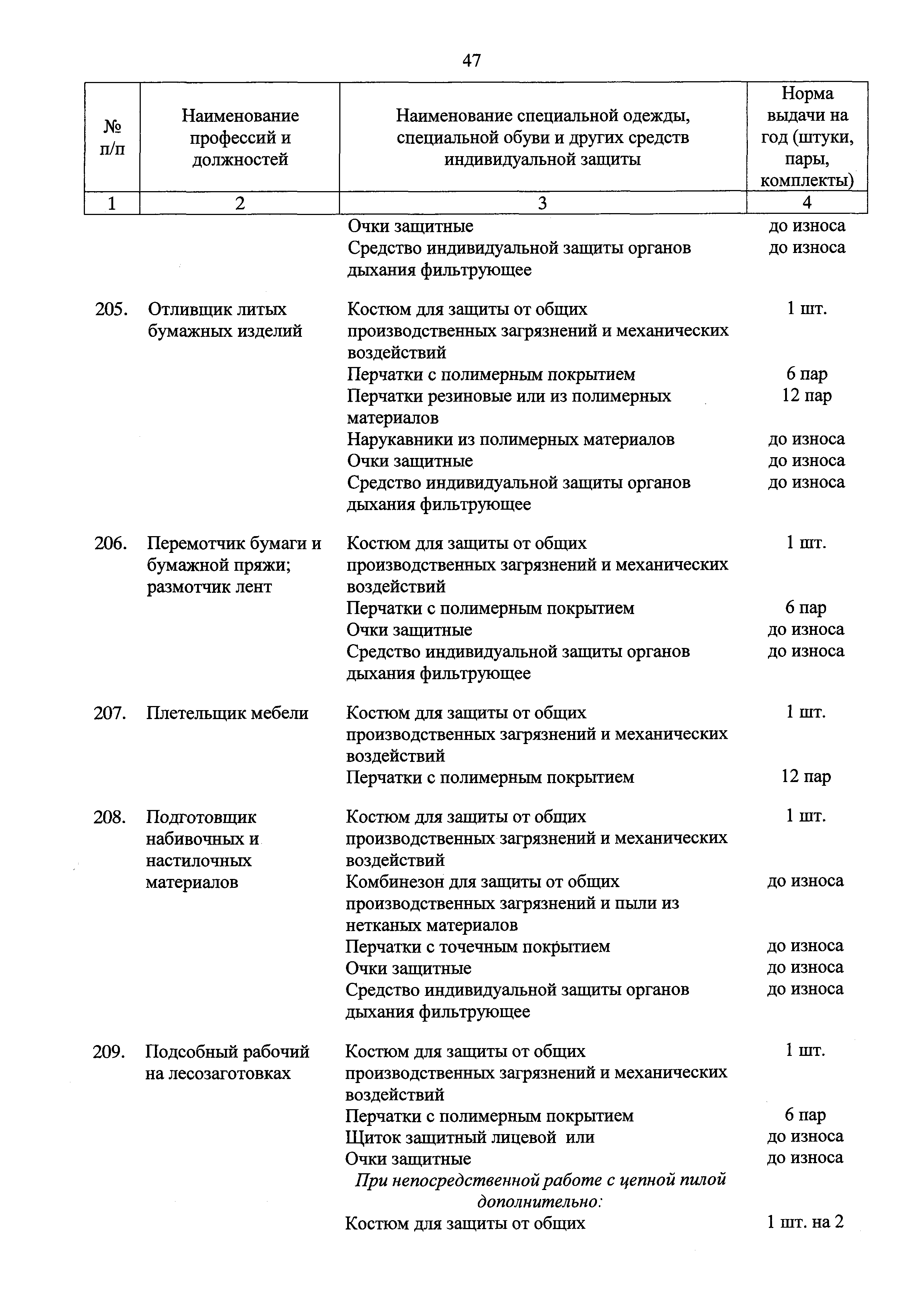 Скачать Типовые нормы бесплатной выдачи специальной одежды, специальной обуви и других средств индивидуальной защиты работникам целлюлозно-бумажного, гидролизного , лесохимического и деревообрабатывающего производств, занятым на работах с вредными и (или) опасными условиями труда, а также выполняемых в особых температурных условиях или связанных с загрязнениемДата актуализации: 01.01.2021