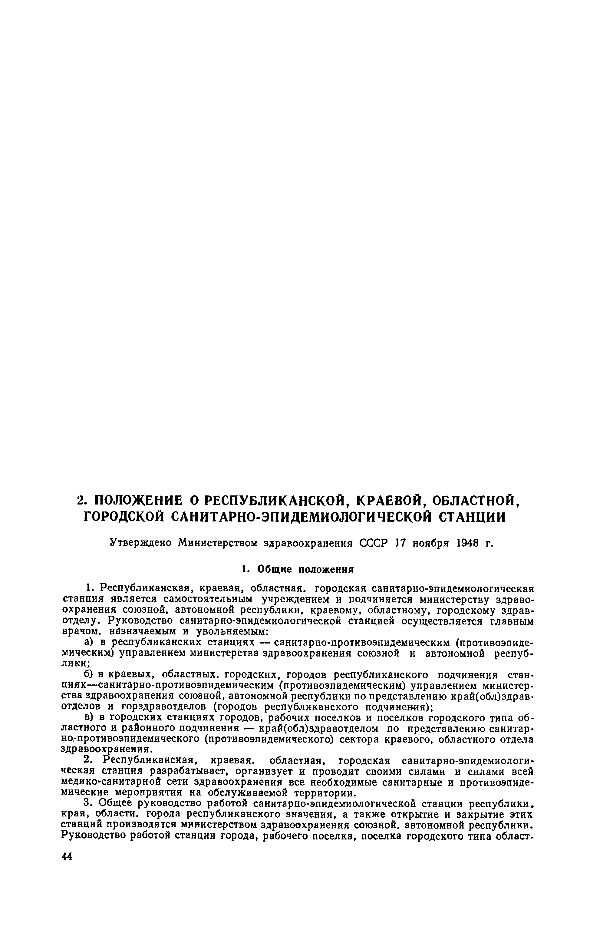 Положение о республиканской, краевой, областной, городской санитарно-эпидемиологической станции| Статус: | не действует | | Название рус.: | Положение о республиканской, краевой, областной, городской санитарно-эпидемиологической станции | | Дата добавления в базу: | 01.02.2017 | | Дата актуализации: | 01.01.2021 | | Оглавление: | I Общие положения II Задачи республиканской, краевой, областной, городской санитарно-эпидемиологической станции III Структура и штаты IV Бюджет и управление | | Утверждён: | 17.11.1948 Министерство здравоохранения СССР (USSR Ministry of Health Care )