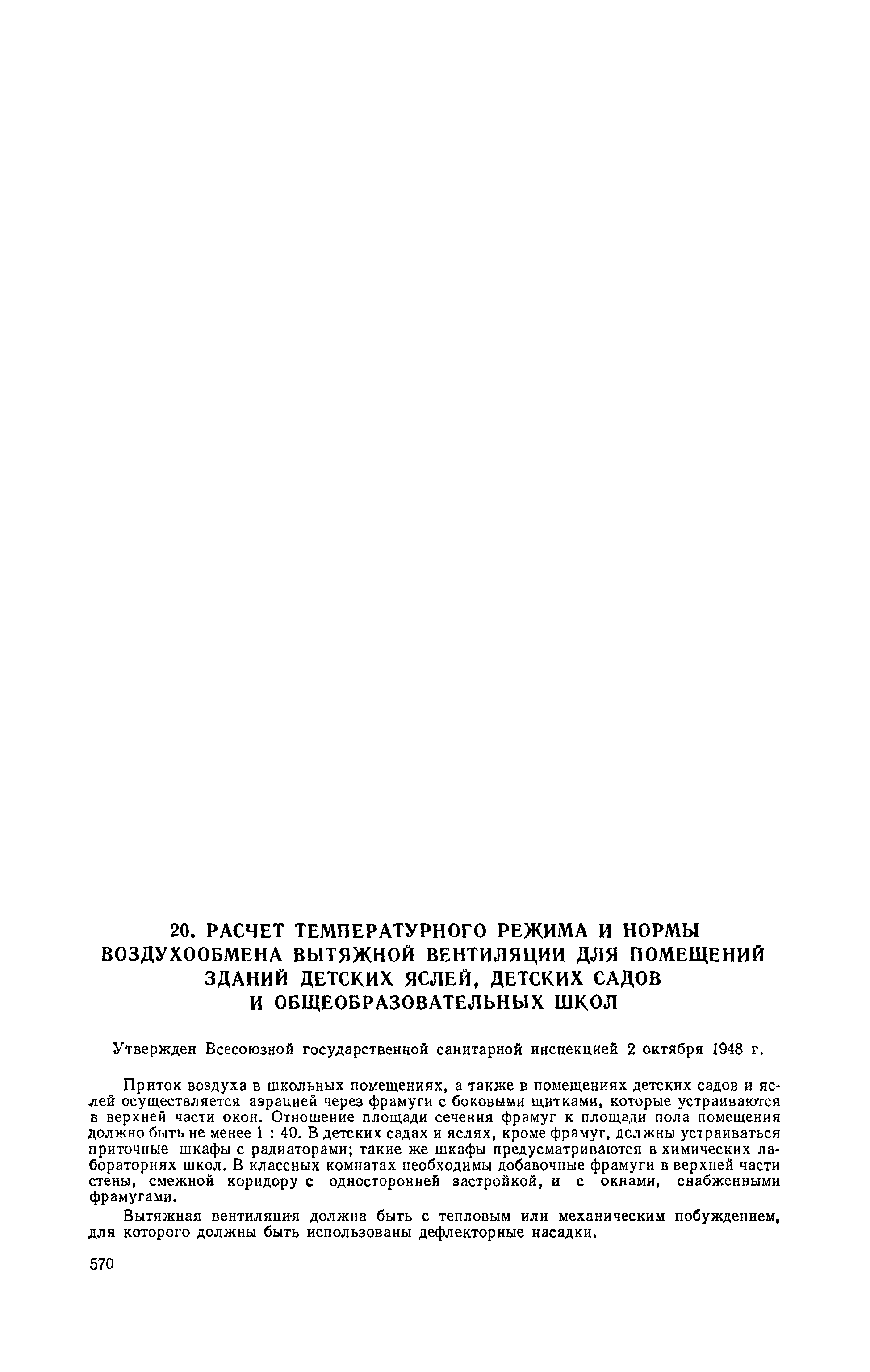 Расчет температурного режима и нормы воздухообмена вытяжной вентиляции для помещений зданий детских яслей, детских садов и общеобразовательных школ| Статус: | не действует | | Название рус.: | Расчет температурного режима и нормы воздухообмена вытяжной вентиляции для помещений зданий детских яслей, детских садов и общеобразовательных школ | | Дата добавления в базу: | 01.02.2017 | | Дата актуализации: | 01.01.2021 | | Утверждён: | 02.10.1948 Всесоюзная Государственная санитарная инспекция