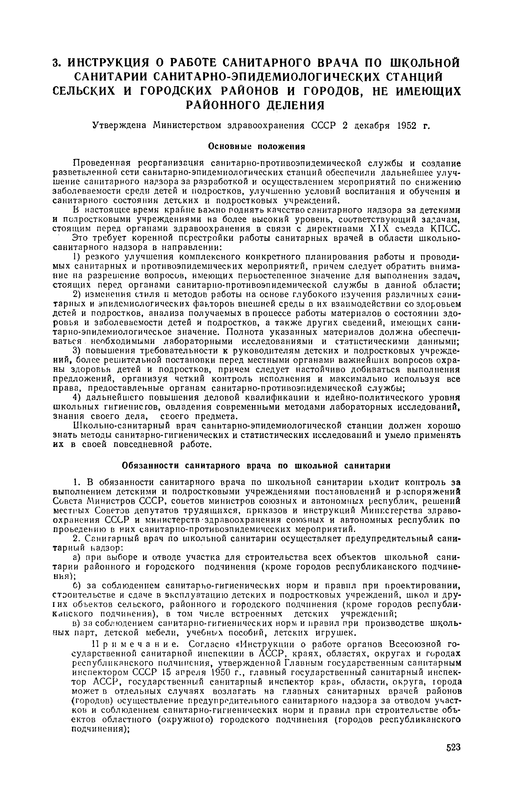 Инструкция о работе государственного санитарного инспектора по школьной санитарии санитарно-эпидемиологических станций сельских и городских районов и городов, не имеющих районного деления| Статус: | не действует | | Название рус.: | Инструкция о работе государственного санитарного инспектора по школьной санитарии санитарно-эпидемиологических станций сельских и городских районов и городов, не имеющих районного деления | | Дата добавления в базу: | 01.02.2017 | | Дата актуализации: | 01.01.2021 | | Утверждён: | 02.12.1952 Министерство здравоохранения СССР (USSR Ministry of Health Care )
