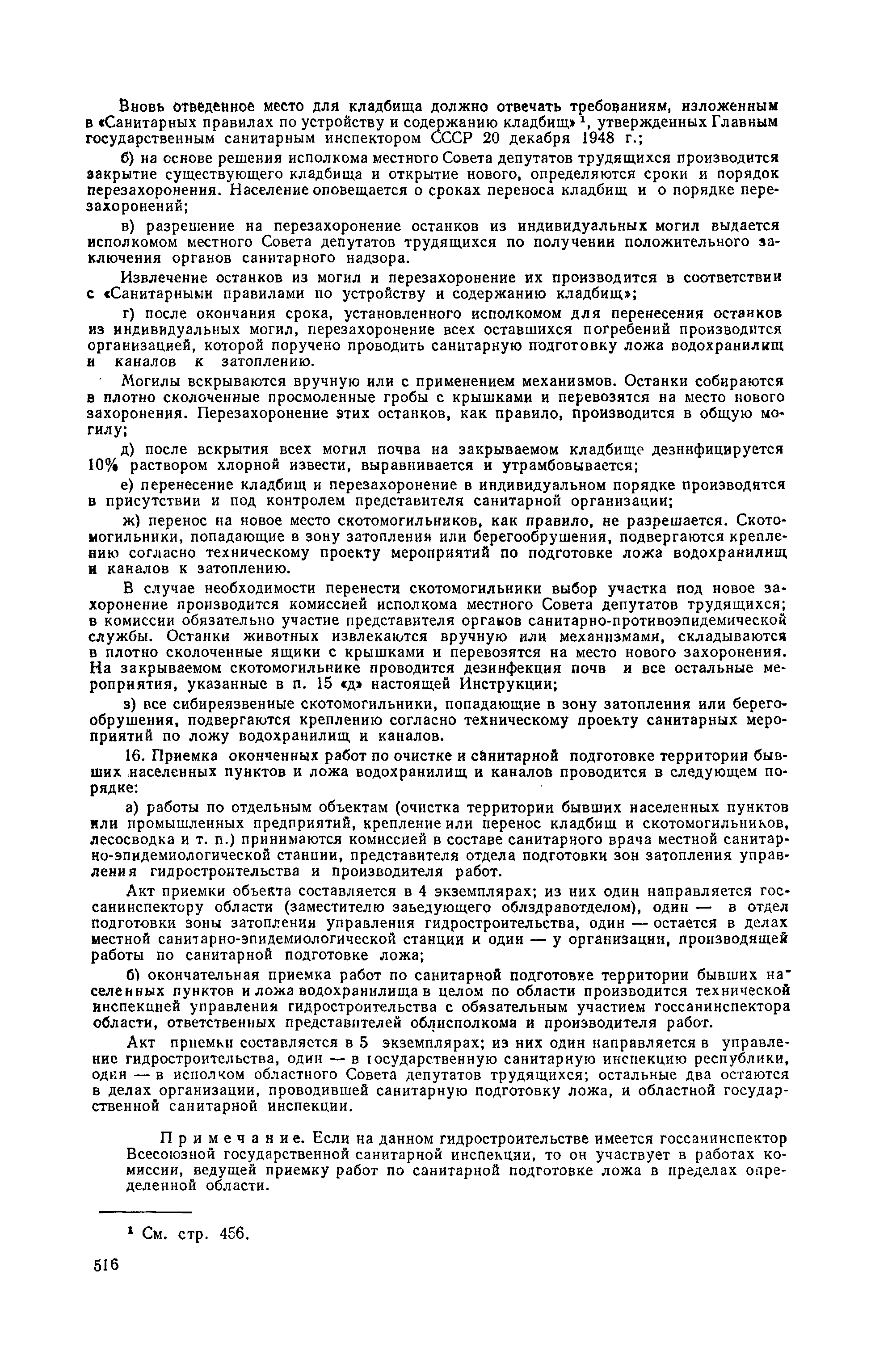 Инструкция о санитарных мероприятиях при переносе населенных пунктов из зоны затопления, подтопления и по малярийным показаниям при строительстве гидроузлов| Статус: | не действует | | Название рус.: | Инструкция о санитарных мероприятиях при переносе населенных пунктов из зоны затопления, подтопления и по малярийным показаниям при строительстве гидроузлов | | Дата добавления в базу: | 01.02.2017 | | Дата актуализации: | 01.01.2021 | | Утверждён: | 12.03.1952 Министерство здравоохранения СССР (USSR Ministry of Health Care )