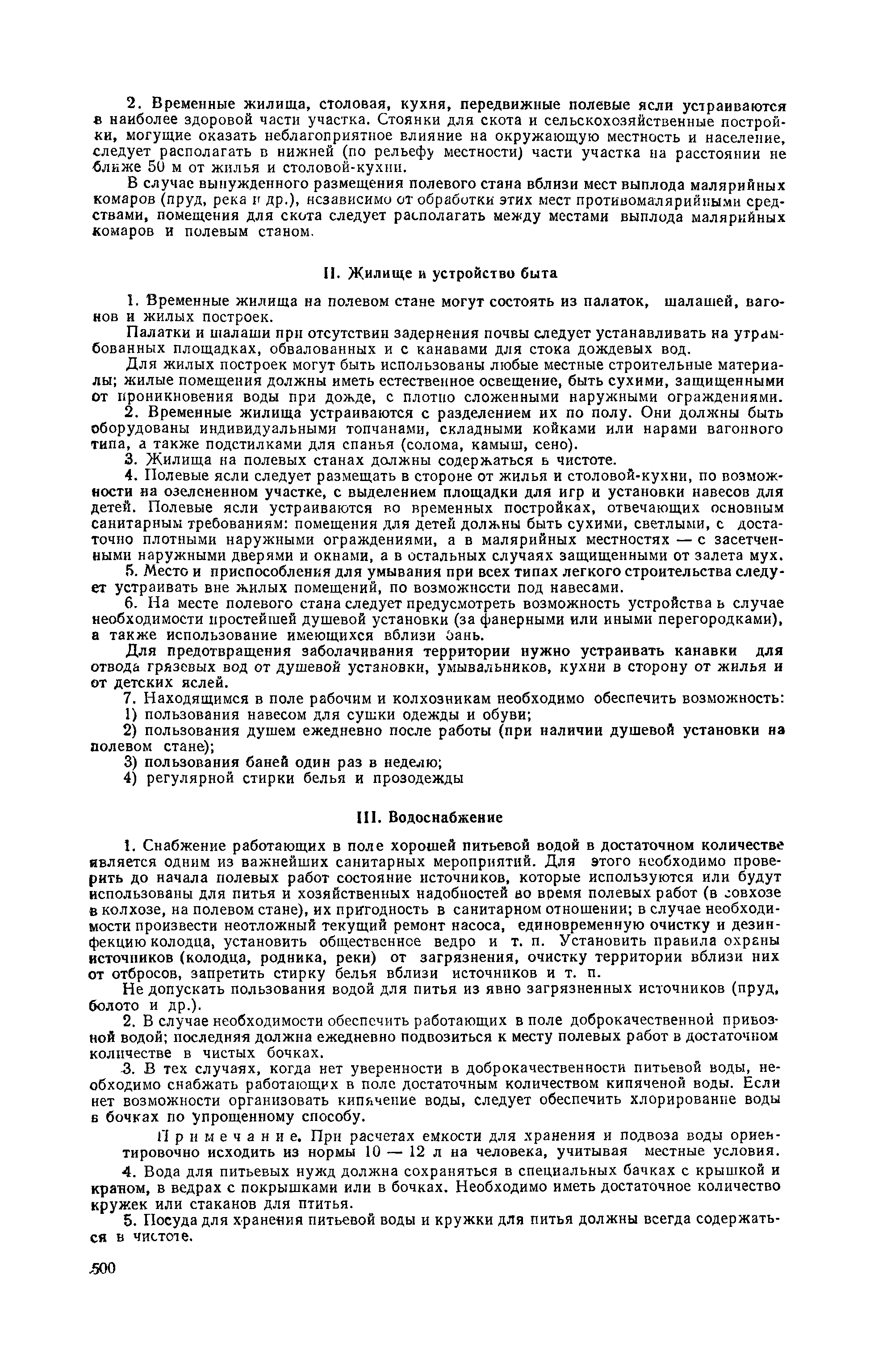 | Оглавление: | I. Устройство полевых станов II. Жилище и устройство быта III. Водоснабжение IV. Общественное питание V. Удаление отбросов и очистка территории VI. Гигиена труда и техника безопасности VII. Санитарно-просветительная работа VIII. Наблюдение за проведение санитарных мероприятий |