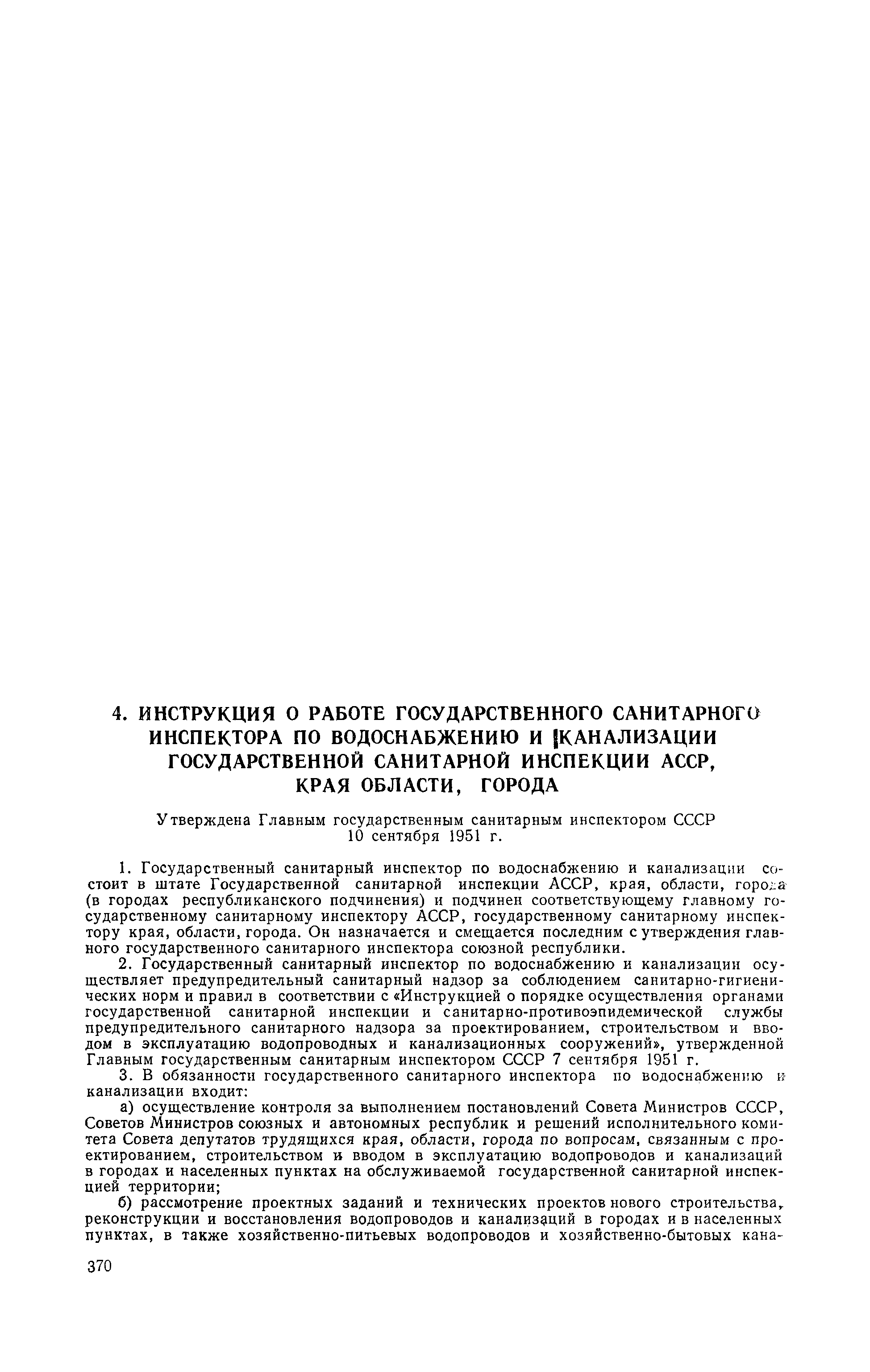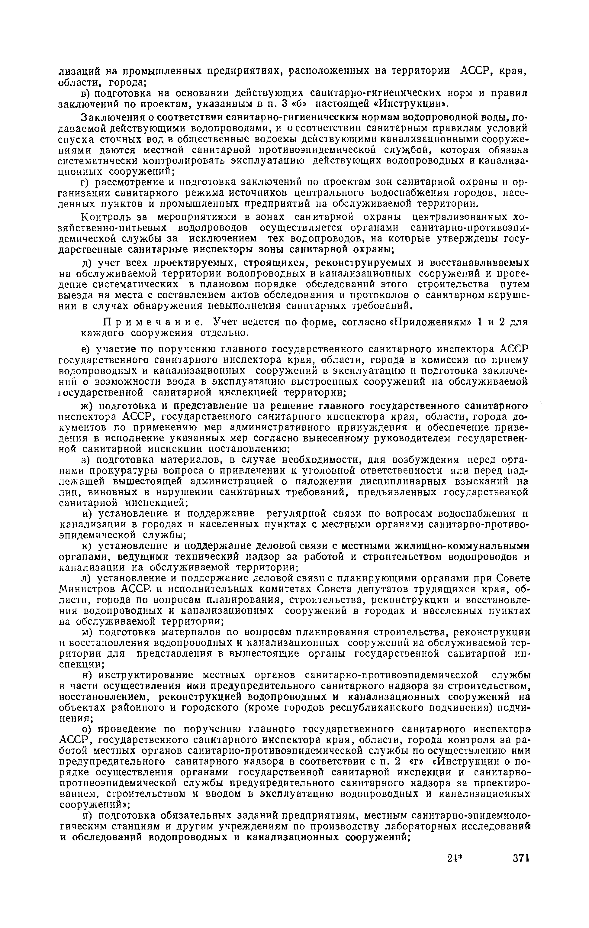 Скачать Инструкция о работе государственного санитарного инспектора по водоснабжению и канализации государственной санитарной инспекции АССР, края, области, городаДата актуализации: 01.01.2021