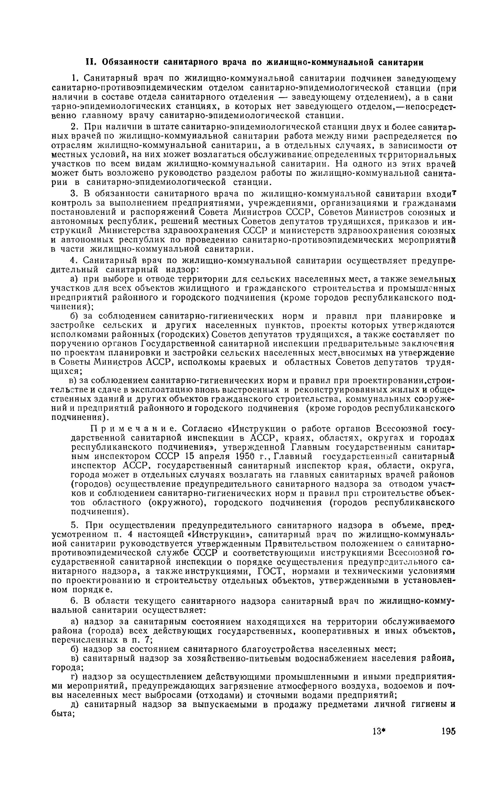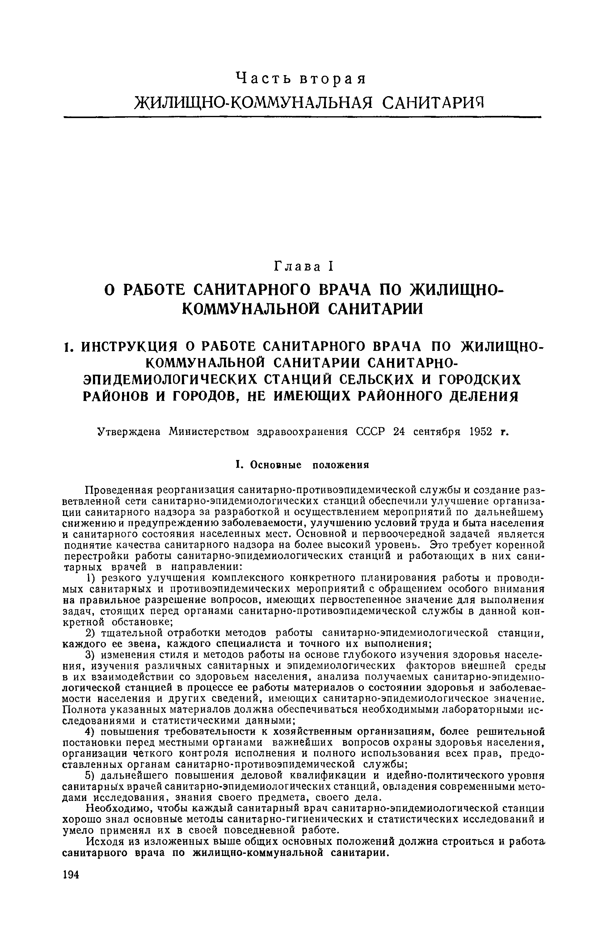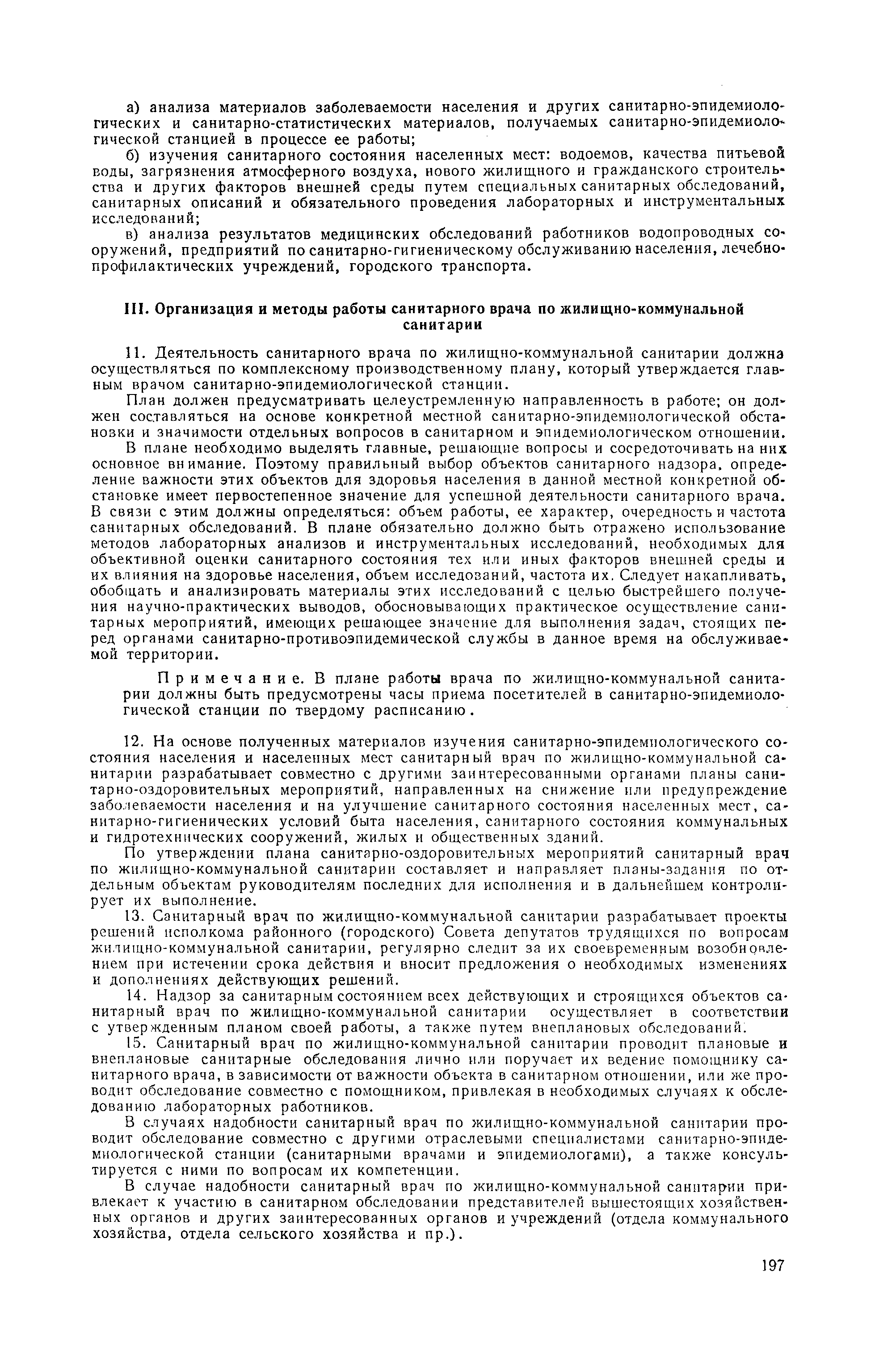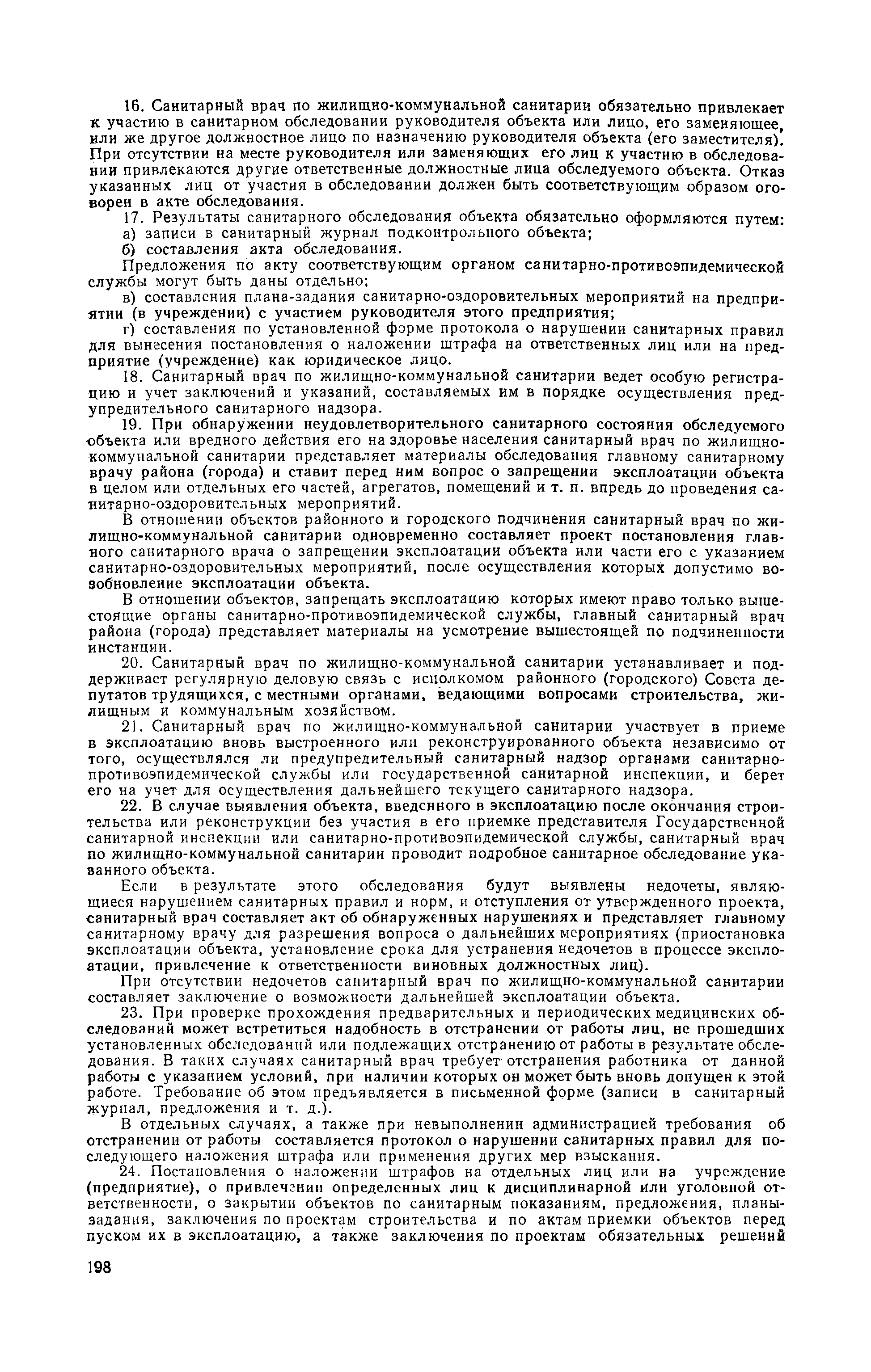 Инструкция о работе санитарного врача по жилищно-коммунальной санитарии санитарно-эпидемиологических станций сельских и городских районов и городов, не имеющих районного деления| Статус: | не действует | | Название рус.: | Инструкция о работе санитарного врача по жилищно-коммунальной санитарии санитарно-эпидемиологических станций сельских и городских районов и городов, не имеющих районного деления | | Дата добавления в базу: | 01.02.2017 | | Дата актуализации: | 01.01.2021 | | Оглавление: | I Основные положения II Обязанности санитарного врача по жилищно-коммунальной санитарии III Организация и методы работы санитарного врача по жилищно-коммунальной санитарии | | Утверждён: | 24.09.1952 Министерство здравоохранения СССР (USSR Ministry of Health Care )