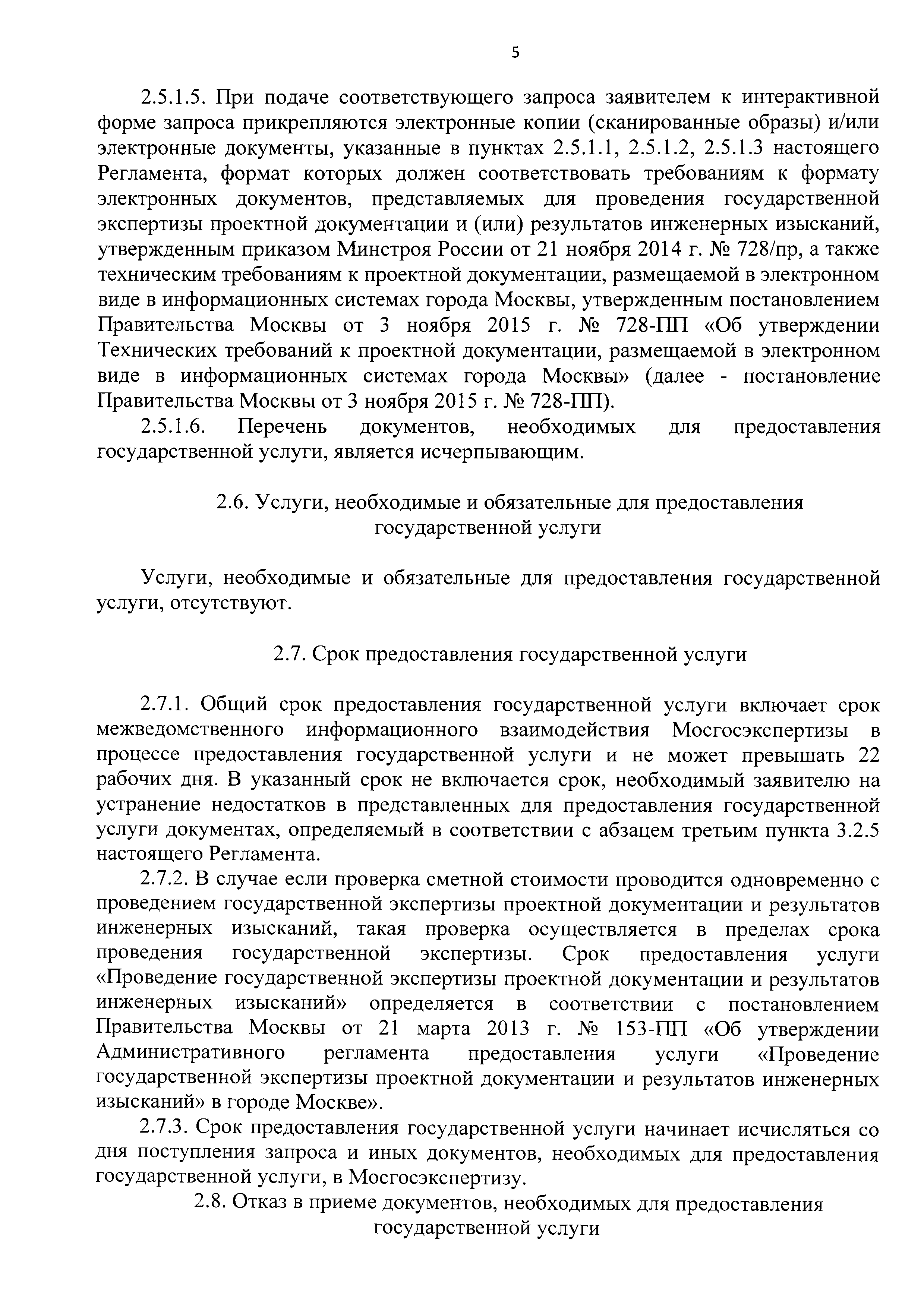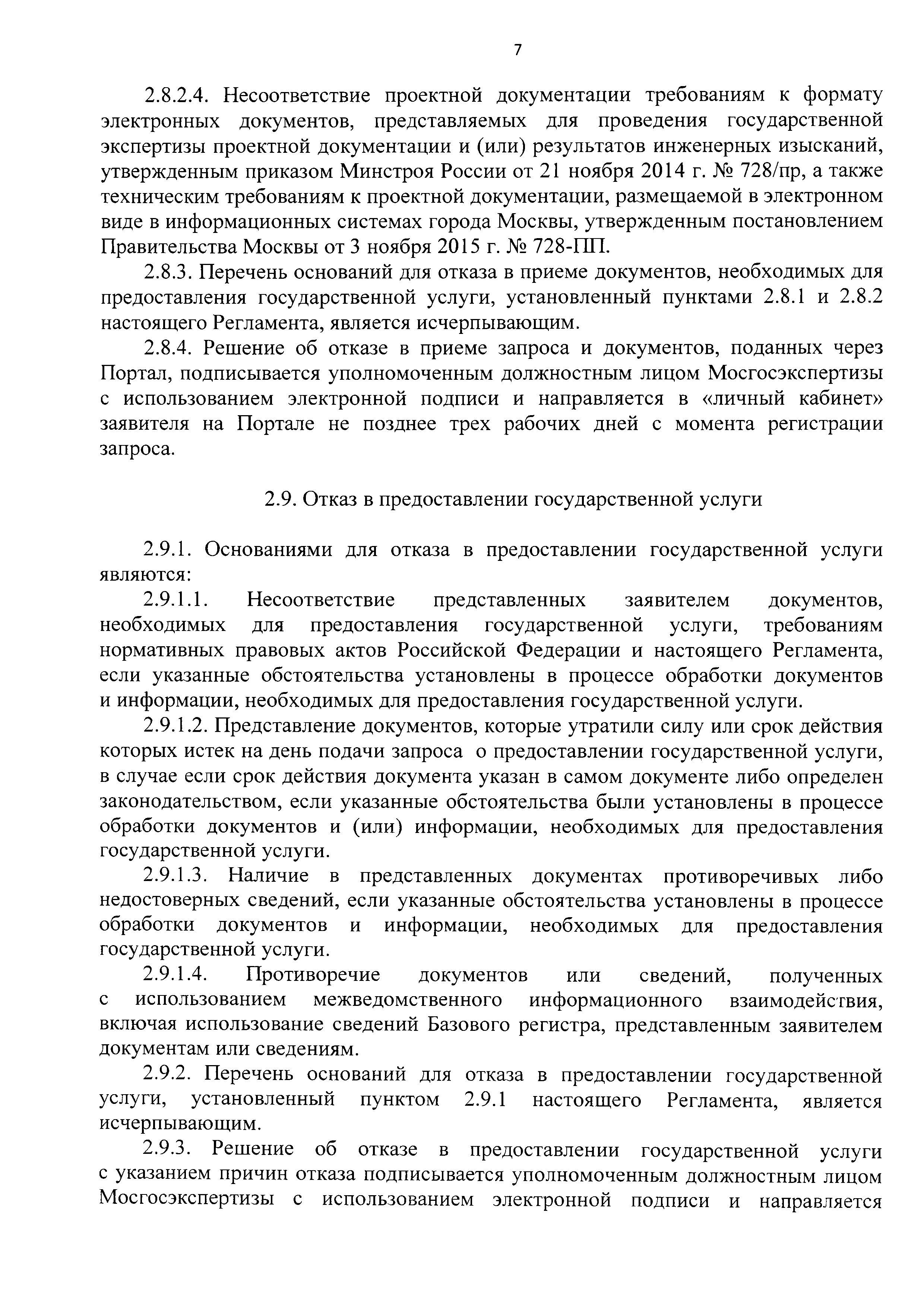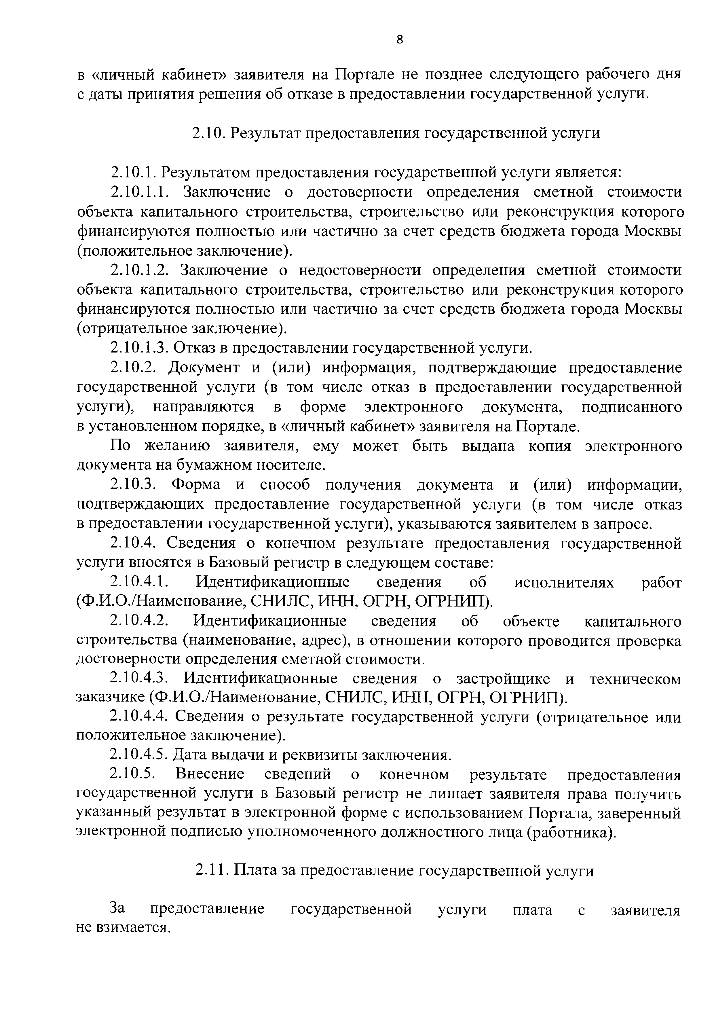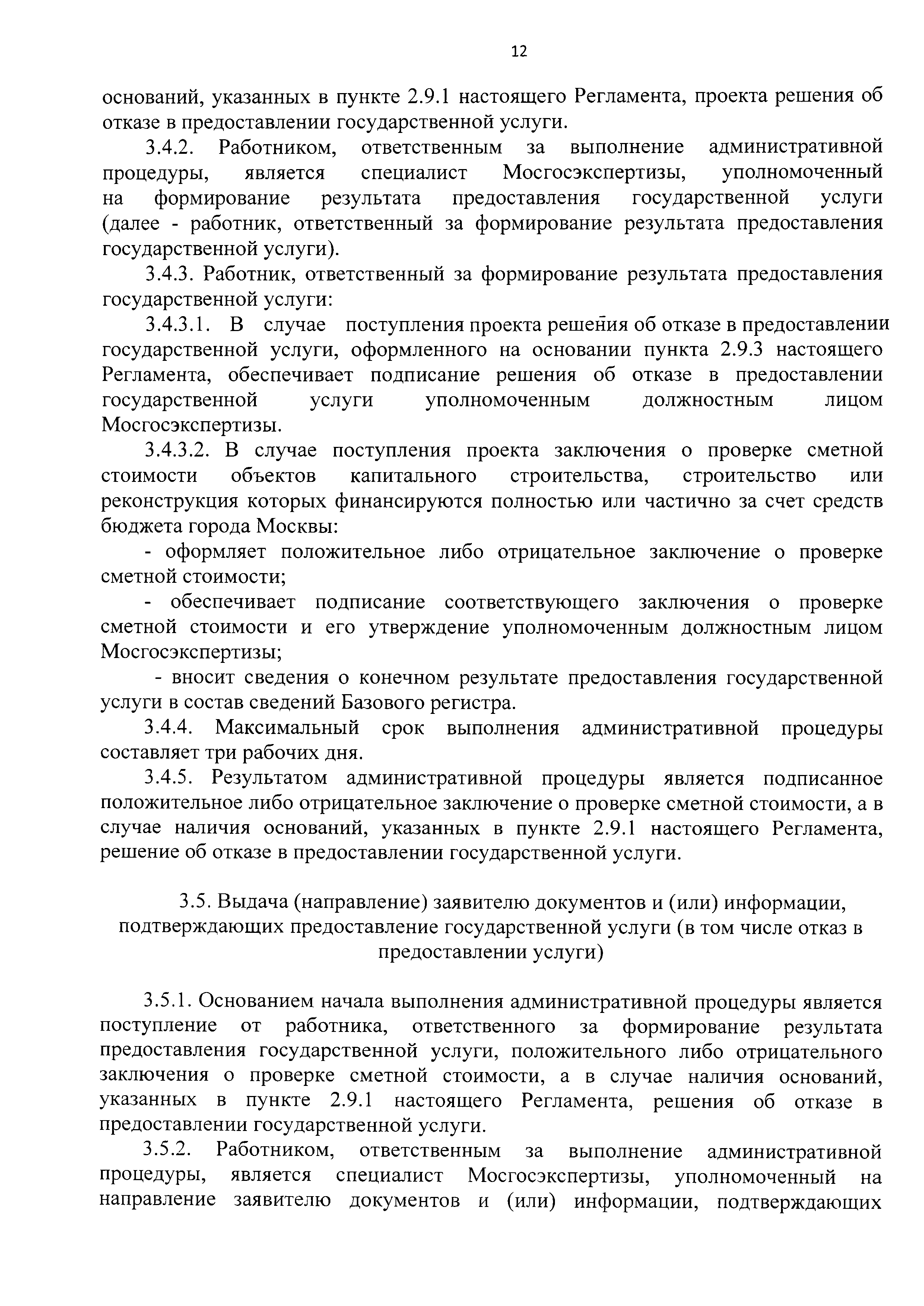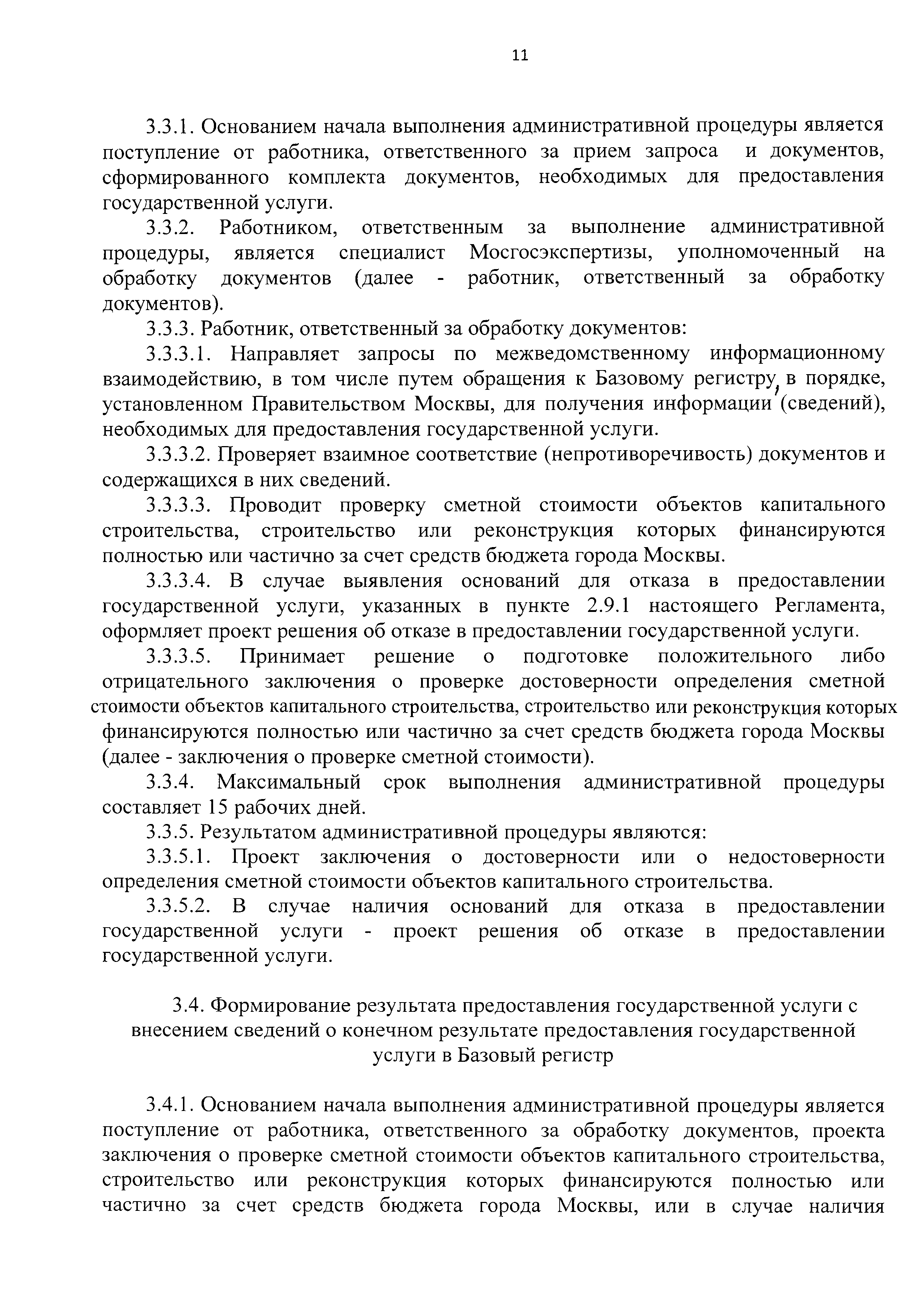 | Оглавление: | 1. Общие положения 2. Стандарт предоставления государственной услуги 3. Состав, последовательность и сроки выполнения административных процедур, требования к порядку их выполнения, особенности выполнения административных процедур в электронной форме 4. Формы контроля за исполнением настоящего Регламента 5. Досудебный (внесудебный) порядок обжалования решений и действий (бездействия) Мосгосэкспертизы и ее работников |