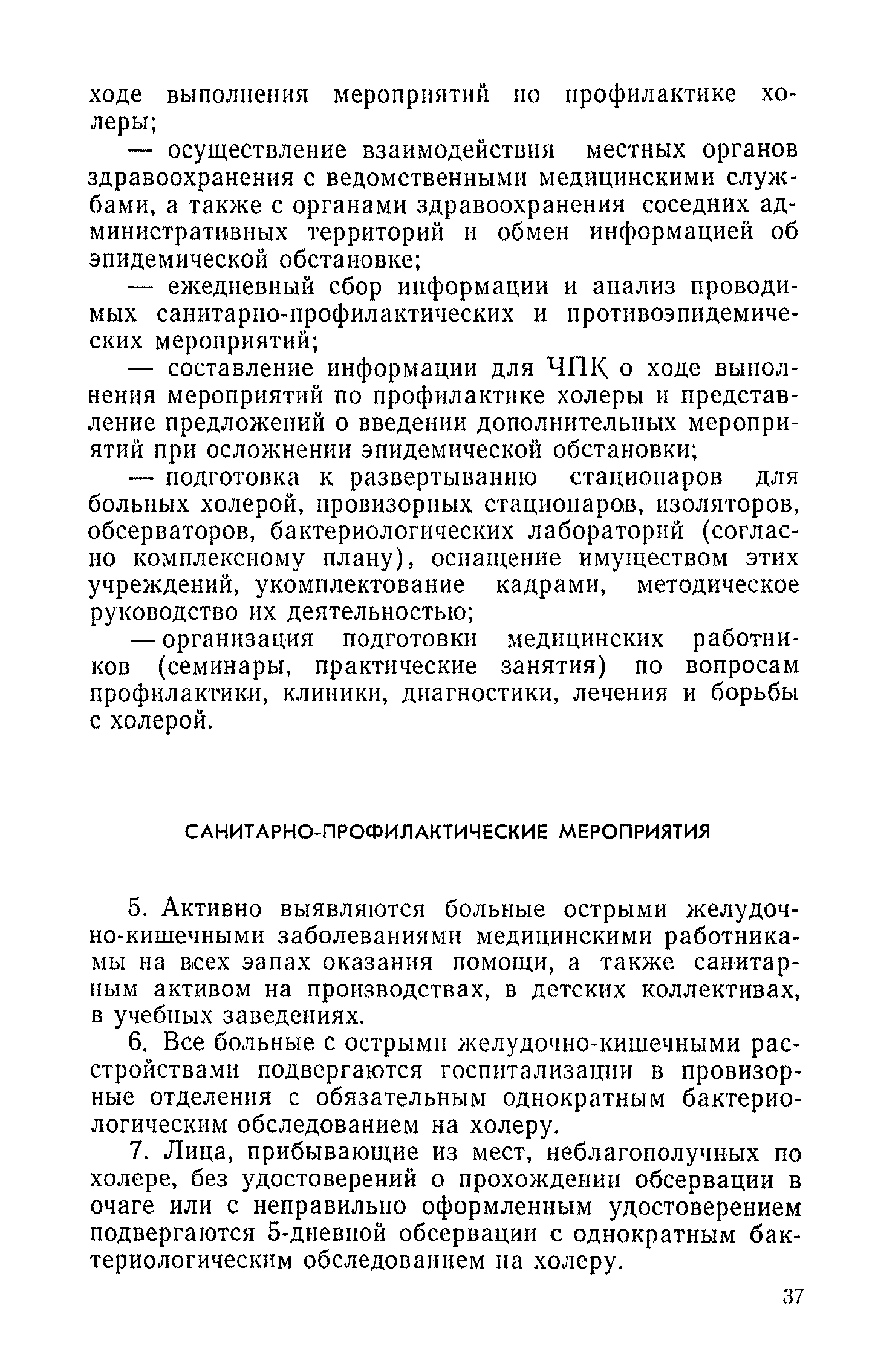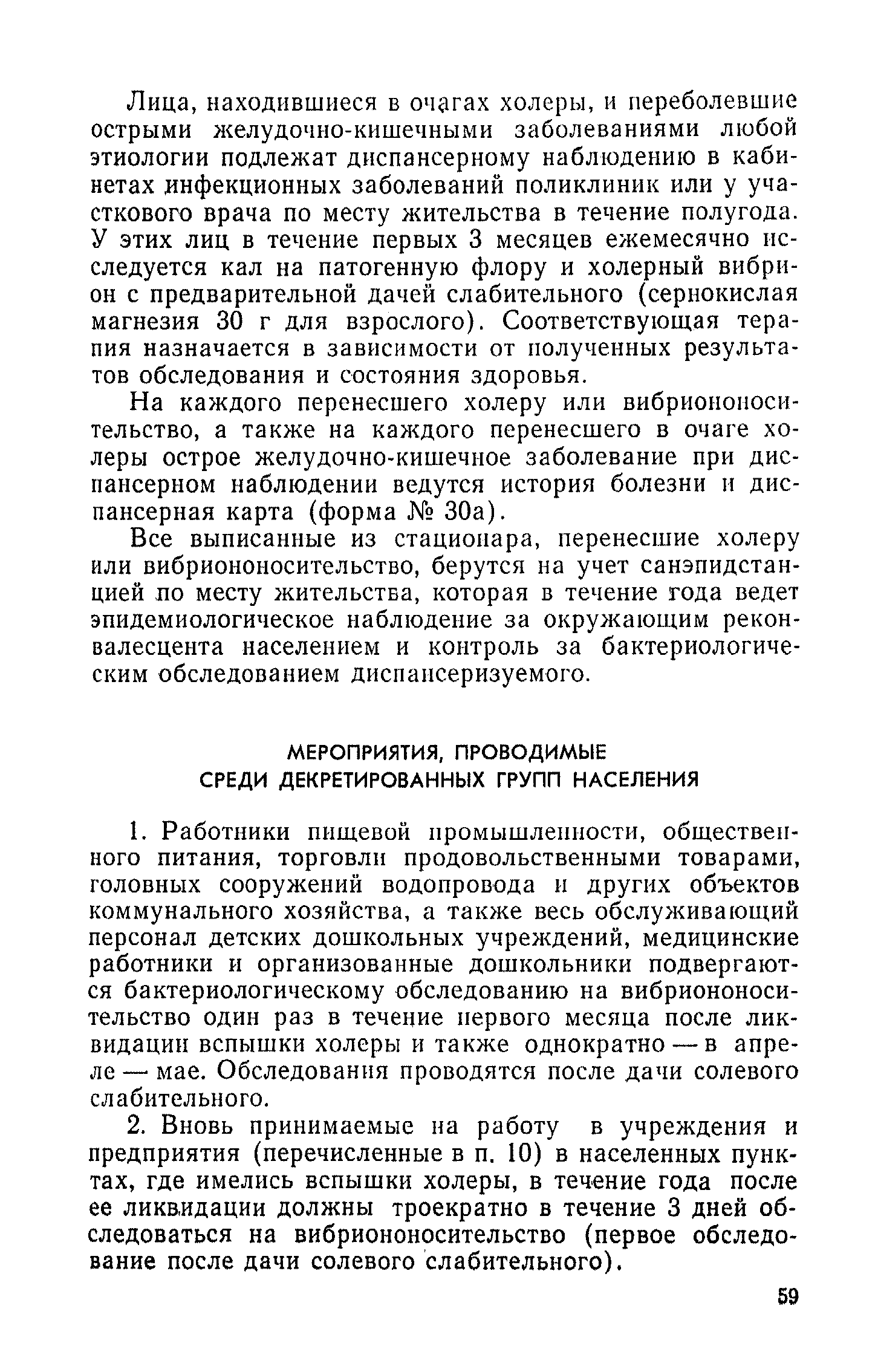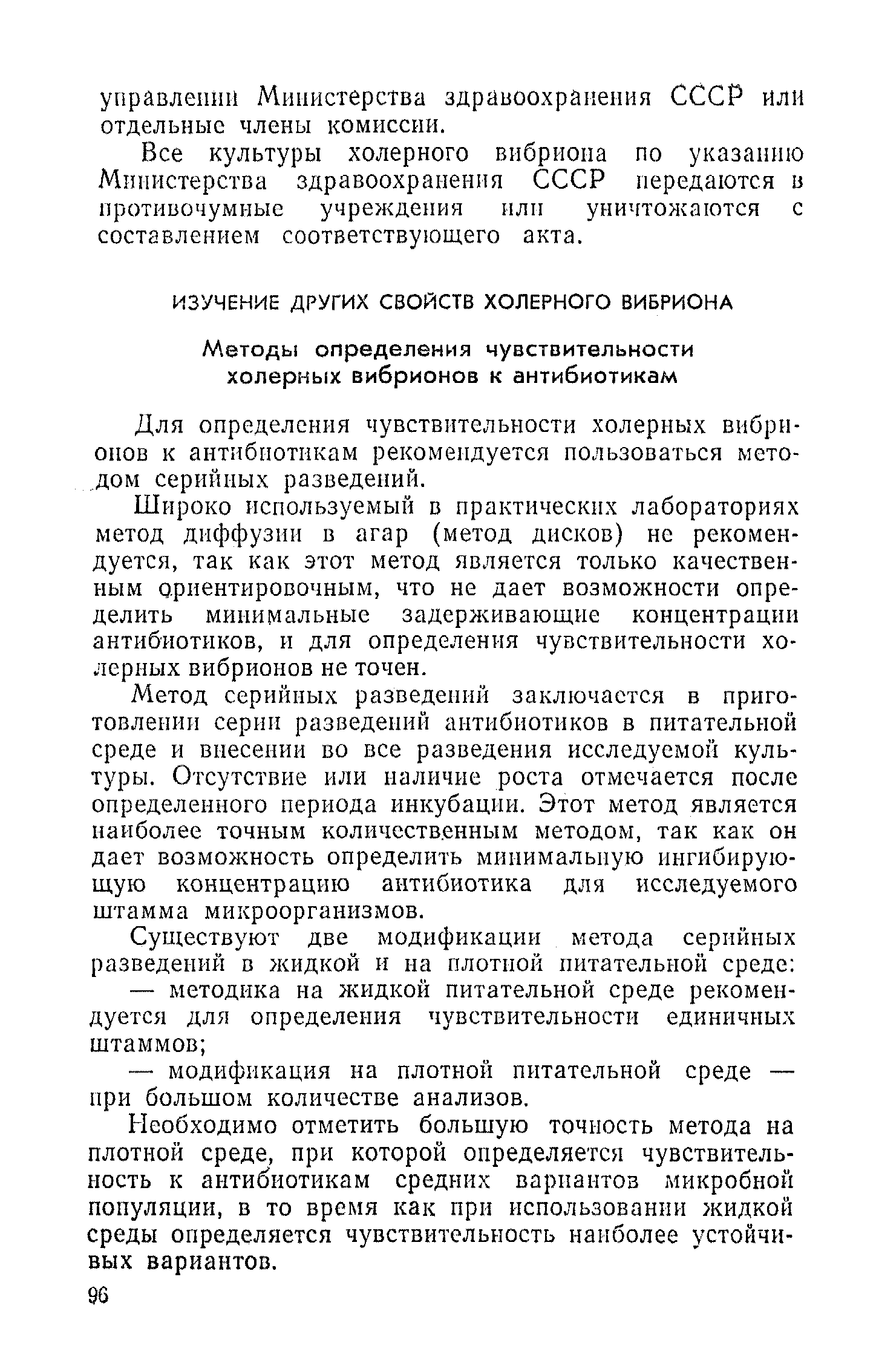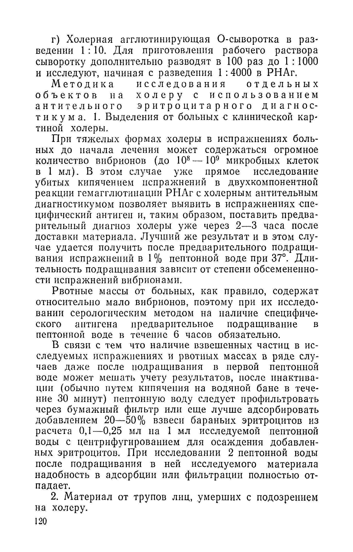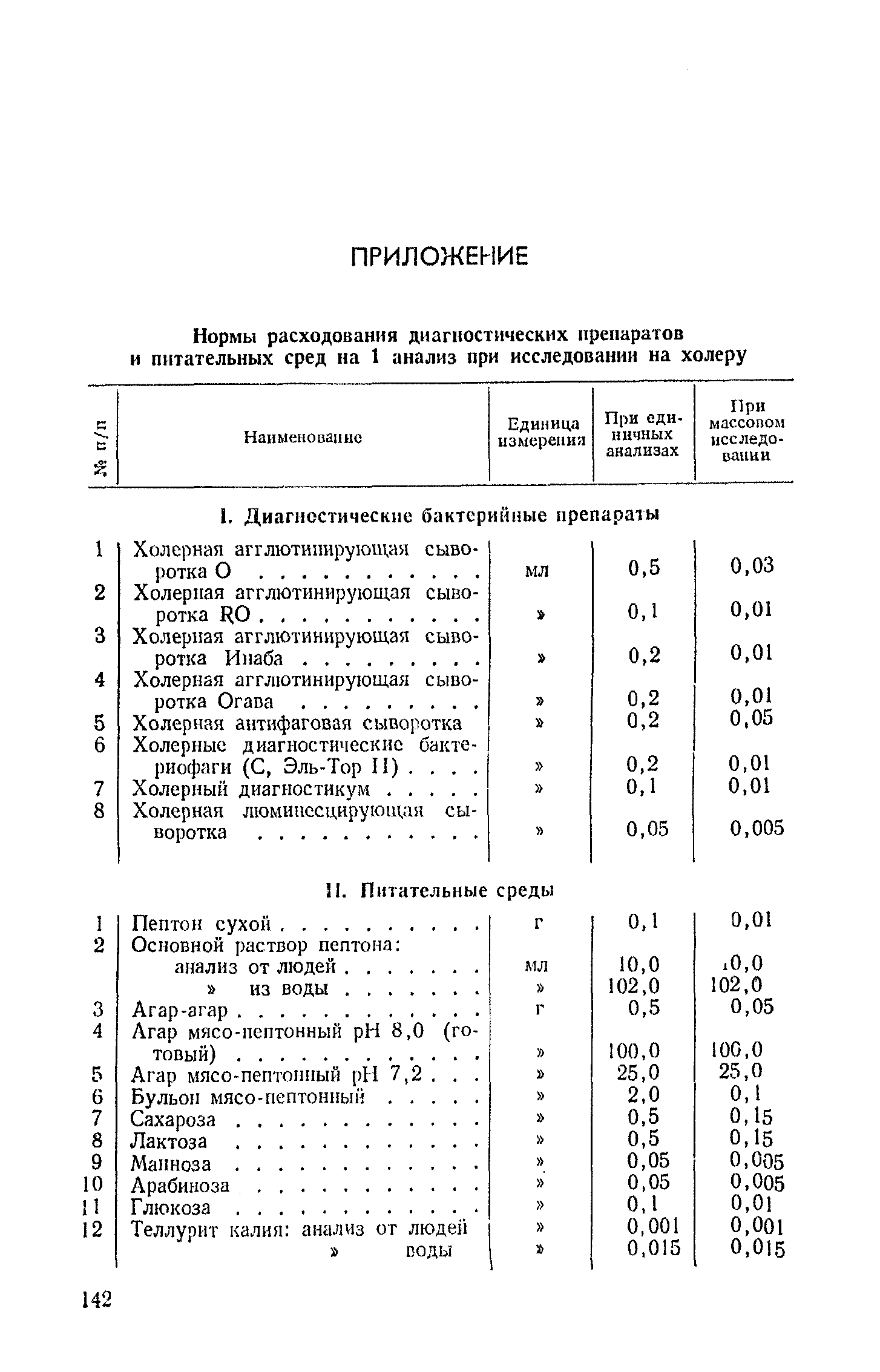 Инструкция и методические указания по клинической и лабораторной диагностике, лечению и профилактике холеры| Статус: | действует | | Название рус.: | Инструкция и методические указания по клинической и лабораторной диагностике, лечению и профилактике холеры | | Дата добавления в базу: | 01.02.2017 | | Дата актуализации: | 01.01.2021 | | Оглавление: | Общие сведения о холере Клиническая диагностика и лечение больных холерой Патогенез Патологическая анатомия Клиника Лечение Устройство и режим холерного стационара Устройство и режим провизорного стационара Профилактические мероприятия Организационные мероприятия Санитарно-профилактические мероприятия Санитарно-профилактические мероприятия при угрозе распространения холеры Организационные мероприятия Санитарно-профилактические мероприятия Санитарно-профилактические мероприятия по обеспечению передвижения людей и перевозки грузов из неблагополучных по холере районов Мероприятия по локализации и ликвидации вспышки холеры Ограничительные меры и карантин Выявление больных холерой и острыми желудочно-кишечными заболеваниями Выявление вибриононосителей Выявление лиц, находившихся в контакте с больными холерой и вибриононосителями Транспортировка и госпитализация больных холерой, вибриононосителей, контактных с ними и больных острыми кишечными заболеваниями Эпидемиологическое обследование в очаге холеры Эпидемиологический анализ вспышки холеры Санитарно-гигиенические мероприятия в очаге холеры Мероприятия в населенных пунктах после ликвидации вспышки холеры Мероприятия в отношении лиц, перенесших заболевание холерой и вибриононосительство Мероприятия, проводимые среди декретированных групп населения Профилактические и санитарно-гигиенические мероприятия в населенных пунктах после ликвидации вспышки холеры Лабораторная диагностика холеры Порядок взятия и доставки материала на исследование Исследование материала от больного, трупа и от здоровых лиц на вибриононосительство Исследование воды, пищевых продуктов и других объектов внешней среды Питательные среды для выращивания холерных вибрионов Методика проверки качества питательных сред Идентификация культур холерного вибриона Морфология микробной клетки в окрашенных препаратах Изучение других свойств холерного вибриона Методы определения чувствительности холерных вибрионов к антибиотикам Определение патогенности вибрионов Тест вытеснения на питательных средах Ускоренные методы диагностики холеры Люминесцентно-серологический метод Метод экспрессной серологической идентификации холерных вибрионов с помощью фазовоконтрастного устройства - микроагглютинации (З. В. Ермольева, Н. И. Гивенталь) Метод иммобилизации и микроагглютинации вибрионов под влиянием специфической холерной О-сыворотки и типовых холерных бактериофагов Реакция агглютинации в пептонной воде с холерной О-сывороткой в разведении до 1/2 титра (Полева - Ермольевой) Реакция агглютинации с холерной О-сывороткой в пептонной воде и проба с диагностическим бактериофагом Методика быстрого обнаружения холерных вибрионов в питьевой воде при помощи реакции агглютинации Серологические методы исследования Реакция агглютинации Определение вибриоцидных антител в сыворотке Реакция непрямой гемагглютинации с использованием холерно