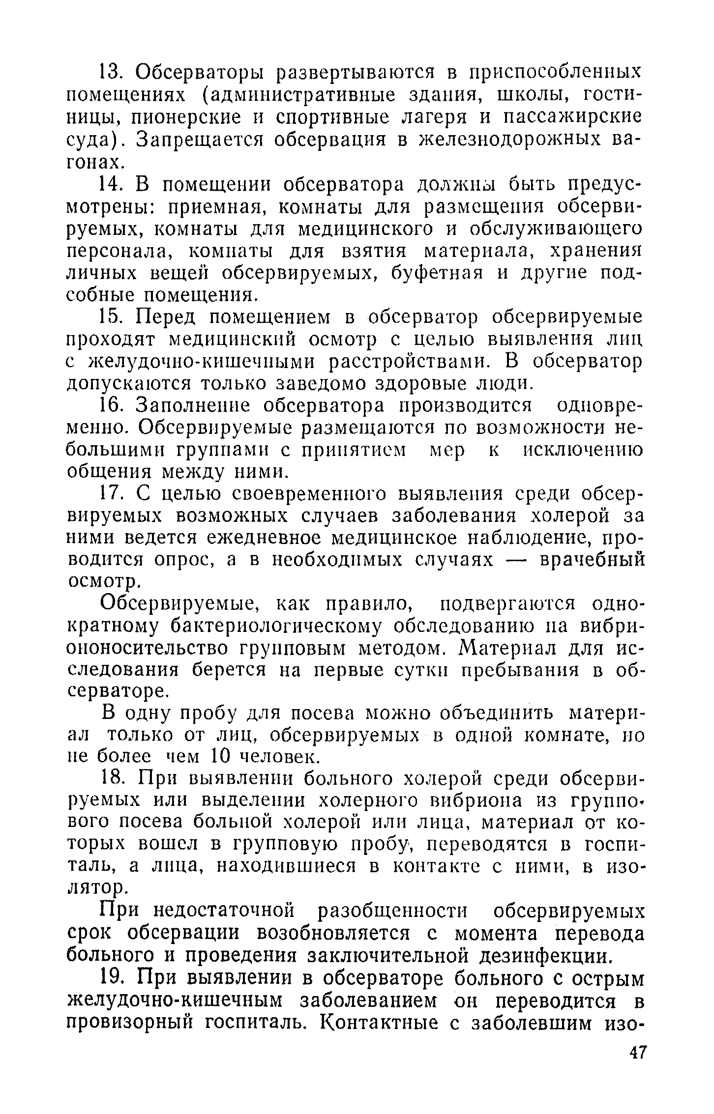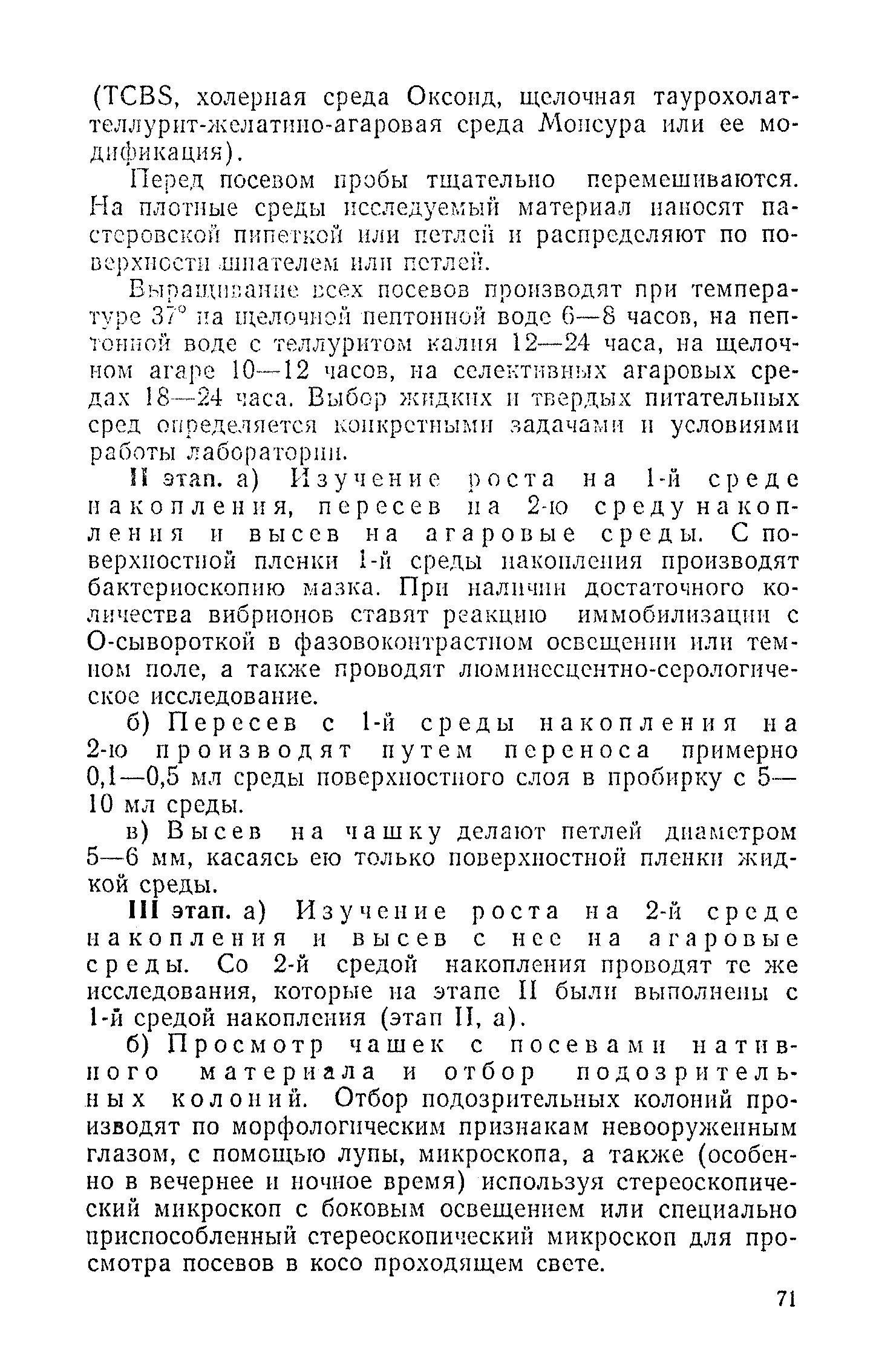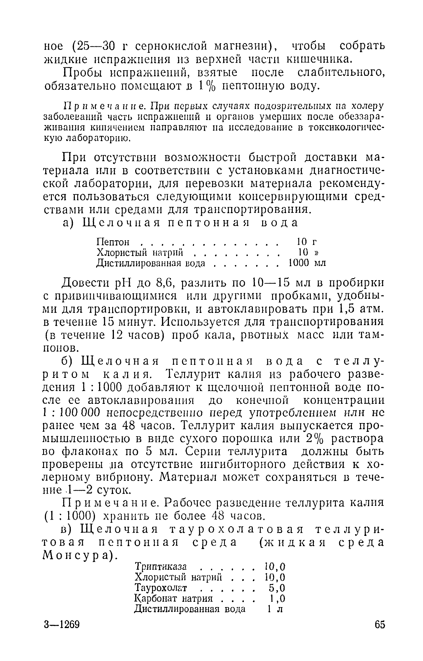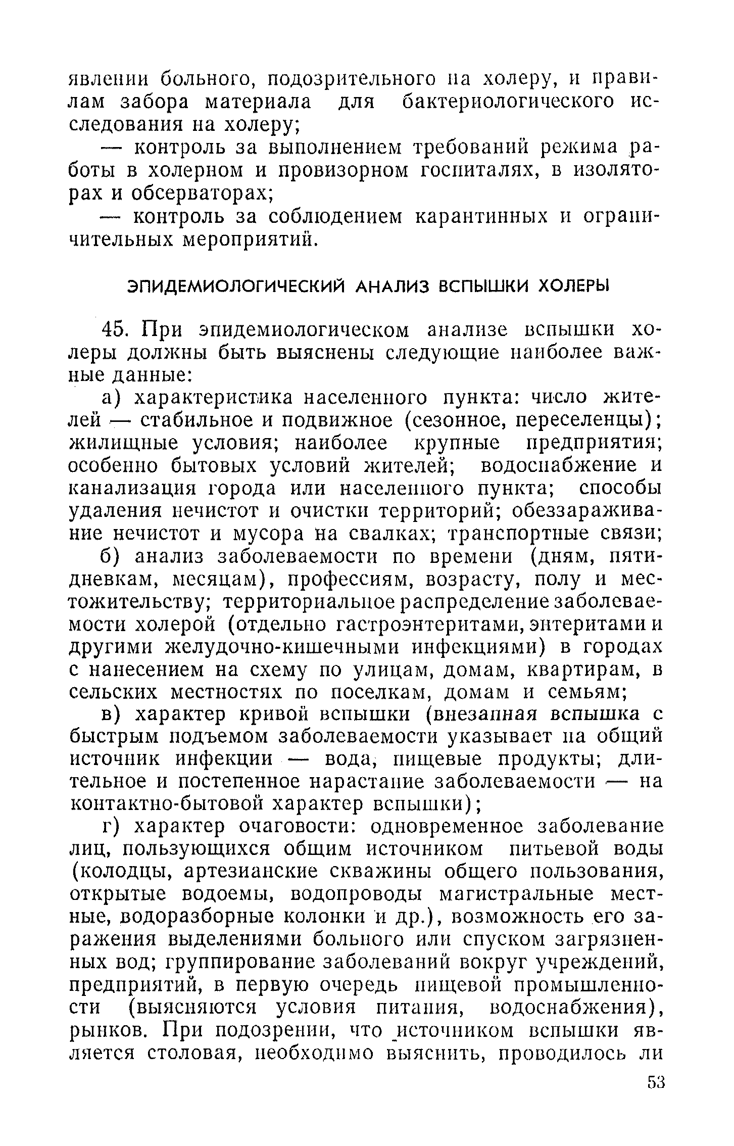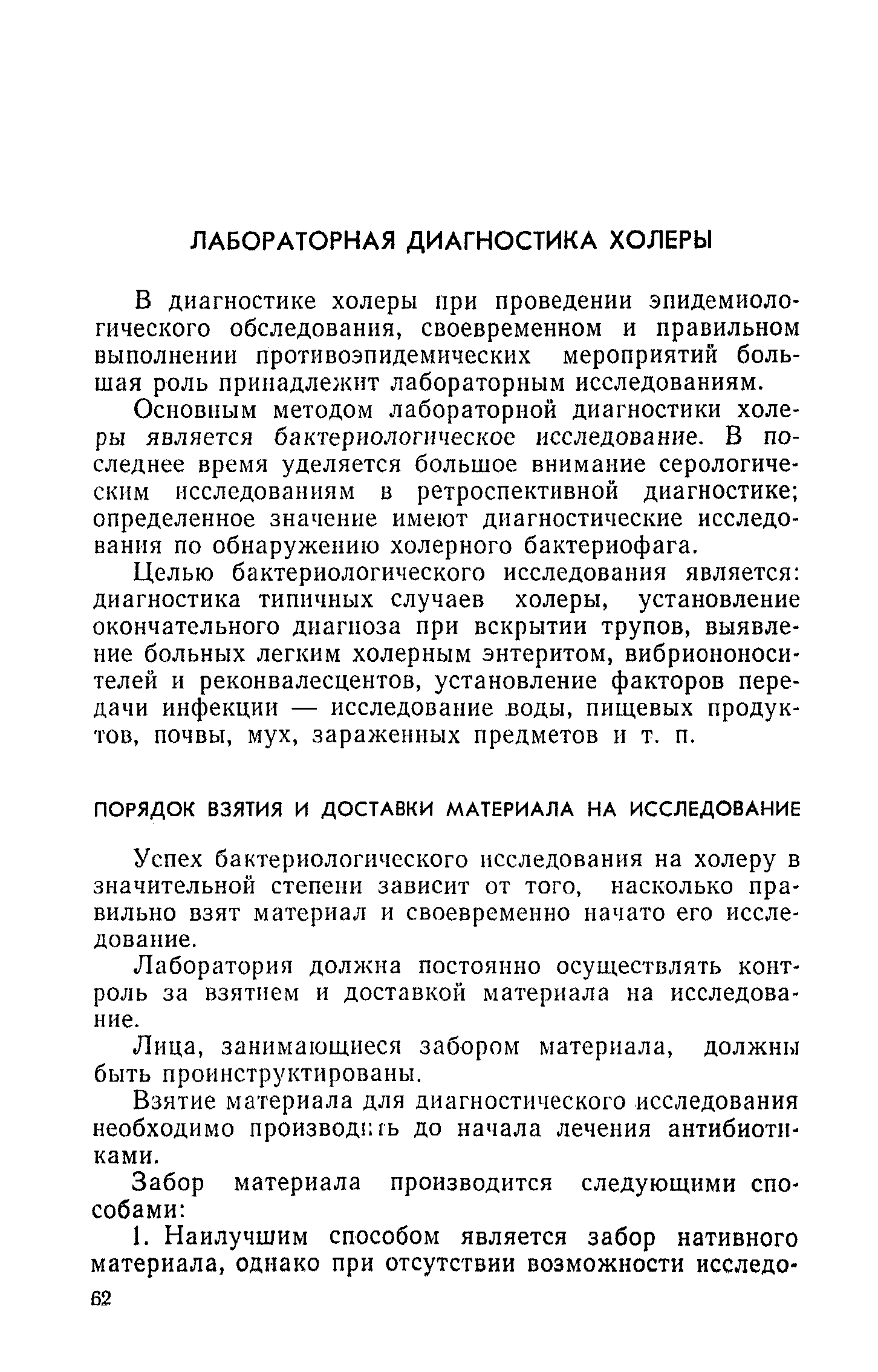 Инструкция и методические указания по клинической и лабораторной диагностике, лечению и профилактике холеры| Статус: | действует | | Название рус.: | Инструкция и методические указания по клинической и лабораторной диагностике, лечению и профилактике холеры | | Дата добавления в базу: | 01.02.2017 | | Дата актуализации: | 01.01.2021 | | Оглавление: | Общие сведения о холере Клиническая диагностика и лечение больных холерой Патогенез Патологическая анатомия Клиника Лечение Устройство и режим холерного стационара Устройство и режим провизорного стационара Профилактические мероприятия Организационные мероприятия Санитарно-профилактические мероприятия Санитарно-профилактические мероприятия при угрозе распространения холеры Организационные мероприятия Санитарно-профилактические мероприятия Санитарно-профилактические мероприятия по обеспечению передвижения людей и перевозки грузов из неблагополучных по холере районов Мероприятия по локализации и ликвидации вспышки холеры Ограничительные меры и карантин Выявление больных холерой и острыми желудочно-кишечными заболеваниями Выявление вибриононосителей Выявление лиц, находившихся в контакте с больными холерой и вибриононосителями Транспортировка и госпитализация больных холерой, вибриононосителей, контактных с ними и больных острыми кишечными заболеваниями Эпидемиологическое обследование в очаге холеры Эпидемиологический анализ вспышки холеры Санитарно-гигиенические мероприятия в очаге холеры Мероприятия в населенных пунктах после ликвидации вспышки холеры Мероприятия в отношении лиц, перенесших заболевание холерой и вибриононосительство Мероприятия, проводимые среди декретированных групп населения Профилактические и санитарно-гигиенические мероприятия в населенных пунктах после ликвидации вспышки холеры Лабораторная диагностика холеры Порядок взятия и доставки материала на исследование Исследование материала от больного, трупа и от здоровых лиц на вибриононосительство Исследование воды, пищевых продуктов и других объектов внешней среды Питательные среды для выращивания холерных вибрионов Методика проверки качества питательных сред Идентификация культур холерного вибриона Морфология микробной клетки в окрашенных препаратах Изучение других свойств холерного вибриона Методы определения чувствительности холерных вибрионов к антибиотикам Определение патогенности вибрионов Тест вытеснения на питательных средах Ускоренные методы диагностики холеры Люминесцентно-серологический метод Метод экспрессной серологической идентификации холерных вибрионов с помощью фазовоконтрастного устройства - микроагглютинации (З. В. Ермольева, Н. И. Гивенталь) Метод иммобилизации и микроагглютинации вибрионов под влиянием специфической холерной О-сыворотки и типовых холерных бактериофагов Реакция агглютинации в пептонной воде с холерной О-сывороткой в разведении до 1/2 титра (Полева - Ермольевой) Реакция агглютинации с холерной О-сывороткой в пептонной воде и проба с диагностическим бактериофагом Методика быстрого обнаружения холерных вибрионов в питьевой воде при помощи реакции агглютинации Серологические методы исследования Реакция агглютинации Определение вибриоцидных антител в сыворотке Реакция непрямой гемагглютинации с использованием холерно