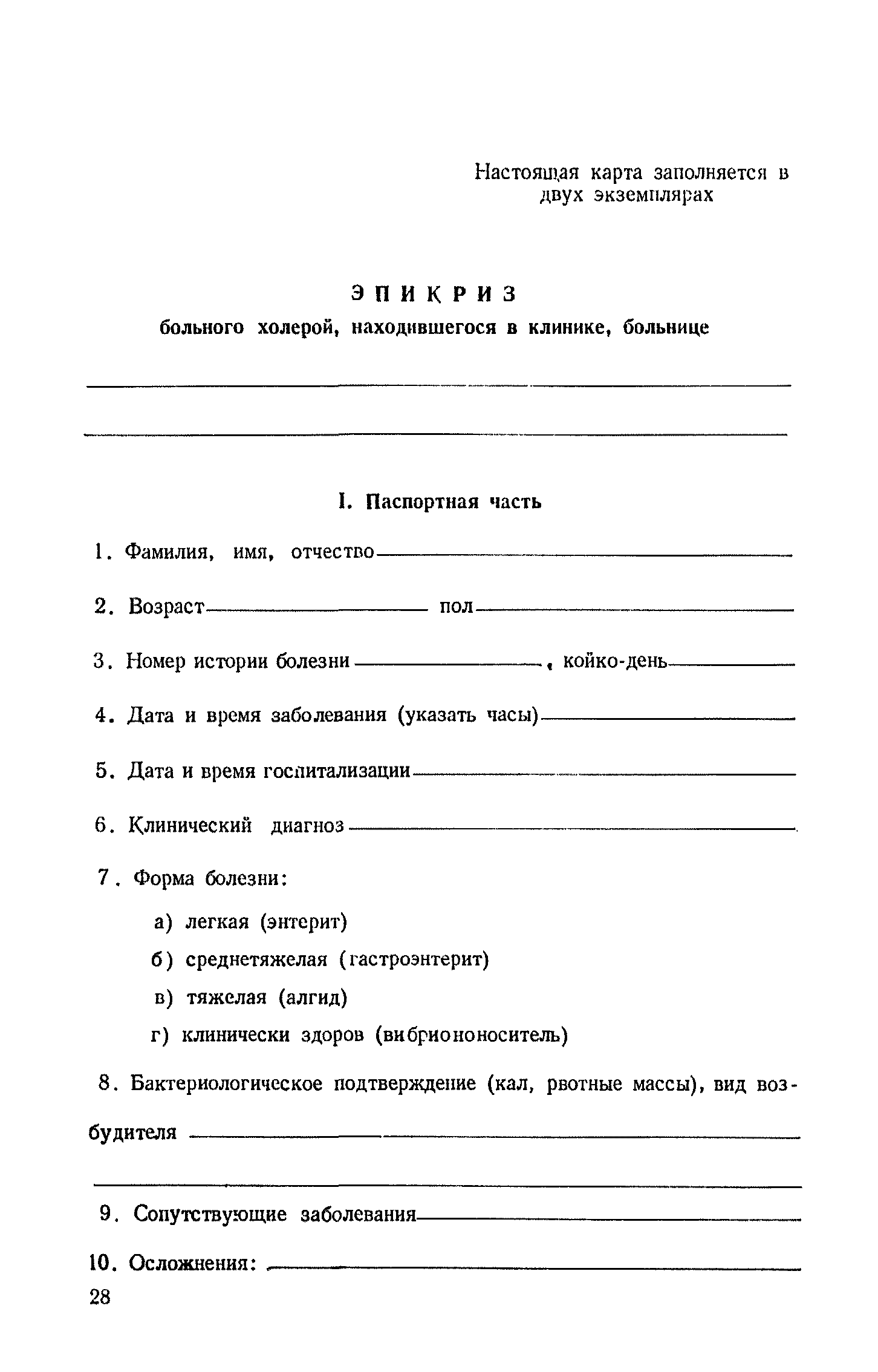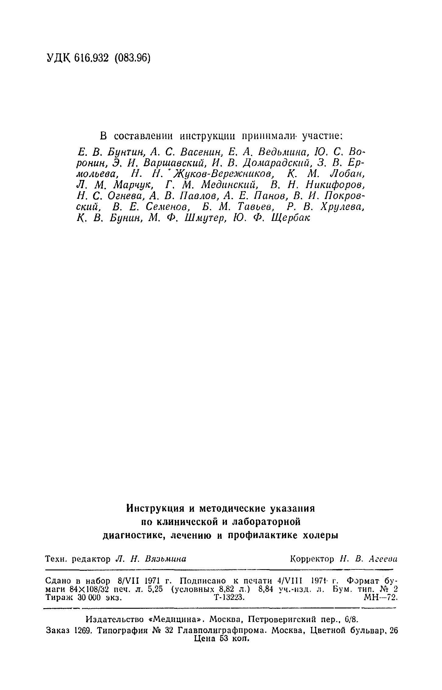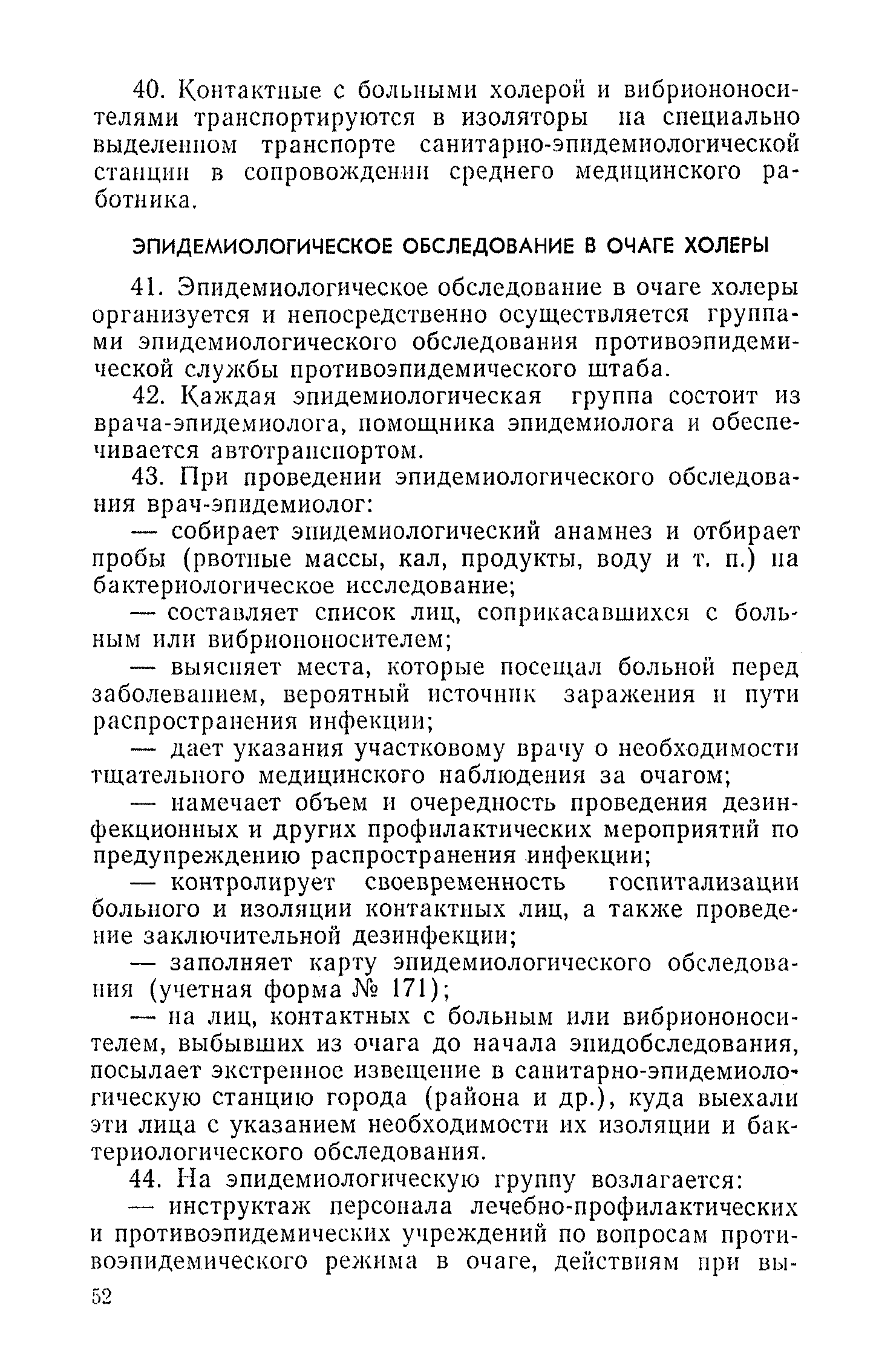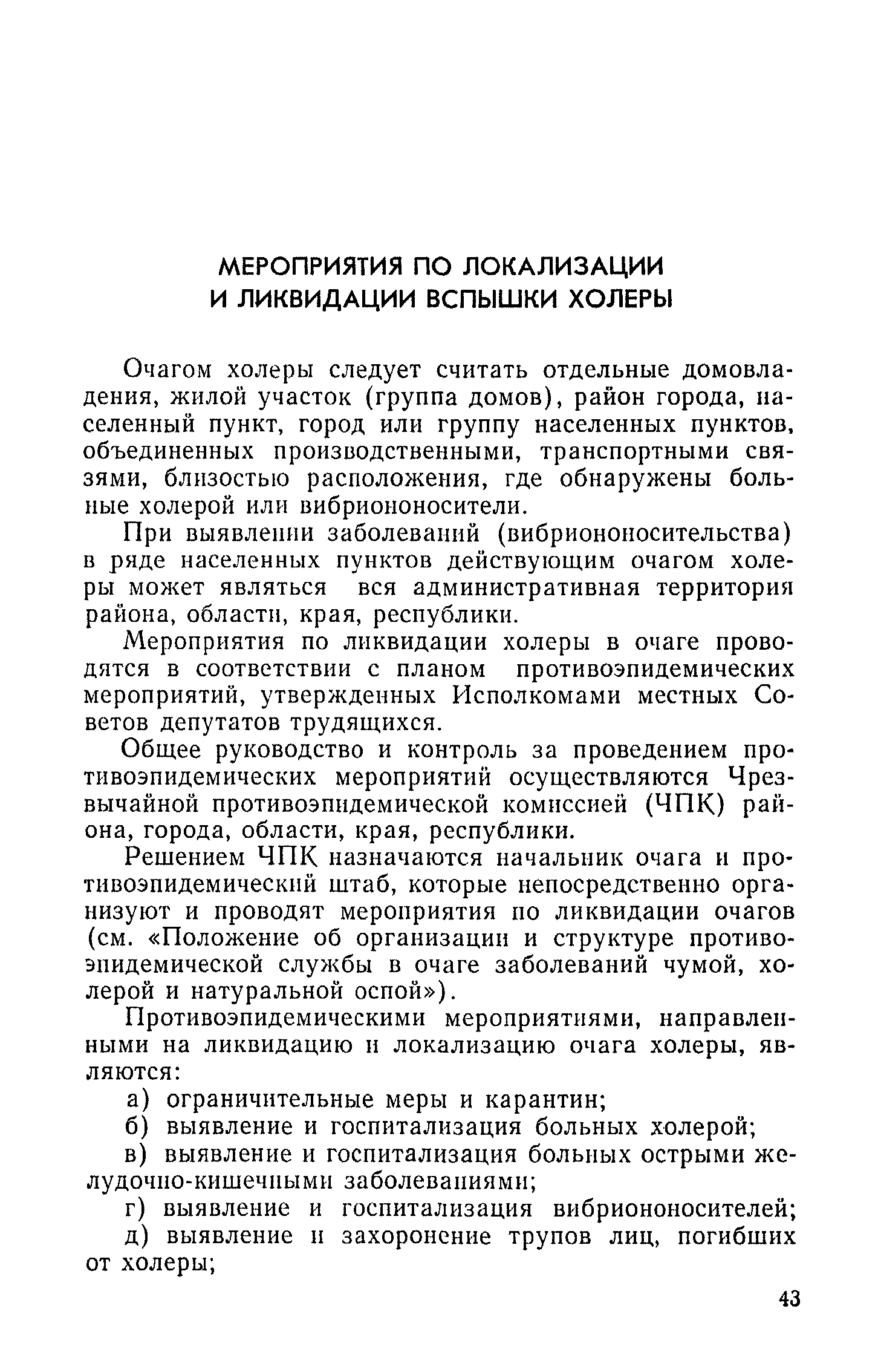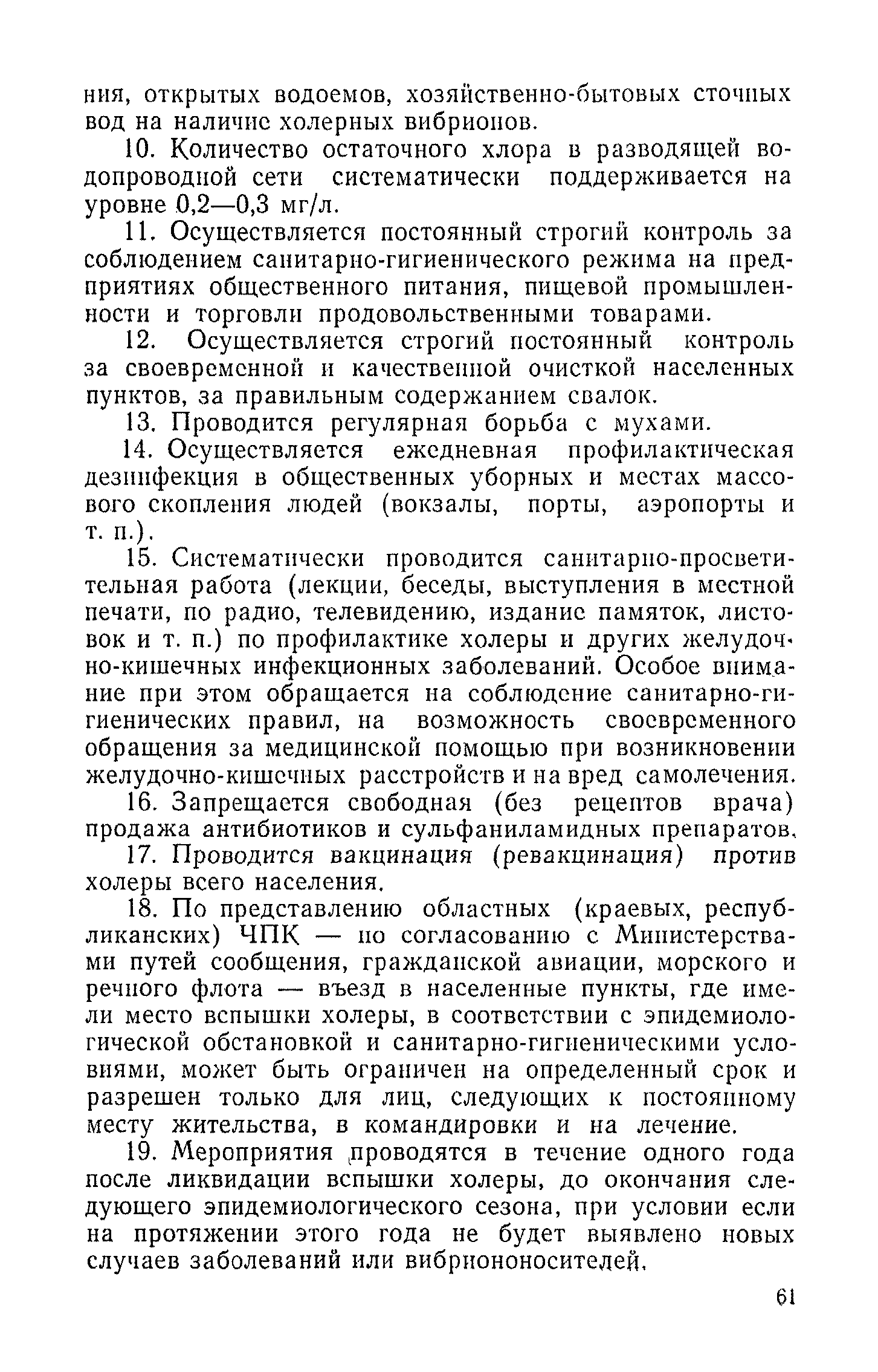 Инструкция и методические указания по клинической и лабораторной диагностике, лечению и профилактике холеры| Статус: | действует | | Название рус.: | Инструкция и методические указания по клинической и лабораторной диагностике, лечению и профилактике холеры | | Дата добавления в базу: | 01.02.2017 | | Дата актуализации: | 01.01.2021 | | Оглавление: | Общие сведения о холере Клиническая диагностика и лечение больных холерой Патогенез Патологическая анатомия Клиника Лечение Устройство и режим холерного стационара Устройство и режим провизорного стационара Профилактические мероприятия Организационные мероприятия Санитарно-профилактические мероприятия Санитарно-профилактические мероприятия при угрозе распространения холеры Организационные мероприятия Санитарно-профилактические мероприятия Санитарно-профилактические мероприятия по обеспечению передвижения людей и перевозки грузов из неблагополучных по холере районов Мероприятия по локализации и ликвидации вспышки холеры Ограничительные меры и карантин Выявление больных холерой и острыми желудочно-кишечными заболеваниями Выявление вибриононосителей Выявление лиц, находившихся в контакте с больными холерой и вибриононосителями Транспортировка и госпитализация больных холерой, вибриононосителей, контактных с ними и больных острыми кишечными заболеваниями Эпидемиологическое обследование в очаге холеры Эпидемиологический анализ вспышки холеры Санитарно-гигиенические мероприятия в очаге холеры Мероприятия в населенных пунктах после ликвидации вспышки холеры Мероприятия в отношении лиц, перенесших заболевание холерой и вибриононосительство Мероприятия, проводимые среди декретированных групп населения Профилактические и санитарно-гигиенические мероприятия в населенных пунктах после ликвидации вспышки холеры Лабораторная диагностика холеры Порядок взятия и доставки материала на исследование Исследование материала от больного, трупа и от здоровых лиц на вибриононосительство Исследование воды, пищевых продуктов и других объектов внешней среды Питательные среды для выращивания холерных вибрионов Методика проверки качества питательных сред Идентификация культур холерного вибриона Морфология микробной клетки в окрашенных препаратах Изучение других свойств холерного вибриона Методы определения чувствительности холерных вибрионов к антибиотикам Определение патогенности вибрионов Тест вытеснения на питательных средах Ускоренные методы диагностики холеры Люминесцентно-серологический метод Метод экспрессной серологической идентификации холерных вибрионов с помощью фазовоконтрастного устройства - микроагглютинации (З. В. Ермольева, Н. И. Гивенталь) Метод иммобилизации и микроагглютинации вибрионов под влиянием специфической холерной О-сыворотки и типовых холерных бактериофагов Реакция агглютинации в пептонной воде с холерной О-сывороткой в разведении до 1/2 титра (Полева - Ермольевой) Реакция агглютинации с холерной О-сывороткой в пептонной воде и проба с диагностическим бактериофагом Методика быстрого обнаружения холерных вибрионов в питьевой воде при помощи реакции агглютинации Серологические методы исследования Реакция агглютинации Определение вибриоцидных антител в сыворотке Реакция непрямой гемагглютинации с использованием холерно
