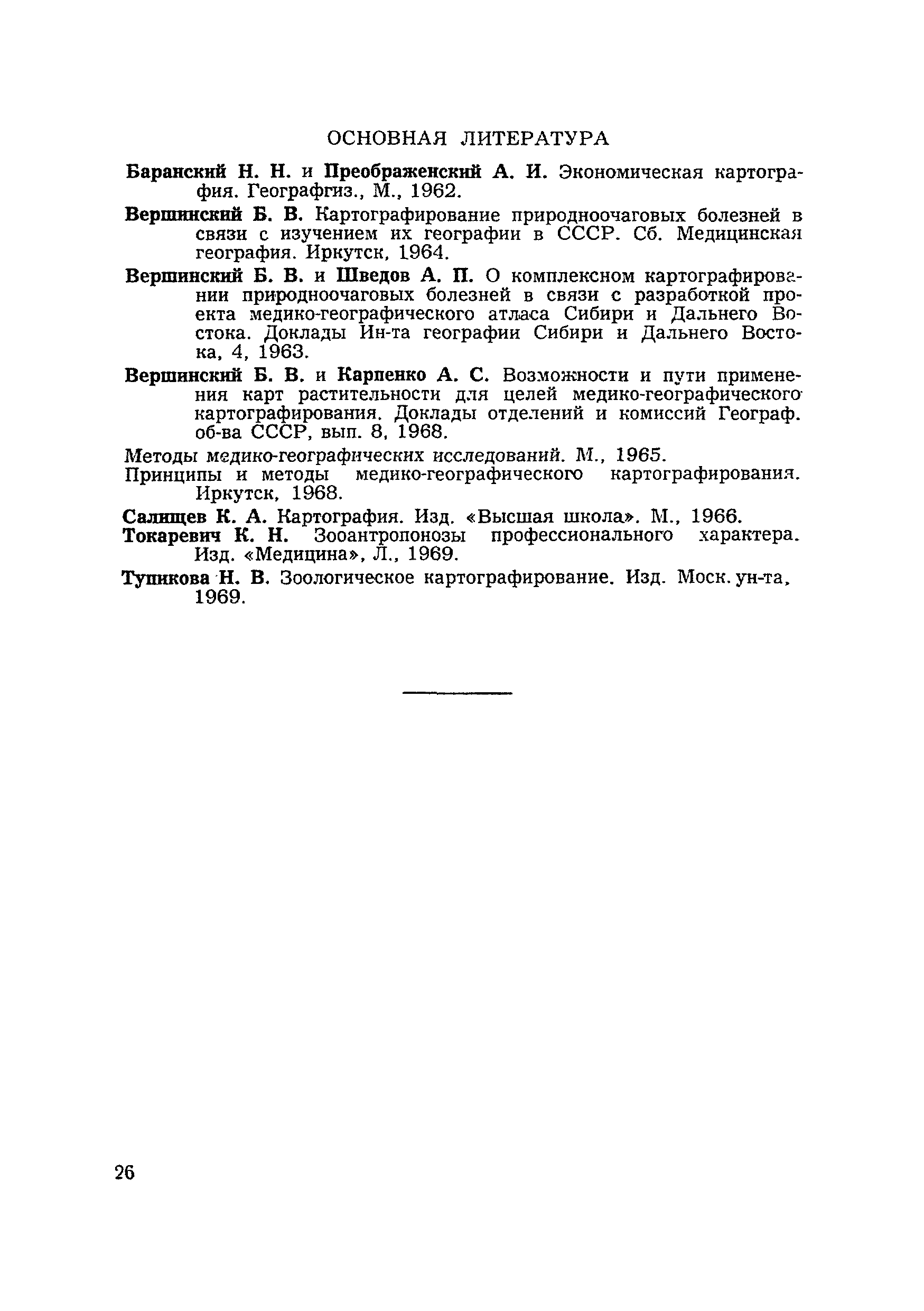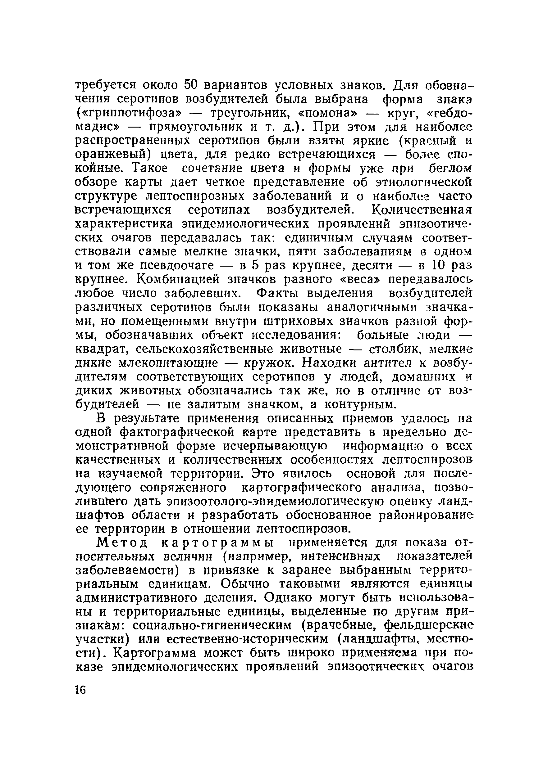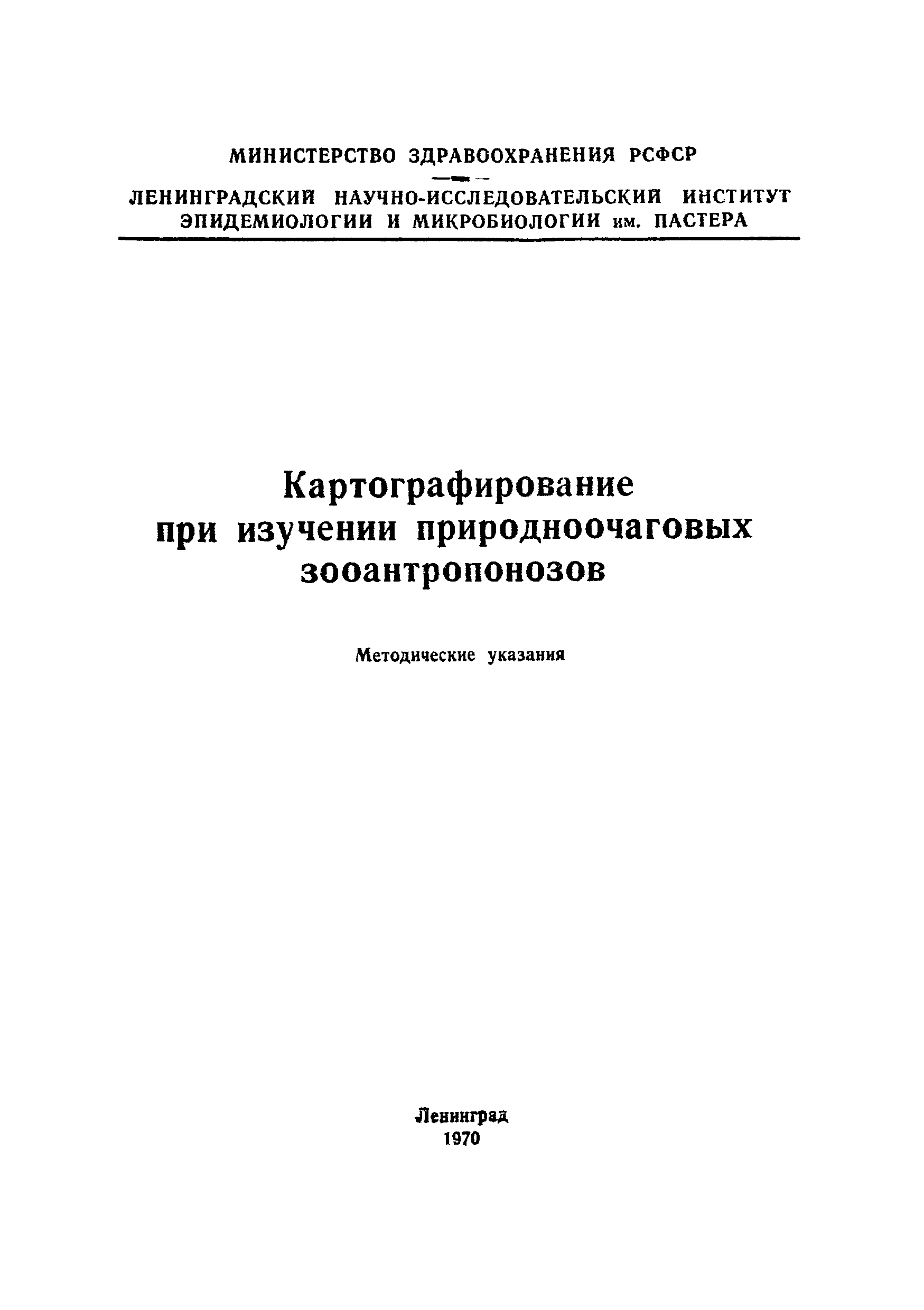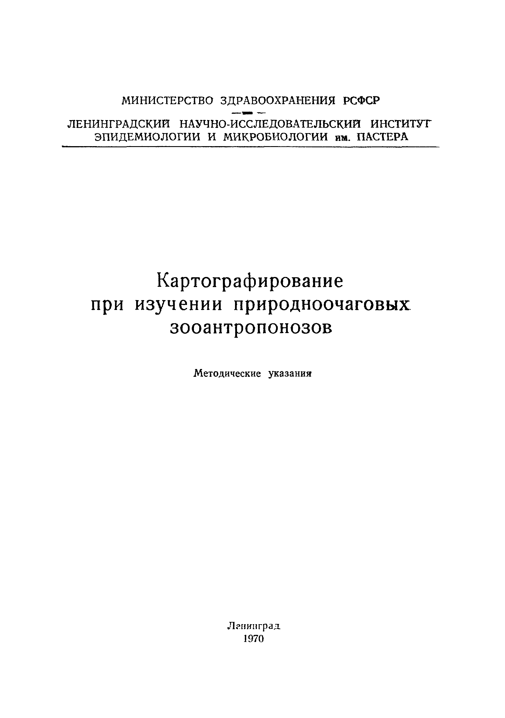 Картографирование при изучении природноочаговых зооантропонозов| Статус: | действует | | Название рус.: | Картографирование при изучении природноочаговых зооантропонозов | | Дата добавления в базу: | 01.02.2017 | | Дата актуализации: | 01.01.2021 | | Область применения: | В кратких методических указаниях невозможно детально изложить все вопросы картографирования природноочаговых болезней. Задача настоящего издания - привлечь внимание врачей и биологов к мало известным им возможностям картографического метода и ориентировать в содержании, последовательности, организации соответствующих работ. Методические указания рассчитаны на работников паразитологических отделов и отделов особо опасных инфекций республиканских, краевых в областных санитарно-эпидемиологических станций, а также соответствующих специалистов научно-исследовательских институтов эпидемиологии и микробиологии. Указания могут быть полезны преподавателям кафедр эпидемиологии и паразитологии медицинских институтов и институтов усовершенствования врачей | | Оглавление: | Особенности зооантропонозов Цели картографирования зооантропонозов Организация картографирования зооантропонозов I. Подготовка и оформление программных и планово-организационных материалов II. Сбор, табличная сводка, первичная картографическая обработка и специализация исходных материалов III. Сопряженный анализ нозогеографических, ландшафтно-географических, экономико-географических карт, их трансформация и синтез Основная литература | | Разработан: | Ленинградский научно-исследовательский институт эпидемиологии и микробиологии им. Пастера