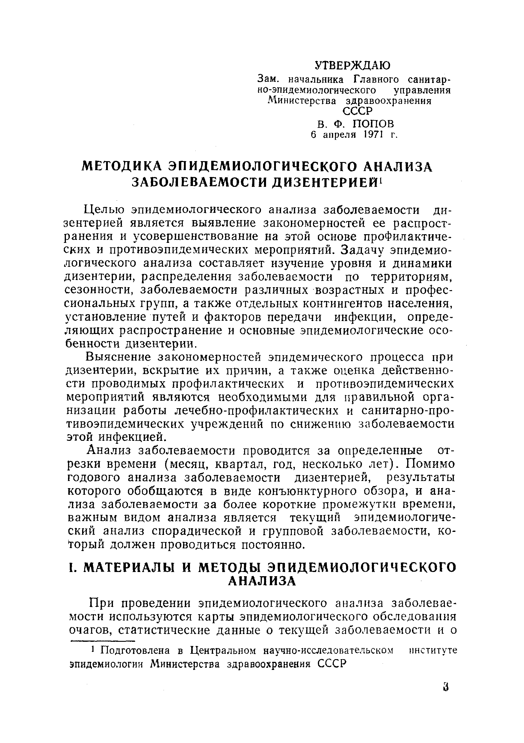 | Утверждён: | 06.04.1971 Зам. Начальника Главного санитарно-эпидемиологического управления Министерства здравоохранения СССР