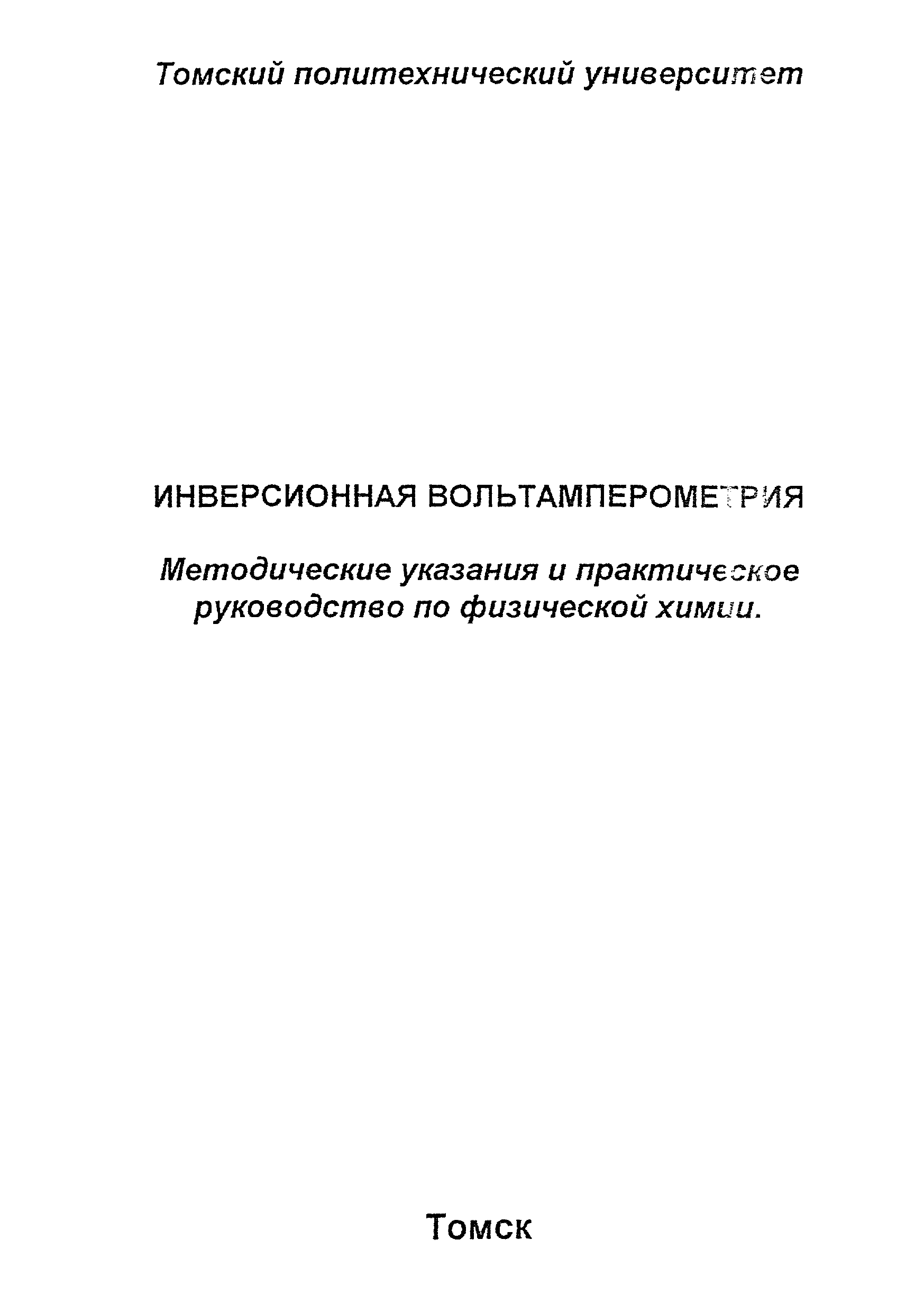 | Название рус.: | Инверсионная вольтамперометрия. Методические указания и практическое руководство по физической химии |