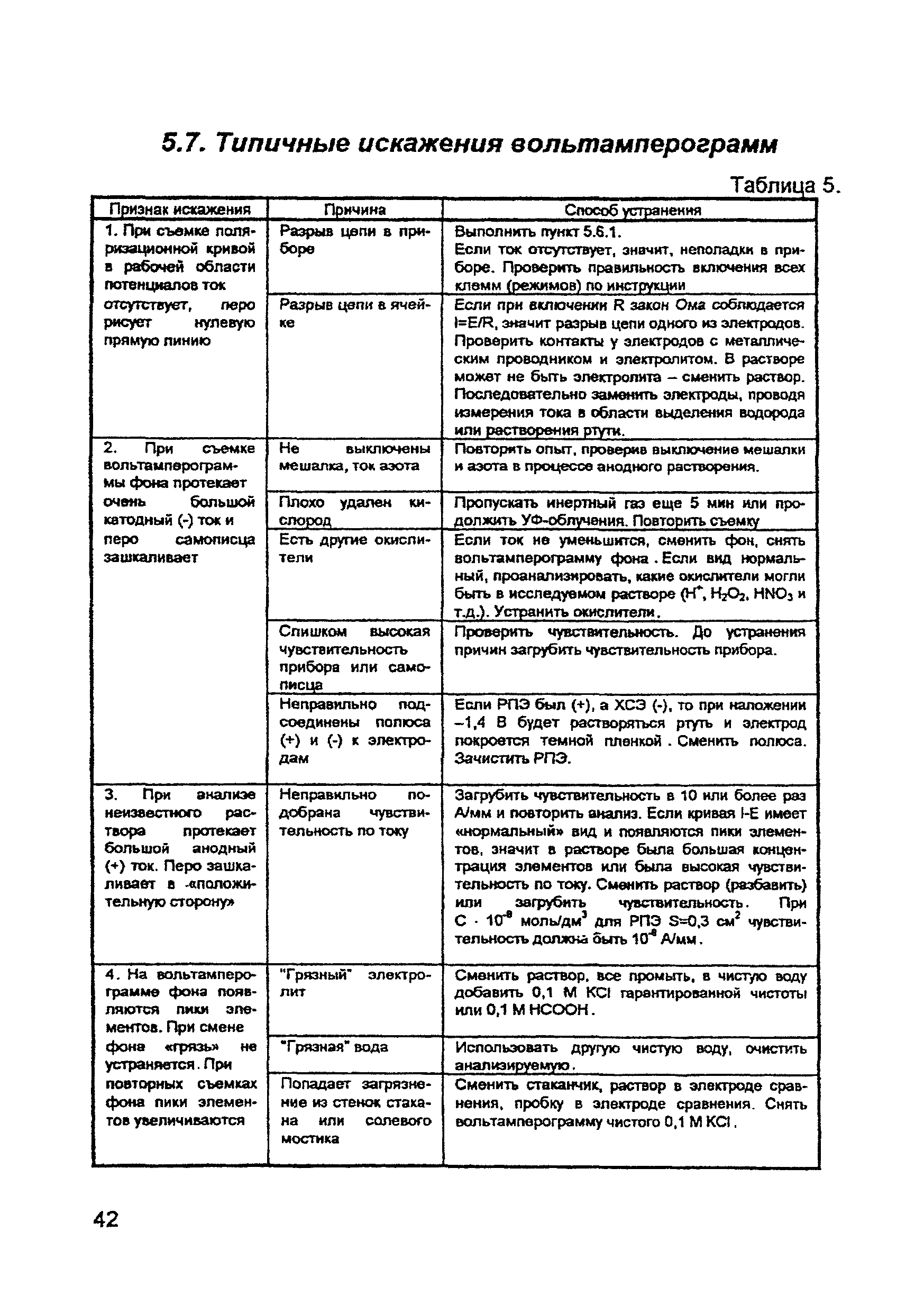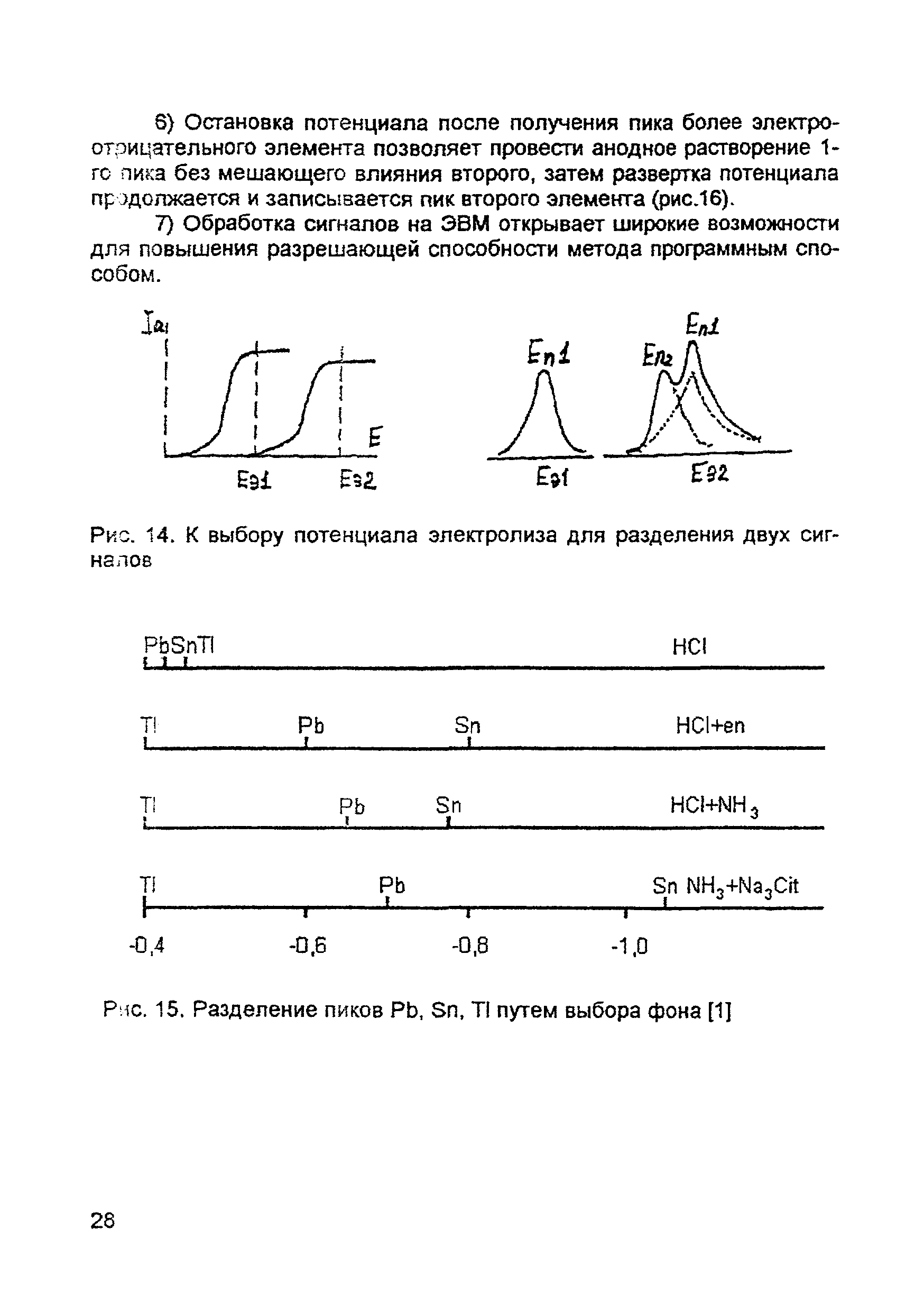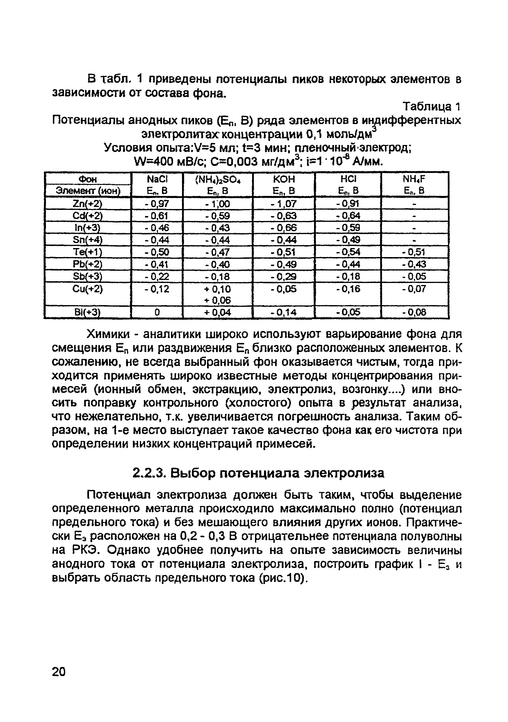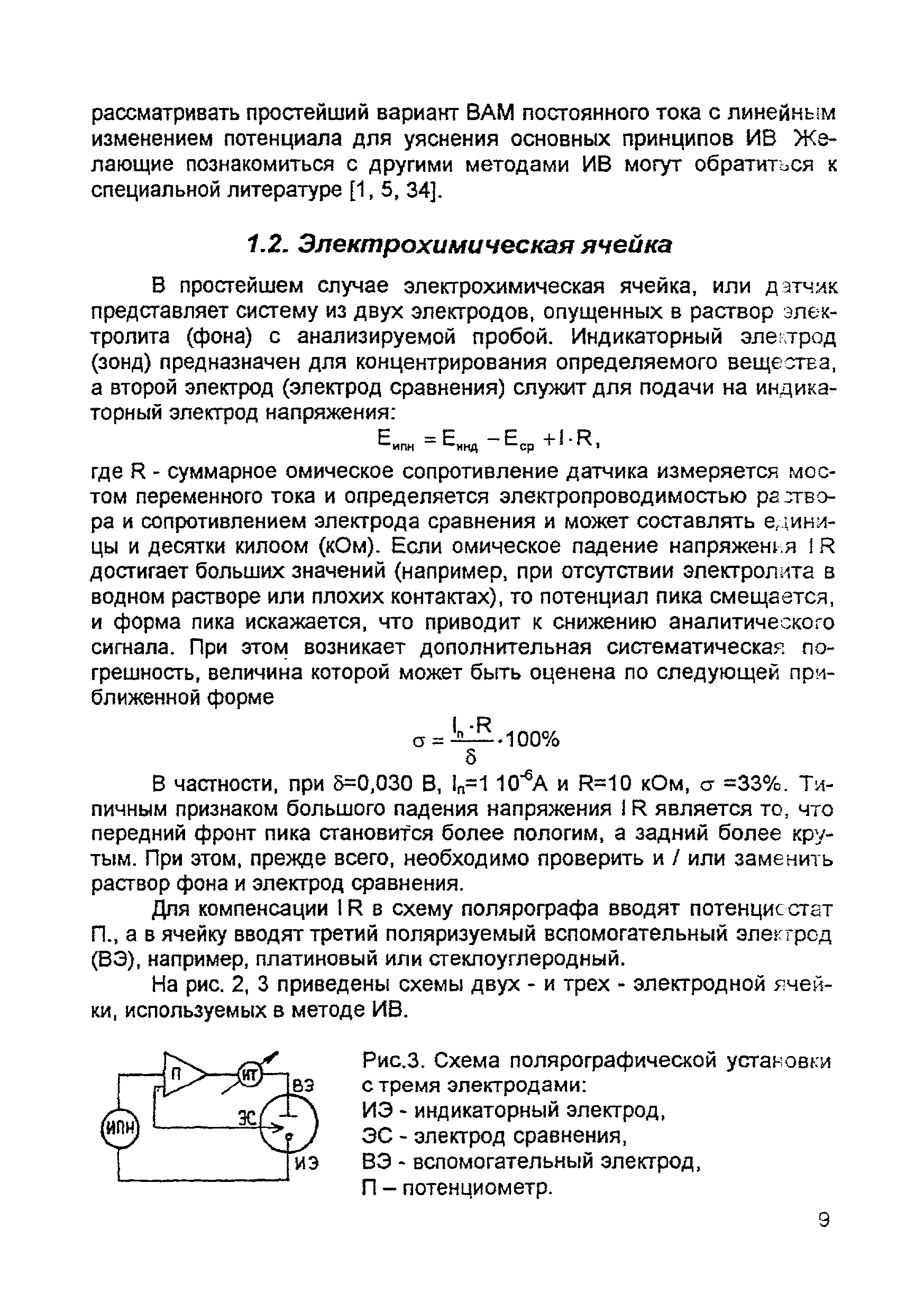 | Оглавление: | Введение 1. Сущность метода инверсионной вольтамперометрии 1.1. Аппаратура 1.2. Электрохимическая ячейка 1.3. Аналитический сигнал и помеха в методе ИВ 2. Факторы, влияющие на положение, форму и величину аналитического сигнала в методе ИВ 2.1. Краткое теоретическое введение 2.2. Изучение зависимостей Ia от Eэ, tэ, Cи на опыте для выбора оптимальных условий анализа 2.2.1. Выбор рабочего электрода 2.2.2. Выбор полярографического фона 2.2.3. Выбор потенциала электролиза 2.2.4. Выбор времени электролиза 2.2.5. Способы оценки концентрации неизвестного раствора 3. Способы концентрирования элементов на электроде. Определяемые вещества 4. Факторы, искажающие и снижающие аналитический сигнал. Способы устранения помех 4.1. Растворенный кислород 4.2. Наложение пиков элементов 4.3. Достижение растворимости металла в ртути 4.4. Образование интерметаллических соединений (ИМС) между металлами, выделенными на электроде 4.5. Влияние поверхностно-активных веществ (ПАВ, ПАОВ) 5. Техника работы в методе ИВ 5.1. Требования к чистоте лаборатории 5.2. Требования к чистоте воды, реактивов. Приготовление стандартных растворов 5.3. Требования к посуде 5.4. Подготовка к работе датчика 5.5. Подготовка электродов и их активация Способы регенерации электродов 5.6. Подготовка к работе прибора (анализатора) 5.6.1. Калибровка прибора по току и проверка его работоспособности 5.6.2. Снятие вольтамперограммы в анализируемом растворе 5.7. Типичные искажения вольтамперограмм 6. Анализ объектов окружающей среды методом ИВ 6.1. Анализ вод 6.2. Анализ аэрозолей и воздуха 6.3. Анализ почв 6.4. Анализ биологических объектов 6.5. Анализ пищевых продуктов 7. Метрологическое обеспечение 7.1. Общие положения 7.2. Нормативы контроля точности 7.3. Расчет нормативов оперативного контроля Приложение 1. Перечень аттестованных вольтамперометрических методик количественного химического анализа, разработанных в Томском политехническом университете Литература |