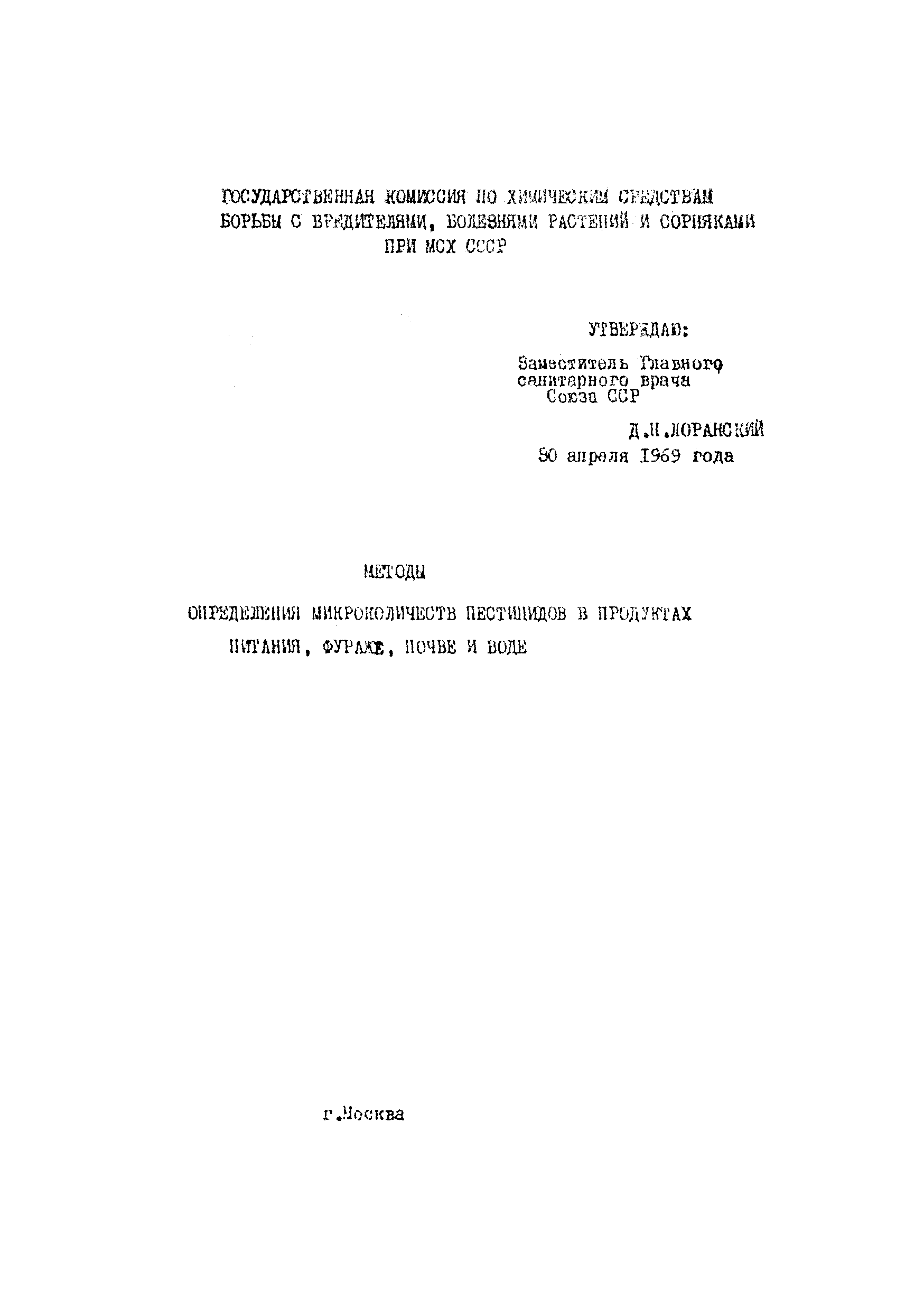 | | Утверждён: | 30.04.1969 Зам. Главного Государственного санитарного врача СССР (USSR Deputy Chief Public Health Officer )