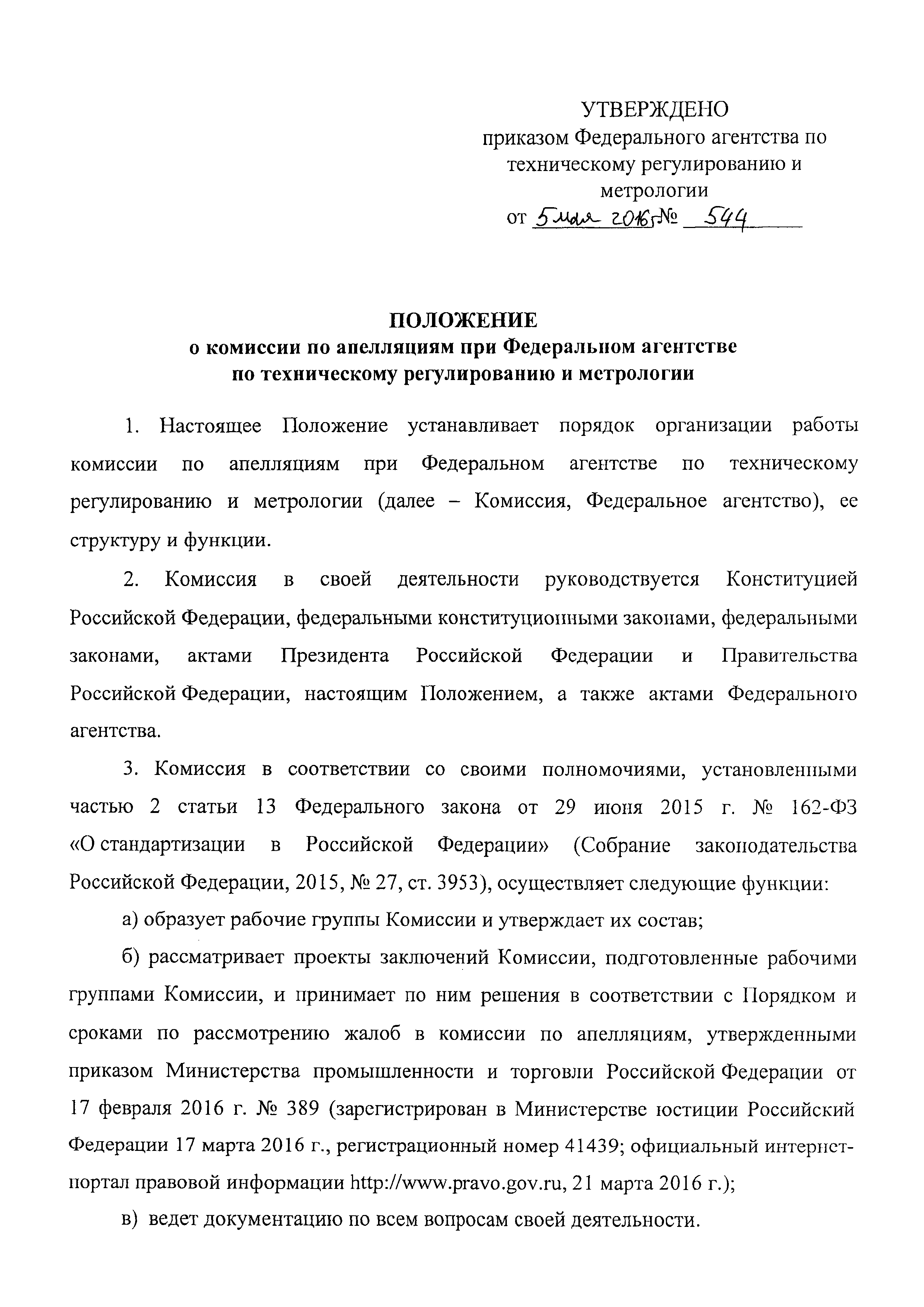 | Название рус.: | Положение о комиссии по апелляциям при Федеральном агентстве по техническому регулированию и метрологии |