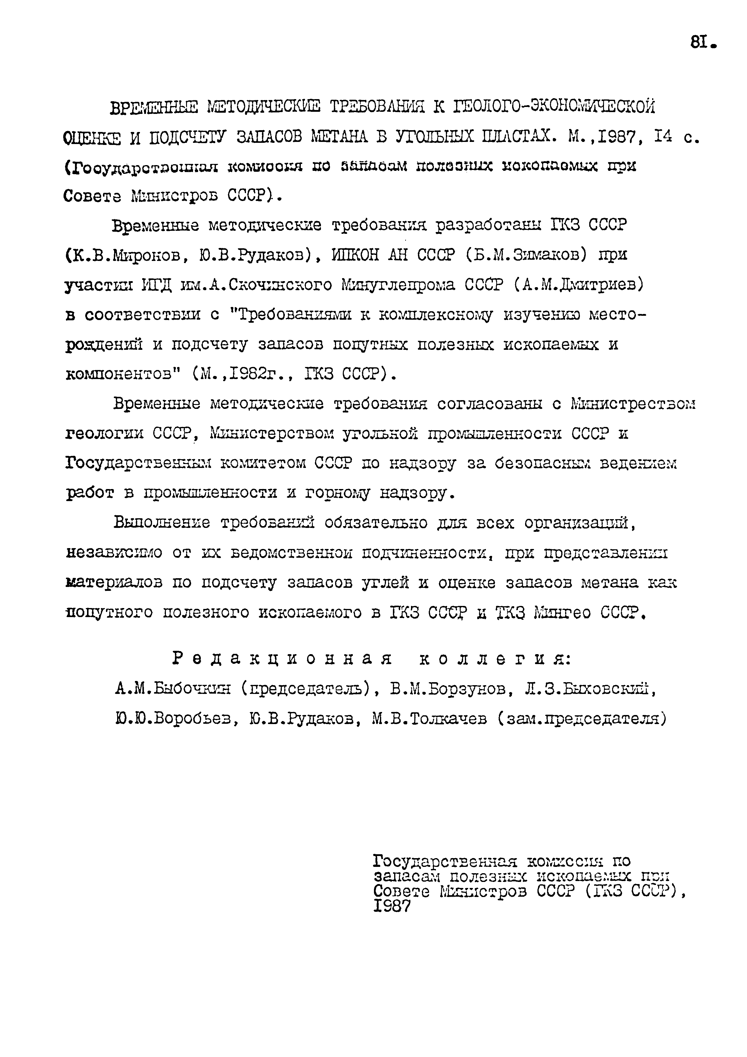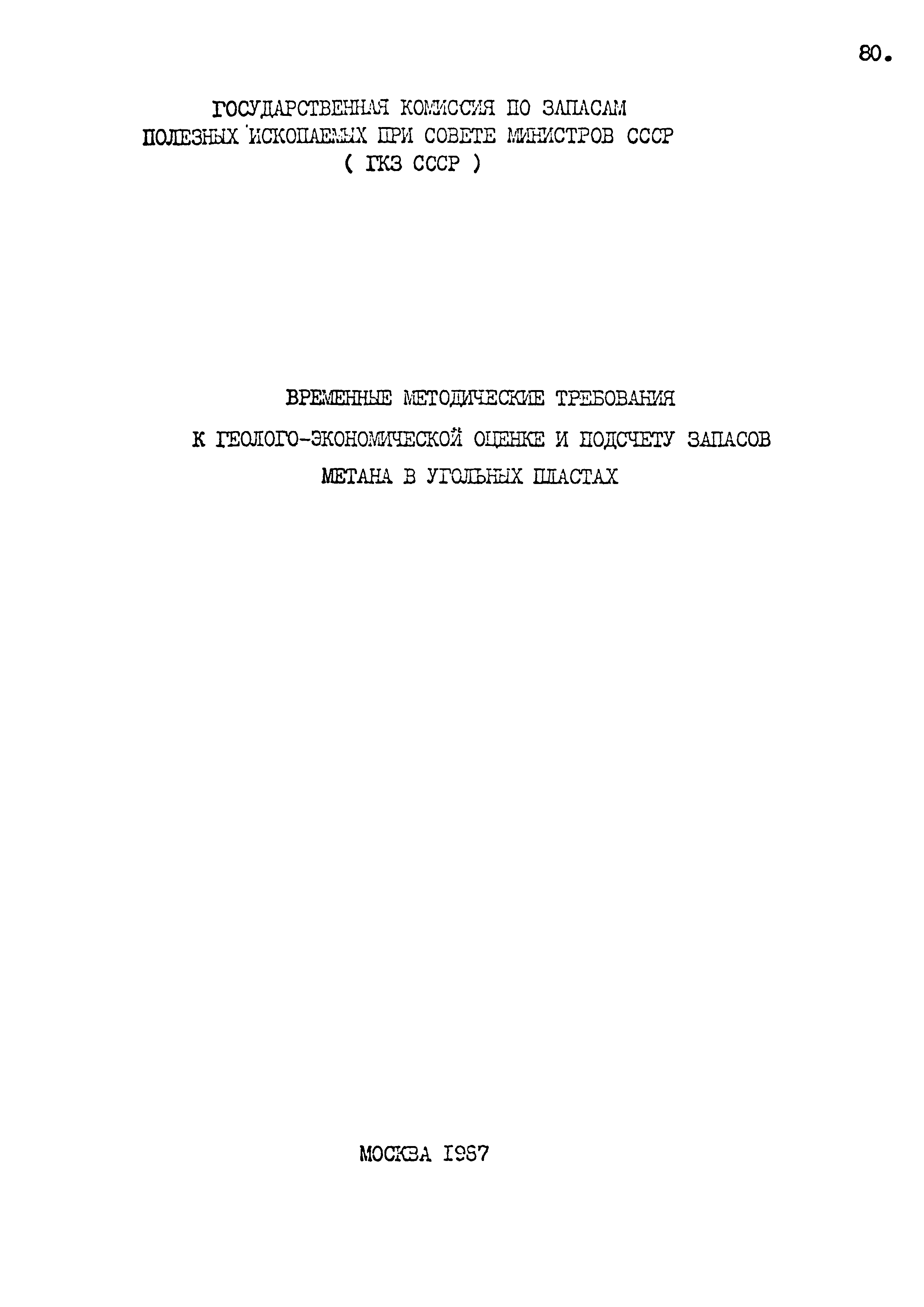 | Название рус.: | Временные методические требования к геолого-экономической оценке и подсчету запасов метана в угольных шахтах |