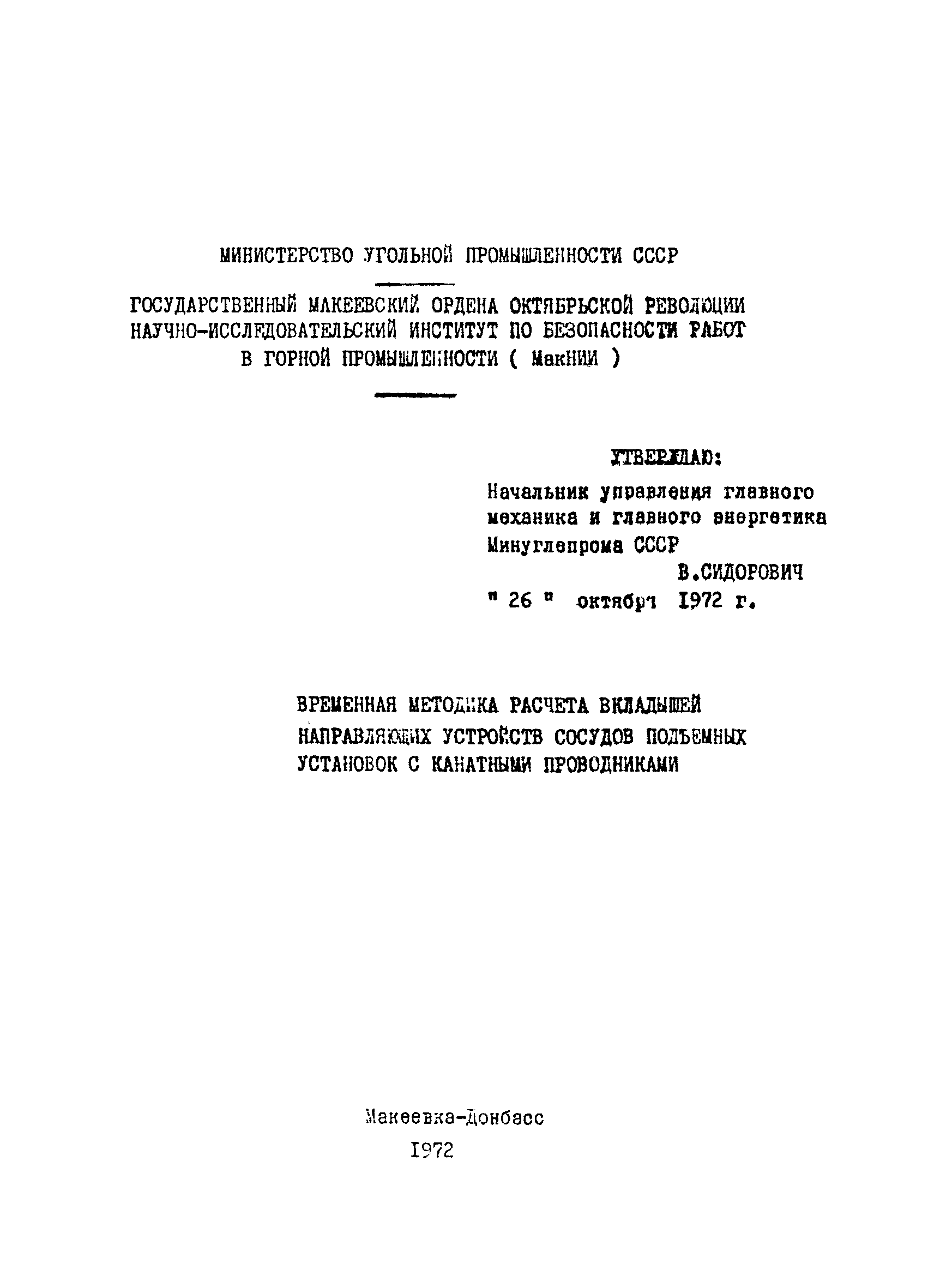 | | Утверждён: | 26.10.1972 Минуглепром СССР (USSR Minugleprom )
