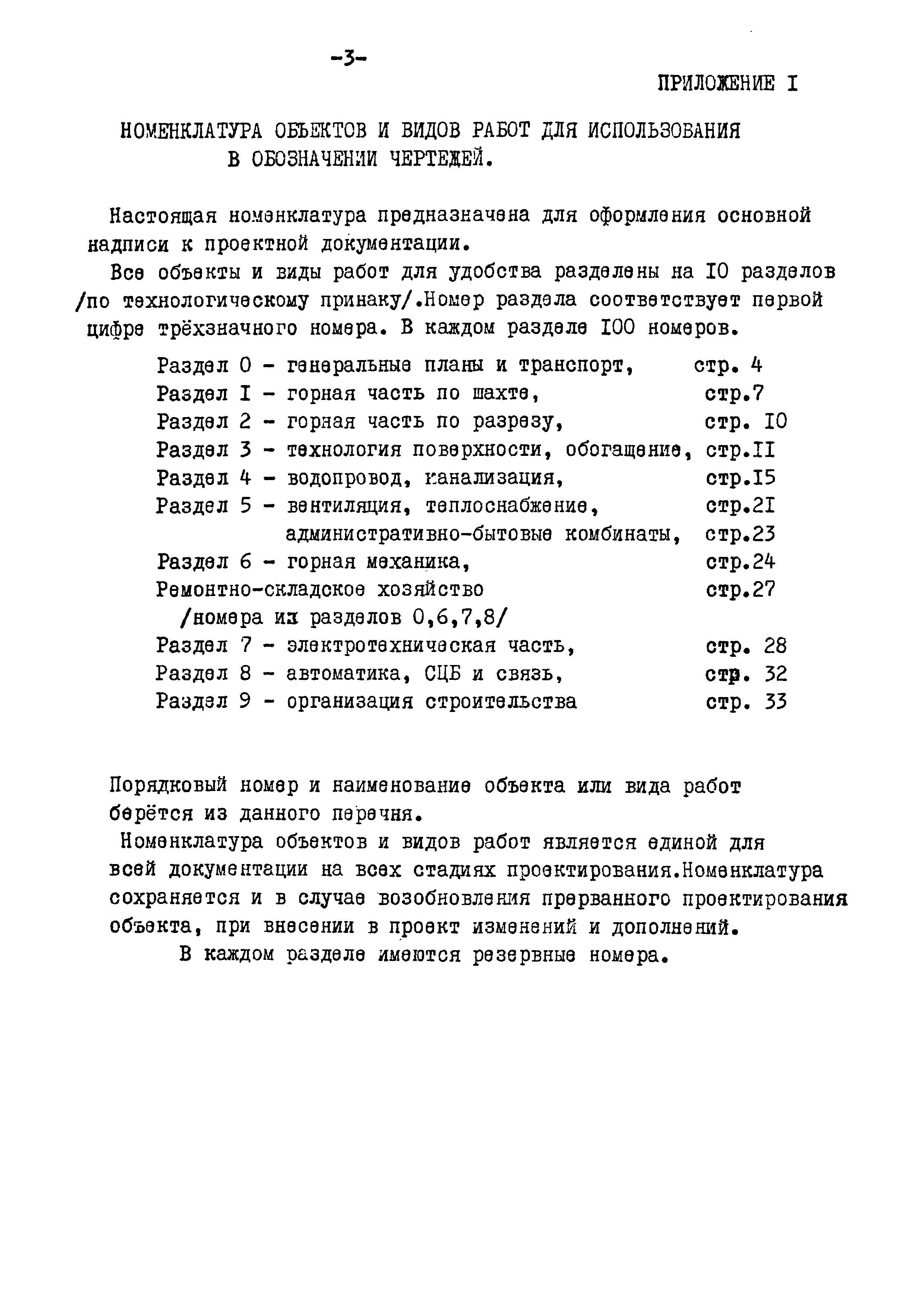 | Оглавление: | Приложение 1. Номенклатура объектов и видов работ для использования в обозначении чертежей Приложение 2. Перечень марок основных комплектов |