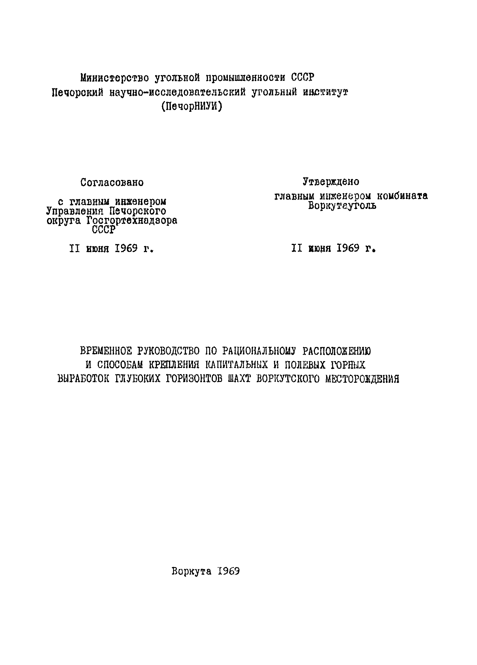 | Утверждён: | 11.06.1969 Главный инженер комбината Воркутауголь