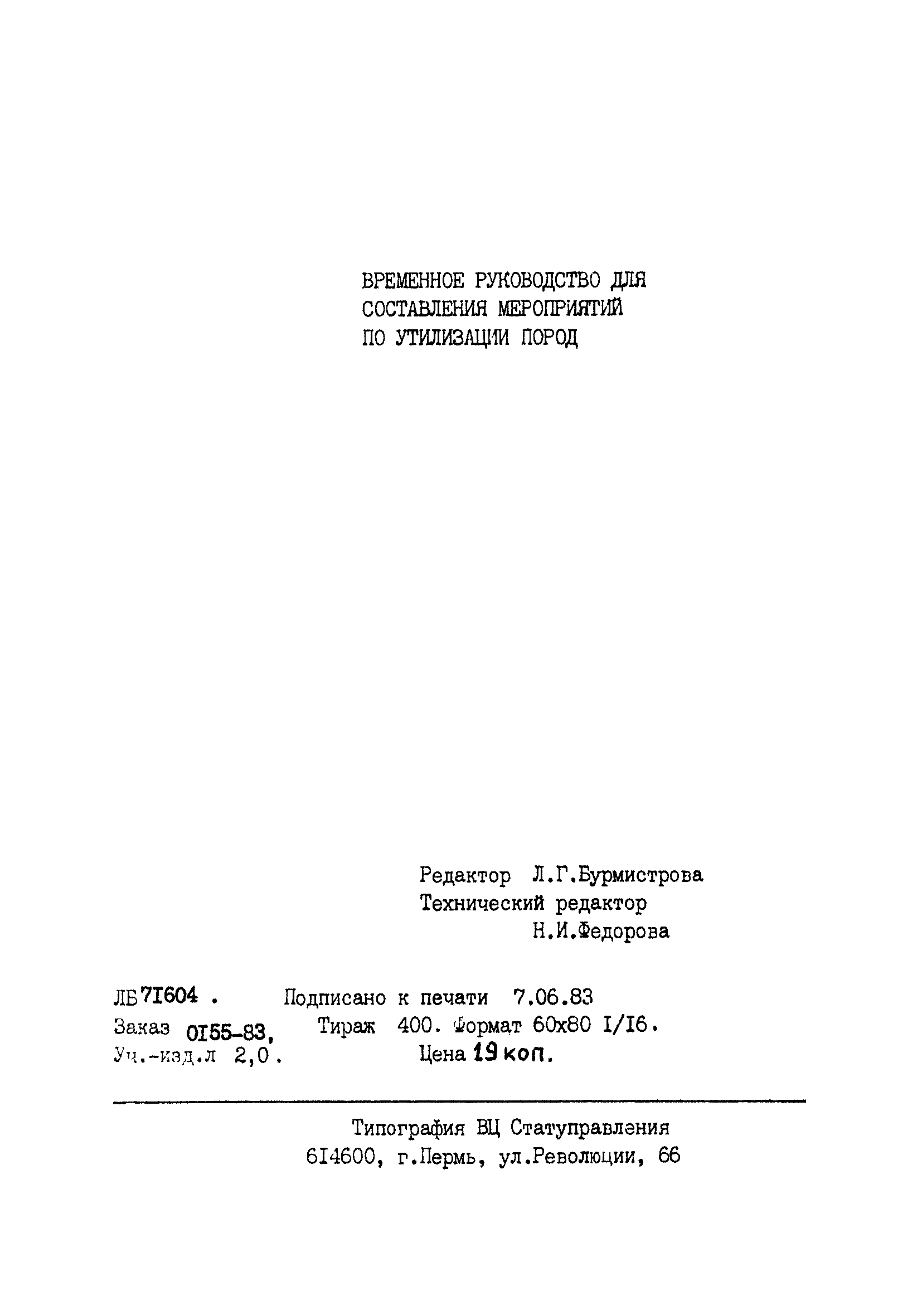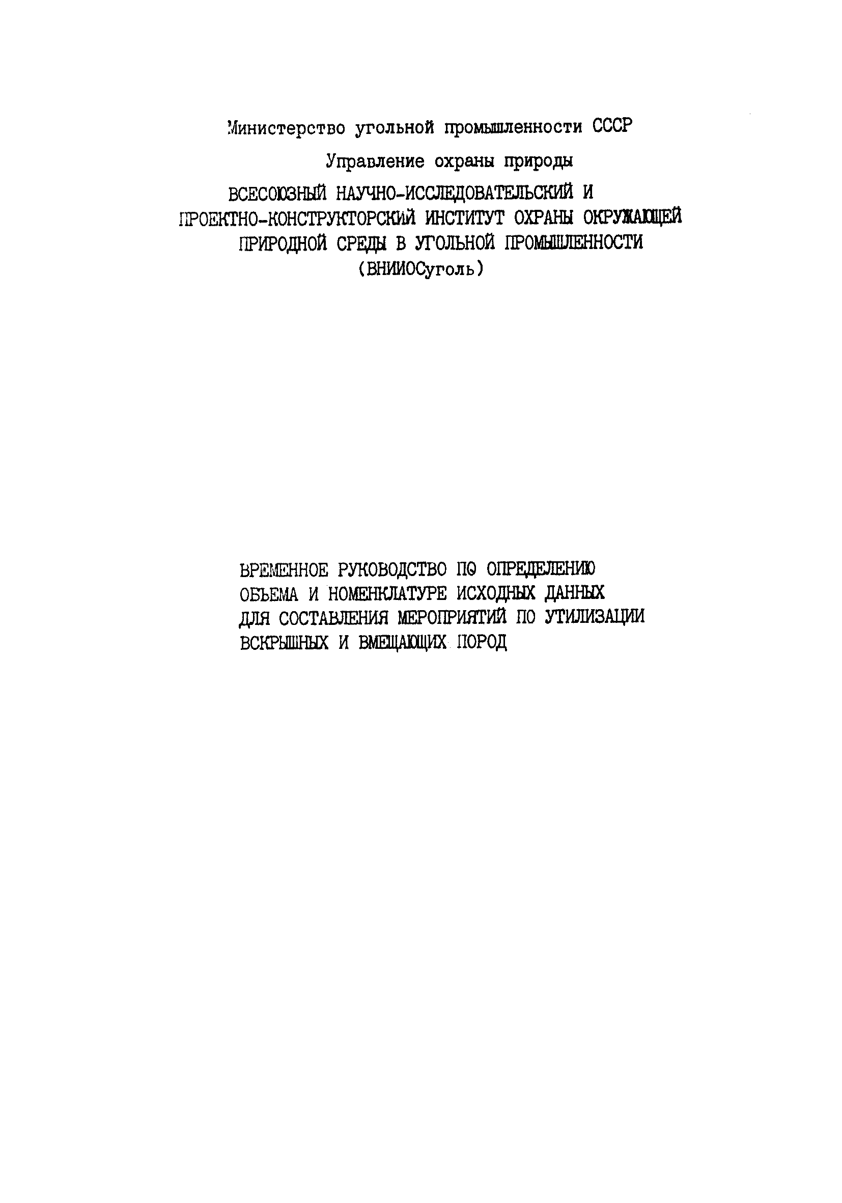 | Название рус.: | Временное руководство по определению объема и номенклатуре исходных данных для составления мероприятий по утилизации вскрышных и вмещающих пород |