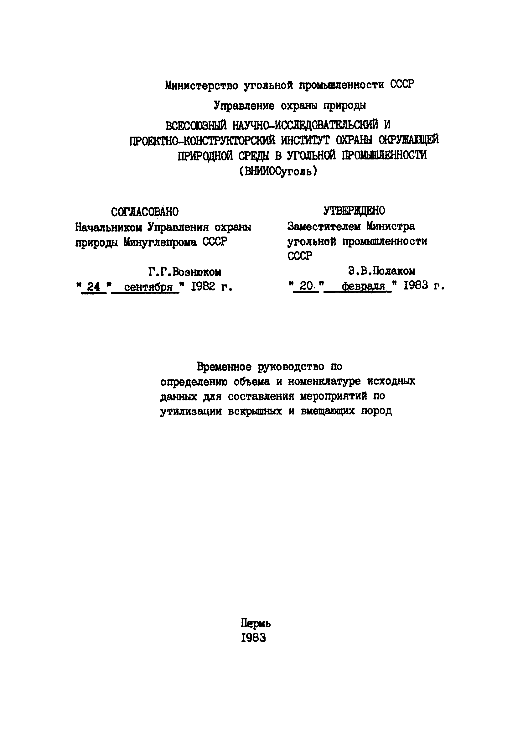 | Принят: | 24.09.1982 Начальник Управления охраны природы Минуглепрома СССР |