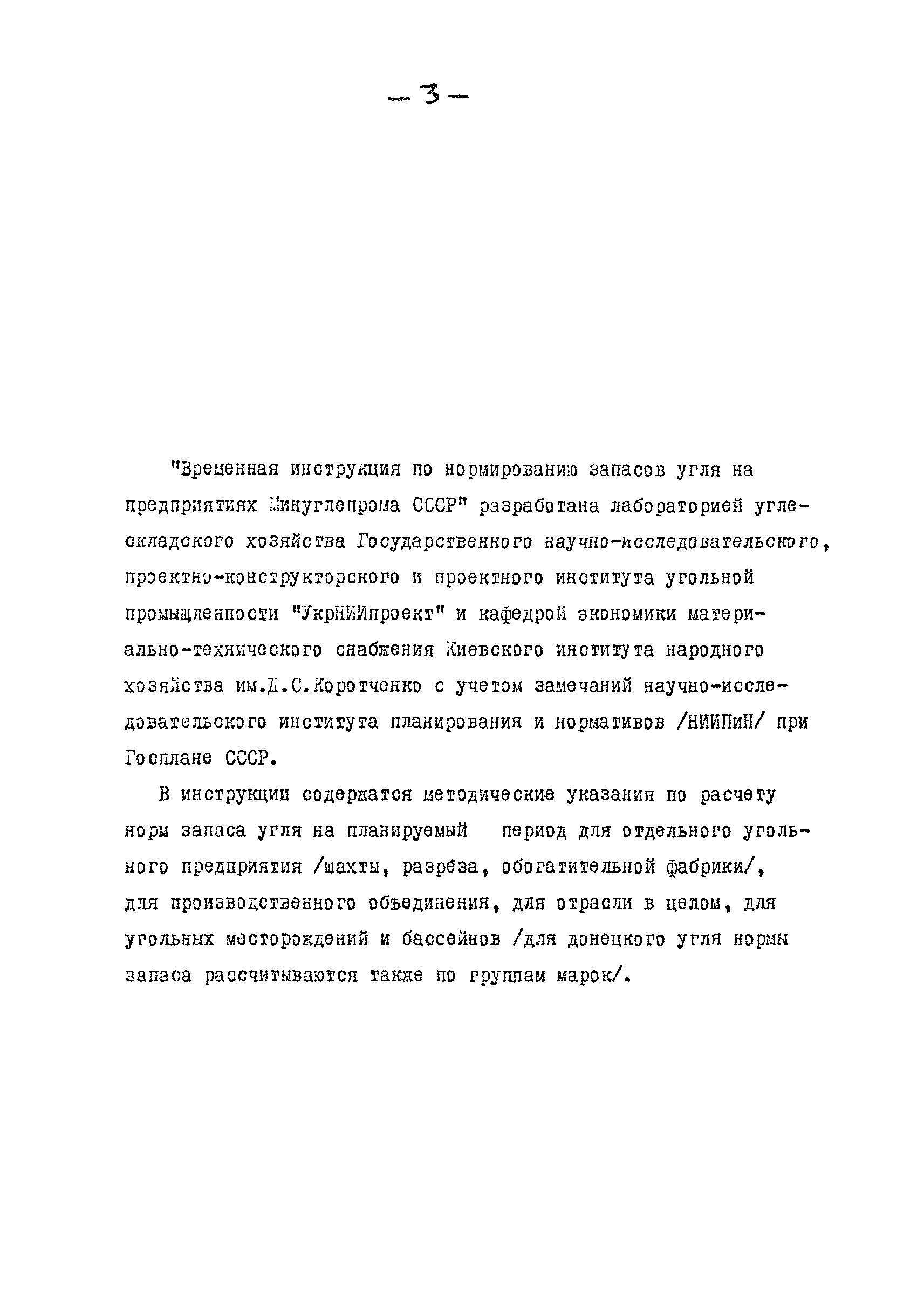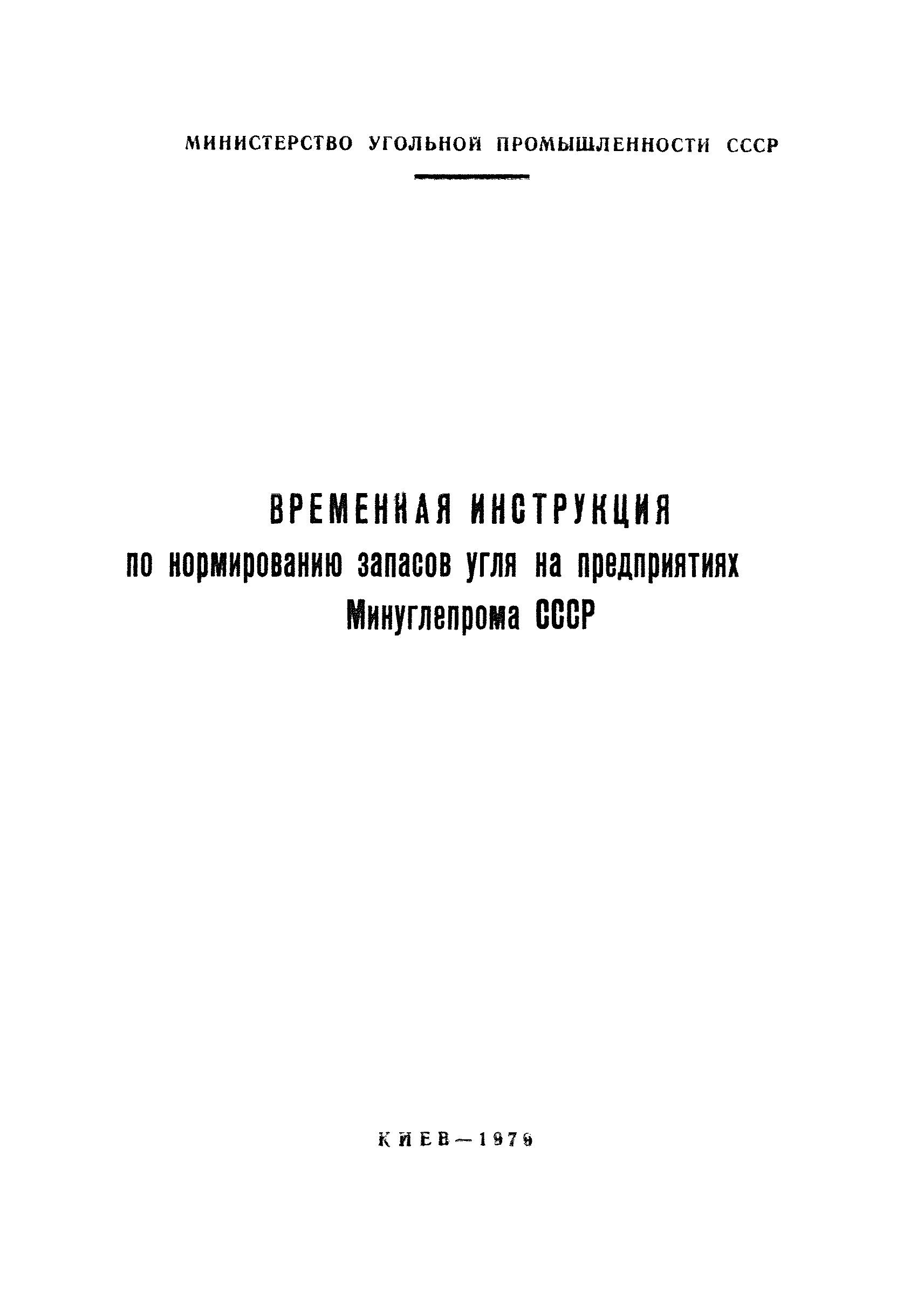 | Название рус.: | Временная инструкция по нормированию запасов угля на предприятиях Минуглепрома СССР |