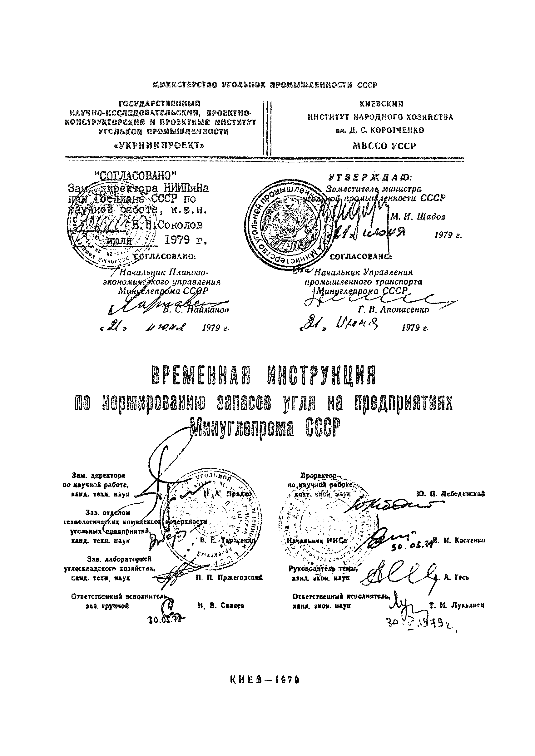 | Утверждён: | 21.06.1979 Заместитель Министра угольной промышленности СССР