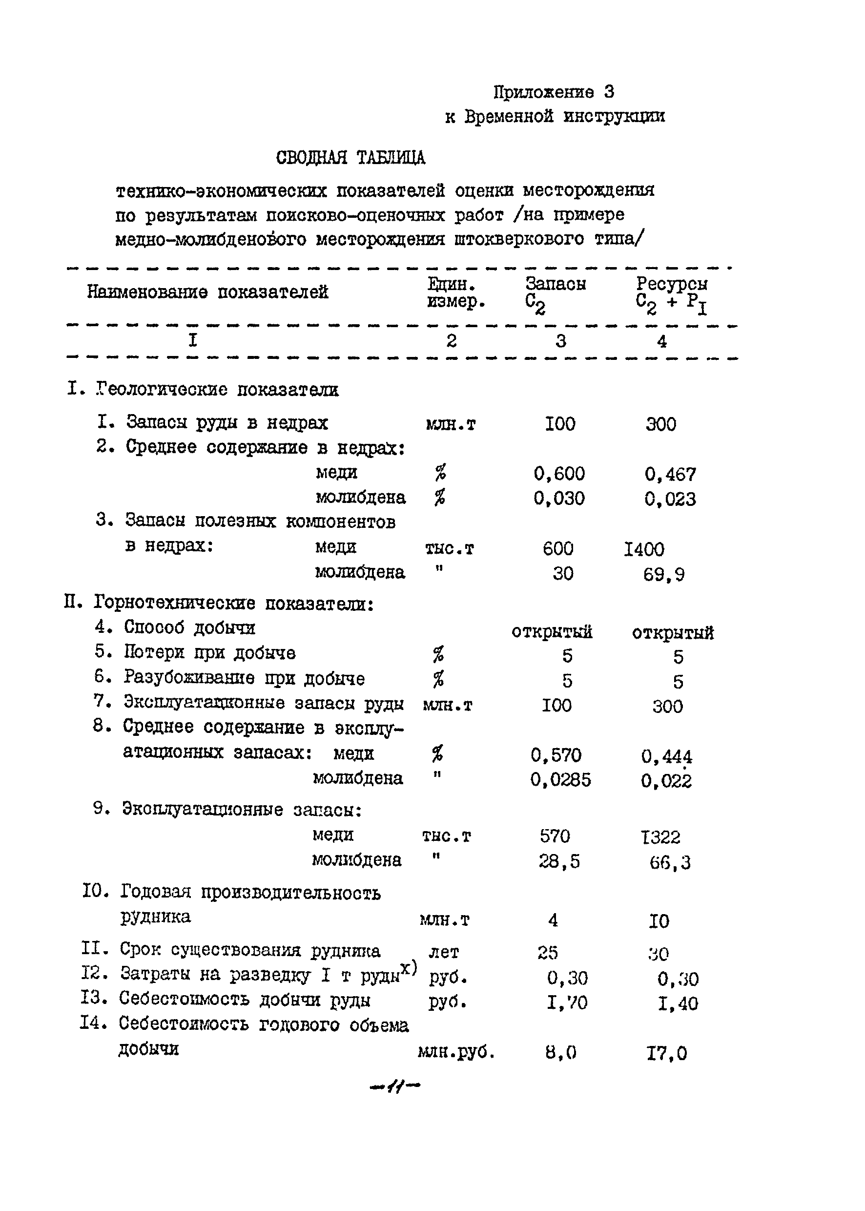 Временная инструкция о порядке составления и рассмотрения технико-экономических соображений о возможном промышленном значений месторождений твердых полезных ископаемых| Статус: | справочные материалы, мп, тпр | | Название рус.: | Временная инструкция о порядке составления и рассмотрения технико-экономических соображений о возможном промышленном значений месторождений твердых полезных ископаемых | | Дата добавления в базу: | 01.02.2017 | | Дата актуализации: | 01.01.2021 | | Оглавление: | I. Общие положения II. Порядок составления технико-экономических соображений III. Порядок рассмотрения технико-экономических соображений Приложение 1. Форма титульного листа технико-экономических соображений Приложение 2. Примерное содержание технико-экономических соображений Приложение 3. Сводная таблица технико-экономических показателей оценки месторождения по результатам поисково-оценочных работ (на примере медно-молибденового месторождения штокверкового типа) | | Издан: | ВИЭМС (1982 г. )