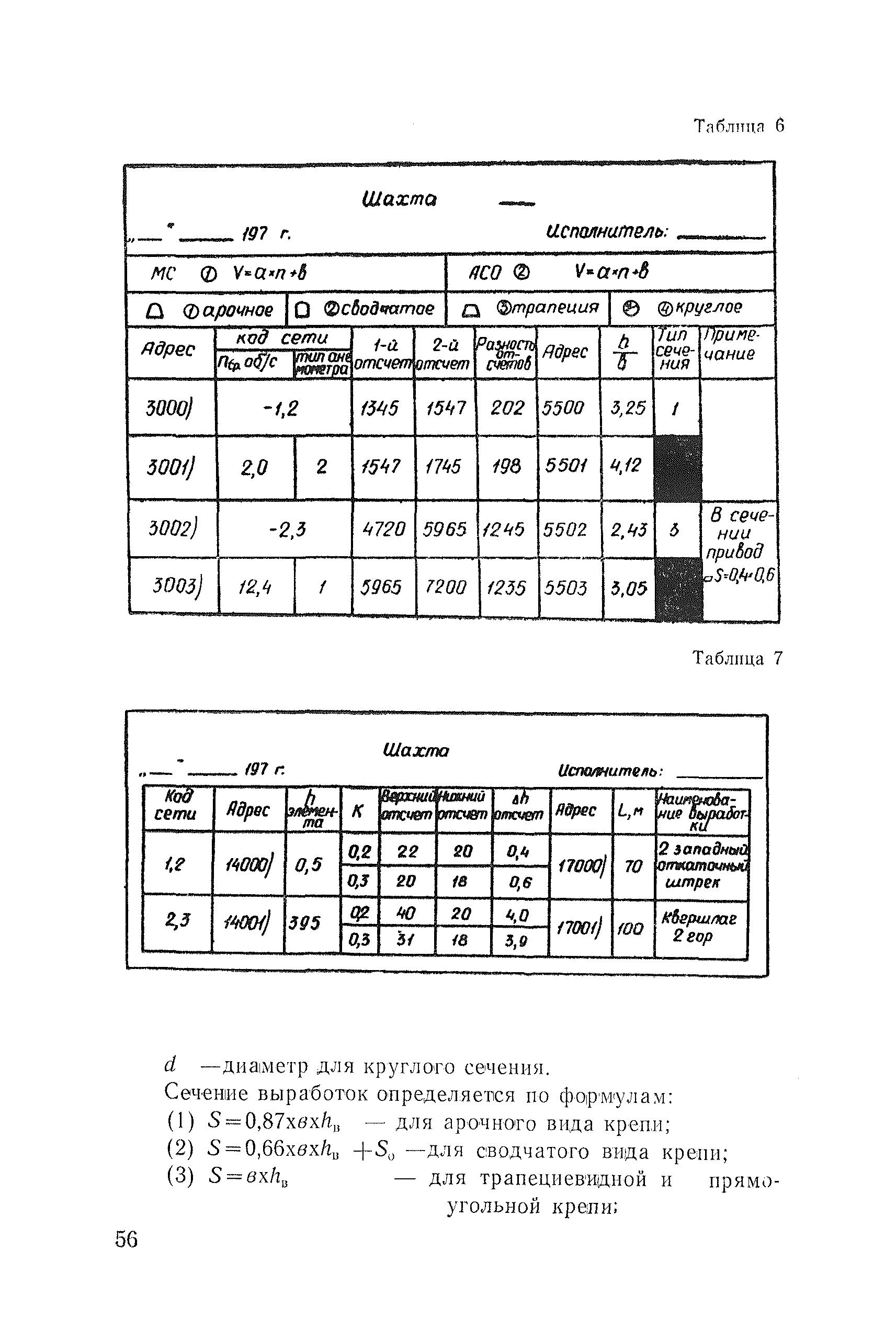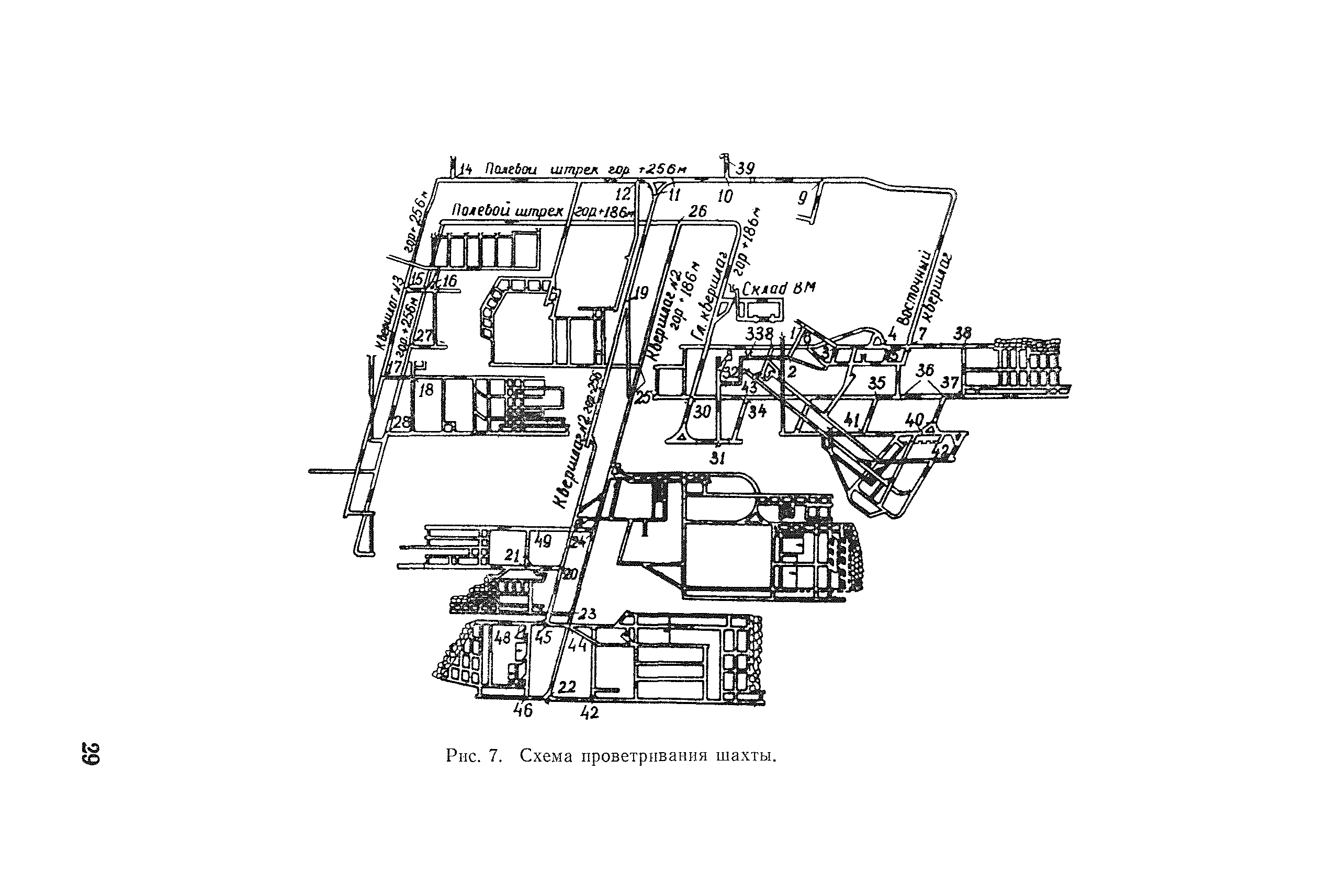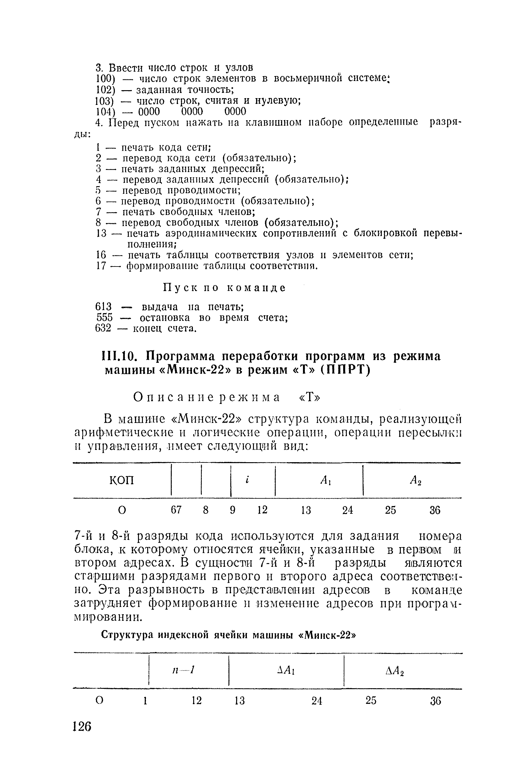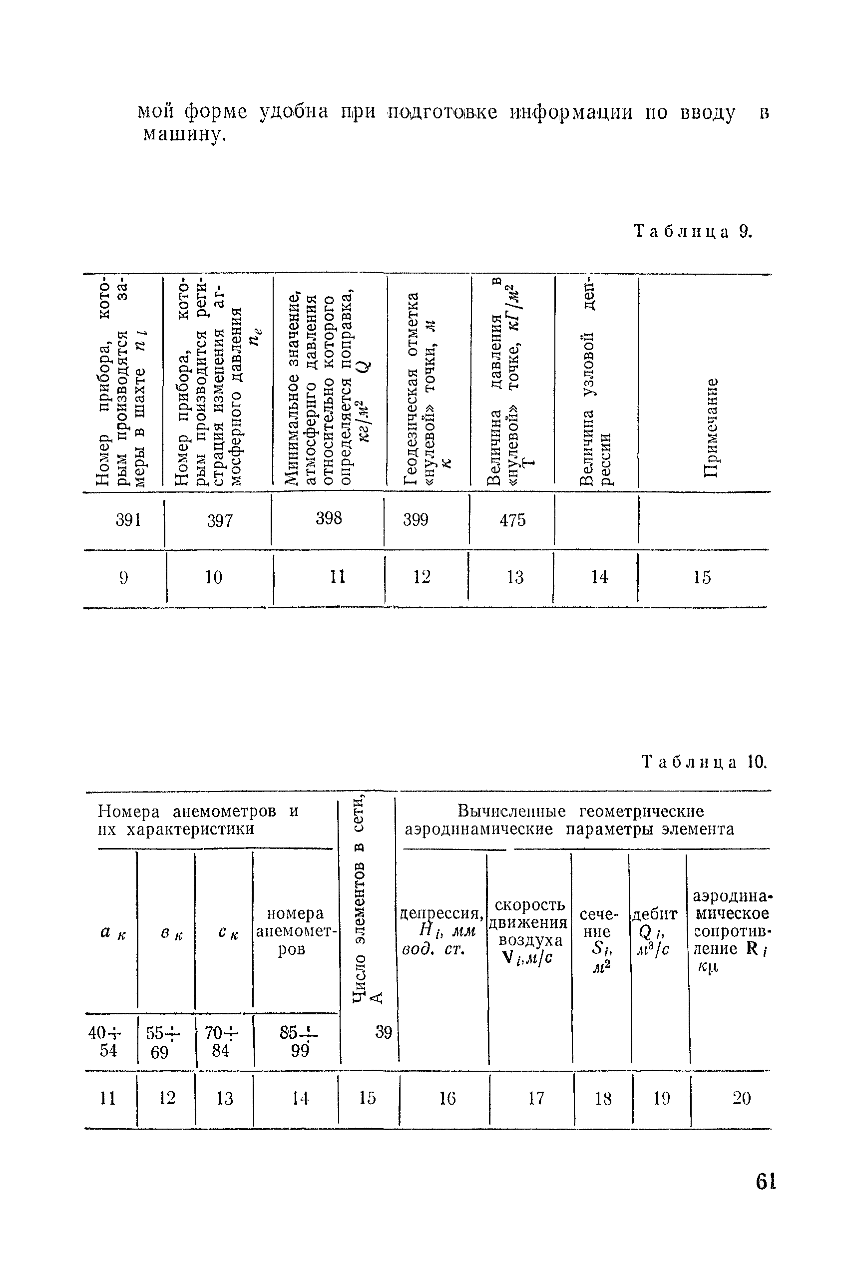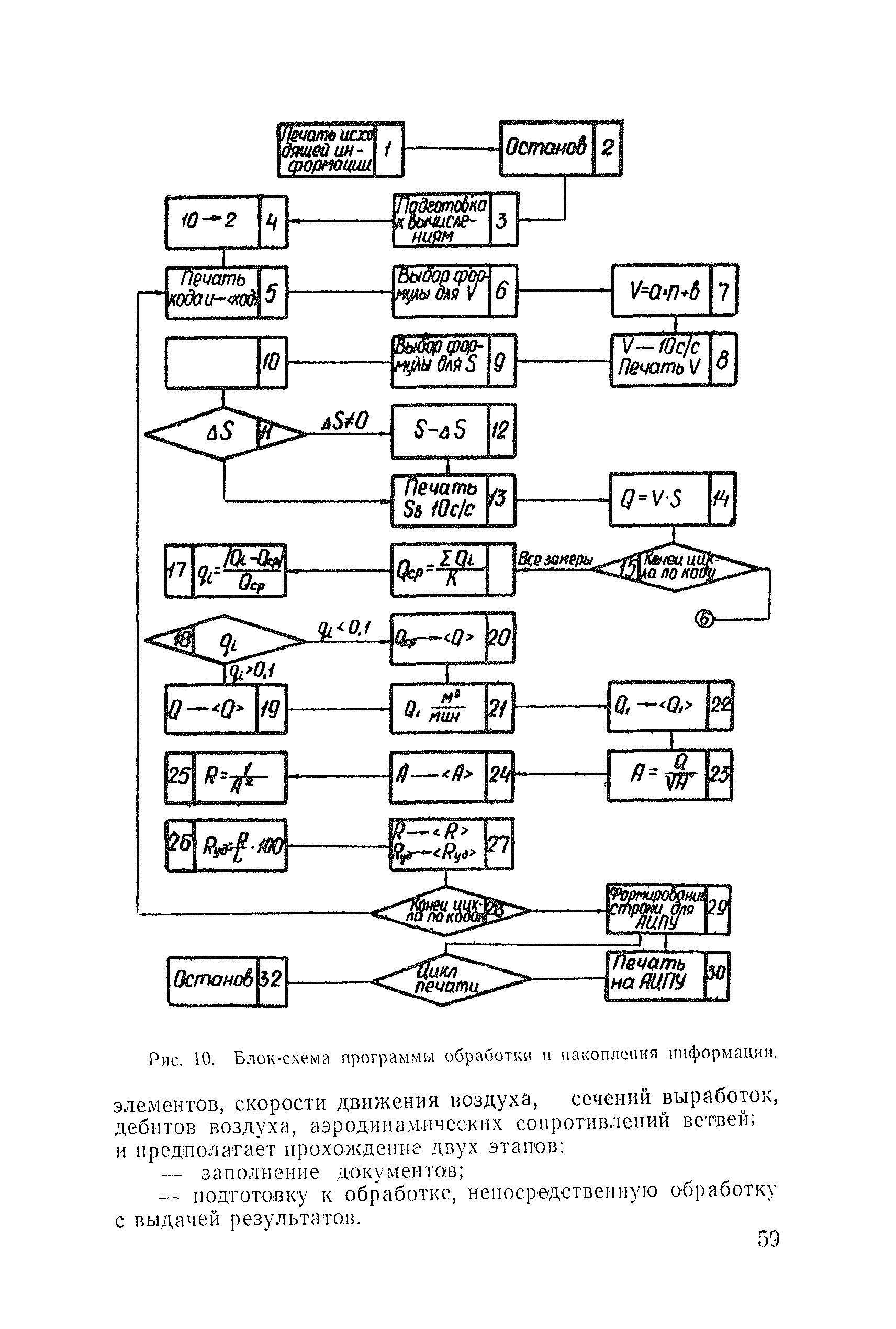 | Оглавление: | Введение I. Классификация задач и области использования средств вычислительной техники I.1. Вентиляционные сети и задачи, решаемые при их расчете I.2. Этапы расчета вентиляционной сети I.3. Методы и средства расчета вентиляционных сетей I.4. Критерии оценки рациональных областей применения средств вычислительной техники I.5. Области применения средств вычислительной техники II. Методы получения и подготовки исходных данных для расчета вентиляционных сетей II.1. Составление расчетных схем аэродинамических съемок II.2. Приборы для депрессионных съемок II.3. Методы и способы проведения депрессионных съемок II.4. Обследование вентиляторных установок II.5. Оформление результатов воздушно-депрессионной съемки II.6. Составление расчетных схем, анализируемых вариантов проветривания II.7. Обработка и накопление информации для расчета вентиляционных сетей на ЭВМ II.8. Внесение естественной тяги в расчетные схемы комбинациями условных вентиляторов II.9. Задачи, при решении которых необходимо учитывать естественные депрессии II.10. Методы учета естественных депрессий при выборе вентиляторов III. Методика решения вентиляторных задач с помощью ЭВМ и аналоговых устройств III.1. Принцип электрического моделирования вентиляторных сетей III.2. Основные требования к приборам электрической аналогии для расчета шахтных вентиляторных сетей. Краткая техническая характеристика электромодели ЭВМС-6 III.3. Методика решения вентиляторных задач с использованием электроаналоговых установок III.4. Математическое обоснование метода расчета и алгоритм для решения ЭВМ III.5. Применение метода узловых матриц при нагнетательном способе проветривания III.6. Применение метода узловых матриц при учете естественных депрессий III.7. Распределение оперативной памяти под промежуточные данные III.8. Анализ совместной работы вентиляторов главного проветривания III.9. Пример решения задачи свободного распределения воздуха III.10. Программа переработки программ из режима машины "Минск-22" в режим "Т" (ППРТ) III.11. Описание программы расчета шахтных вентиляционных сетей ЭВМ "Минск-32" III.12. Методика проверки устойчивости режимов работы вентиляторов III.13. Расчет равномерно распределенных утечек через зону обрушения Приложение 1. Обработка результатов воздушно-депрессионной съемки на ЭВМ Минск-22 Приложение 2. Обработка результатов воздушно-депрессионной съемки на ЭВМ НАИРИ-2 (I часть) Приложение 3. Ввод информации Приложение 4. Переработка программ в режим Т |
