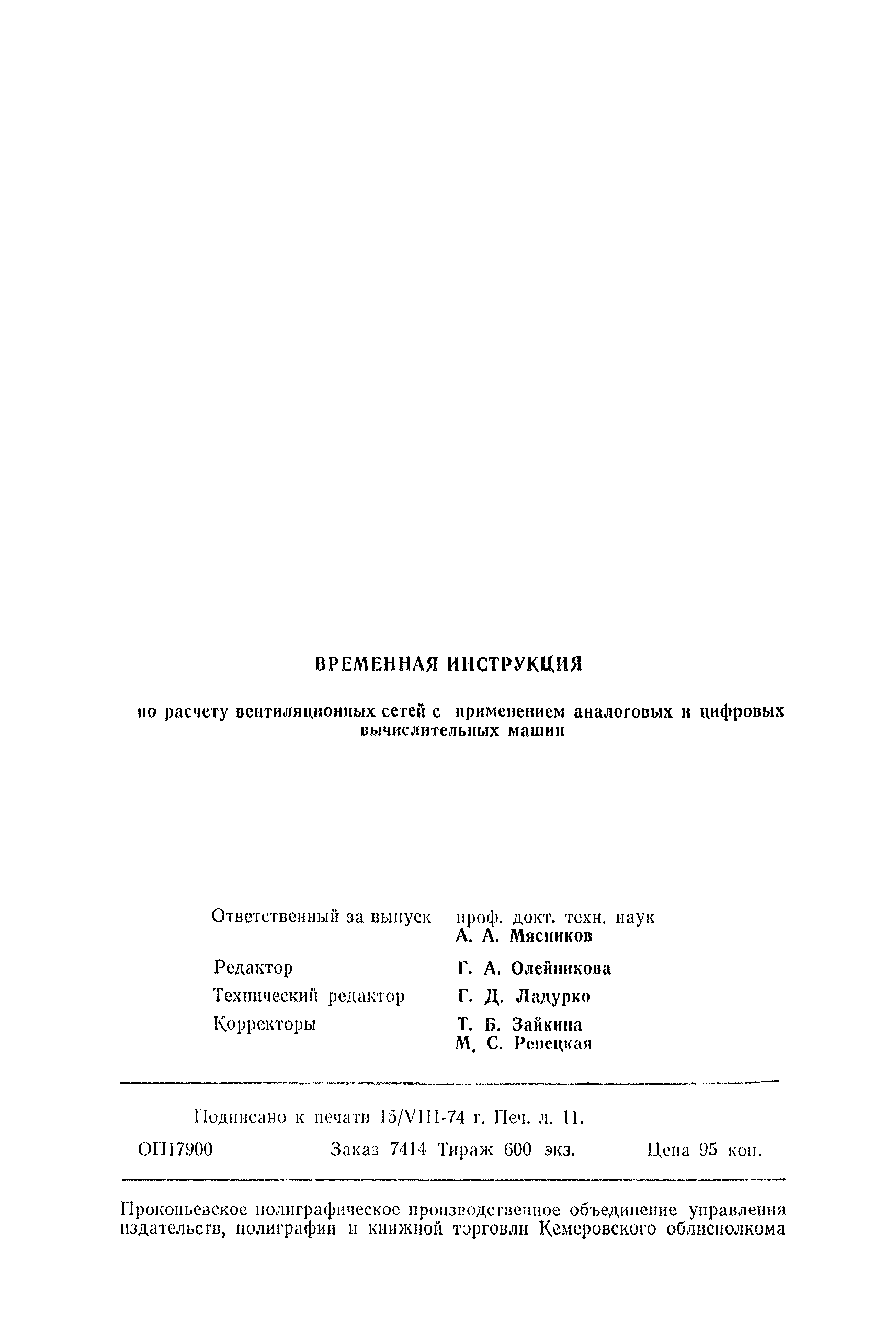 | Название рус.: | Временная инструкция по расчету вентиляционных сетей с применением аналоговых и цифровых вычислительных машин |