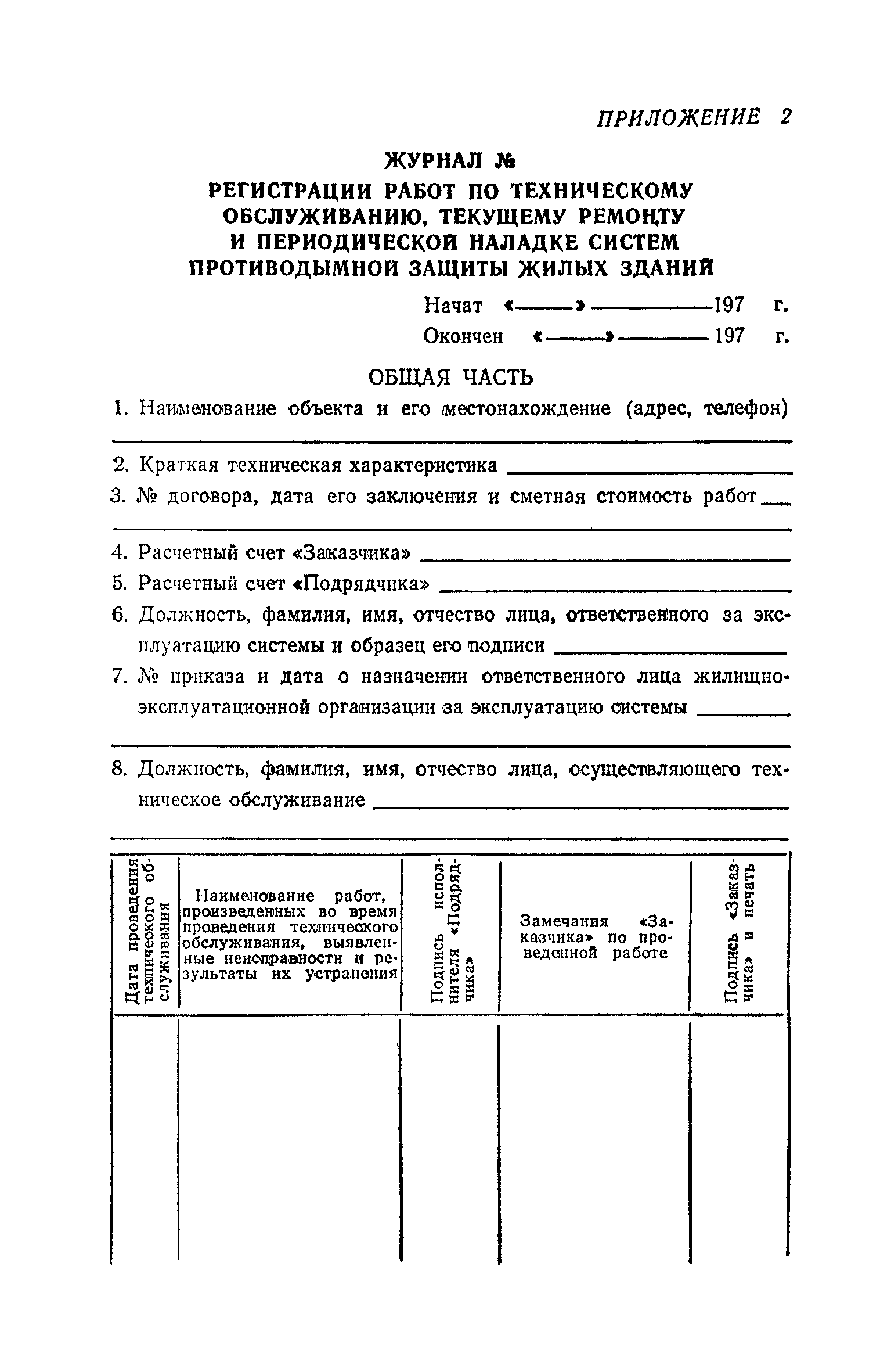 | Оглавление: | 1. Общие положения 2. Устройство систем противодымной защиты 3. Правила приемки противодымной защиты к наладке 4. Наладка систем противодымной защиты 5. Правила приемки систем противодымной защиты к эксплуатации. Эксплуатация и техническое обслуживание 6. Указания по технике безопасности и пожарной безопасности Приложение 1. Акт первичного обследования установки противодымной защиты жилых зданий Приложение 2. Журнал регистрации работ по техническому обслуживанию, текущему ремонту и периодической наладке систем противодымной защиты жилых зданий |
